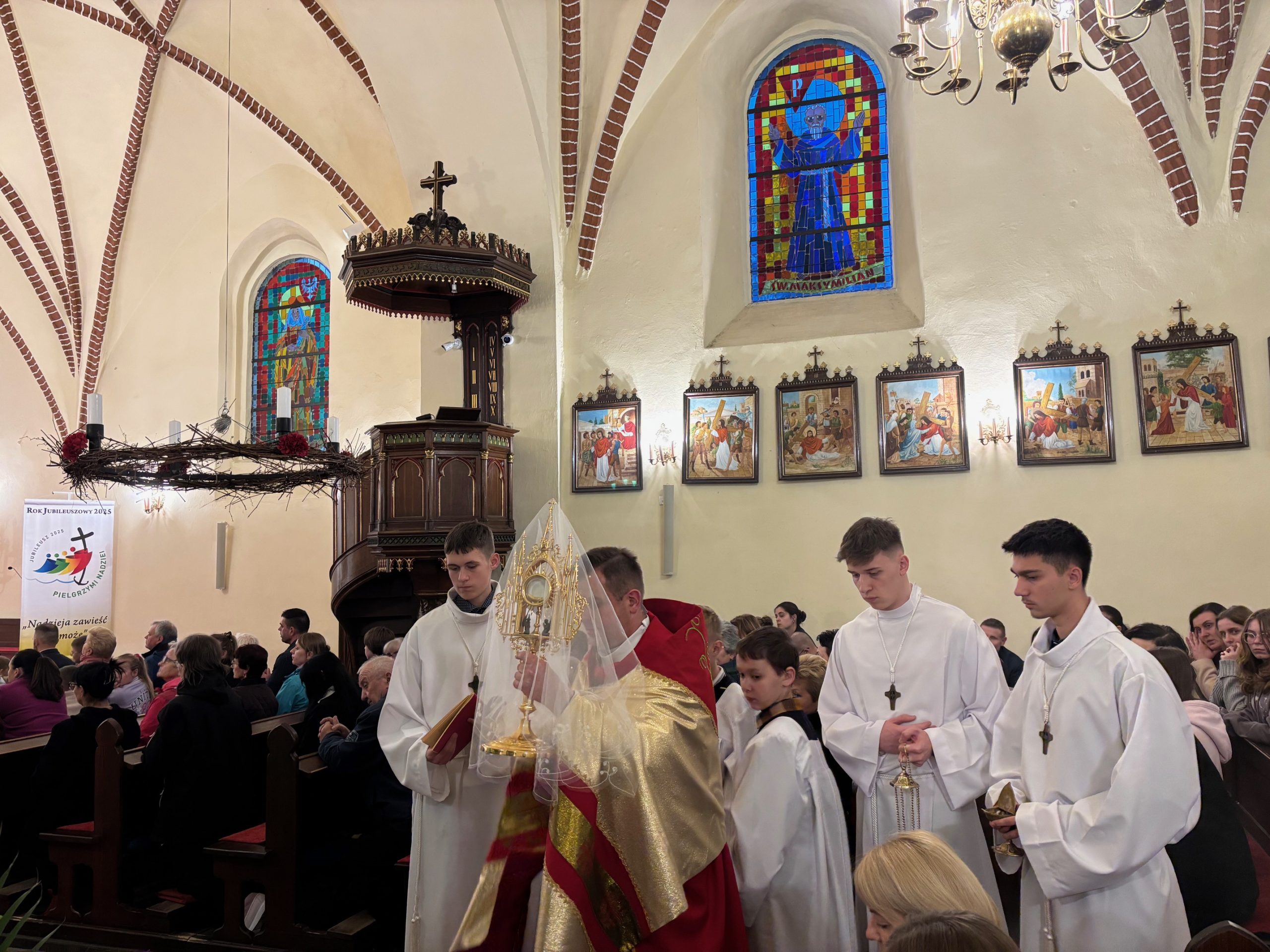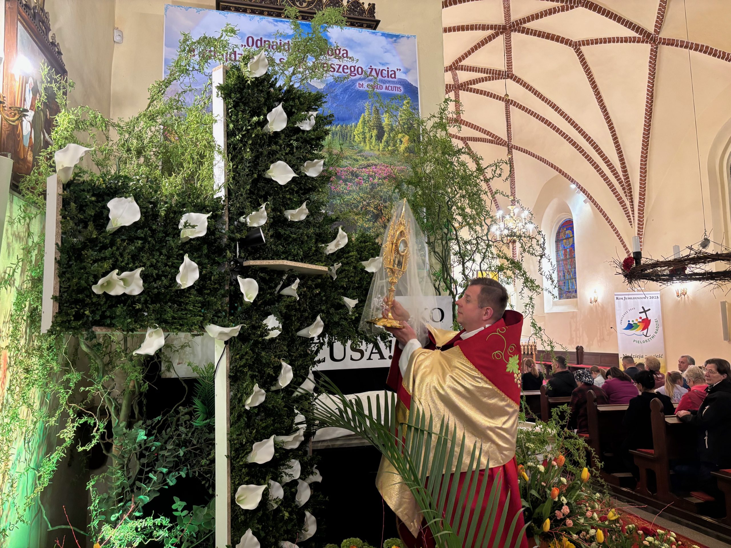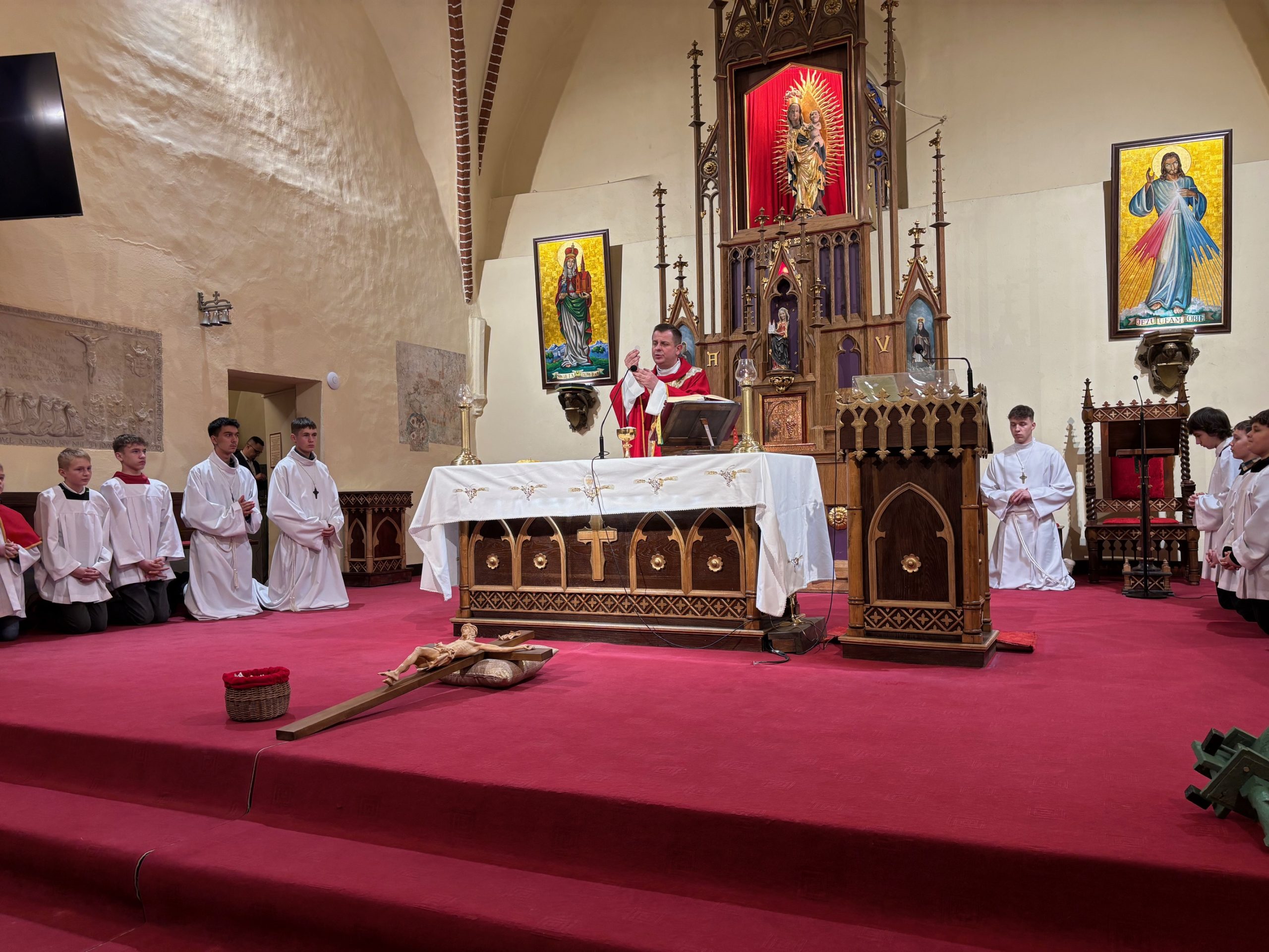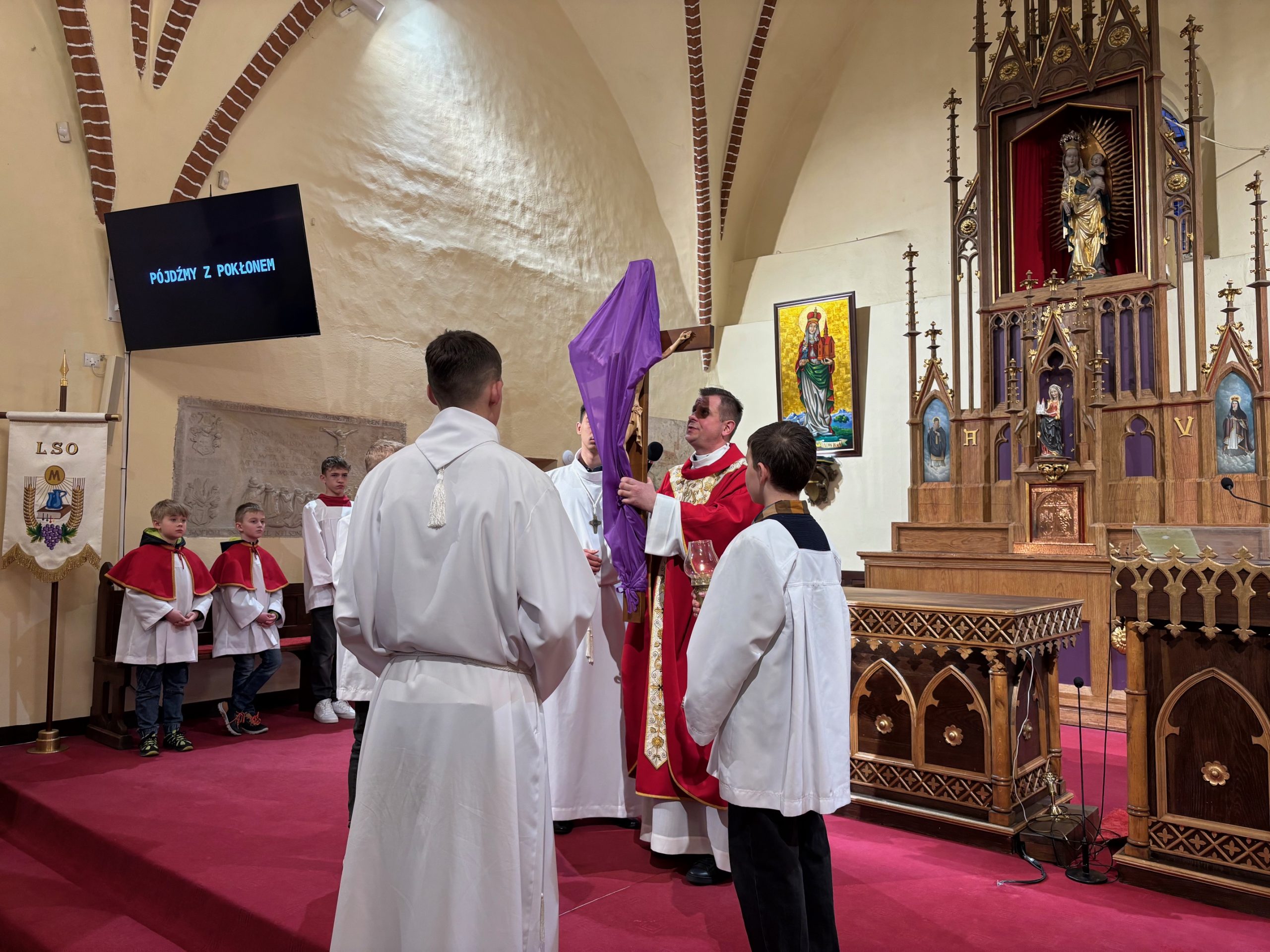 W Wielki Piątek Kościół wspomina Mękę i Śmierć Jezusa Chrystusa. Od najdawniejszych czasów w tym dniu nie odprawia się Mszy świętej. Jest to dzień postu ścisłego i umartwienia. O godzinie 17.30 uczestniczyliśmy w Drodze Krzyżowej, następnie rozpoczęła się Liturgia Wielkiego Piątku. Po dojściu asysty do ołtarza – kapłan upadł na twarz w postawie prostracji, czyli geście uniżenia się człowieka oraz smutku i bólu Kościoła. Pierwsza część obrzędów to Liturgia Słowa. Po wysłuchaniu opisu Męki Chrystusa według św. Jana odśpiewanej i homilii, rozpoczęła się uroczysta Modlitwa Powszechna zawierająca 10 wezwań, obejmująca wszystkie potrzeby Kościoła i świata. Następnie rozpoczęła się Adoracja Krzyża. Po oddaniu czci Krzyżowi przez kapłana i asystę rozpoczęła się adoracja przez wiernych. Podchodzili oni ze wszystkich stron i oddawali cześć Krzyżowi poprzez ucałowanie. W tym czasie można było także złożyć ofiarę na Boży Grób w Jerozolimie i na chrześcijan żyjących w Ziemi Świętej. Po zakończeniu Adoracji Krzyża miał miejsce obrzęd Komunii świętej, przechowywanej ze Mszy Wieczerzy Pańskiej, odprawionej w Wielki Czwartek. Na zakończenie liturgii Wielkiego Piątku procesyjne przeniesiono Najświętszy Sakrament do Grobu Pańskiego oraz obnażono ołtarz.