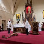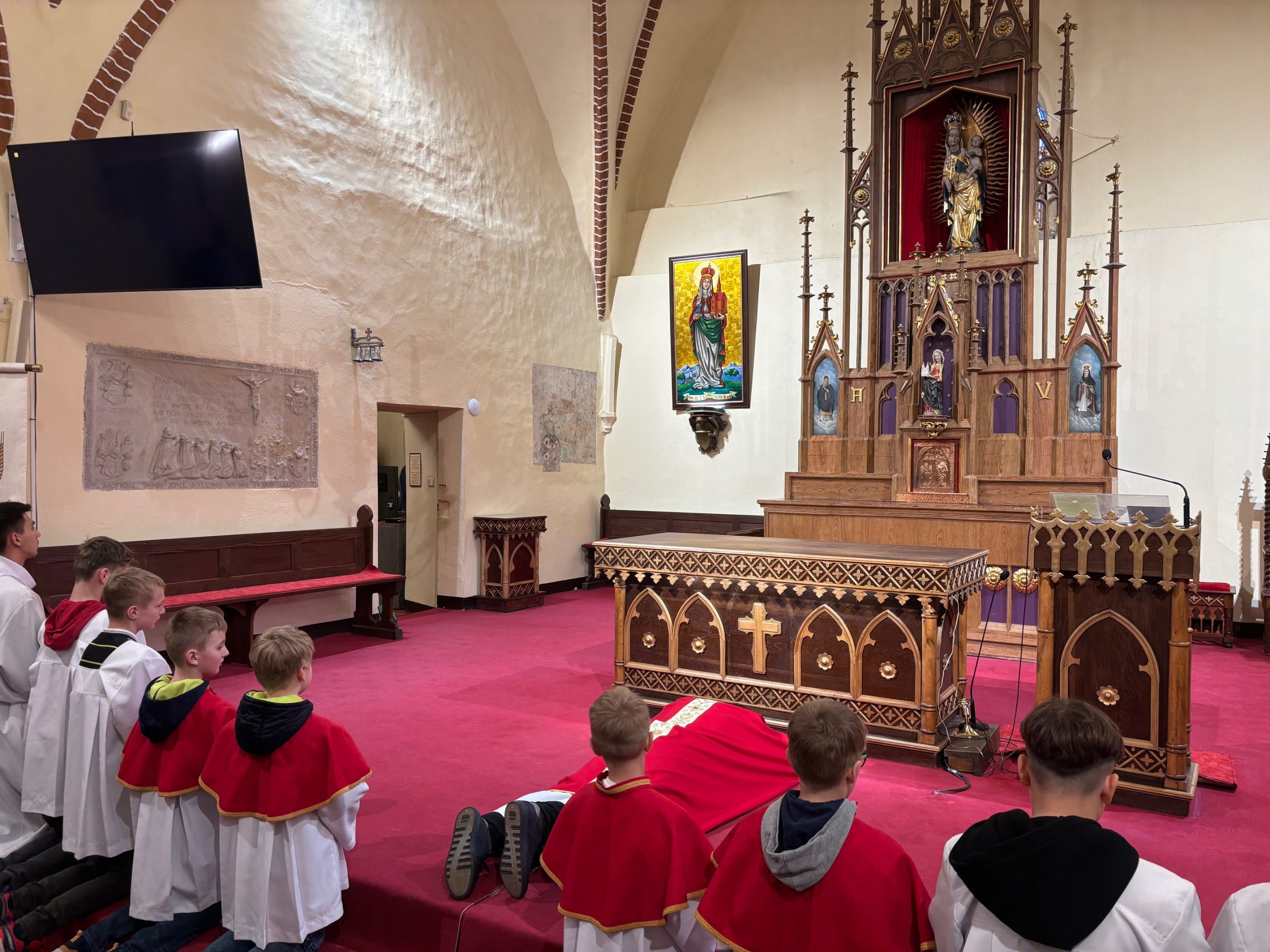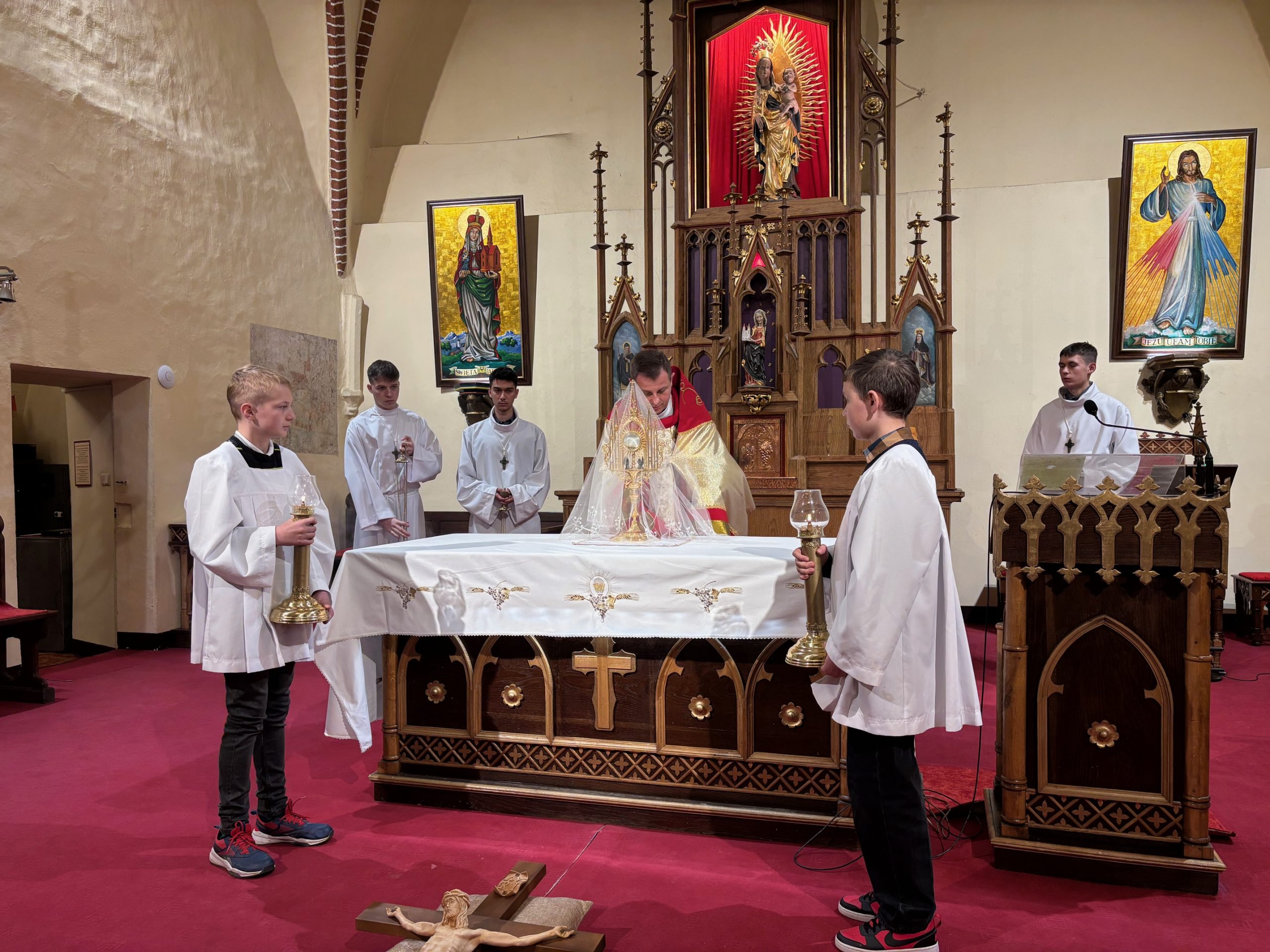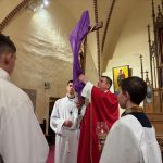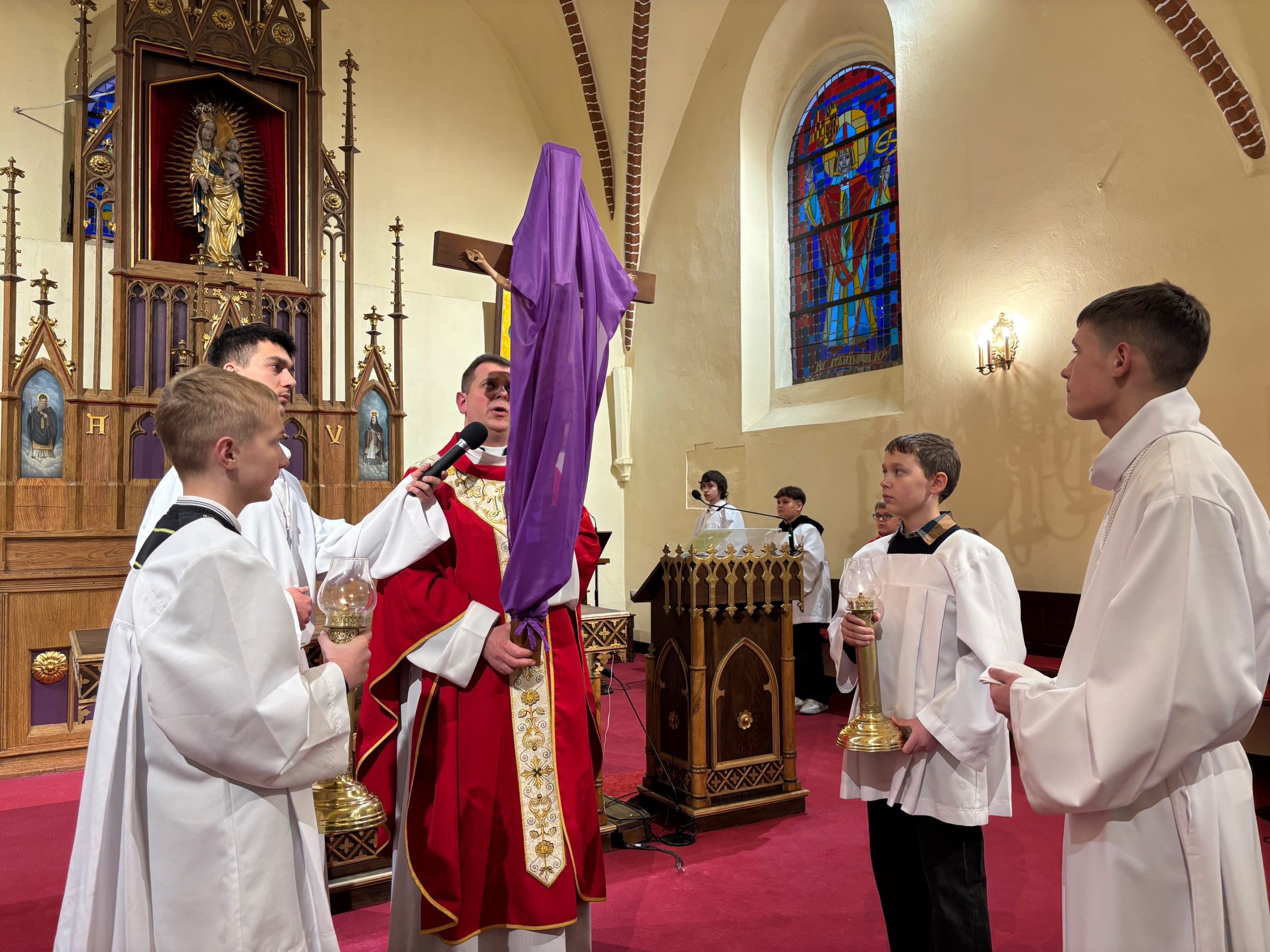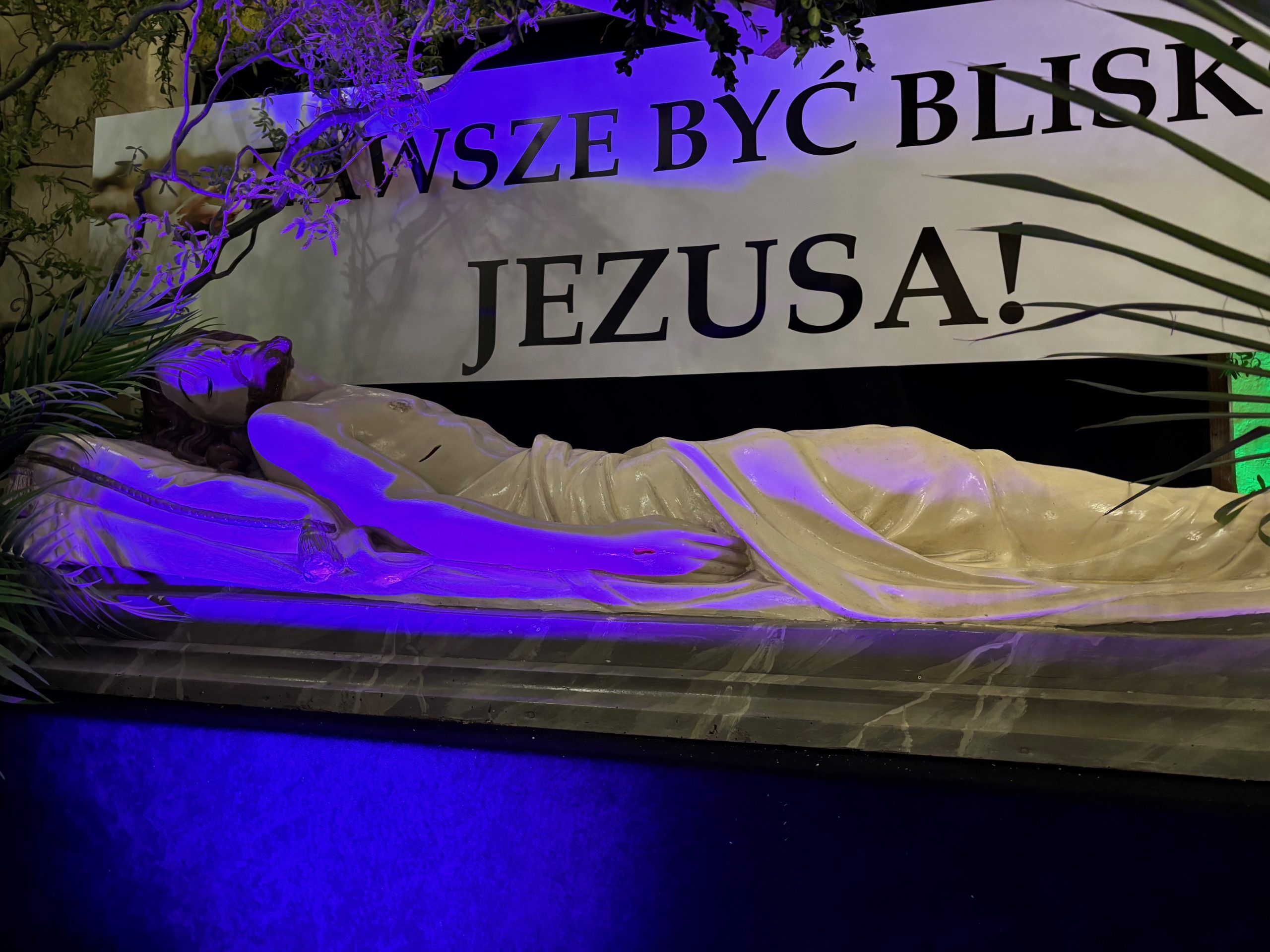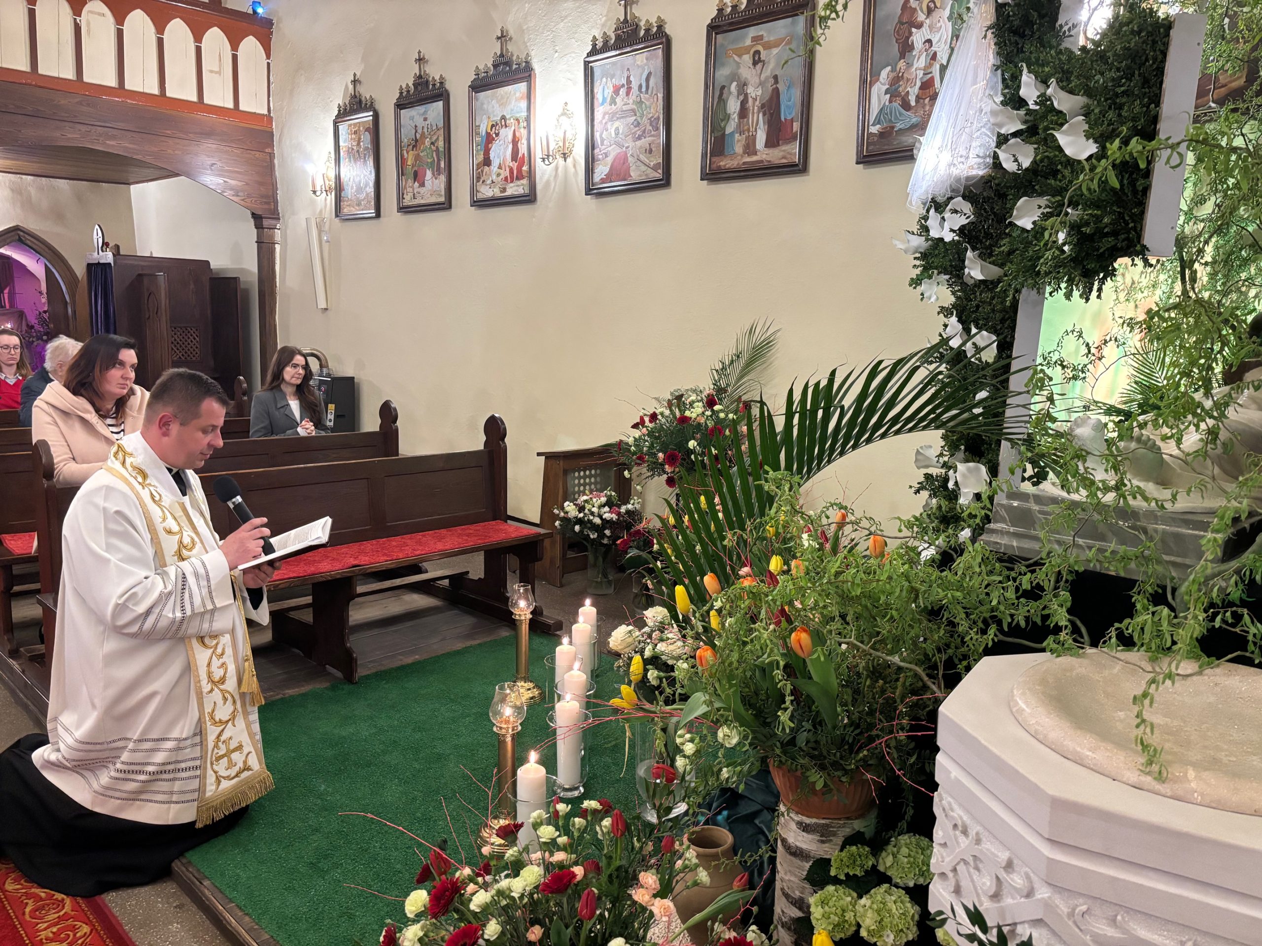 W Wielki Piątek Kościół wspomina Mękę i Śmierć Jezusa Chrystusa. Od najdawniejszych czasów w tym dniu nie odprawia się Mszy świętej. Jest to dzień postu ścisłego i umartwienia. O godzinie 17.30 uczestniczyliśmy w Drodze Krzyżowej, następnie rozpoczęła się Liturgia Wielkiego Piątku. Po dojściu asysty do ołtarza – kapłan upadł na twarz w postawie prostracji, czyli geście uniżenia się człowieka oraz smutku i bólu Kościoła. Pierwsza część obrzędów to Liturgia Słowa. Po wysłuchaniu opisu Męki Chrystusa według św. Jana odśpiewanej i homilii, rozpoczęła się uroczysta Modlitwa Powszechna zawierająca 10 wezwań, obejmująca wszystkie potrzeby Kościoła i świata. Następnie rozpoczęła się Adoracja Krzyża. Po oddaniu czci Krzyżowi przez kapłana i asystę rozpoczęła się adoracja przez wiernych. Podchodzili oni ze wszystkich stron i oddawali cześć Krzyżowi poprzez ucałowanie. W tym czasie można było także złożyć ofiarę na Boży Grób w Jerozolimie i na chrześcijan żyjących w Ziemi Świętej. Po zakończeniu Adoracji Krzyża miał miejsce obrzęd Komunii świętej, przechowywanej ze Mszy Wieczerzy Pańskiej, odprawionej w Wielki Czwartek. Na zakończenie liturgii Wielkiego Piątku procesyjne przeniesiono Najświętszy Sakrament do Grobu Pańskiego oraz obnażono ołtarz.