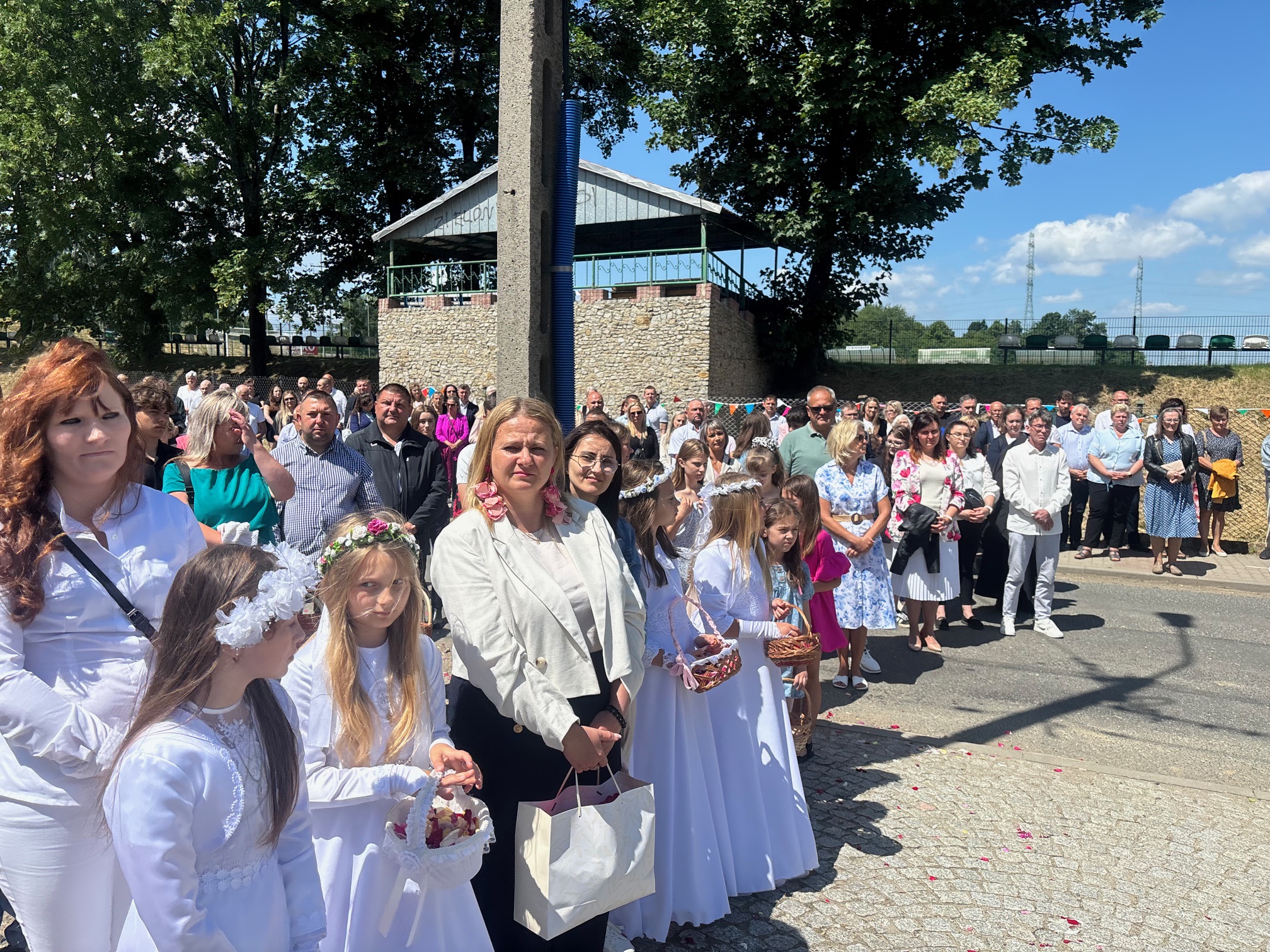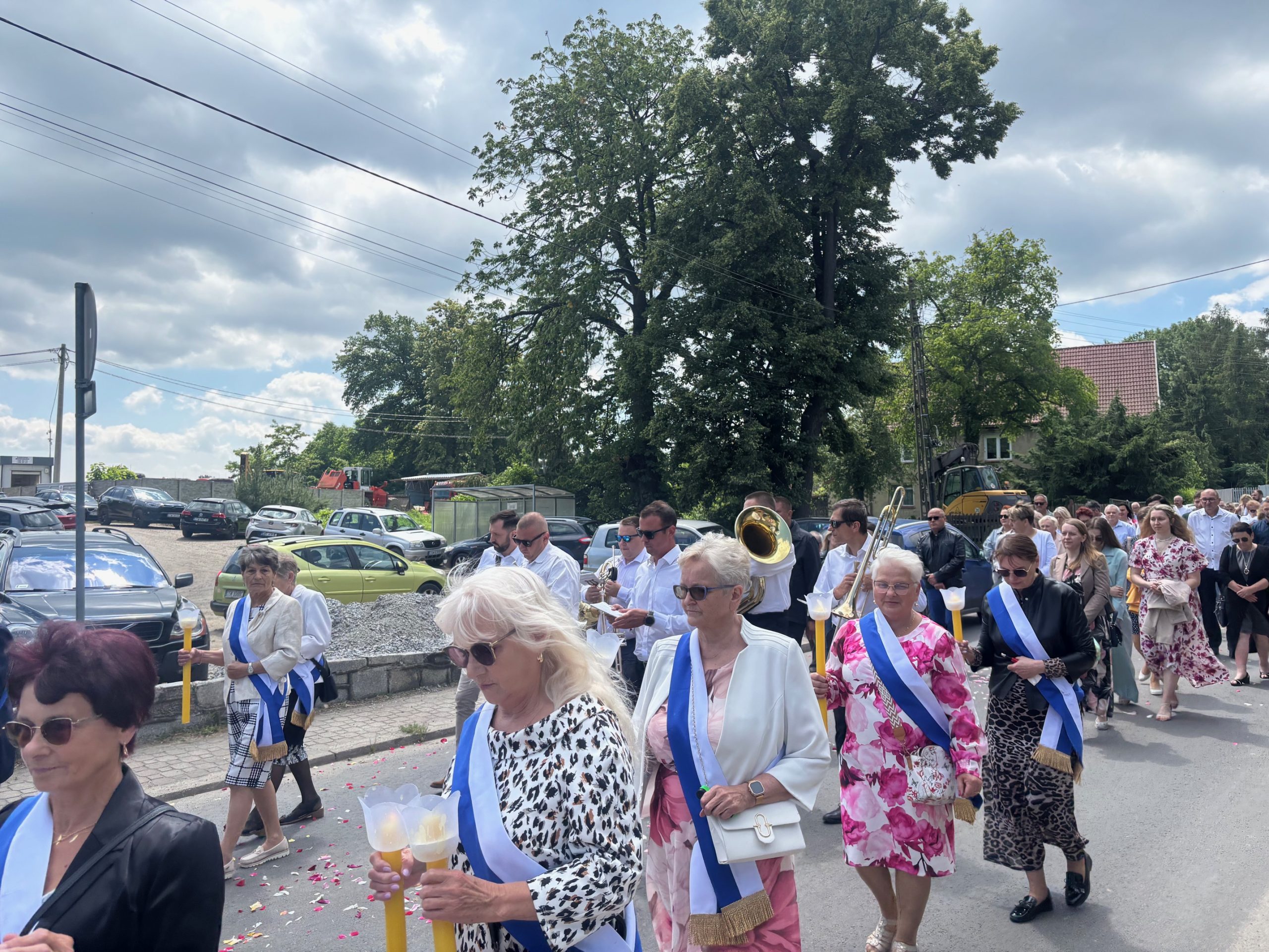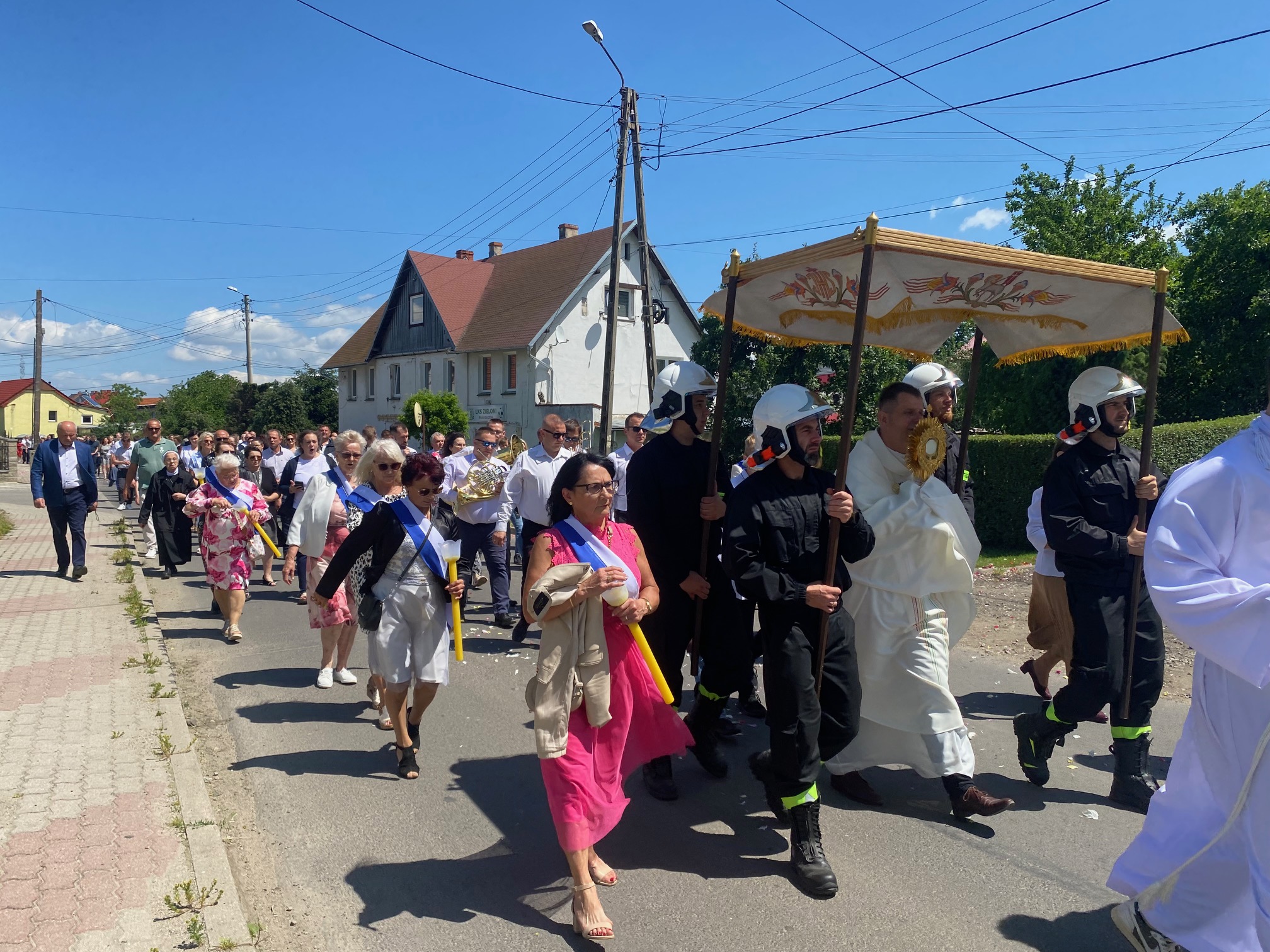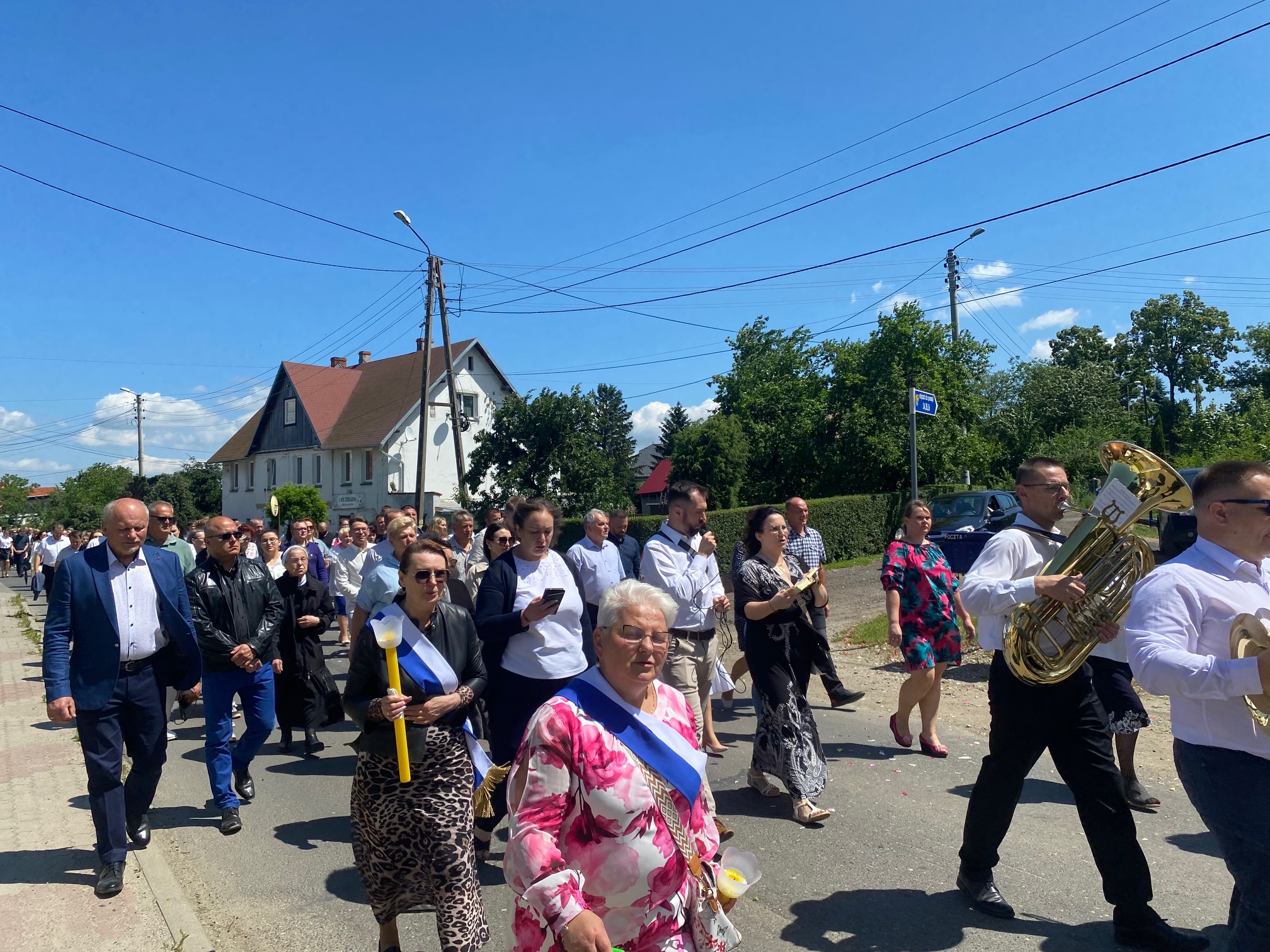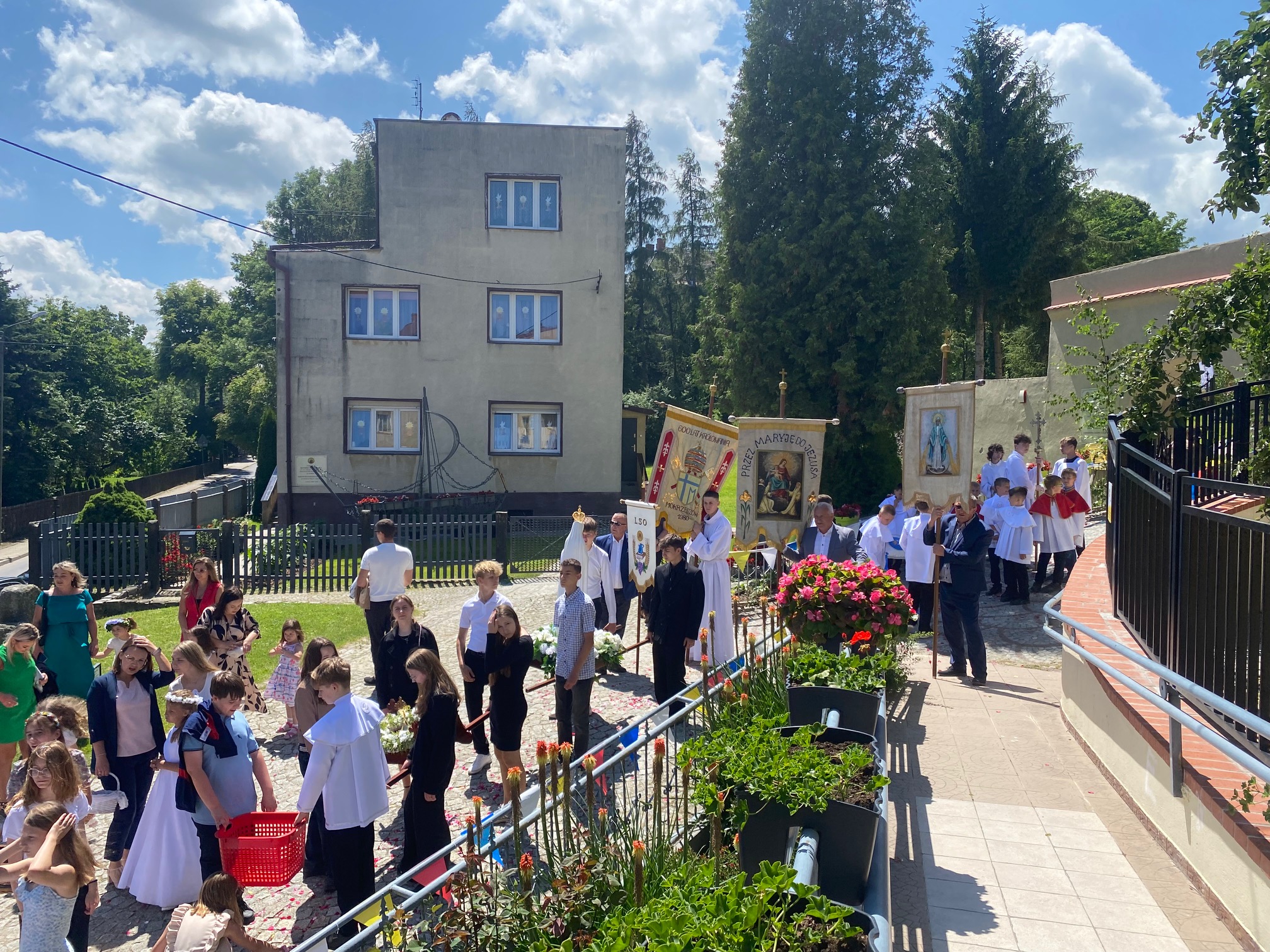 Aby świętować Uroczystość Najświętszego Ciała i Krwi Chrystusa, czyli wyruszyć w procesji eucharystycznej, prosząc Jezusa, by pobłogosławił parafię, potrzeba pracy. Pracę, którą rozpoczęli przedstawiciele grup parafialnych w środę po południu należy widzieć nie tylko jako zadanie „by było ładnie, bezpiecznie”, ale jako świadectwo. Pani Agnieszka, pytana w środę na przygotowaniu ołtarzy dlaczego przyszła, odpowiedziała bez namysłu: „Tak mi serce podpowiada, by tu być i swoją pracą wyrazić moją miłość do Jezusa”. W czwartek o godzinie 10.30 rozpoczęła się Msza Święta. W kazaniu ks. Marcin zachęcił do miłości do Eucharystii, przejawiającej się w chodzeniu na Mszę św. i na adorację w ciągu dnia. Kapłan prosił: chodźmy do kościoła jak najczęściej, mimo pracy, aby przyjąć Jezusa w Komunii św. Bo On czeka na nas każdego dnia. Niech nie czeka nadaremnie! Po Mszy św. z kościoła wyruszyła procesja, wraz z dziećmi obchodzącymi w tym uroczystym dniu swoją Pierwszą Rocznicę Komunii Świętej oraz ich rodzicami. W tym roku procesja do czterech ołtarzy wyszła poza mury kościoła, w stronę Dolnego Mokrzeszowa. Dziewczynki sypiące kwiaty, ministranci, lektorzy – piękne świadectwo miłości do Jezusa. Furorę na procesji zrobiła mała Julka, która z wielką uwagą sypała kwiaty. Ona tak wyznała wiarę. Uczestnicy procesji w skupieniu zatrzymywali się przy kolejnych ołtarzach, przy których następowało odczytanie fragmentów Ewangelii. Przy pierwszym z nich odczytywany jest fragment Ewangelii wg św. Mateusza o ostatniej wieczerzy, a więc nawiązujący do ustanowienia przez Jezusa Eucharystii. Drugi ołtarz jest związany z fragmentem Ewangelii wg św. Marka, dotyczącym rozmnożenia chleba. Przy trzecim ołtarzu odczytywany jest fragment Ewangelii wg św. Łukasza, który opowiada o zaproszonych na ucztę. Zaś ostatni, czwarty ołtarz związany jest z Ewangelią wg św. Jana i sakramentem zjednoczenia. Przy nim kapłan zachęcał do „zakochania się w Eucharystii” i na koniec podziękował za pomoc w przygotowaniu procesji.
