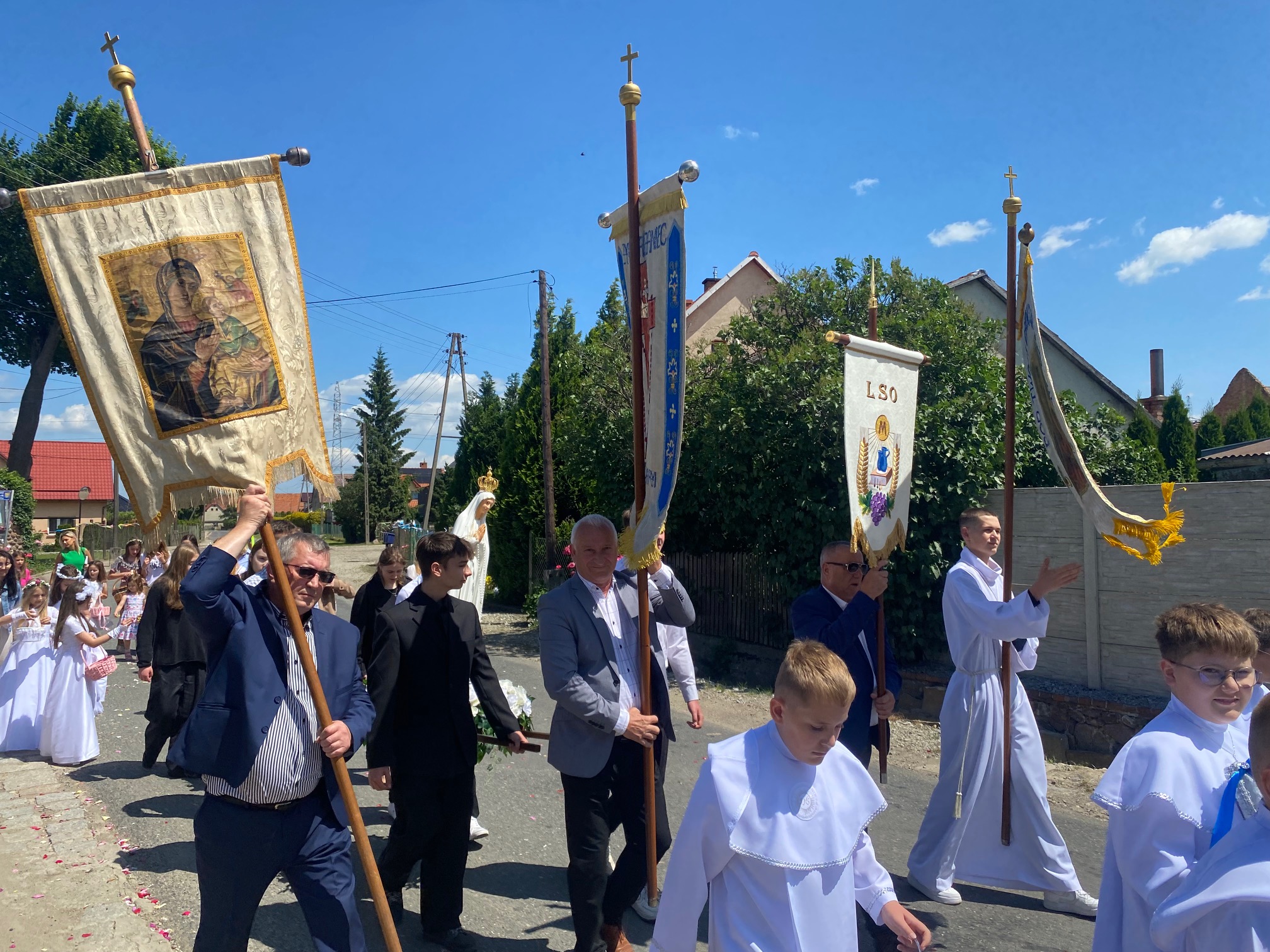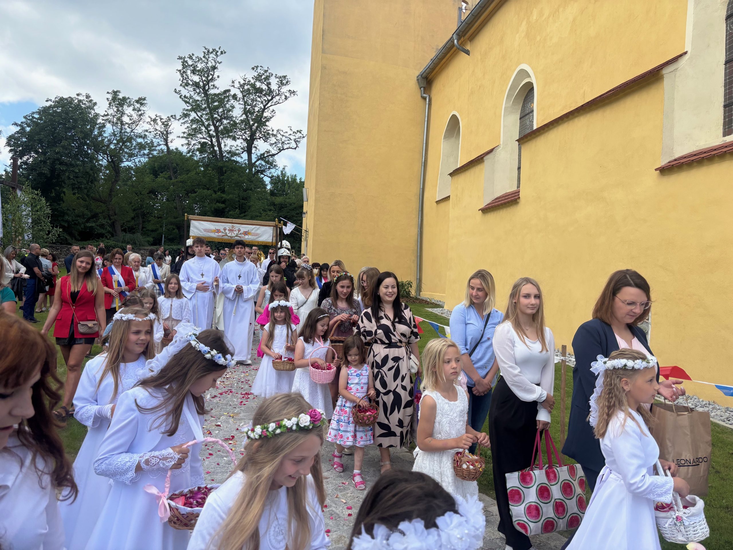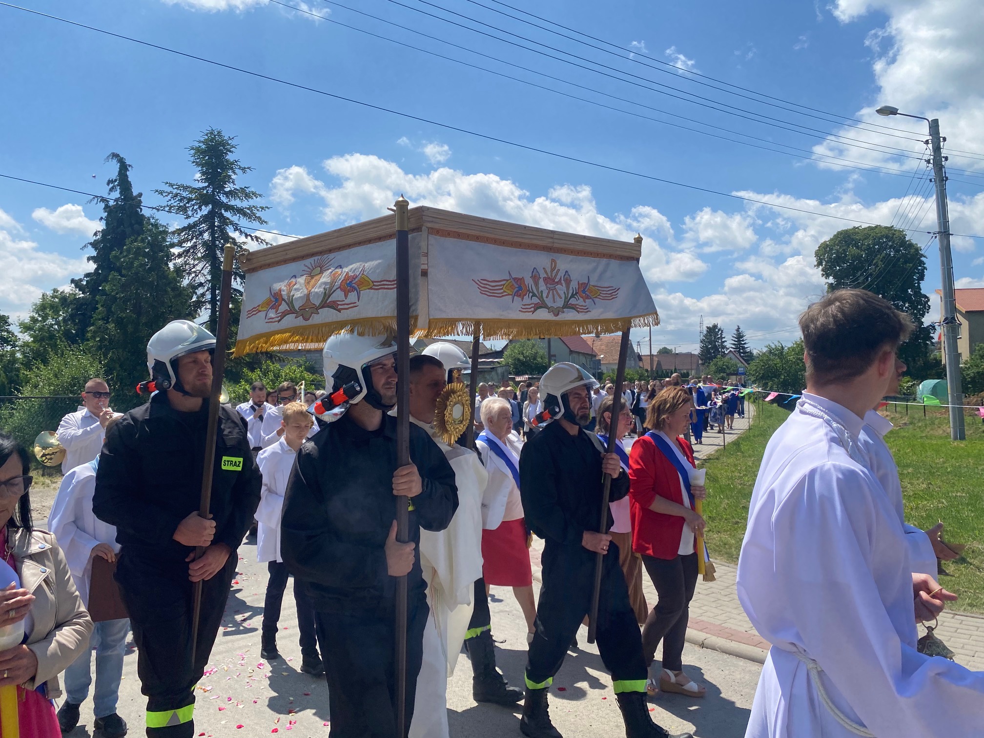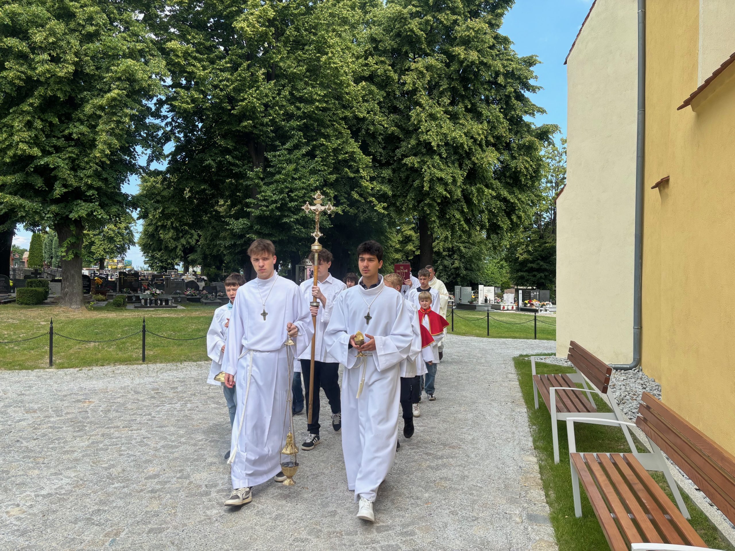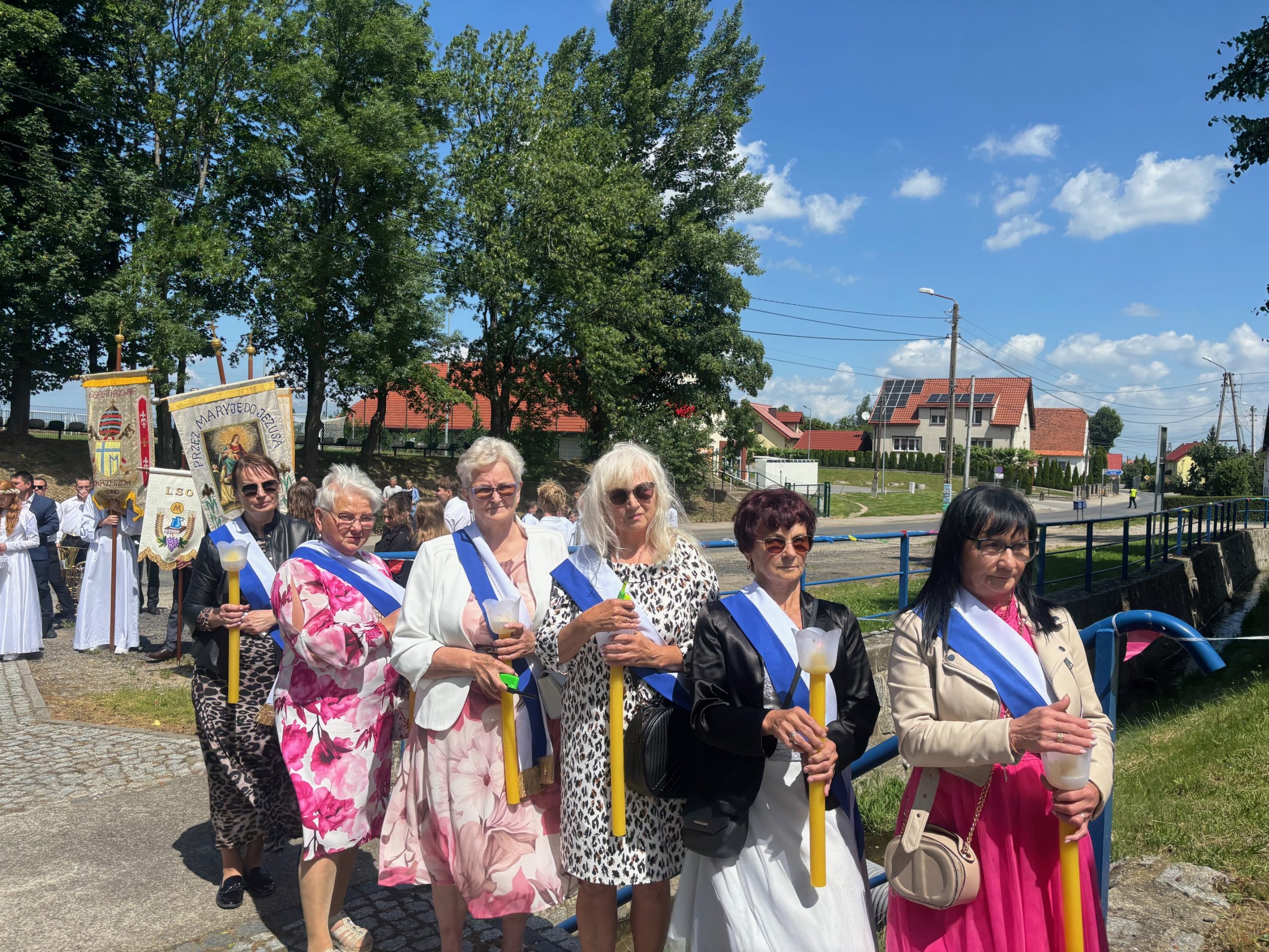 Aby świętować Uroczystość Najświętszego Ciała i Krwi Chrystusa, czyli wyruszyć w procesji eucharystycznej, prosząc Jezusa, by pobłogosławił parafię, potrzeba pracy. Pracę, którą rozpoczęli przedstawiciele grup parafialnych w środę po południu należy widzieć nie tylko jako zadanie „by było ładnie, bezpiecznie”, ale jako świadectwo. Pani Agnieszka, pytana w środę na przygotowaniu ołtarzy dlaczego przyszła, odpowiedziała bez namysłu: „Tak mi serce podpowiada, by tu być i swoją pracą wyrazić moją miłość do Jezusa”. W czwartek o godzinie 10.30 rozpoczęła się Msza Święta. W kazaniu ks. Marcin zachęcił do miłości do Eucharystii, przejawiającej się w chodzeniu na Mszę św. i na adorację w ciągu dnia. Kapłan prosił: chodźmy do kościoła jak najczęściej, mimo pracy, aby przyjąć Jezusa w Komunii św. Bo On czeka na nas każdego dnia. Niech nie czeka nadaremnie! Po Mszy św. z kościoła wyruszyła procesja, wraz z dziećmi obchodzącymi w tym uroczystym dniu swoją Pierwszą Rocznicę Komunii Świętej oraz ich rodzicami. W tym roku procesja do czterech ołtarzy wyszła poza mury kościoła, w stronę Dolnego Mokrzeszowa. Dziewczynki sypiące kwiaty, ministranci, lektorzy – piękne świadectwo miłości do Jezusa. Furorę na procesji zrobiła mała Julka, która z wielką uwagą sypała kwiaty. Ona tak wyznała wiarę. Uczestnicy procesji w skupieniu zatrzymywali się przy kolejnych ołtarzach, przy których następowało odczytanie fragmentów Ewangelii. Przy pierwszym z nich odczytywany jest fragment Ewangelii wg św. Mateusza o ostatniej wieczerzy, a więc nawiązujący do ustanowienia przez Jezusa Eucharystii. Drugi ołtarz jest związany z fragmentem Ewangelii wg św. Marka, dotyczącym rozmnożenia chleba. Przy trzecim ołtarzu odczytywany jest fragment Ewangelii wg św. Łukasza, który opowiada o zaproszonych na ucztę. Zaś ostatni, czwarty ołtarz związany jest z Ewangelią wg św. Jana i sakramentem zjednoczenia. Przy nim kapłan zachęcał do „zakochania się w Eucharystii” i na koniec podziękował za pomoc w przygotowaniu procesji.