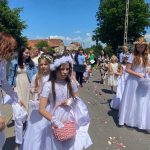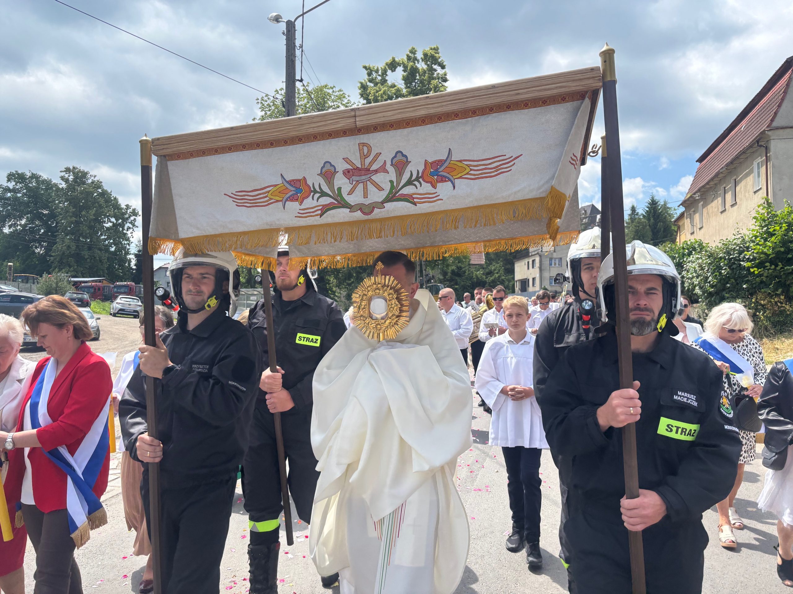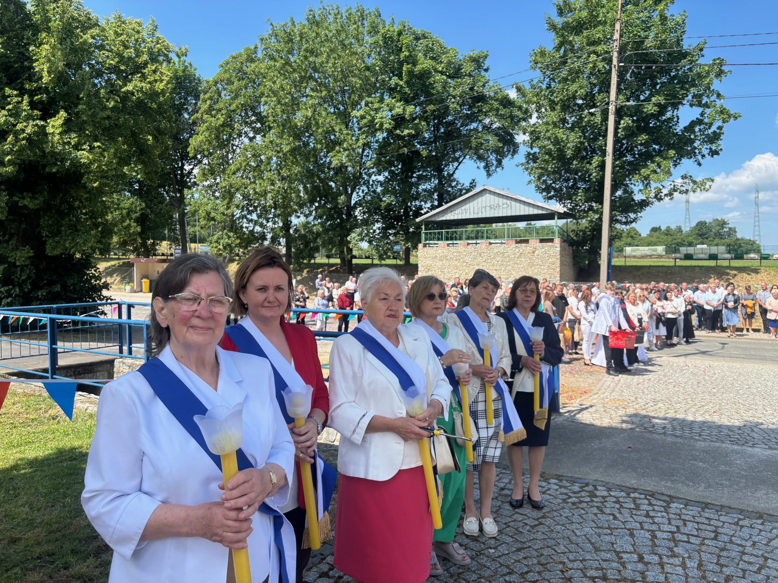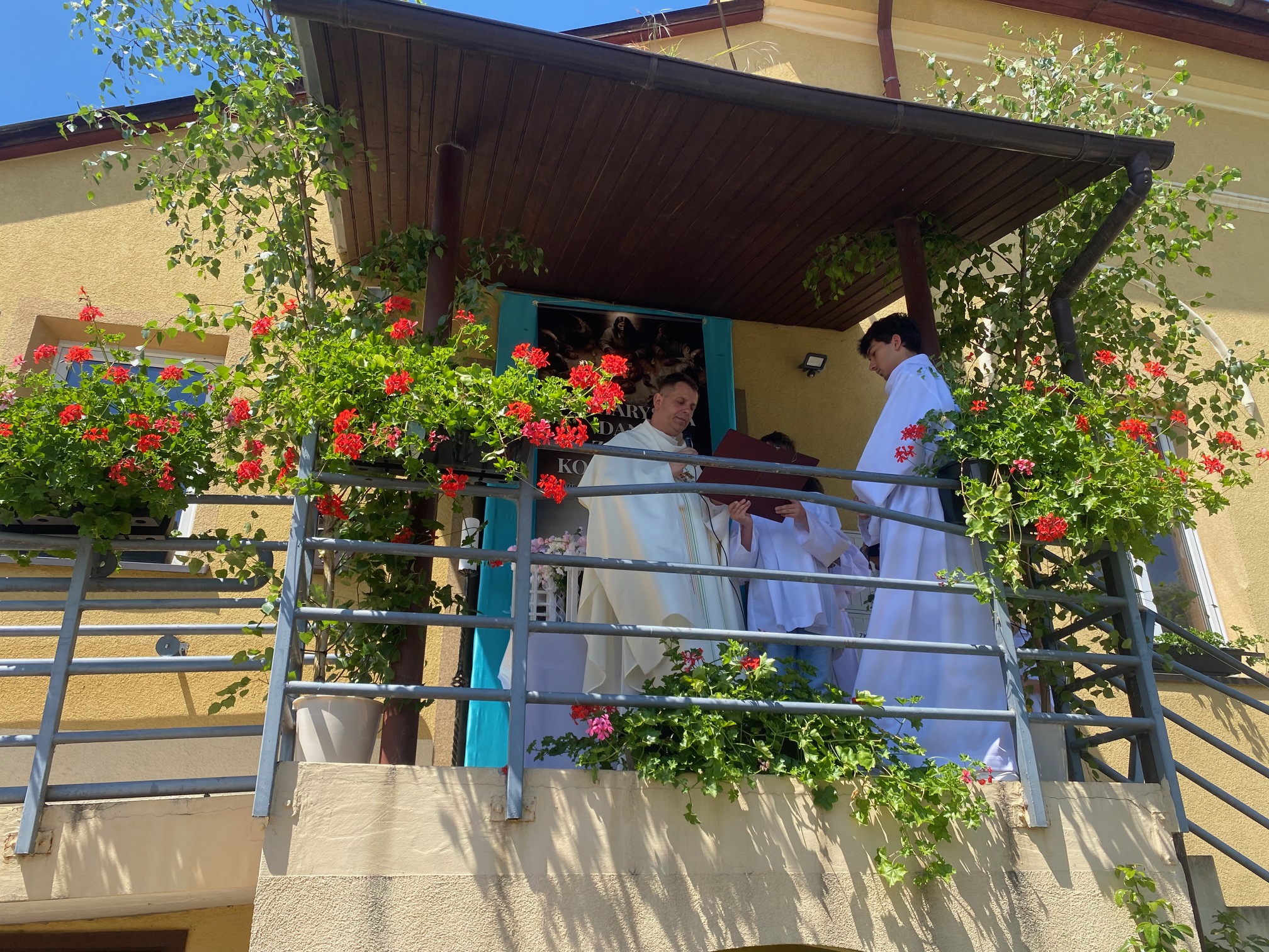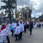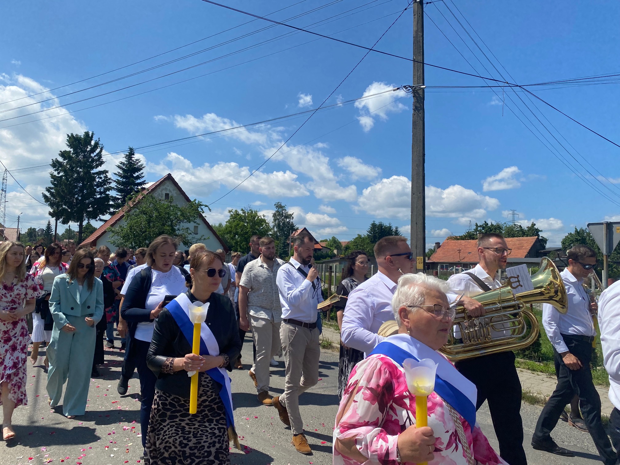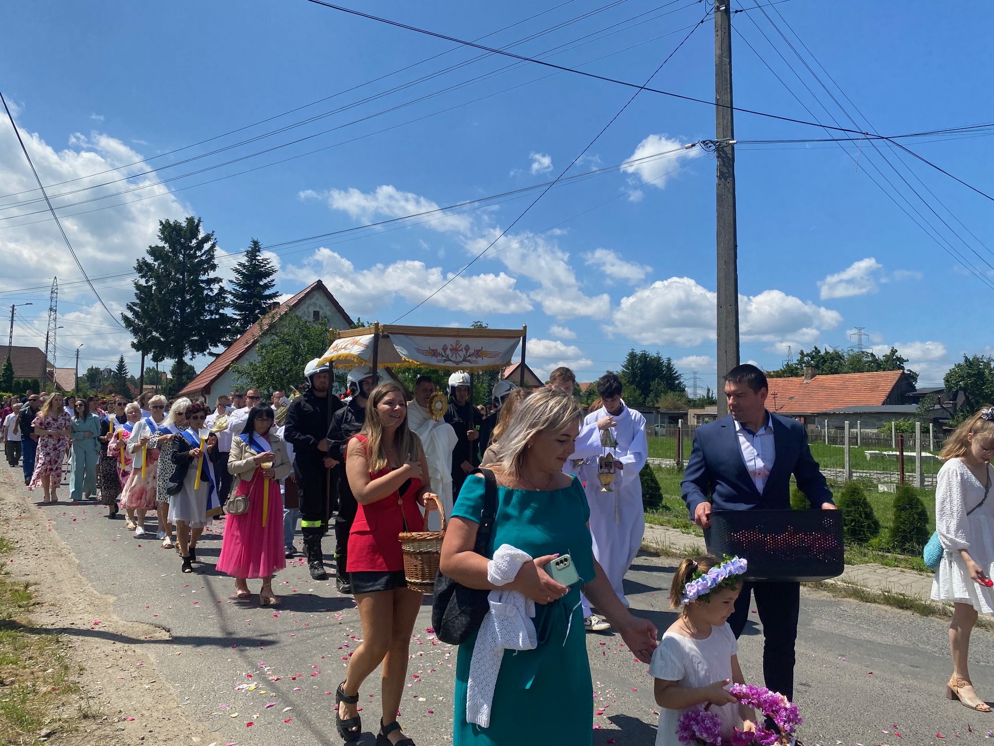 Aby świętować Uroczystość Najświętszego Ciała i Krwi Chrystusa, czyli wyruszyć w procesji eucharystycznej, prosząc Jezusa, by pobłogosławił parafię, potrzeba pracy. Pracę, którą rozpoczęli przedstawiciele grup parafialnych w środę po południu należy widzieć nie tylko jako zadanie „by było ładnie, bezpiecznie”, ale jako świadectwo. Pani Agnieszka, pytana w środę na przygotowaniu ołtarzy dlaczego przyszła, odpowiedziała bez namysłu: „Tak mi serce podpowiada, by tu być i swoją pracą wyrazić moją miłość do Jezusa”. W czwartek o godzinie 10.30 rozpoczęła się Msza Święta. W kazaniu ks. Marcin zachęcił do miłości do Eucharystii, przejawiającej się w chodzeniu na Mszę św. i na adorację w ciągu dnia. Kapłan prosił: chodźmy do kościoła jak najczęściej, mimo pracy, aby przyjąć Jezusa w Komunii św. Bo On czeka na nas każdego dnia. Niech nie czeka nadaremnie! Po Mszy św. z kościoła wyruszyła procesja, wraz z dziećmi obchodzącymi w tym uroczystym dniu swoją Pierwszą Rocznicę Komunii Świętej oraz ich rodzicami. W tym roku procesja do czterech ołtarzy wyszła poza mury kościoła, w stronę Dolnego Mokrzeszowa. Dziewczynki sypiące kwiaty, ministranci, lektorzy – piękne świadectwo miłości do Jezusa. Furorę na procesji zrobiła mała Julka, która z wielką uwagą sypała kwiaty. Ona tak wyznała wiarę. Uczestnicy procesji w skupieniu zatrzymywali się przy kolejnych ołtarzach, przy których następowało odczytanie fragmentów Ewangelii. Przy pierwszym z nich odczytywany jest fragment Ewangelii wg św. Mateusza o ostatniej wieczerzy, a więc nawiązujący do ustanowienia przez Jezusa Eucharystii. Drugi ołtarz jest związany z fragmentem Ewangelii wg św. Marka, dotyczącym rozmnożenia chleba. Przy trzecim ołtarzu odczytywany jest fragment Ewangelii wg św. Łukasza, który opowiada o zaproszonych na ucztę. Zaś ostatni, czwarty ołtarz związany jest z Ewangelią wg św. Jana i sakramentem zjednoczenia. Przy nim kapłan zachęcał do „zakochania się w Eucharystii” i na koniec podziękował za pomoc w przygotowaniu procesji.
