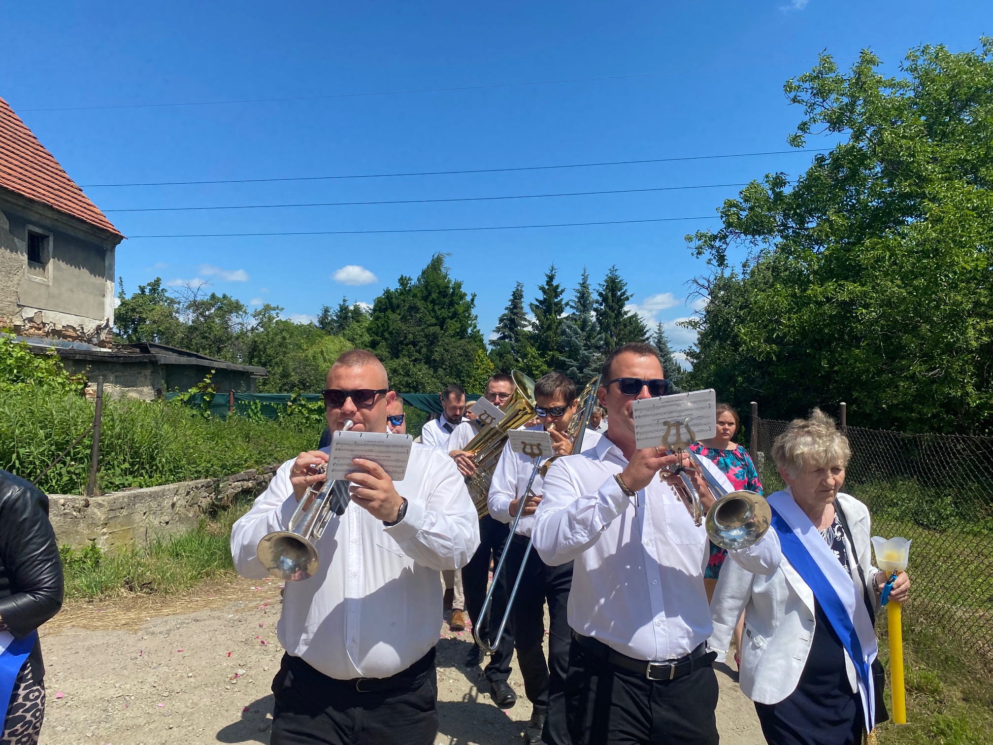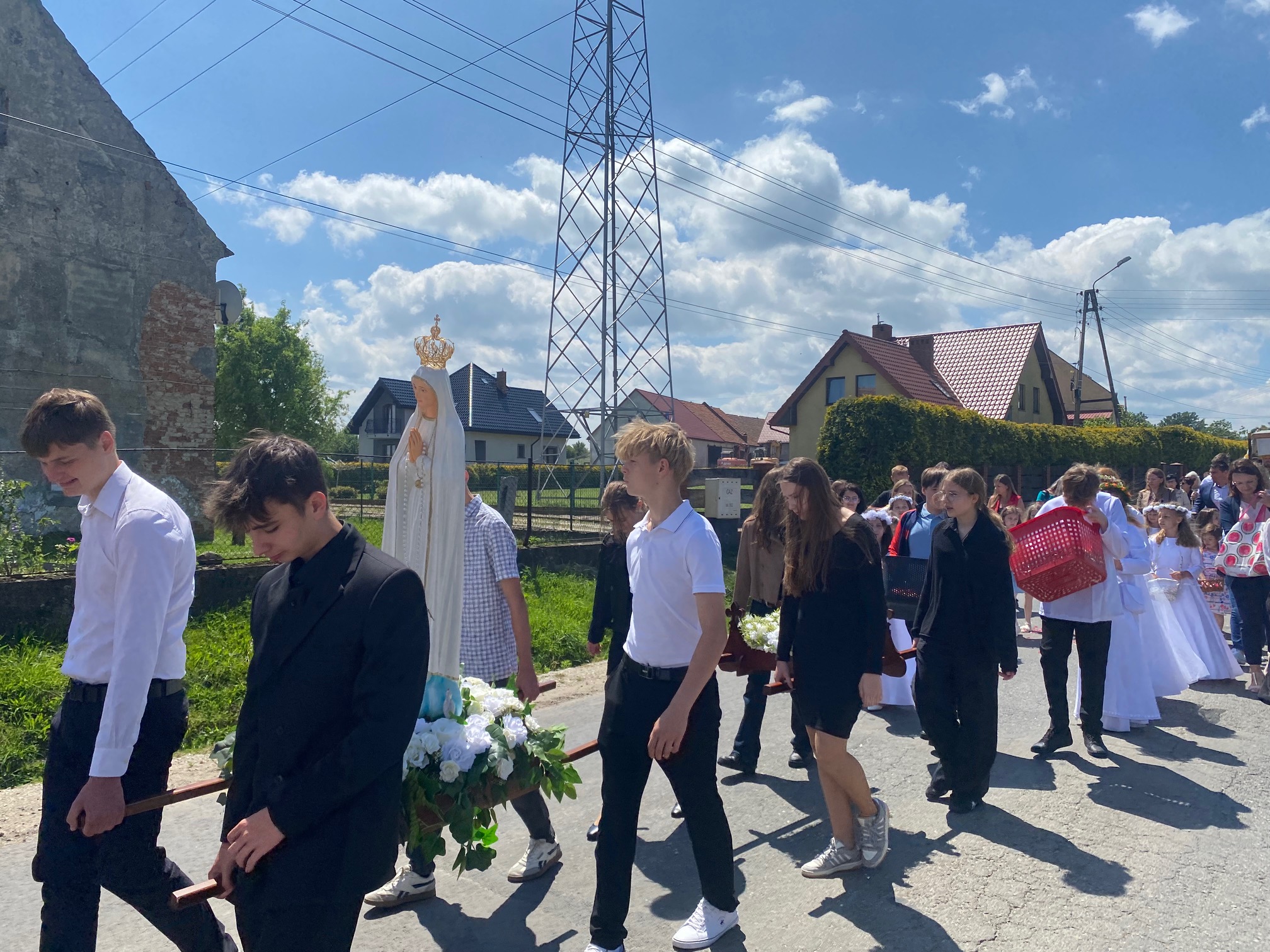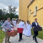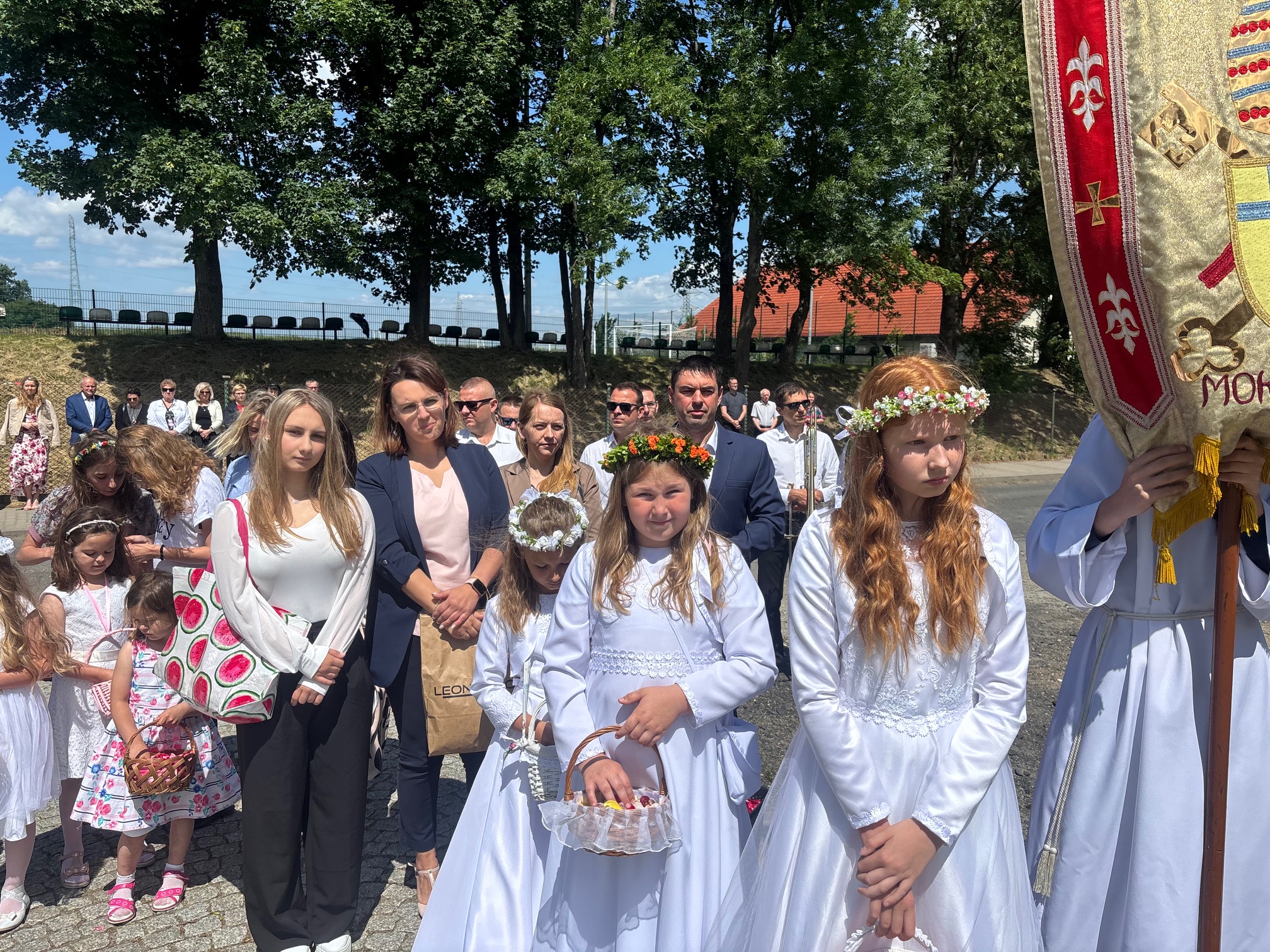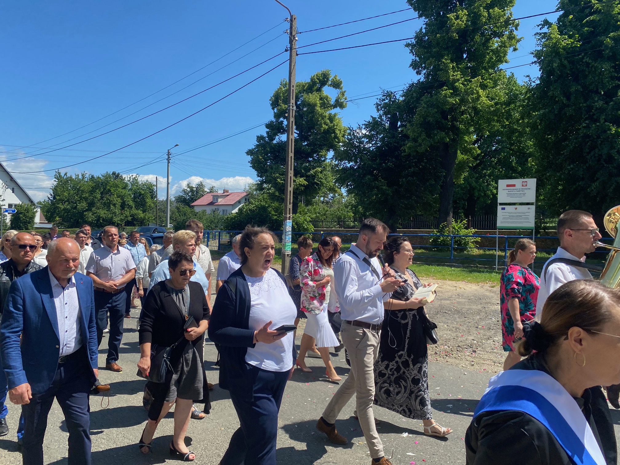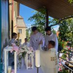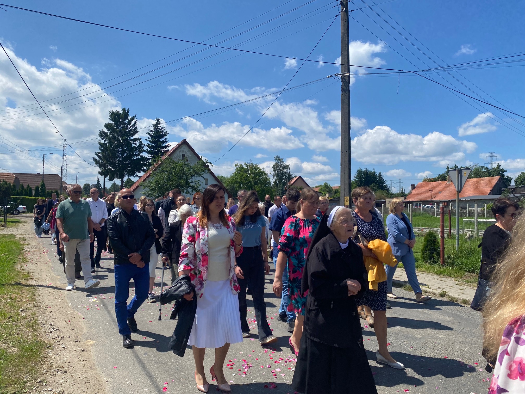 Aby świętować Uroczystość Najświętszego Ciała i Krwi Chrystusa, czyli wyruszyć w procesji eucharystycznej, prosząc Jezusa, by pobłogosławił parafię, potrzeba pracy. Pracę, którą rozpoczęli przedstawiciele grup parafialnych w środę po południu należy widzieć nie tylko jako zadanie „by było ładnie, bezpiecznie”, ale jako świadectwo. Pani Agnieszka, pytana w środę na przygotowaniu ołtarzy dlaczego przyszła, odpowiedziała bez namysłu: „Tak mi serce podpowiada, by tu być i swoją pracą wyrazić moją miłość do Jezusa”. W czwartek o godzinie 10.30 rozpoczęła się Msza Święta. W kazaniu ks. Marcin zachęcił do miłości do Eucharystii, przejawiającej się w chodzeniu na Mszę św. i na adorację w ciągu dnia. Kapłan prosił: chodźmy do kościoła jak najczęściej, mimo pracy, aby przyjąć Jezusa w Komunii św. Bo On czeka na nas każdego dnia. Niech nie czeka nadaremnie! Po Mszy św. z kościoła wyruszyła procesja, wraz z dziećmi obchodzącymi w tym uroczystym dniu swoją Pierwszą Rocznicę Komunii Świętej oraz ich rodzicami. W tym roku procesja do czterech ołtarzy wyszła poza mury kościoła, w stronę Dolnego Mokrzeszowa. Dziewczynki sypiące kwiaty, ministranci, lektorzy – piękne świadectwo miłości do Jezusa. Furorę na procesji zrobiła mała Julka, która z wielką uwagą sypała kwiaty. Ona tak wyznała wiarę. Uczestnicy procesji w skupieniu zatrzymywali się przy kolejnych ołtarzach, przy których następowało odczytanie fragmentów Ewangelii. Przy pierwszym z nich odczytywany jest fragment Ewangelii wg św. Mateusza o ostatniej wieczerzy, a więc nawiązujący do ustanowienia przez Jezusa Eucharystii. Drugi ołtarz jest związany z fragmentem Ewangelii wg św. Marka, dotyczącym rozmnożenia chleba. Przy trzecim ołtarzu odczytywany jest fragment Ewangelii wg św. Łukasza, który opowiada o zaproszonych na ucztę. Zaś ostatni, czwarty ołtarz związany jest z Ewangelią wg św. Jana i sakramentem zjednoczenia. Przy nim kapłan zachęcał do „zakochania się w Eucharystii” i na koniec podziękował za pomoc w przygotowaniu procesji.