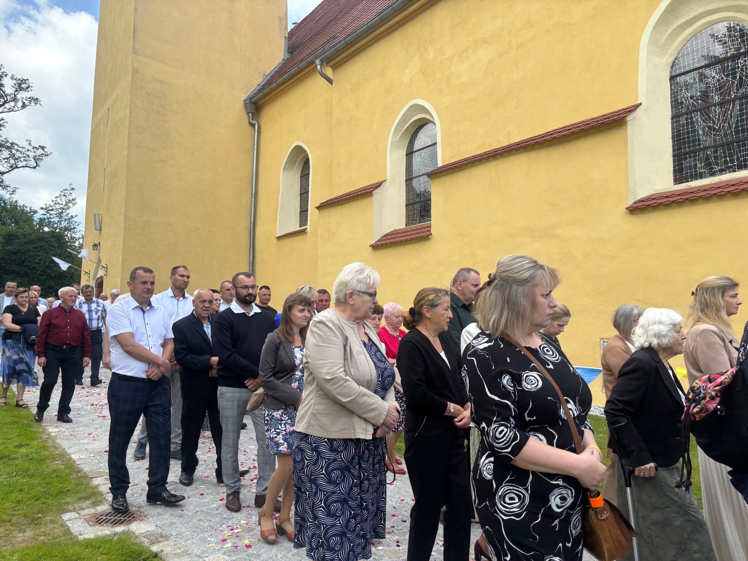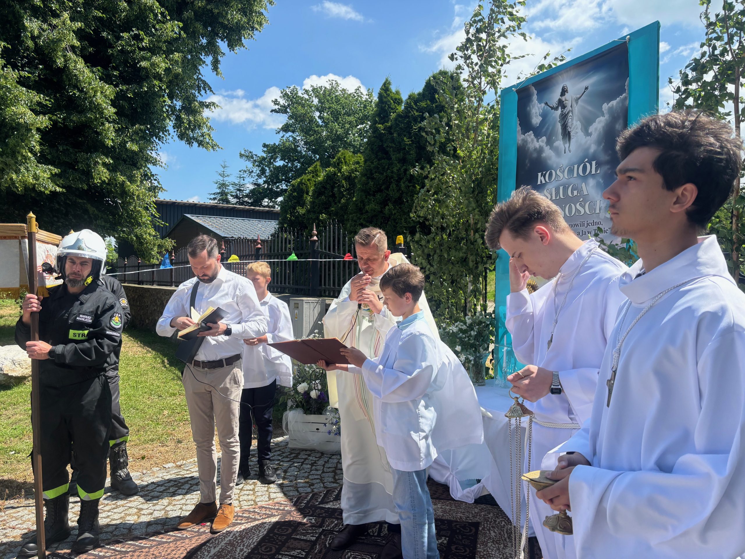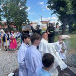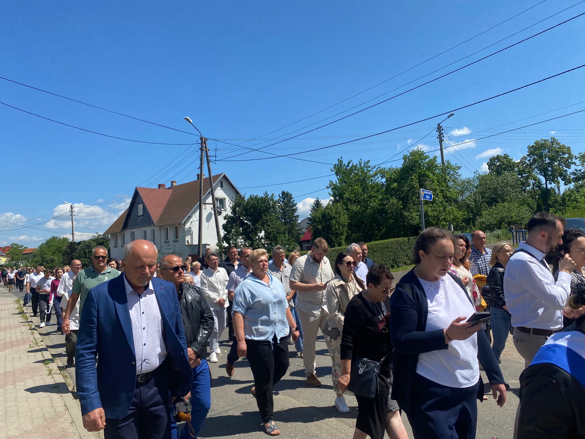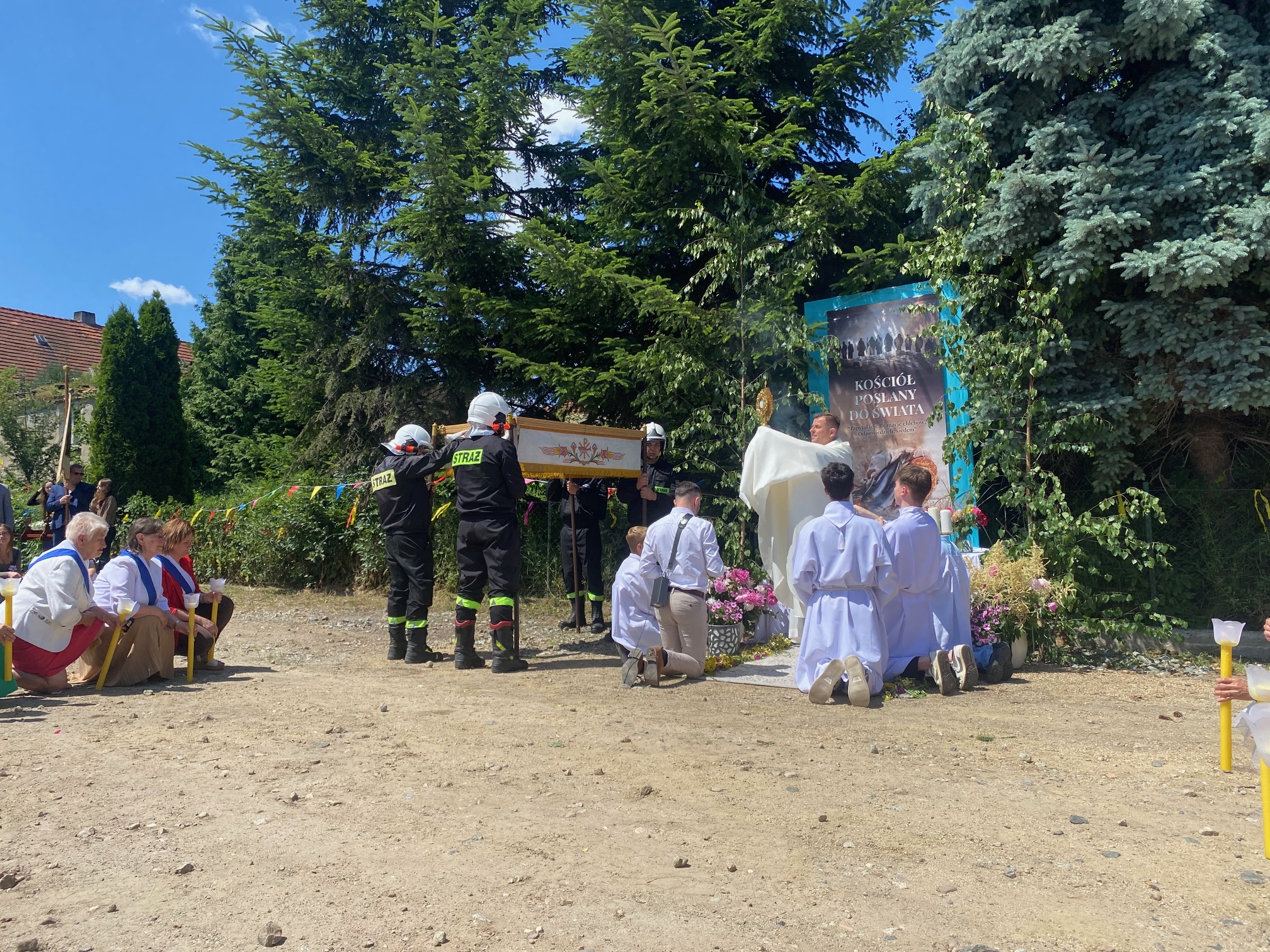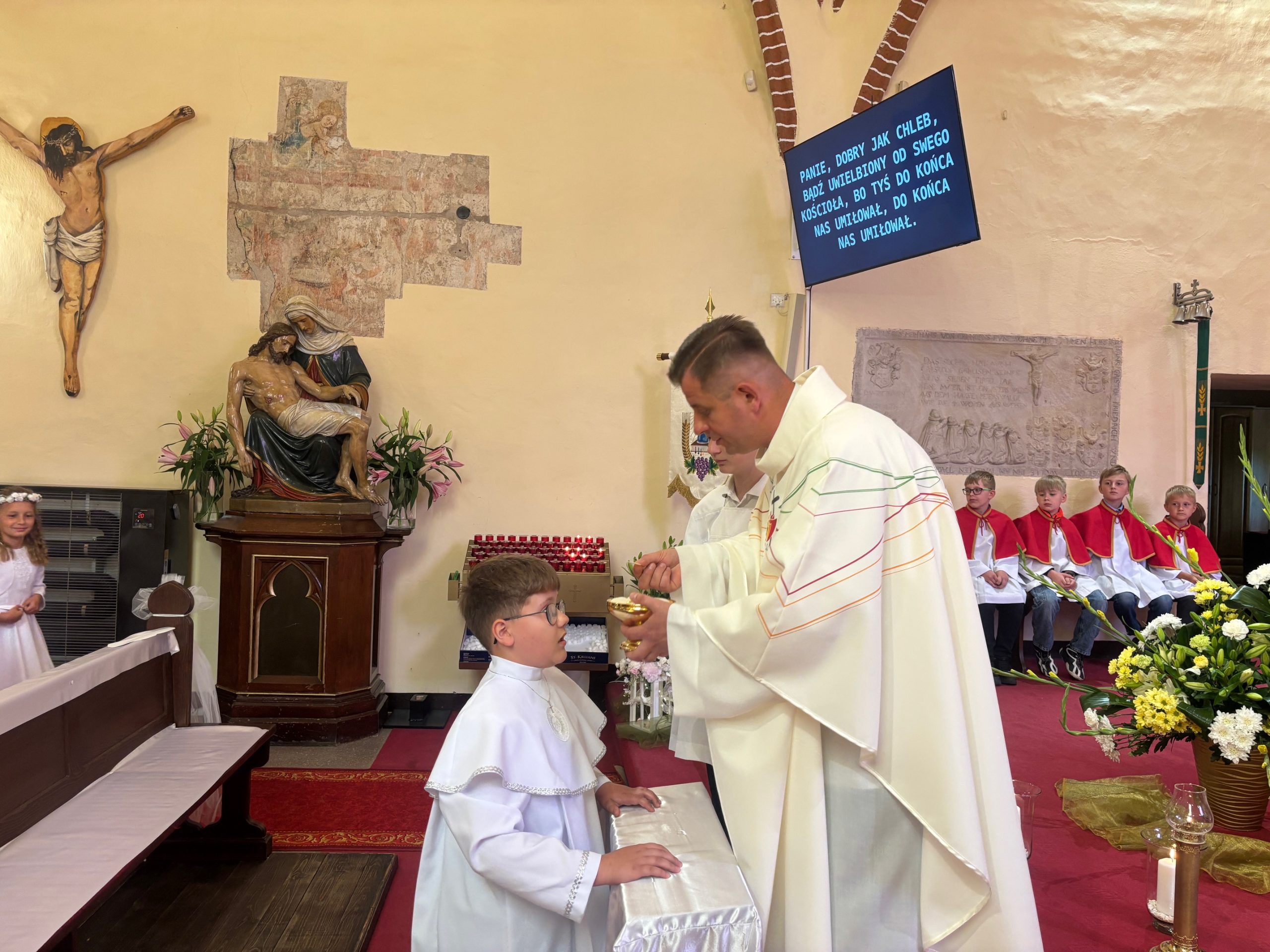Aby świętować Uroczystość Najświętszego Ciała i Krwi Chrystusa, czyli wyruszyć w procesji eucharystycznej, prosząc Jezusa, by pobłogosławił parafię, potrzeba pracy. Pracę, którą rozpoczęli przedstawiciele grup parafialnych w środę po południu należy widzieć nie tylko jako zadanie „by było ładnie, bezpiecznie”, ale jako świadectwo. Pani Agnieszka, pytana w środę na przygotowaniu ołtarzy dlaczego przyszła, odpowiedziała bez namysłu: „Tak mi serce podpowiada, by tu być i swoją pracą wyrazić moją miłość do Jezusa”. W czwartek o godzinie 10.30 rozpoczęła się Msza Święta. W kazaniu ks. Marcin zachęcił do miłości do Eucharystii, przejawiającej się w chodzeniu na Mszę św. i na adorację w ciągu dnia. Kapłan prosił: chodźmy do kościoła jak najczęściej, mimo pracy, aby przyjąć Jezusa w Komunii św. Bo On czeka na nas każdego dnia. Niech nie czeka nadaremnie! Po Mszy św. z kościoła wyruszyła procesja, wraz z dziećmi obchodzącymi w tym uroczystym dniu swoją Pierwszą Rocznicę Komunii Świętej oraz ich rodzicami. W tym roku procesja do czterech ołtarzy wyszła poza mury kościoła, w stronę Dolnego Mokrzeszowa. Dziewczynki sypiące kwiaty, ministranci, lektorzy – piękne świadectwo miłości do Jezusa. Furorę na procesji zrobiła mała Julka, która z wielką uwagą sypała kwiaty. Ona tak wyznała wiarę. Uczestnicy procesji w skupieniu zatrzymywali się przy kolejnych ołtarzach, przy których następowało odczytanie fragmentów Ewangelii. Przy pierwszym z nich odczytywany jest fragment Ewangelii wg św. Mateusza o ostatniej wieczerzy, a więc nawiązujący do ustanowienia przez Jezusa Eucharystii. Drugi ołtarz jest związany z fragmentem Ewangelii wg św. Marka, dotyczącym rozmnożenia chleba. Przy trzecim ołtarzu odczytywany jest fragment Ewangelii wg św. Łukasza, który opowiada o zaproszonych na ucztę. Zaś ostatni, czwarty ołtarz związany jest z Ewangelią wg św. Jana i sakramentem zjednoczenia. Przy nim kapłan zachęcał do „zakochania się w Eucharystii” i na koniec podziękował za pomoc w przygotowaniu procesji.