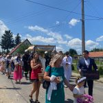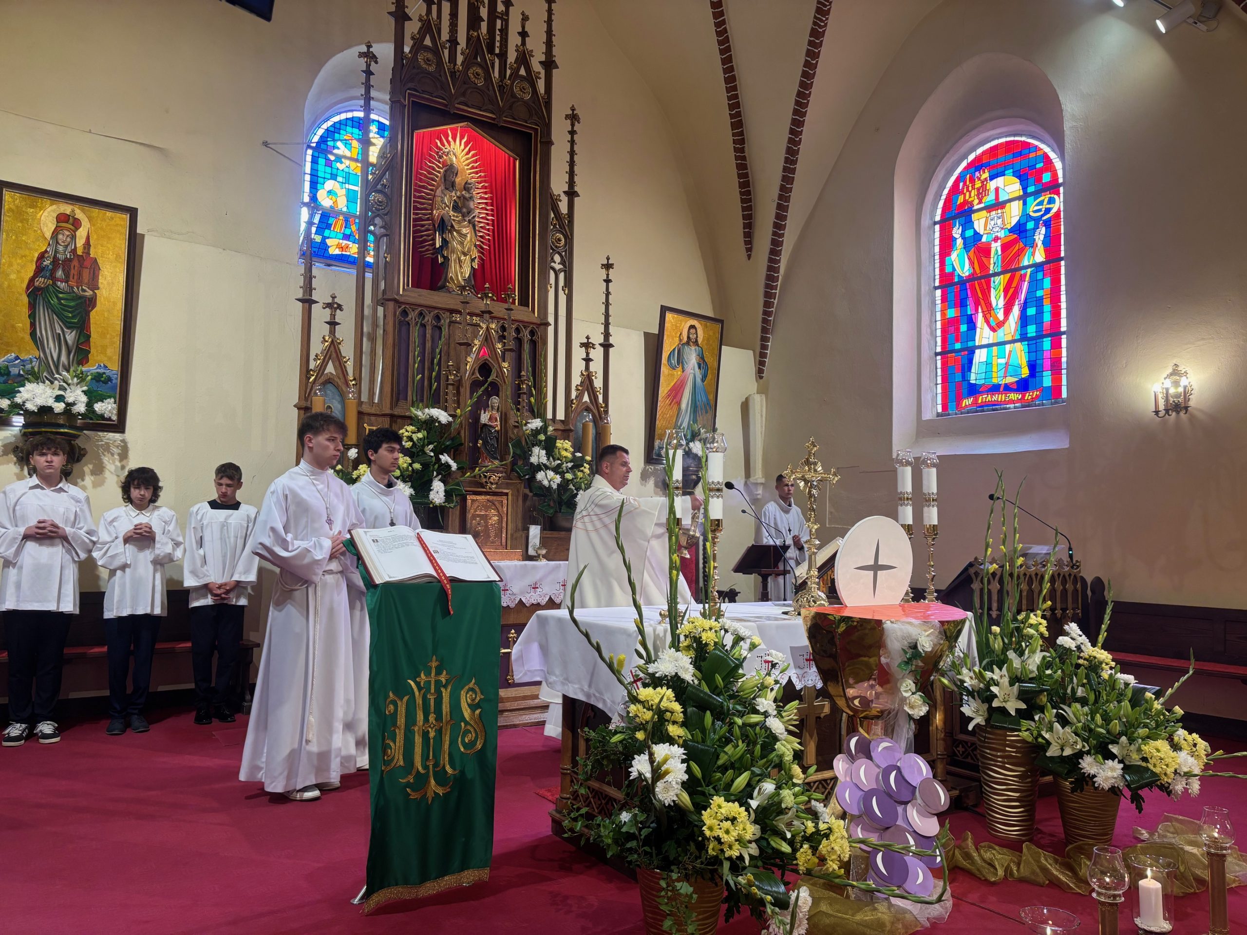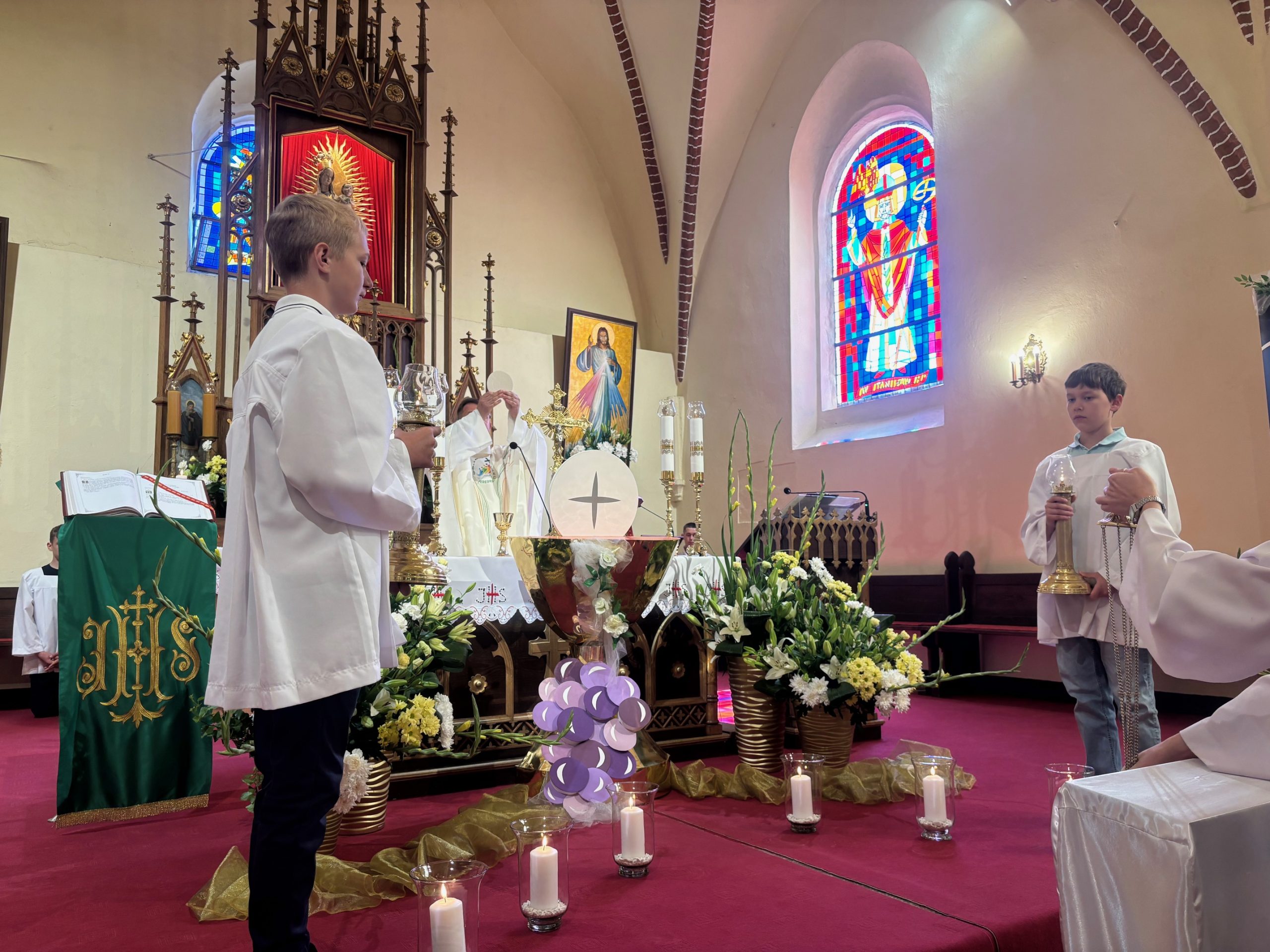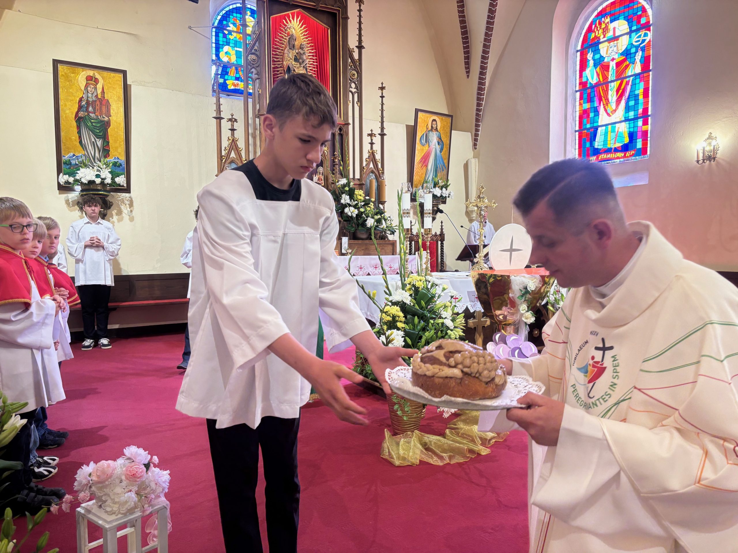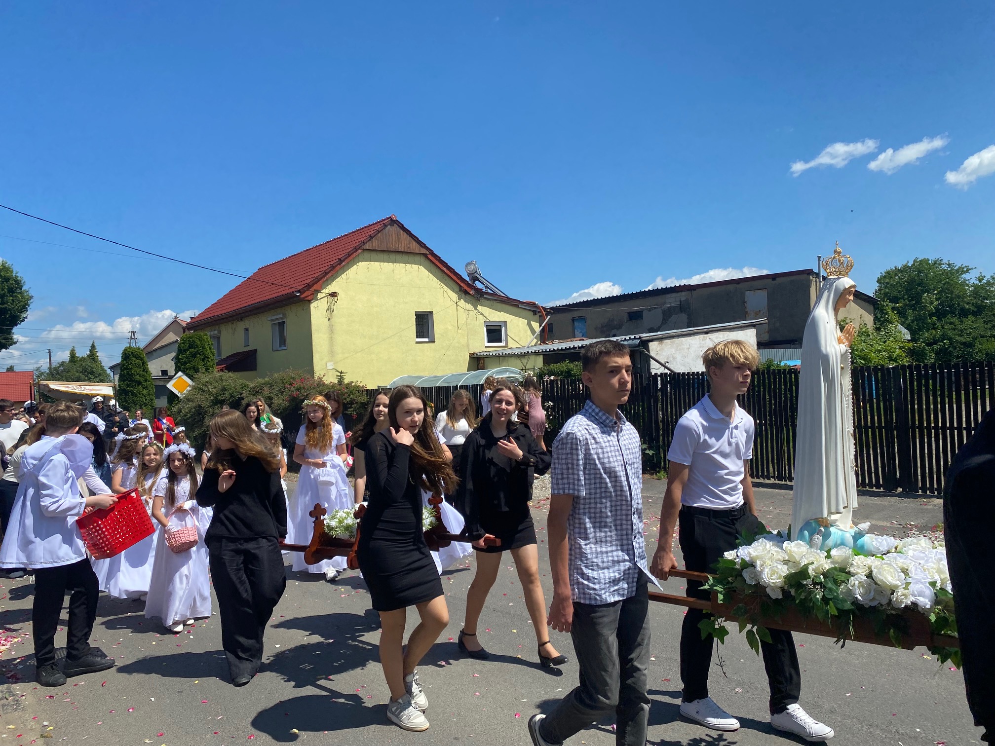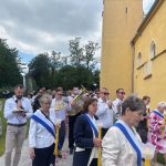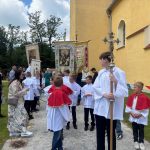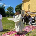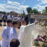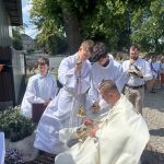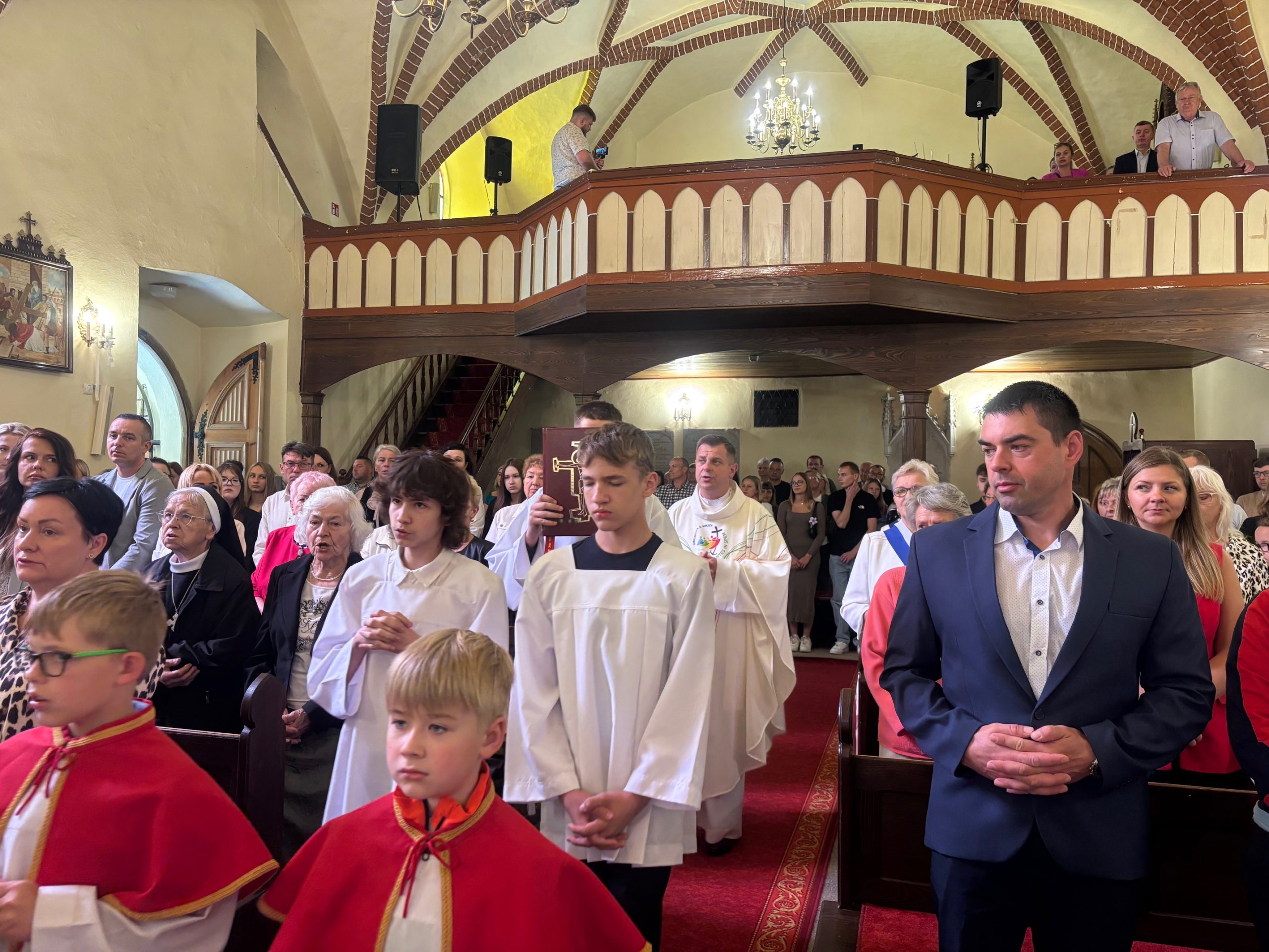 Aby świętować Uroczystość Najświętszego Ciała i Krwi Chrystusa, czyli wyruszyć w procesji eucharystycznej, prosząc Jezusa, by pobłogosławił parafię, potrzeba pracy. Pracę, którą rozpoczęli przedstawiciele grup parafialnych w środę po południu należy widzieć nie tylko jako zadanie „by było ładnie, bezpiecznie”, ale jako świadectwo. Pani Agnieszka, pytana w środę na przygotowaniu ołtarzy dlaczego przyszła, odpowiedziała bez namysłu: „Tak mi serce podpowiada, by tu być i swoją pracą wyrazić moją miłość do Jezusa”. W czwartek o godzinie 10.30 rozpoczęła się Msza Święta. W kazaniu ks. Marcin zachęcił do miłości do Eucharystii, przejawiającej się w chodzeniu na Mszę św. i na adorację w ciągu dnia. Kapłan prosił: chodźmy do kościoła jak najczęściej, mimo pracy, aby przyjąć Jezusa w Komunii św. Bo On czeka na nas każdego dnia. Niech nie czeka nadaremnie! Po Mszy św. z kościoła wyruszyła procesja, wraz z dziećmi obchodzącymi w tym uroczystym dniu swoją Pierwszą Rocznicę Komunii Świętej oraz ich rodzicami. W tym roku procesja do czterech ołtarzy wyszła poza mury kościoła, w stronę Dolnego Mokrzeszowa. Dziewczynki sypiące kwiaty, ministranci, lektorzy – piękne świadectwo miłości do Jezusa. Furorę na procesji zrobiła mała Julka, która z wielką uwagą sypała kwiaty. Ona tak wyznała wiarę. Uczestnicy procesji w skupieniu zatrzymywali się przy kolejnych ołtarzach, przy których następowało odczytanie fragmentów Ewangelii. Przy pierwszym z nich odczytywany jest fragment Ewangelii wg św. Mateusza o ostatniej wieczerzy, a więc nawiązujący do ustanowienia przez Jezusa Eucharystii. Drugi ołtarz jest związany z fragmentem Ewangelii wg św. Marka, dotyczącym rozmnożenia chleba. Przy trzecim ołtarzu odczytywany jest fragment Ewangelii wg św. Łukasza, który opowiada o zaproszonych na ucztę. Zaś ostatni, czwarty ołtarz związany jest z Ewangelią wg św. Jana i sakramentem zjednoczenia. Przy nim kapłan zachęcał do „zakochania się w Eucharystii” i na koniec podziękował za pomoc w przygotowaniu procesji.