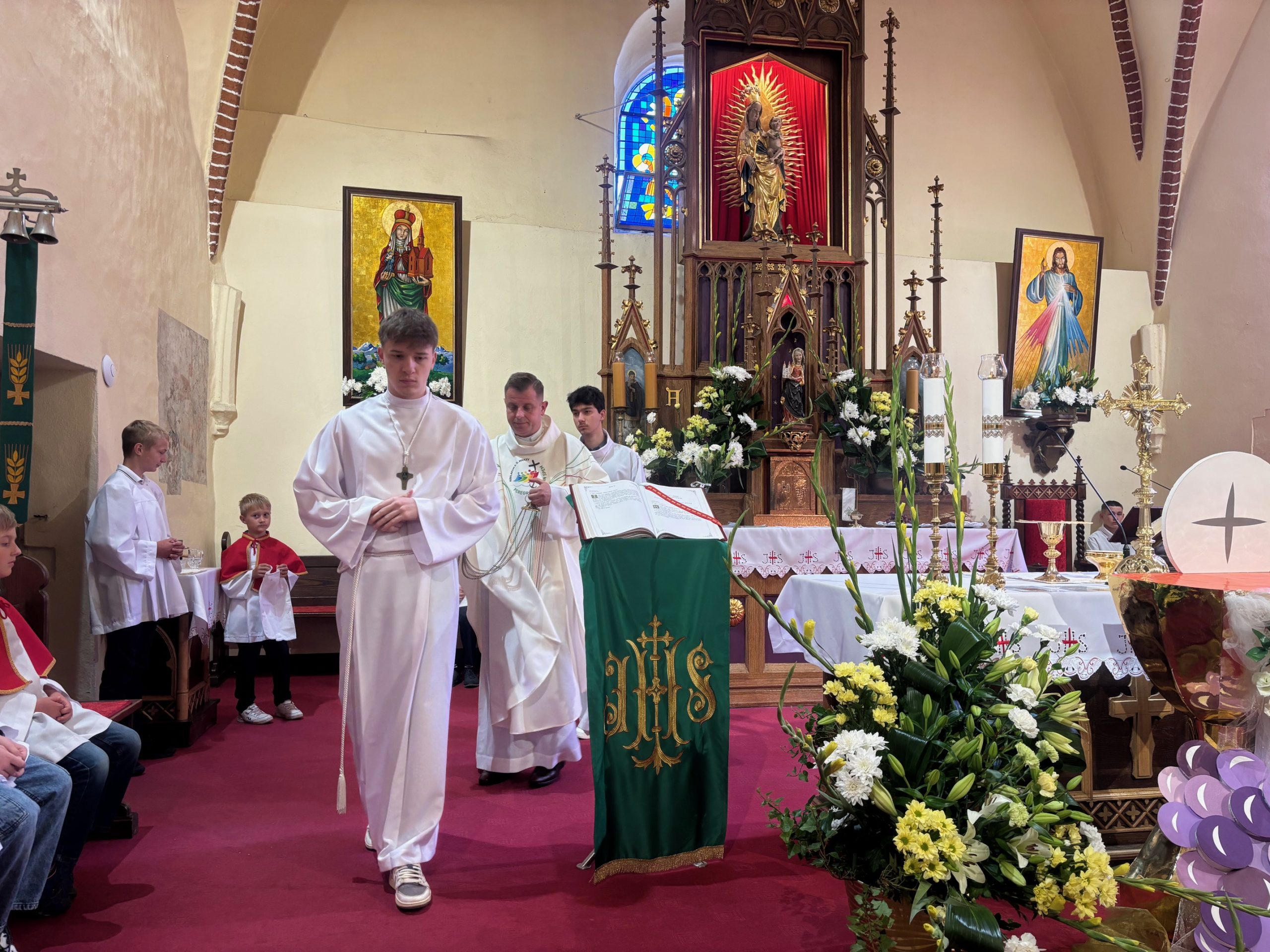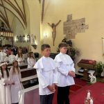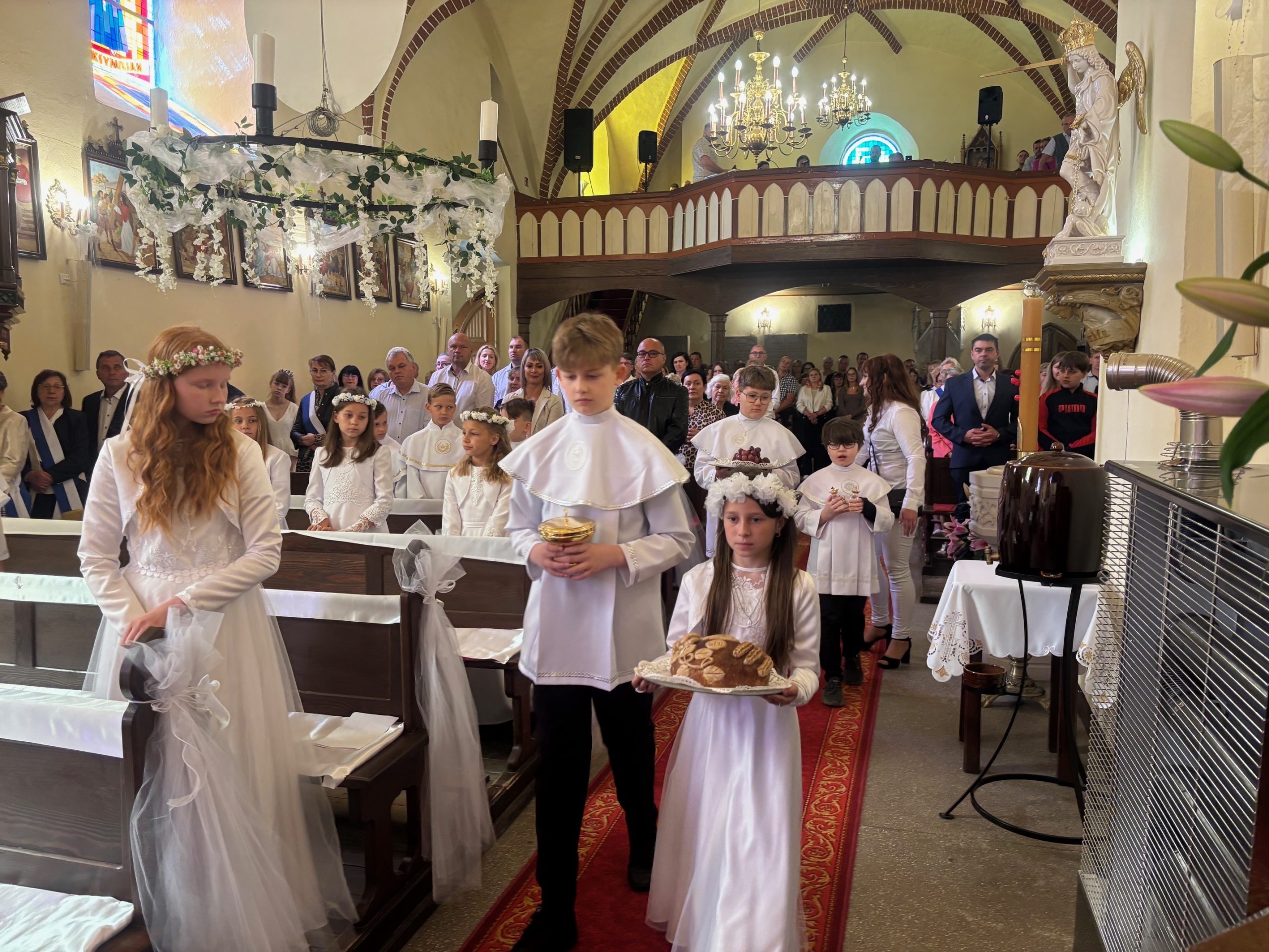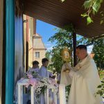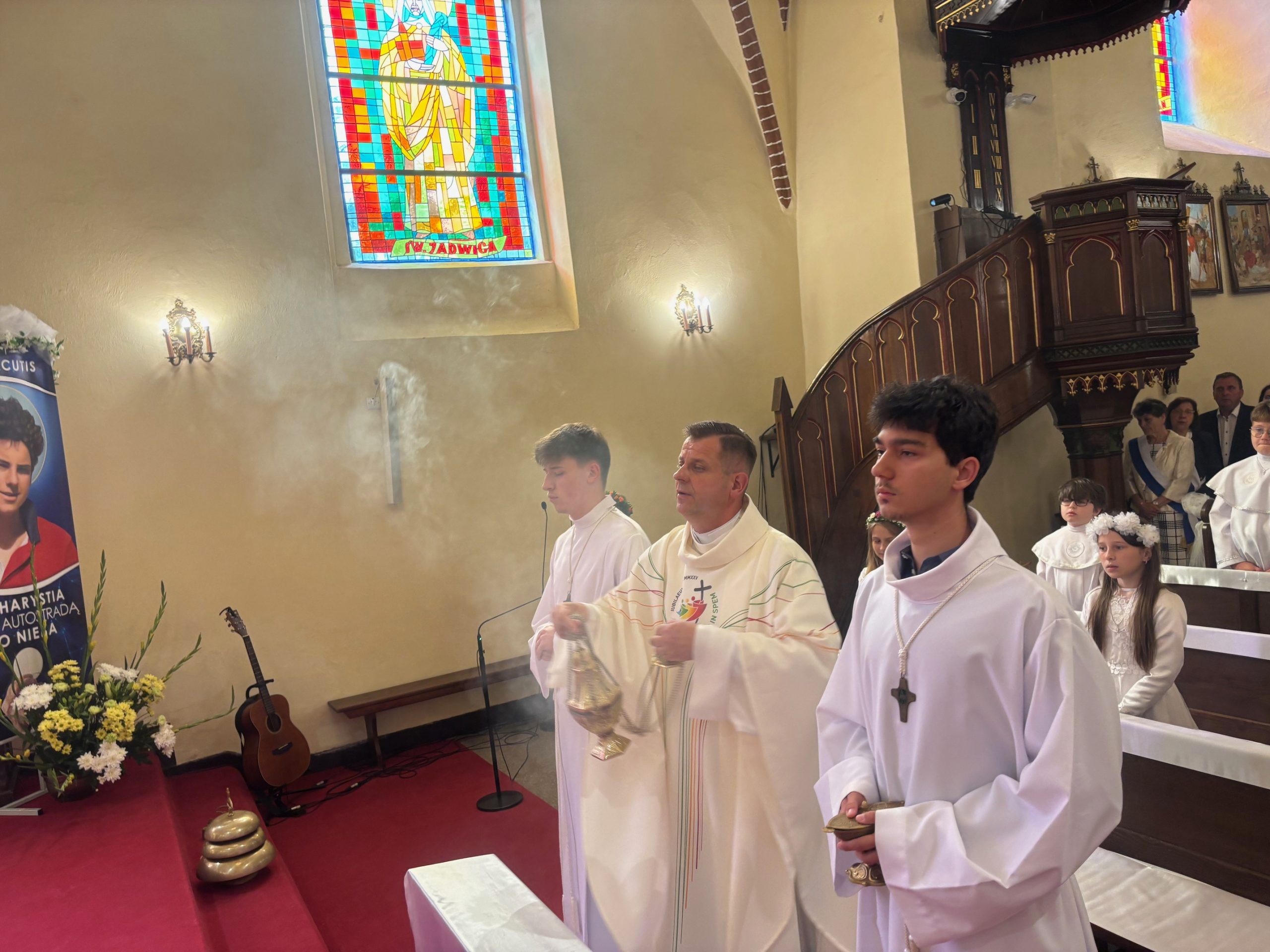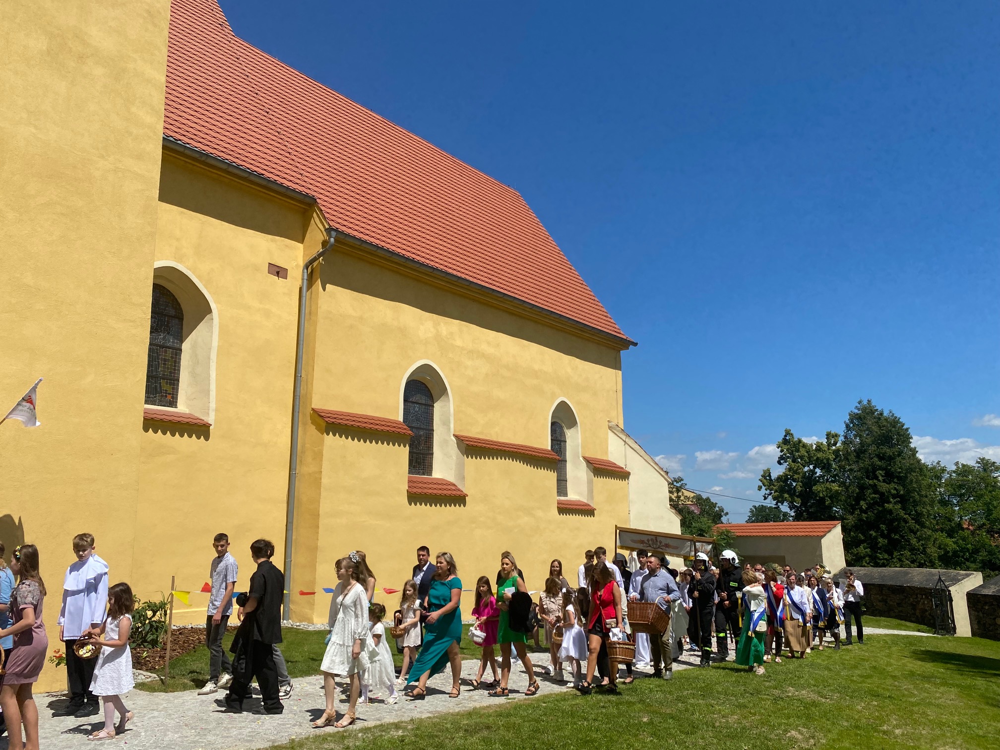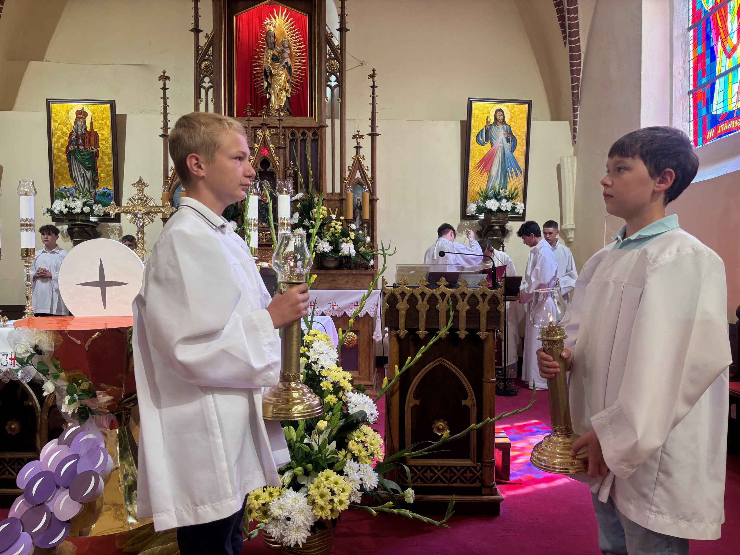Aby świętować Uroczystość Najświętszego Ciała i Krwi Chrystusa, czyli wyruszyć w procesji eucharystycznej, prosząc Jezusa, by pobłogosławił parafię, potrzeba pracy. Pracę, którą rozpoczęli przedstawiciele grup parafialnych w środę po południu należy widzieć nie tylko jako zadanie „by było ładnie, bezpiecznie”, ale jako świadectwo. Pani Agnieszka, pytana w środę na przygotowaniu ołtarzy dlaczego przyszła, odpowiedziała bez namysłu: „Tak mi serce podpowiada, by tu być i swoją pracą wyrazić moją miłość do Jezusa”. W czwartek o godzinie 10.30 rozpoczęła się Msza Święta. W kazaniu ks. Marcin zachęcił do miłości do Eucharystii, przejawiającej się w chodzeniu na Mszę św. i na adorację w ciągu dnia. Kapłan prosił: chodźmy do kościoła jak najczęściej, mimo pracy, aby przyjąć Jezusa w Komunii św. Bo On czeka na nas każdego dnia. Niech nie czeka nadaremnie! Po Mszy św. z kościoła wyruszyła procesja, wraz z dziećmi obchodzącymi w tym uroczystym dniu swoją Pierwszą Rocznicę Komunii Świętej oraz ich rodzicami. W tym roku procesja do czterech ołtarzy wyszła poza mury kościoła, w stronę Dolnego Mokrzeszowa. Dziewczynki sypiące kwiaty, ministranci, lektorzy – piękne świadectwo miłości do Jezusa. Furorę na procesji zrobiła mała Julka, która z wielką uwagą sypała kwiaty. Ona tak wyznała wiarę. Uczestnicy procesji w skupieniu zatrzymywali się przy kolejnych ołtarzach, przy których następowało odczytanie fragmentów Ewangelii. Przy pierwszym z nich odczytywany jest fragment Ewangelii wg św. Mateusza o ostatniej wieczerzy, a więc nawiązujący do ustanowienia przez Jezusa Eucharystii. Drugi ołtarz jest związany z fragmentem Ewangelii wg św. Marka, dotyczącym rozmnożenia chleba. Przy trzecim ołtarzu odczytywany jest fragment Ewangelii wg św. Łukasza, który opowiada o zaproszonych na ucztę. Zaś ostatni, czwarty ołtarz związany jest z Ewangelią wg św. Jana i sakramentem zjednoczenia. Przy nim kapłan zachęcał do „zakochania się w Eucharystii” i na koniec podziękował za pomoc w przygotowaniu procesji.