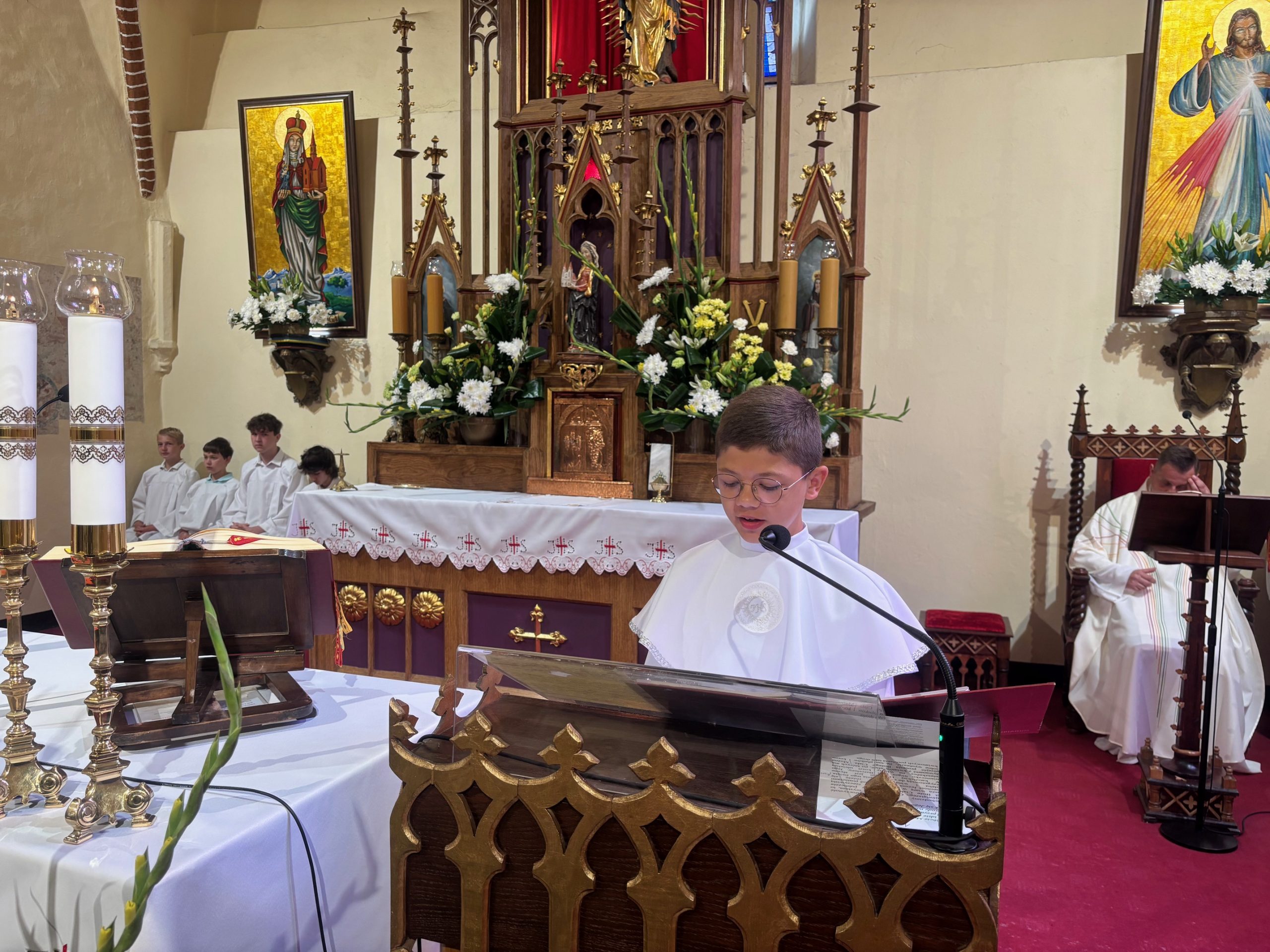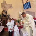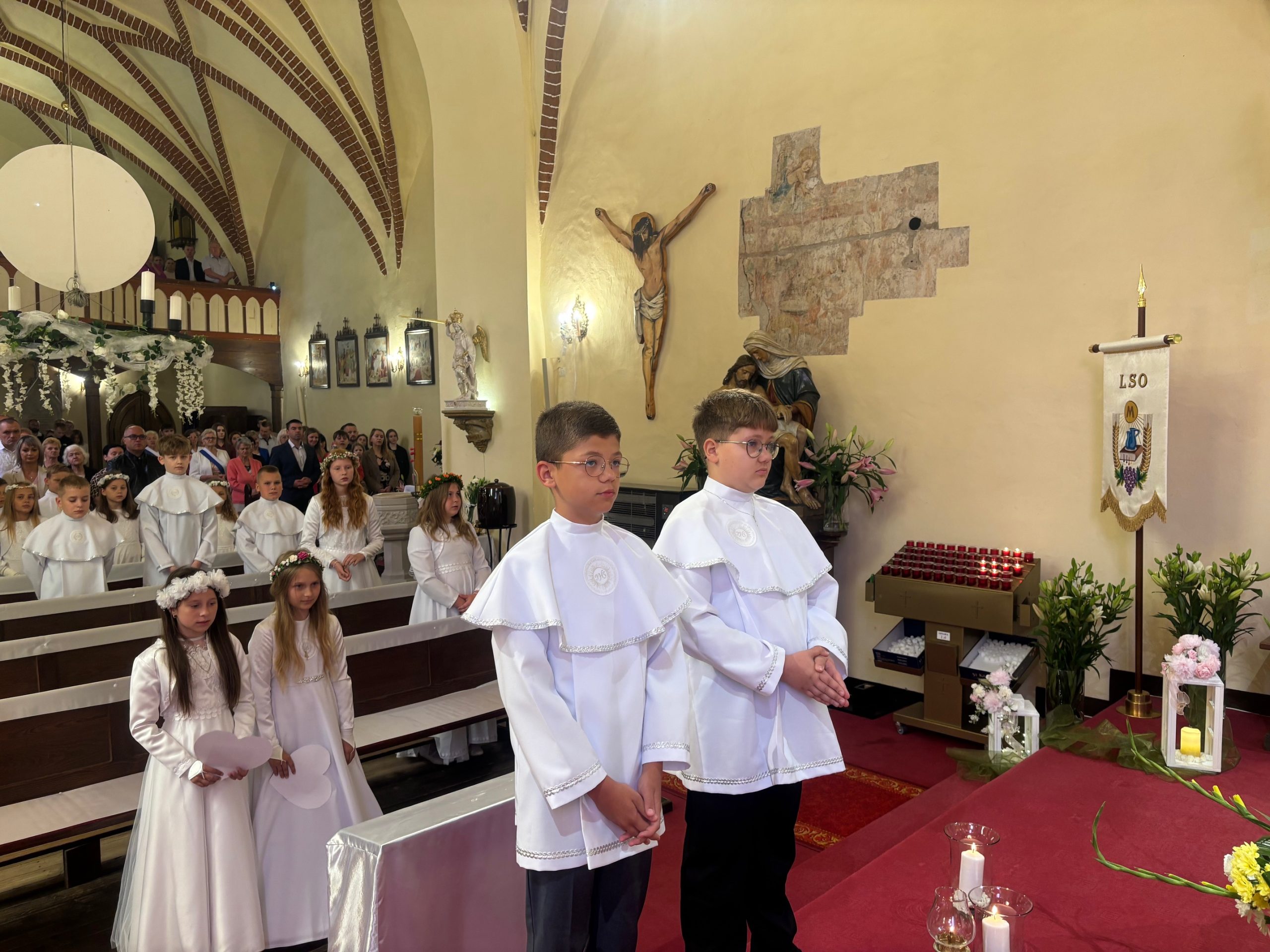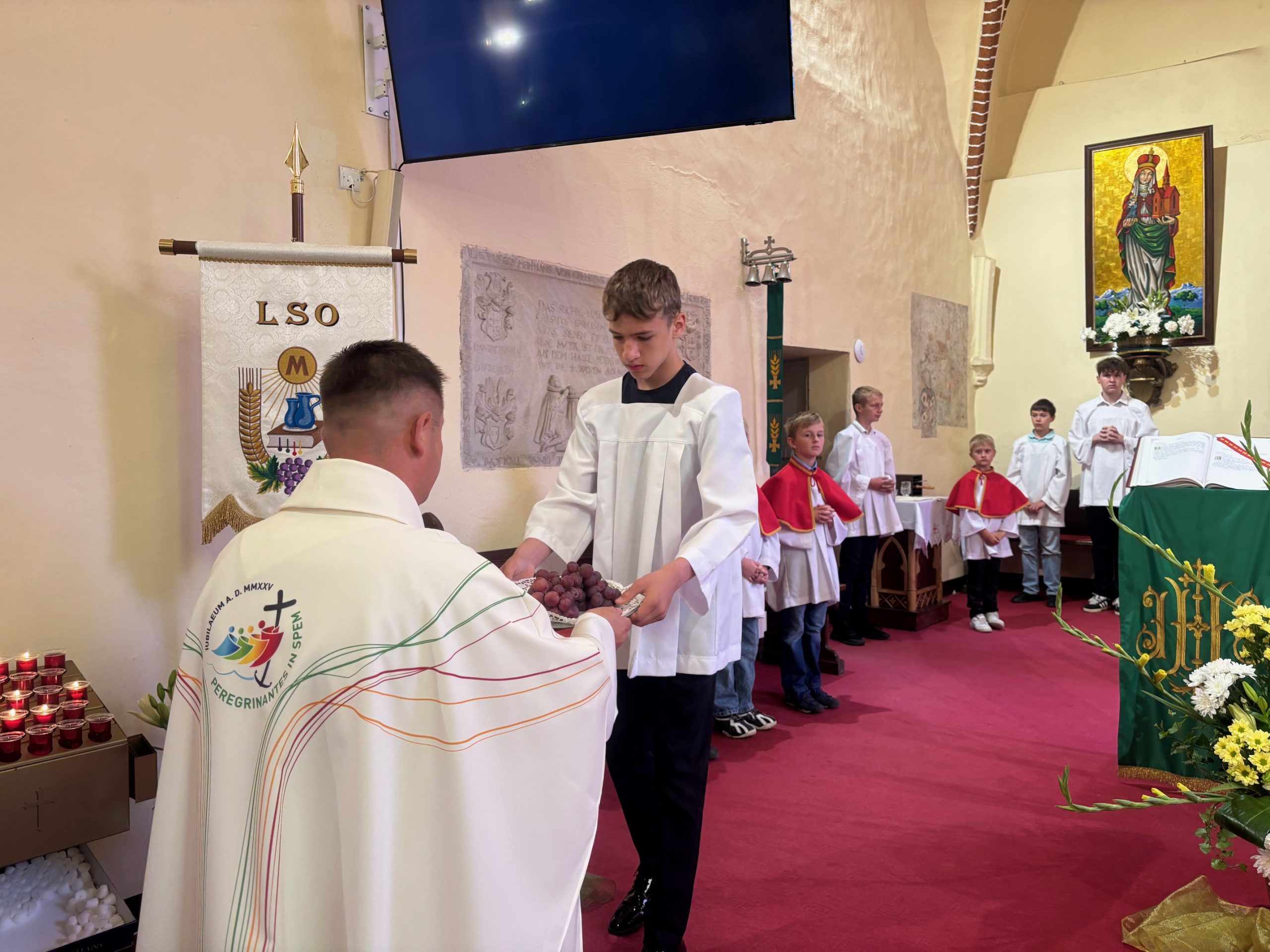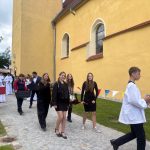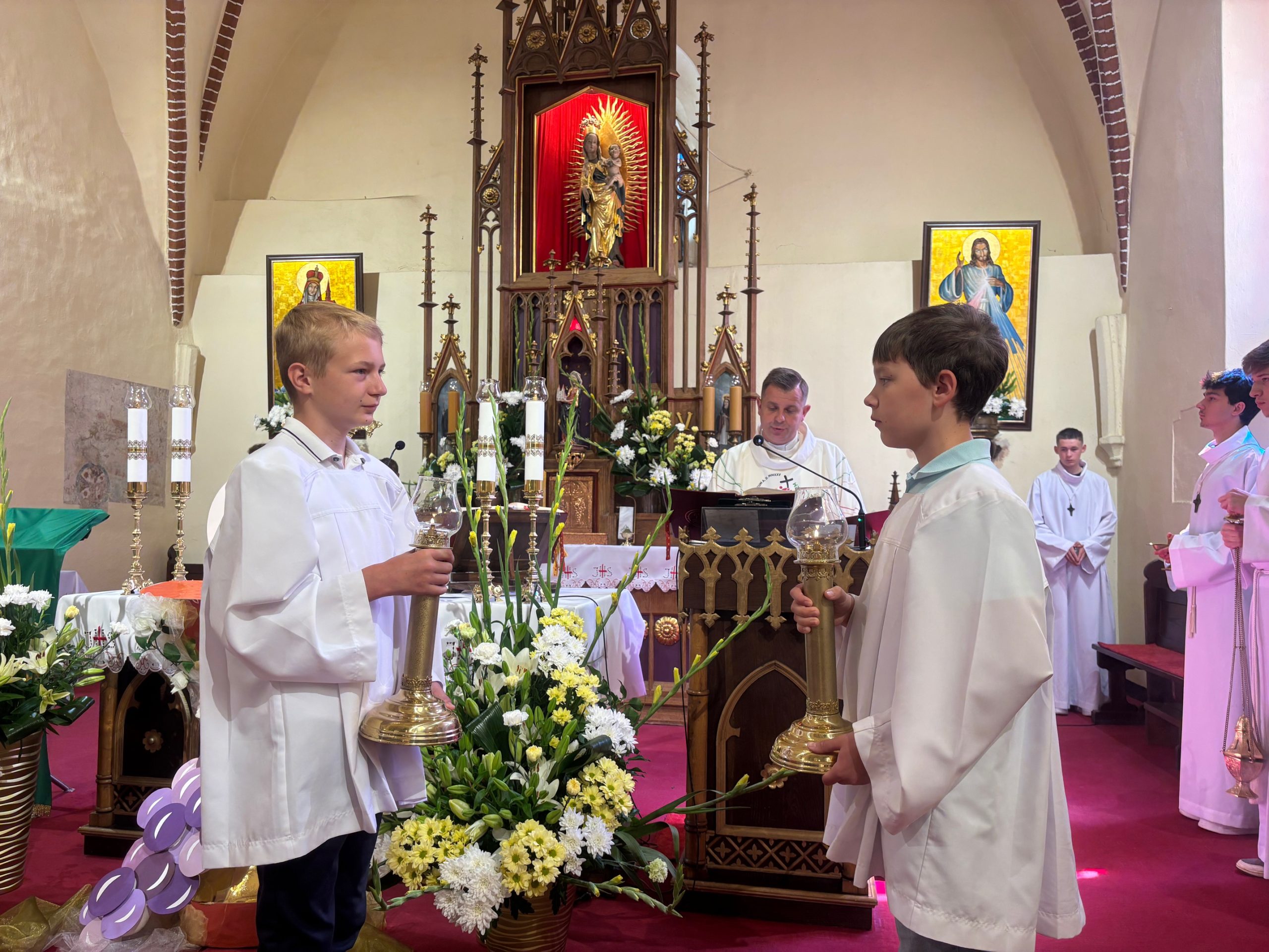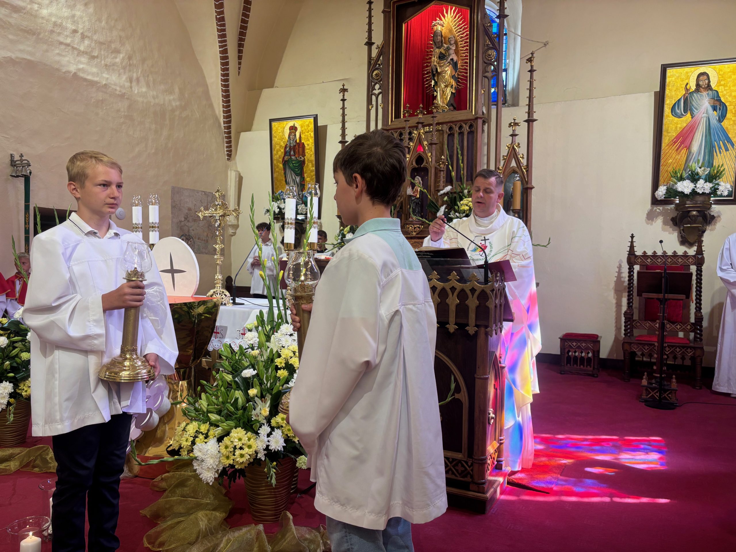 Aby świętować Uroczystość Najświętszego Ciała i Krwi Chrystusa, czyli wyruszyć w procesji eucharystycznej, prosząc Jezusa, by pobłogosławił parafię, potrzeba pracy. Pracę, którą rozpoczęli przedstawiciele grup parafialnych w środę po południu należy widzieć nie tylko jako zadanie „by było ładnie, bezpiecznie”, ale jako świadectwo. Pani Agnieszka, pytana w środę na przygotowaniu ołtarzy dlaczego przyszła, odpowiedziała bez namysłu: „Tak mi serce podpowiada, by tu być i swoją pracą wyrazić moją miłość do Jezusa”. W czwartek o godzinie 10.30 rozpoczęła się Msza Święta. W kazaniu ks. Marcin zachęcił do miłości do Eucharystii, przejawiającej się w chodzeniu na Mszę św. i na adorację w ciągu dnia. Kapłan prosił: chodźmy do kościoła jak najczęściej, mimo pracy, aby przyjąć Jezusa w Komunii św. Bo On czeka na nas każdego dnia. Niech nie czeka nadaremnie! Po Mszy św. z kościoła wyruszyła procesja, wraz z dziećmi obchodzącymi w tym uroczystym dniu swoją Pierwszą Rocznicę Komunii Świętej oraz ich rodzicami. W tym roku procesja do czterech ołtarzy wyszła poza mury kościoła, w stronę Dolnego Mokrzeszowa. Dziewczynki sypiące kwiaty, ministranci, lektorzy – piękne świadectwo miłości do Jezusa. Furorę na procesji zrobiła mała Julka, która z wielką uwagą sypała kwiaty. Ona tak wyznała wiarę. Uczestnicy procesji w skupieniu zatrzymywali się przy kolejnych ołtarzach, przy których następowało odczytanie fragmentów Ewangelii. Przy pierwszym z nich odczytywany jest fragment Ewangelii wg św. Mateusza o ostatniej wieczerzy, a więc nawiązujący do ustanowienia przez Jezusa Eucharystii. Drugi ołtarz jest związany z fragmentem Ewangelii wg św. Marka, dotyczącym rozmnożenia chleba. Przy trzecim ołtarzu odczytywany jest fragment Ewangelii wg św. Łukasza, który opowiada o zaproszonych na ucztę. Zaś ostatni, czwarty ołtarz związany jest z Ewangelią wg św. Jana i sakramentem zjednoczenia. Przy nim kapłan zachęcał do „zakochania się w Eucharystii” i na koniec podziękował za pomoc w przygotowaniu procesji.