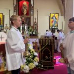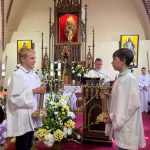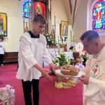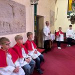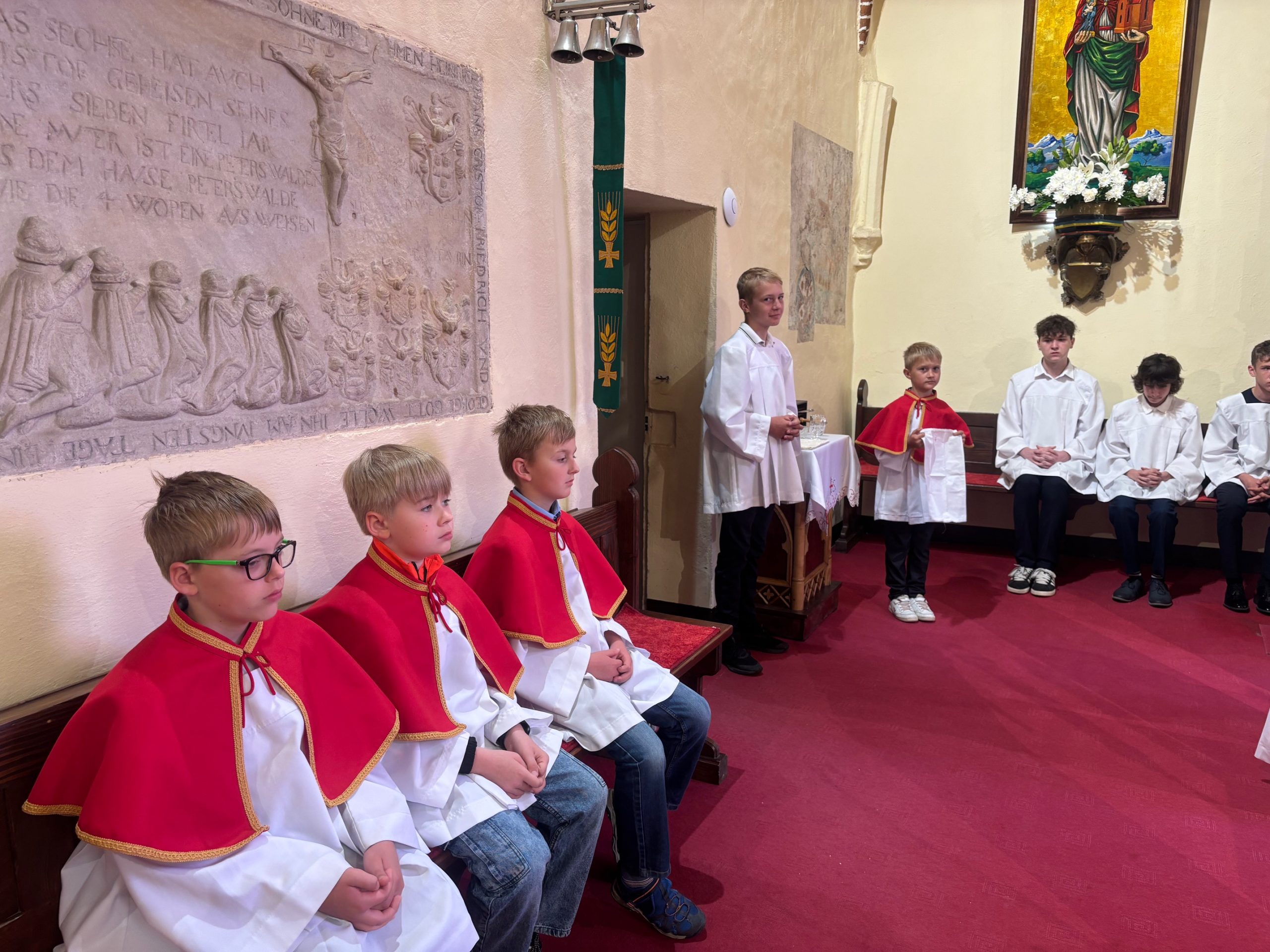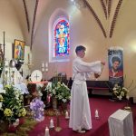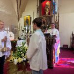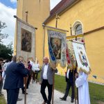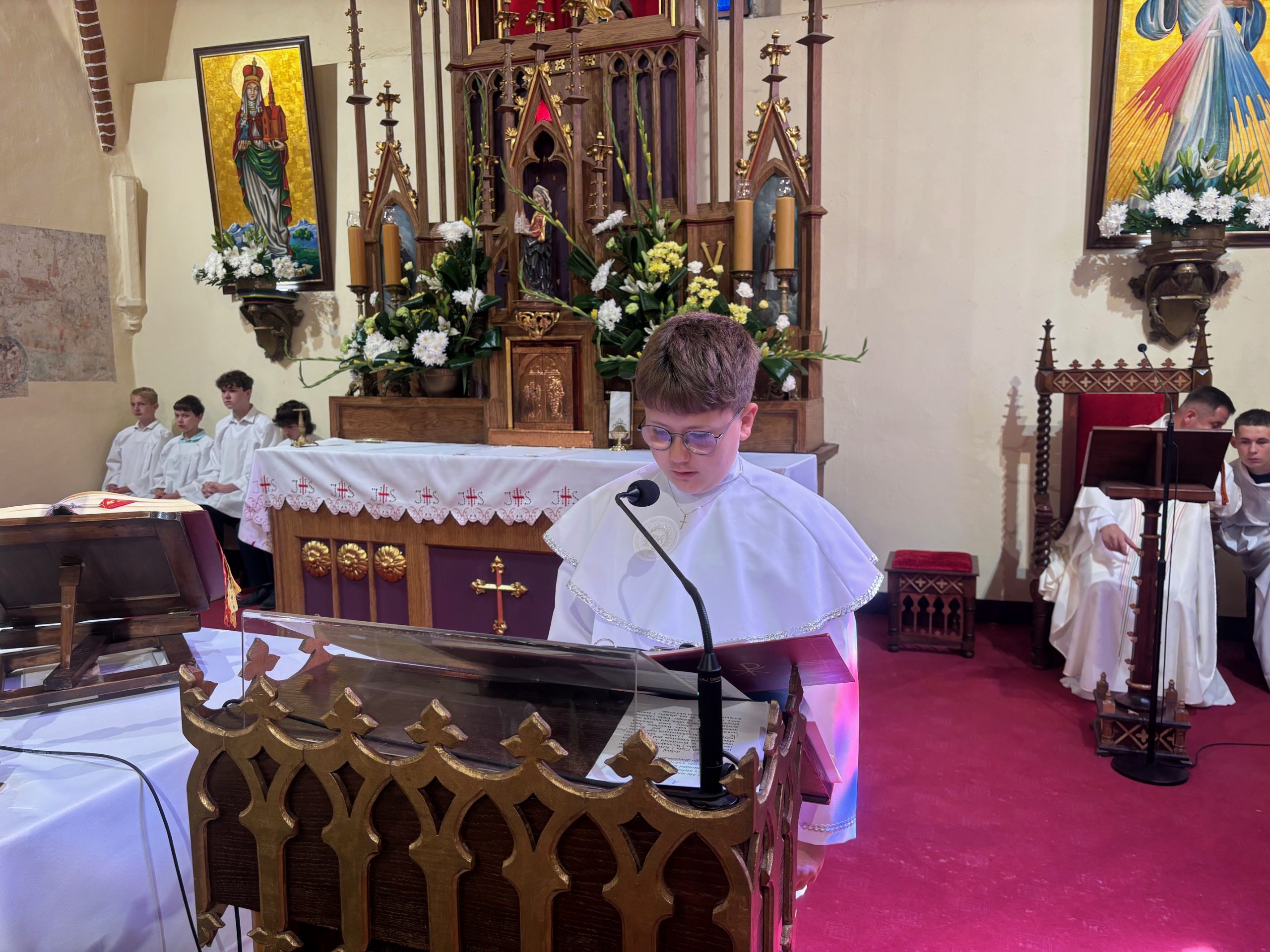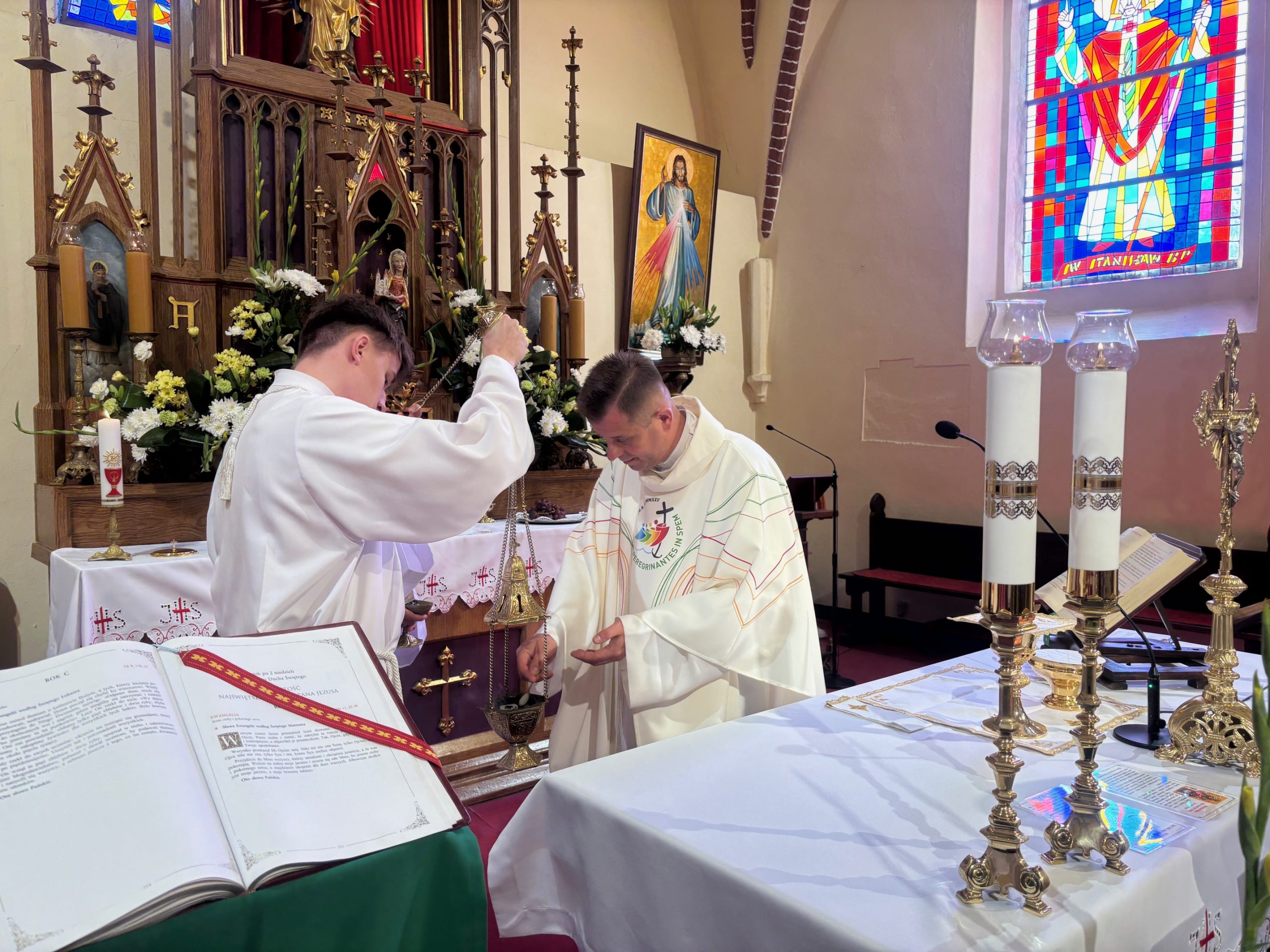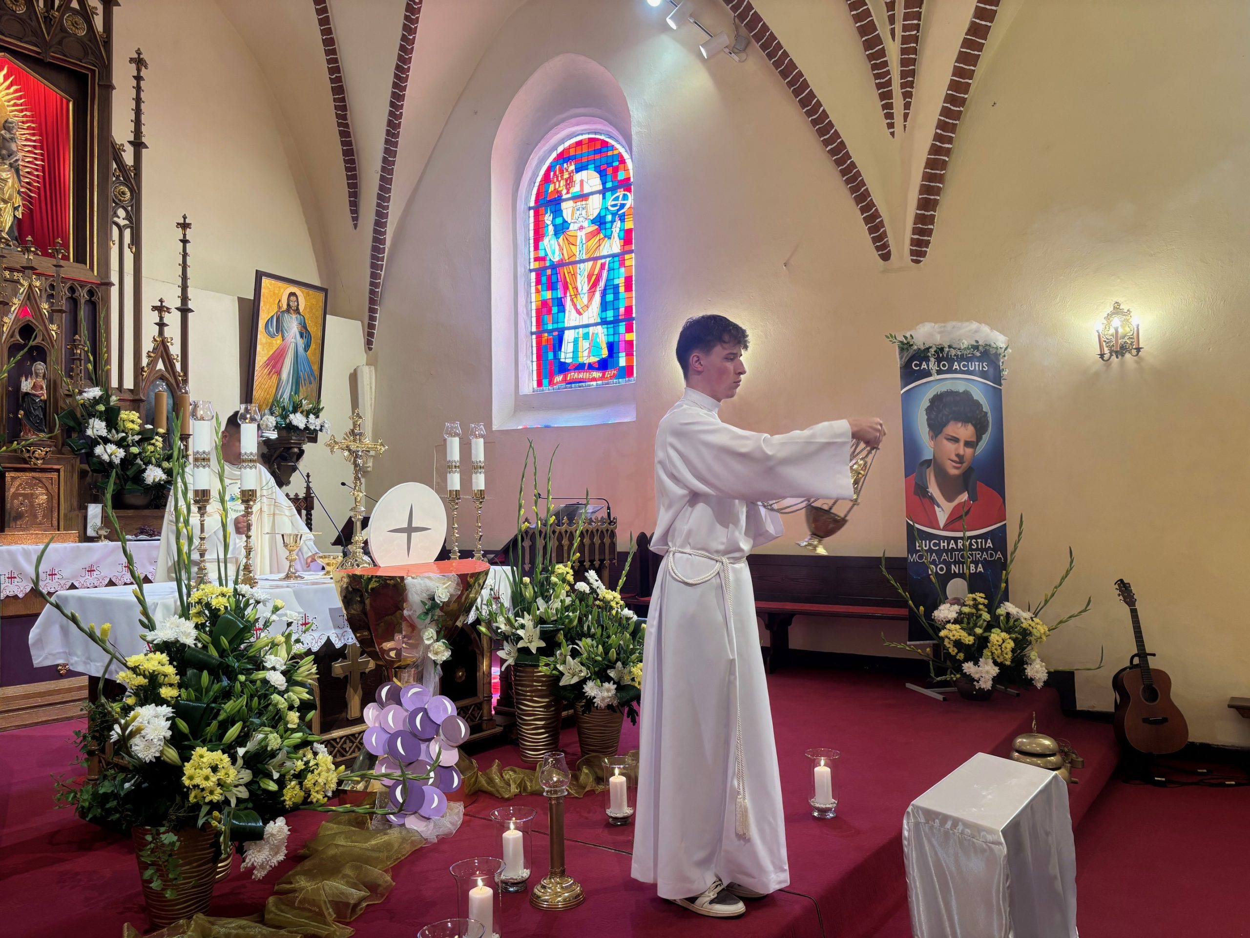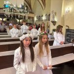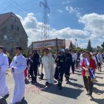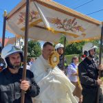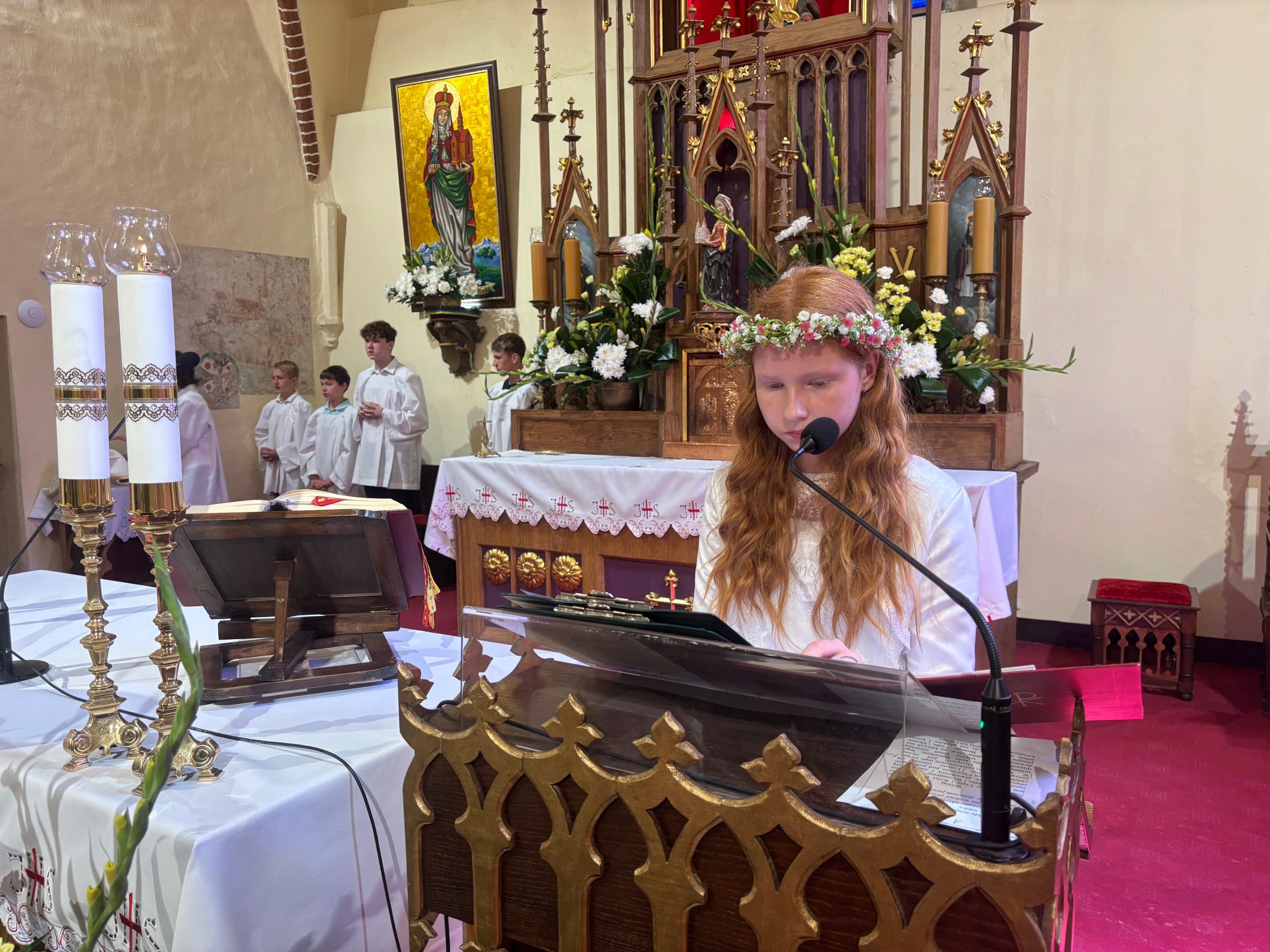Aby świętować Uroczystość Najświętszego Ciała i Krwi Chrystusa, czyli wyruszyć w procesji eucharystycznej, prosząc Jezusa, by pobłogosławił parafię, potrzeba pracy. Pracę, którą rozpoczęli przedstawiciele grup parafialnych w środę po południu należy widzieć nie tylko jako zadanie „by było ładnie, bezpiecznie”, ale jako świadectwo. Pani Agnieszka, pytana w środę na przygotowaniu ołtarzy dlaczego przyszła, odpowiedziała bez namysłu: „Tak mi serce podpowiada, by tu być i swoją pracą wyrazić moją miłość do Jezusa”. W czwartek o godzinie 10.30 rozpoczęła się Msza Święta. W kazaniu ks. Marcin zachęcił do miłości do Eucharystii, przejawiającej się w chodzeniu na Mszę św. i na adorację w ciągu dnia. Kapłan prosił: chodźmy do kościoła jak najczęściej, mimo pracy, aby przyjąć Jezusa w Komunii św. Bo On czeka na nas każdego dnia. Niech nie czeka nadaremnie! Po Mszy św. z kościoła wyruszyła procesja, wraz z dziećmi obchodzącymi w tym uroczystym dniu swoją Pierwszą Rocznicę Komunii Świętej oraz ich rodzicami. W tym roku procesja do czterech ołtarzy wyszła poza mury kościoła, w stronę Dolnego Mokrzeszowa. Dziewczynki sypiące kwiaty, ministranci, lektorzy – piękne świadectwo miłości do Jezusa. Furorę na procesji zrobiła mała Julka, która z wielką uwagą sypała kwiaty. Ona tak wyznała wiarę. Uczestnicy procesji w skupieniu zatrzymywali się przy kolejnych ołtarzach, przy których następowało odczytanie fragmentów Ewangelii. Przy pierwszym z nich odczytywany jest fragment Ewangelii wg św. Mateusza o ostatniej wieczerzy, a więc nawiązujący do ustanowienia przez Jezusa Eucharystii. Drugi ołtarz jest związany z fragmentem Ewangelii wg św. Marka, dotyczącym rozmnożenia chleba. Przy trzecim ołtarzu odczytywany jest fragment Ewangelii wg św. Łukasza, który opowiada o zaproszonych na ucztę. Zaś ostatni, czwarty ołtarz związany jest z Ewangelią wg św. Jana i sakramentem zjednoczenia. Przy nim kapłan zachęcał do „zakochania się w Eucharystii” i na koniec podziękował za pomoc w przygotowaniu procesji.