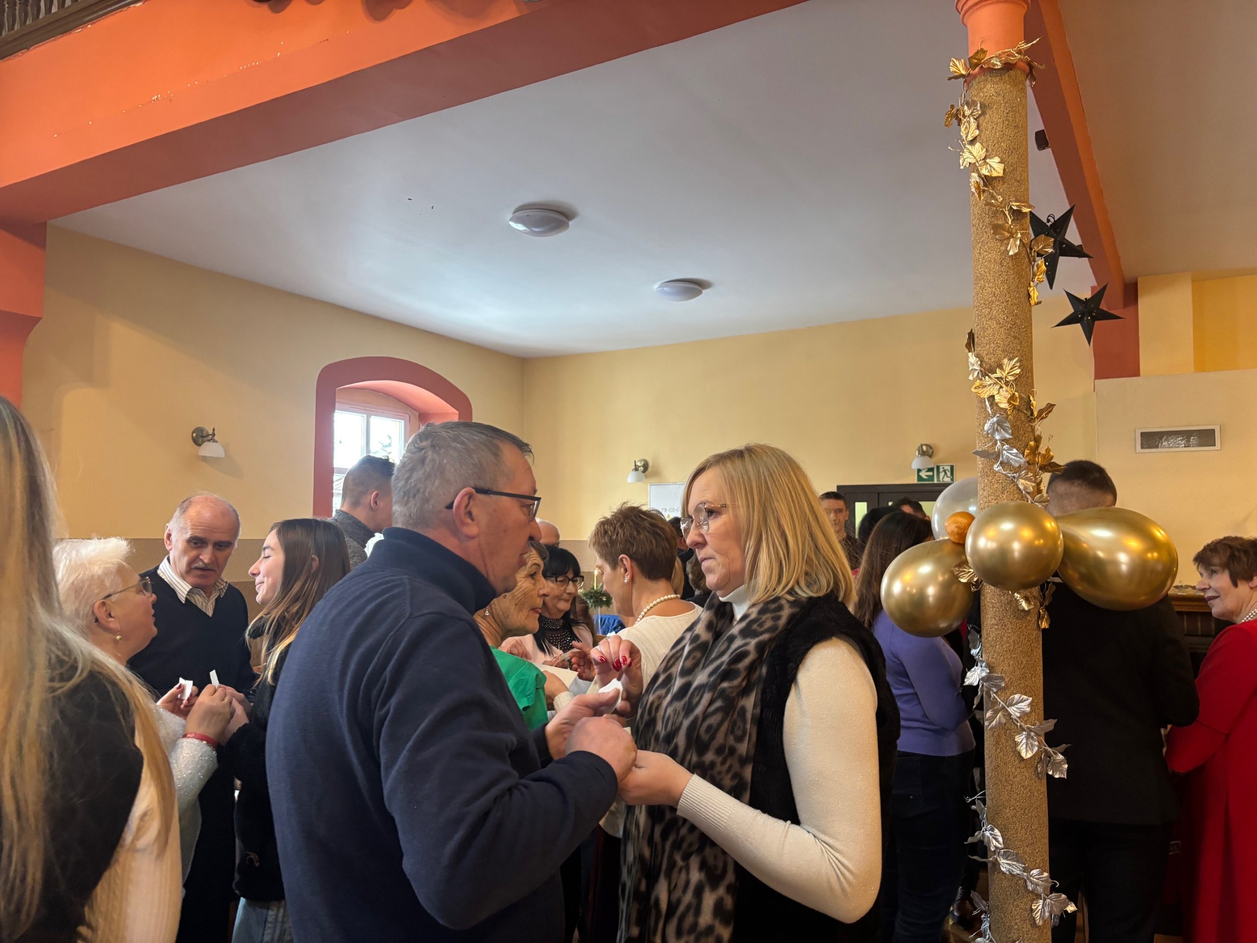 Po mszy mieszkańcy Mokrzeszowa, zaproszeni goście oraz przedstawiciele Urzędu Gminy Świdnica spotkali się w świetlicy wiejskiej. Tam, dzieląc się opłatkiem, złożyli sobie noworoczne życzenia, snuli plany na przyszłość i dzielili się dobrym słowem. Czuć było prawdziwe ciepło, serdeczność i radość.