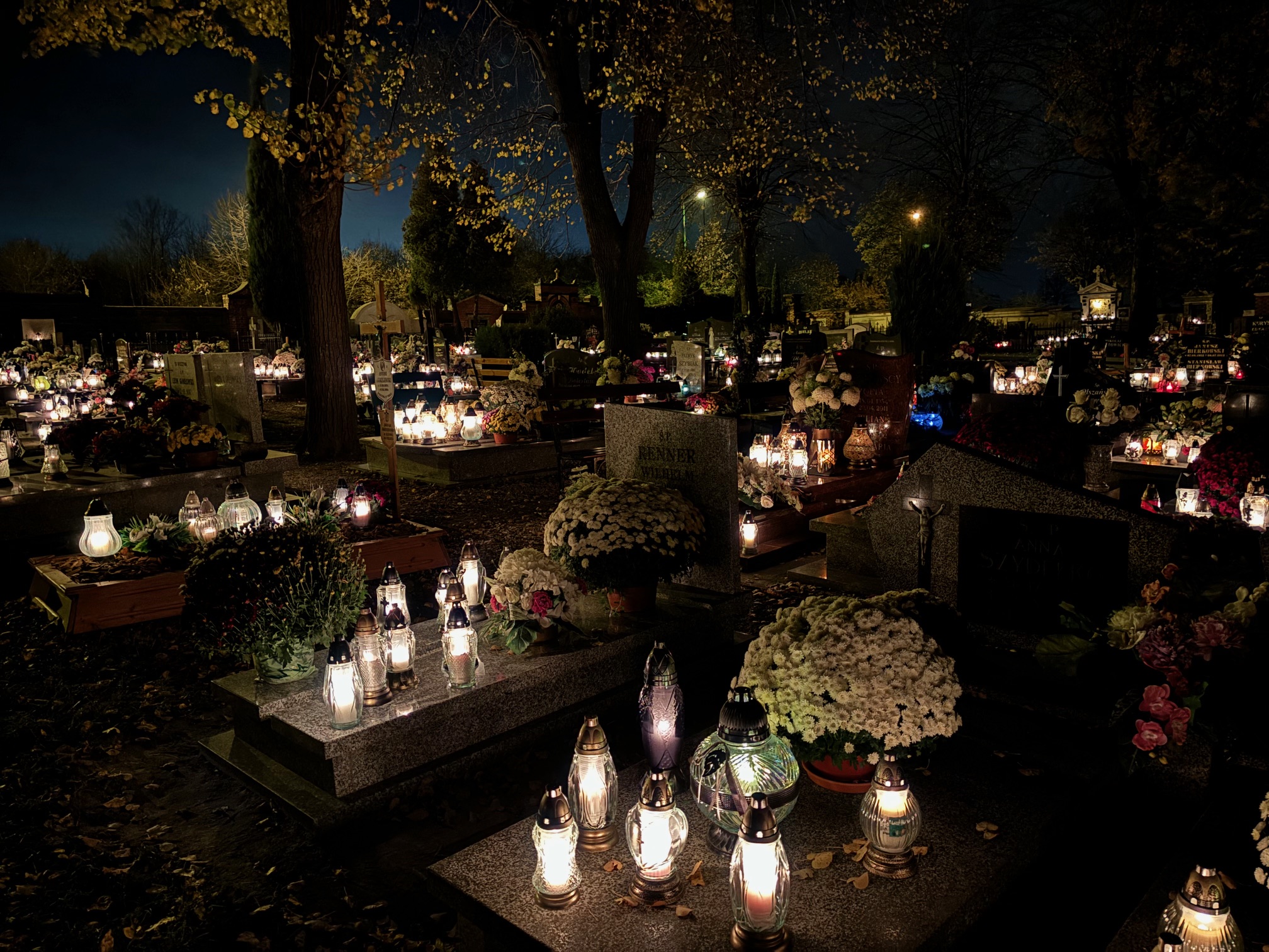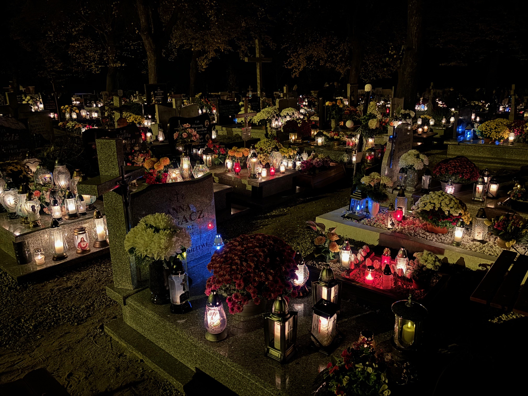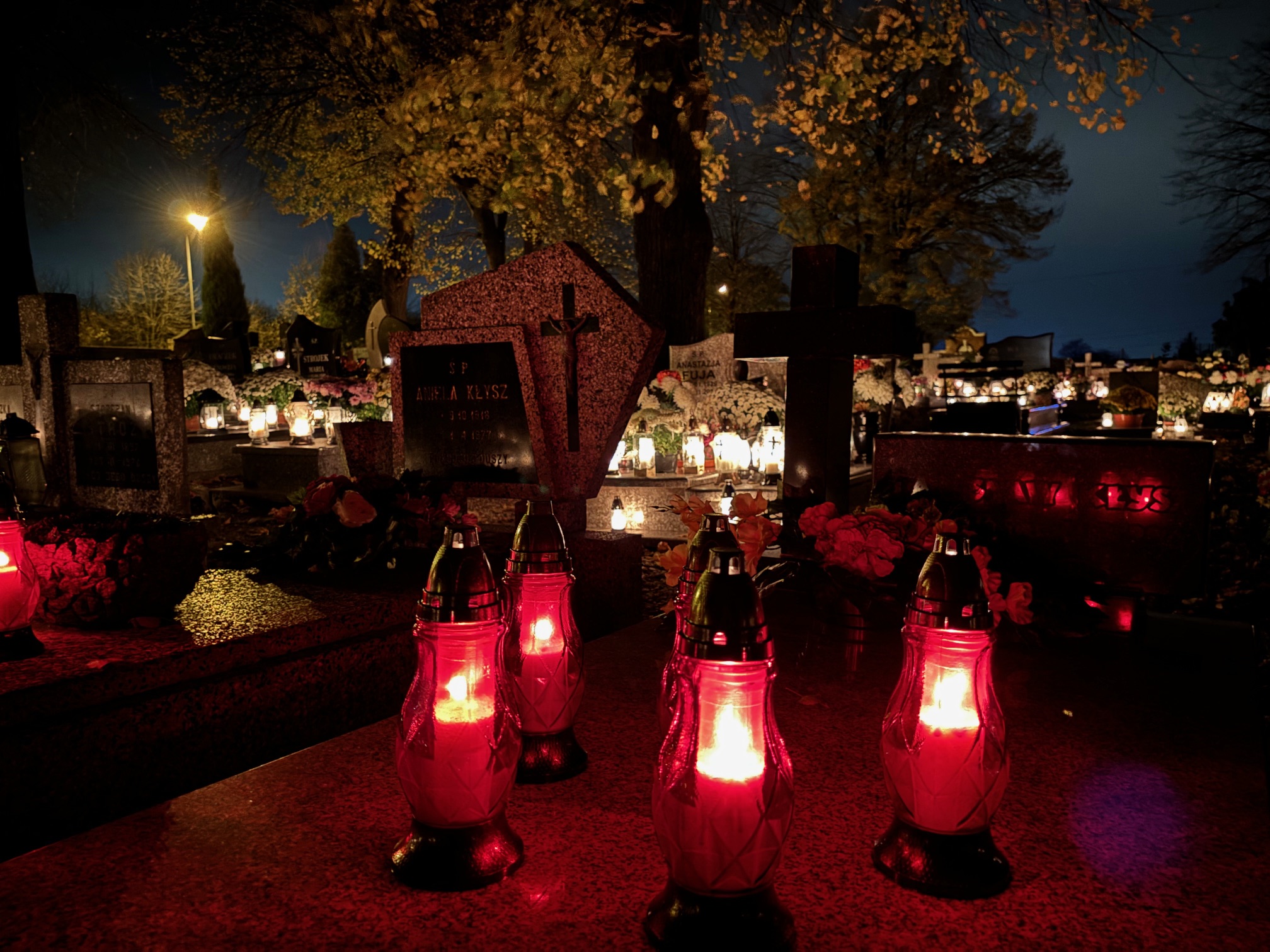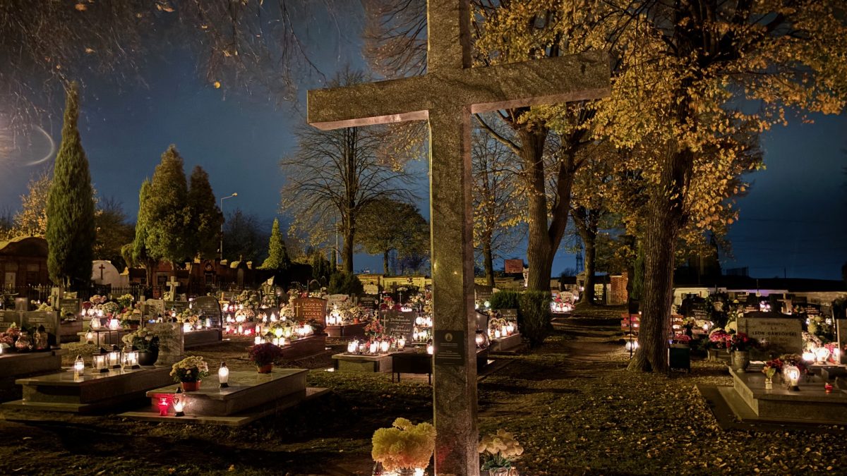 Cmentarz w Mokrzeszowie nocą
