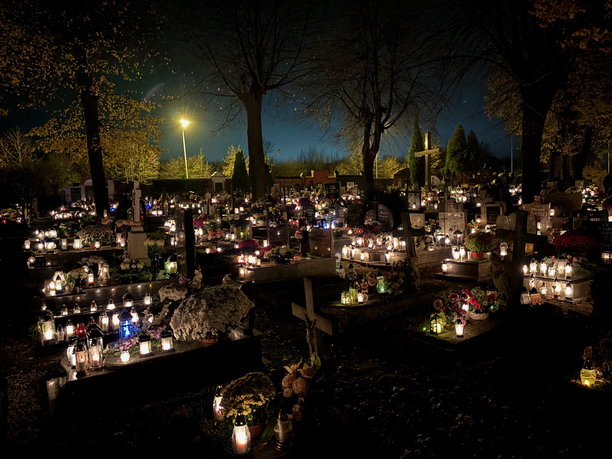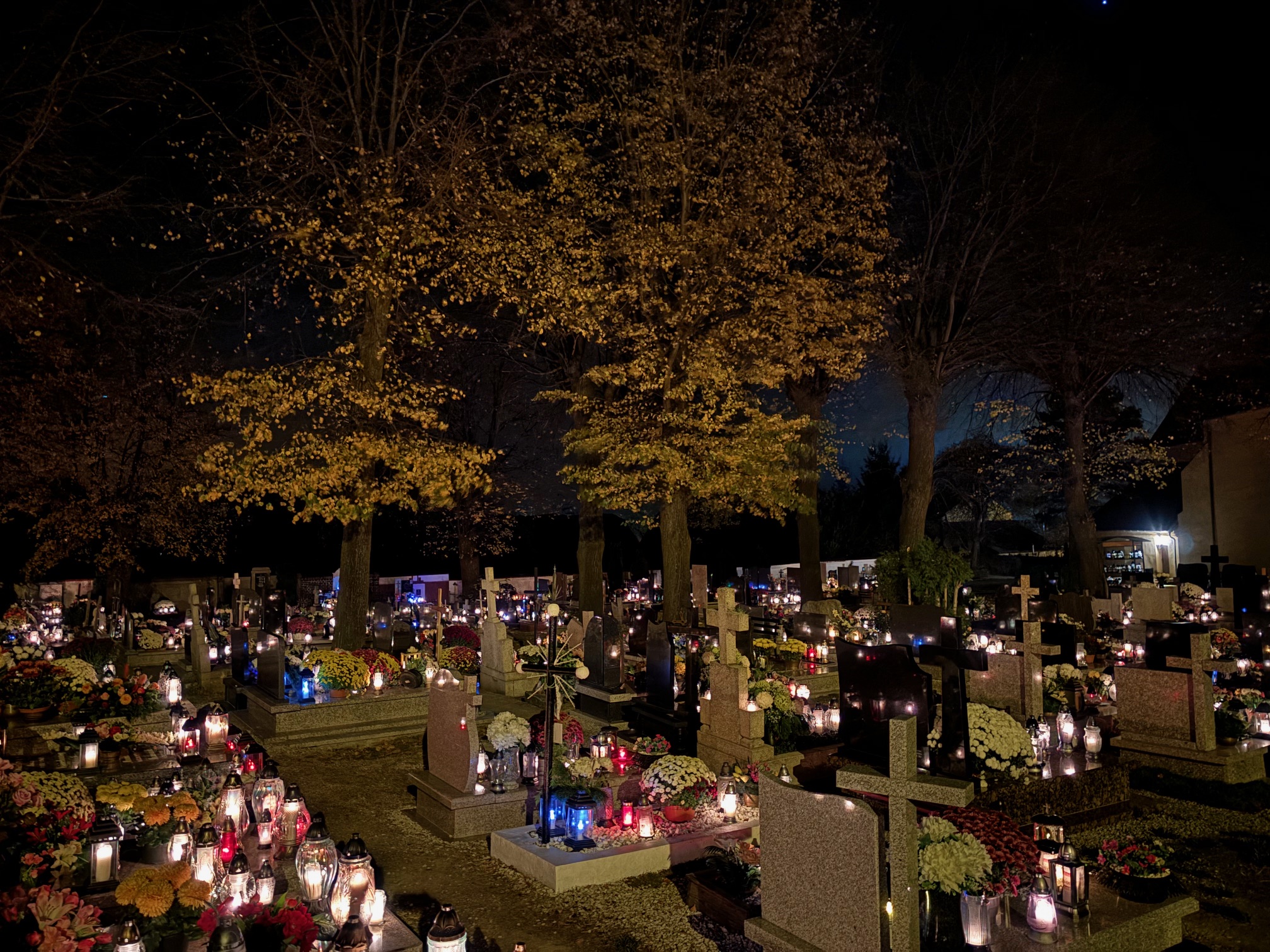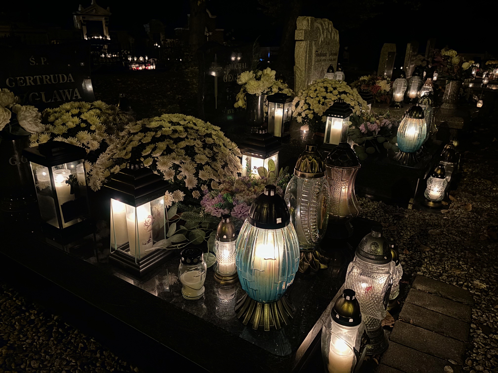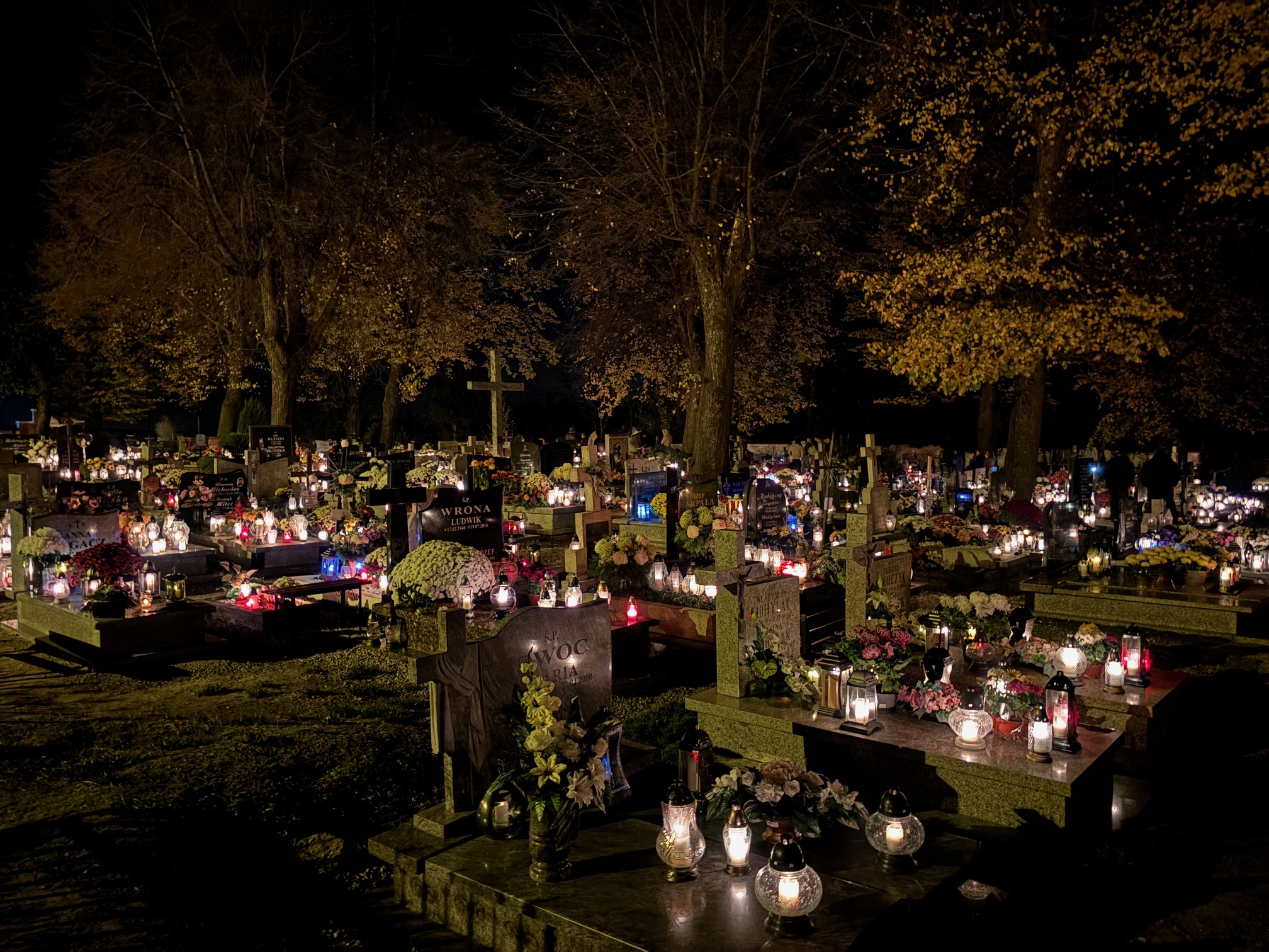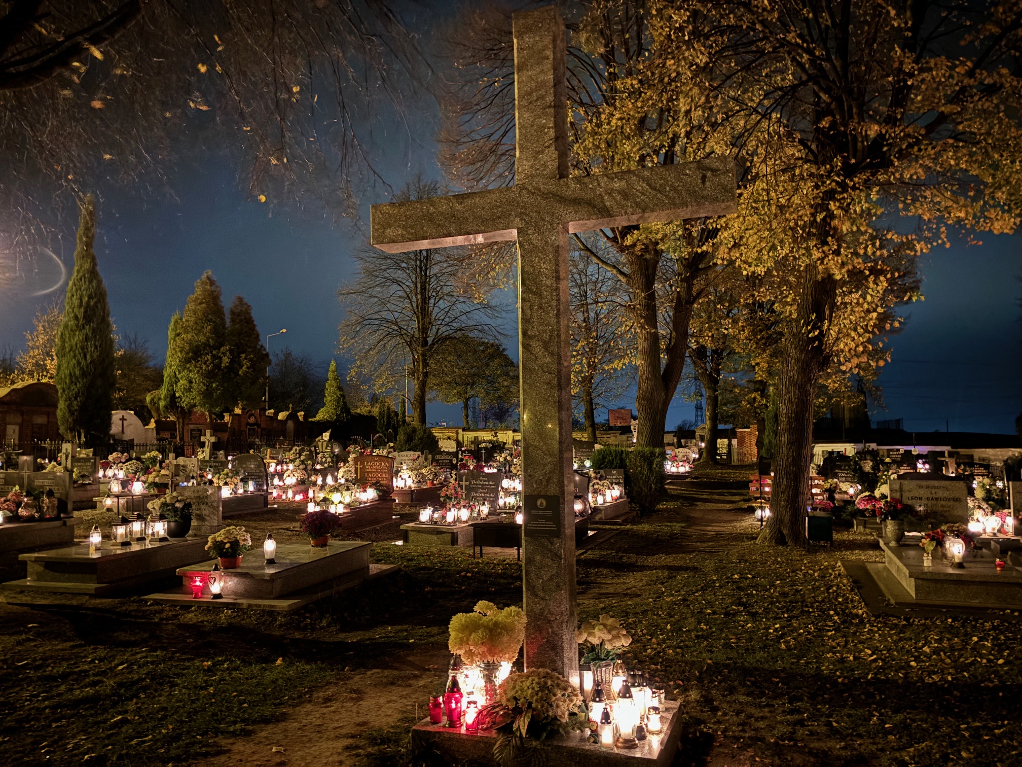 Cmentarz w Mokrzeszowie nocą