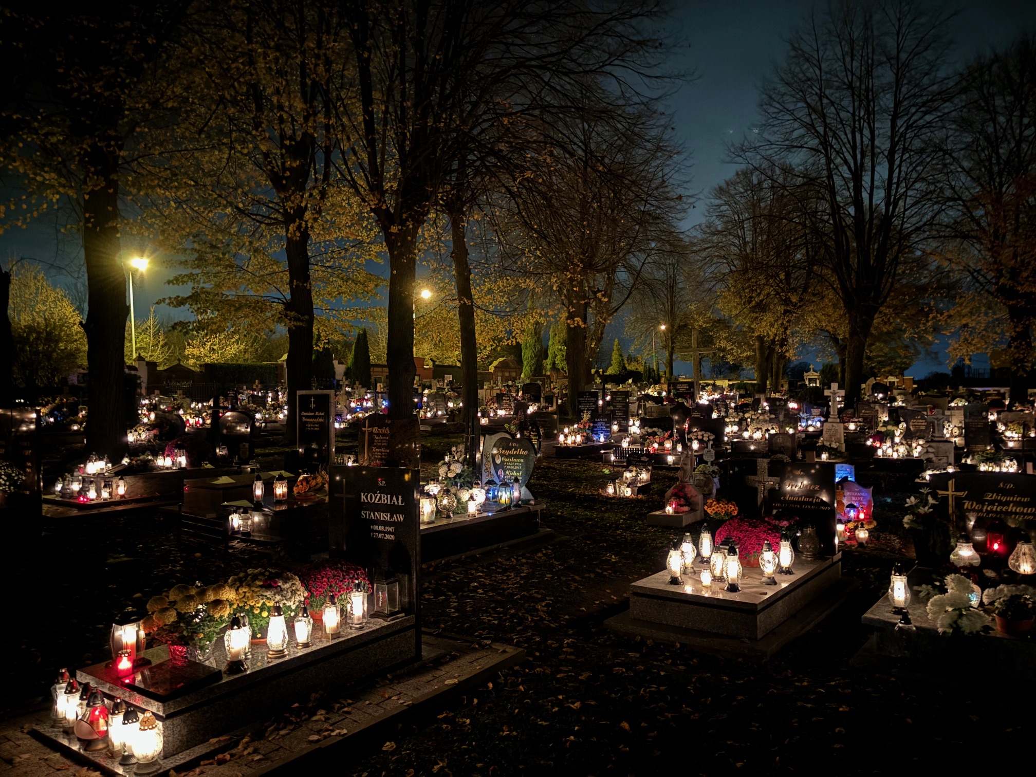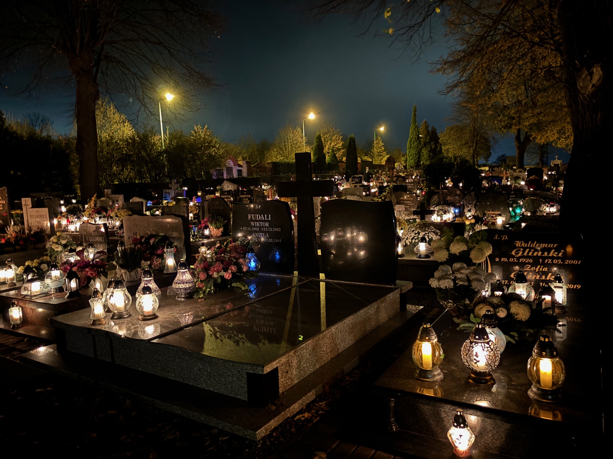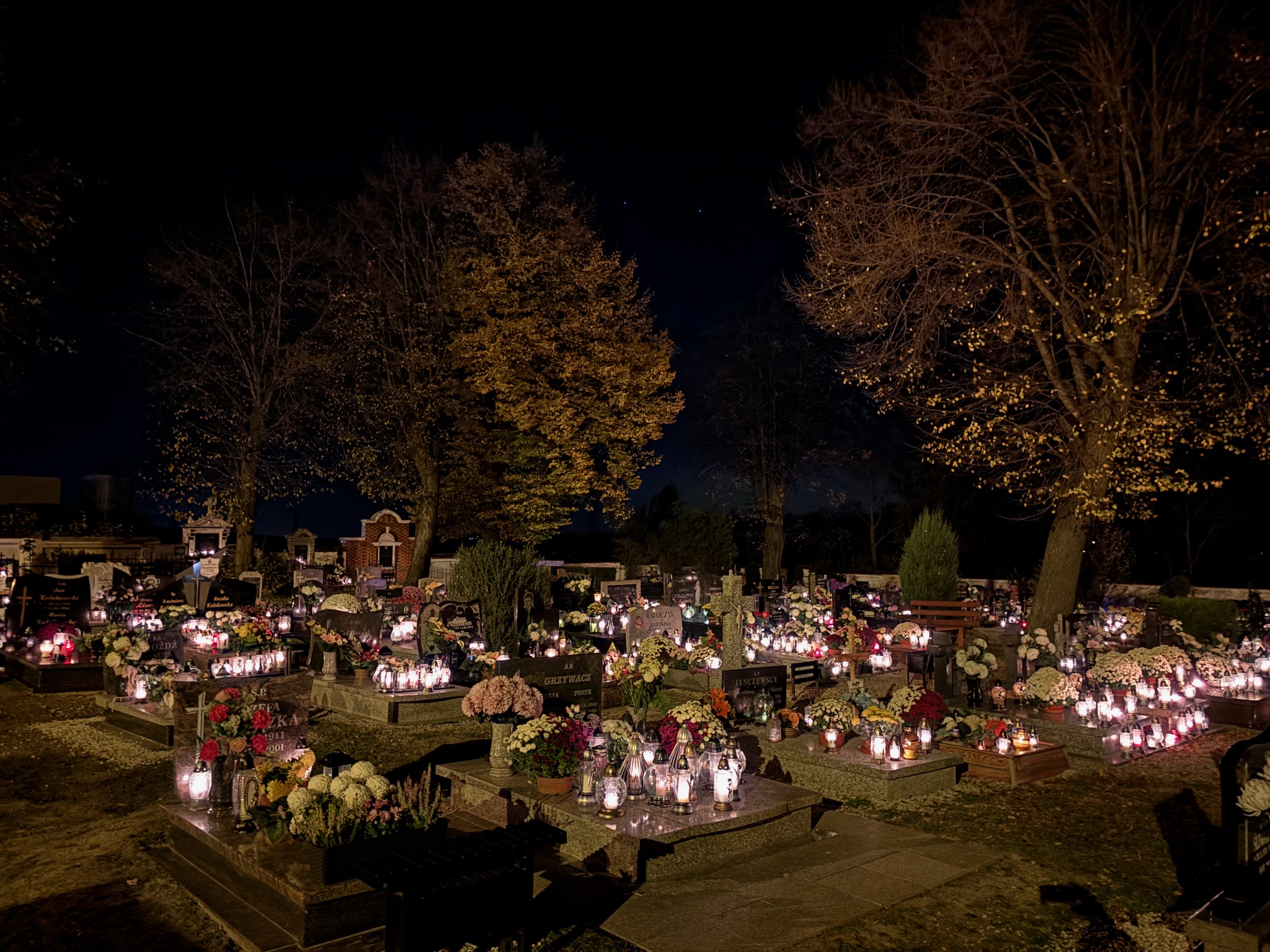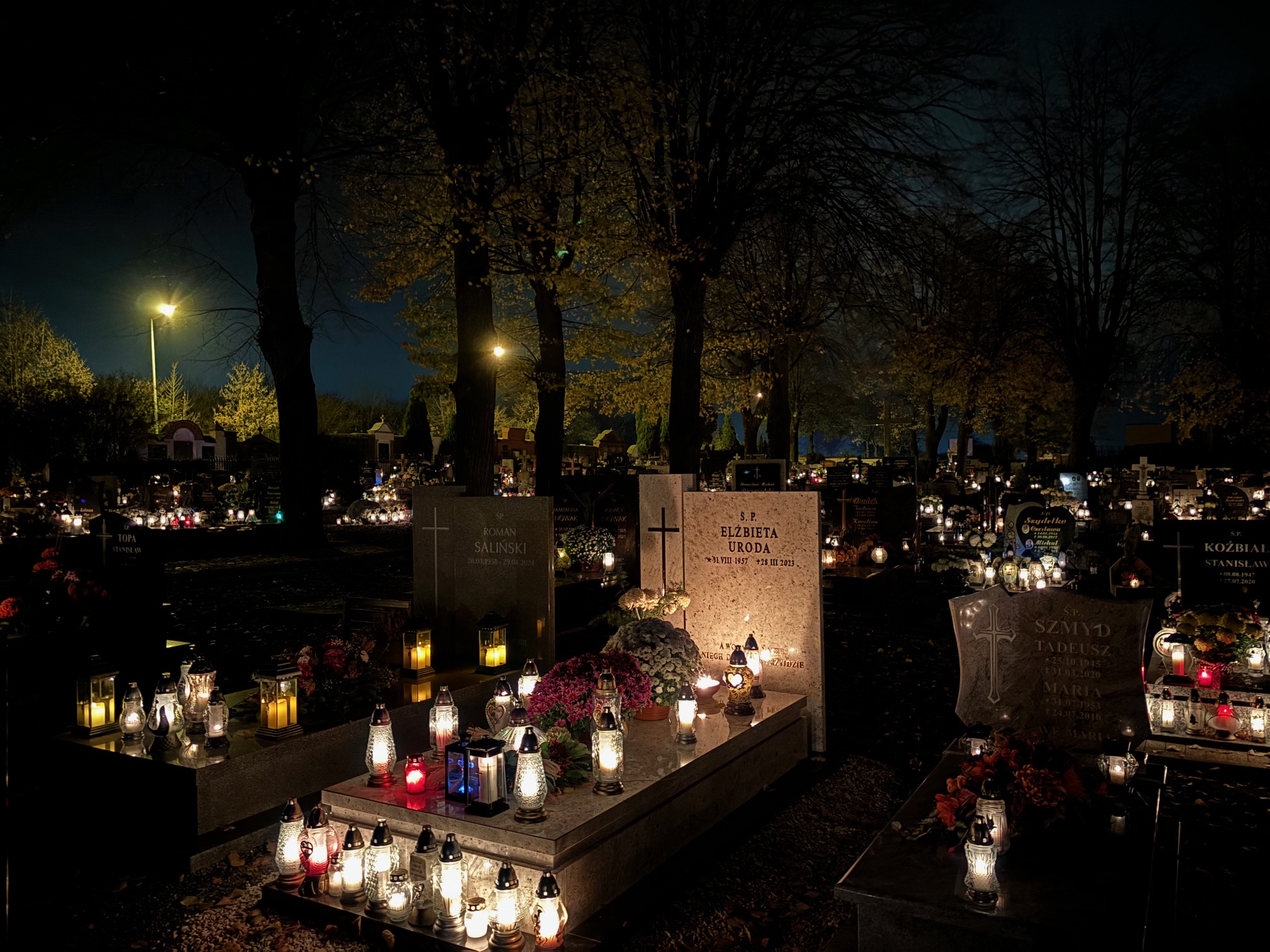 Cmentarz w Mokrzeszowie nocą