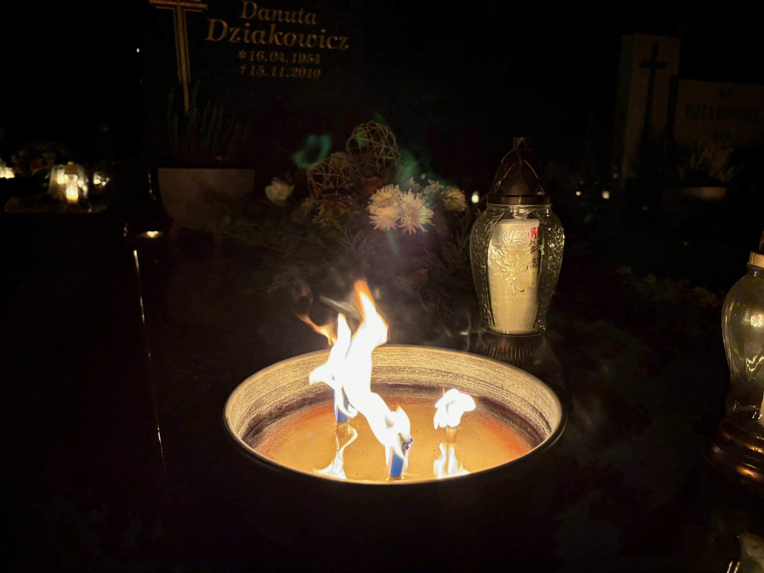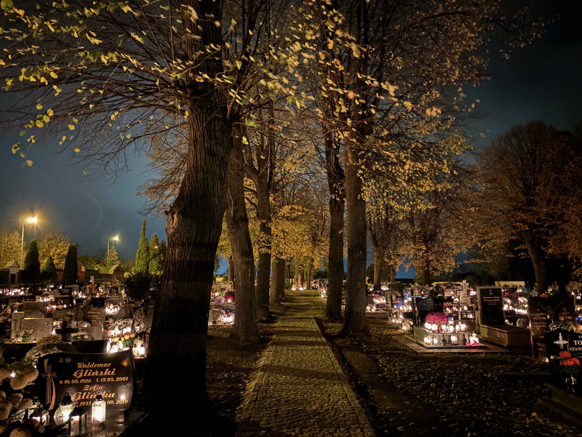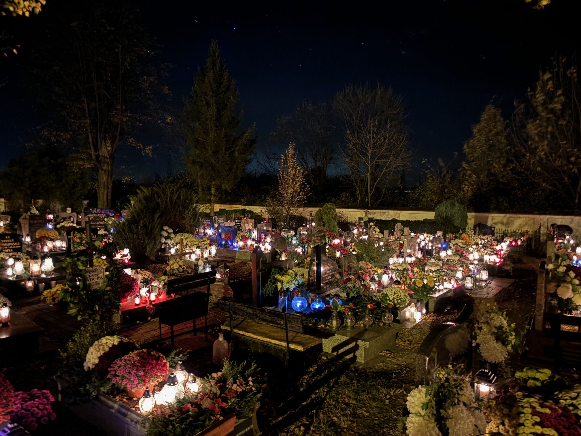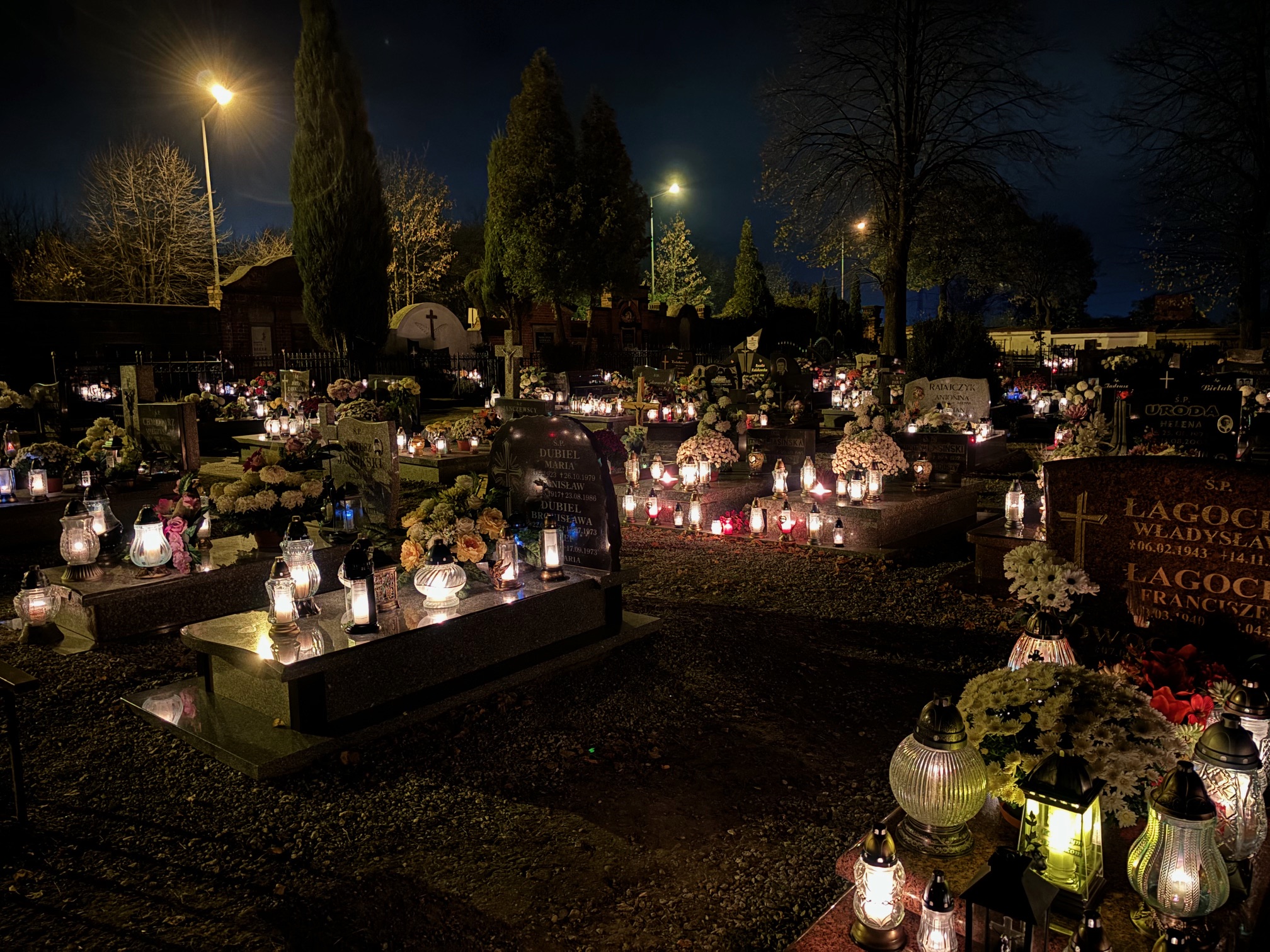 Cmentarz w Mokrzeszowie nocą
