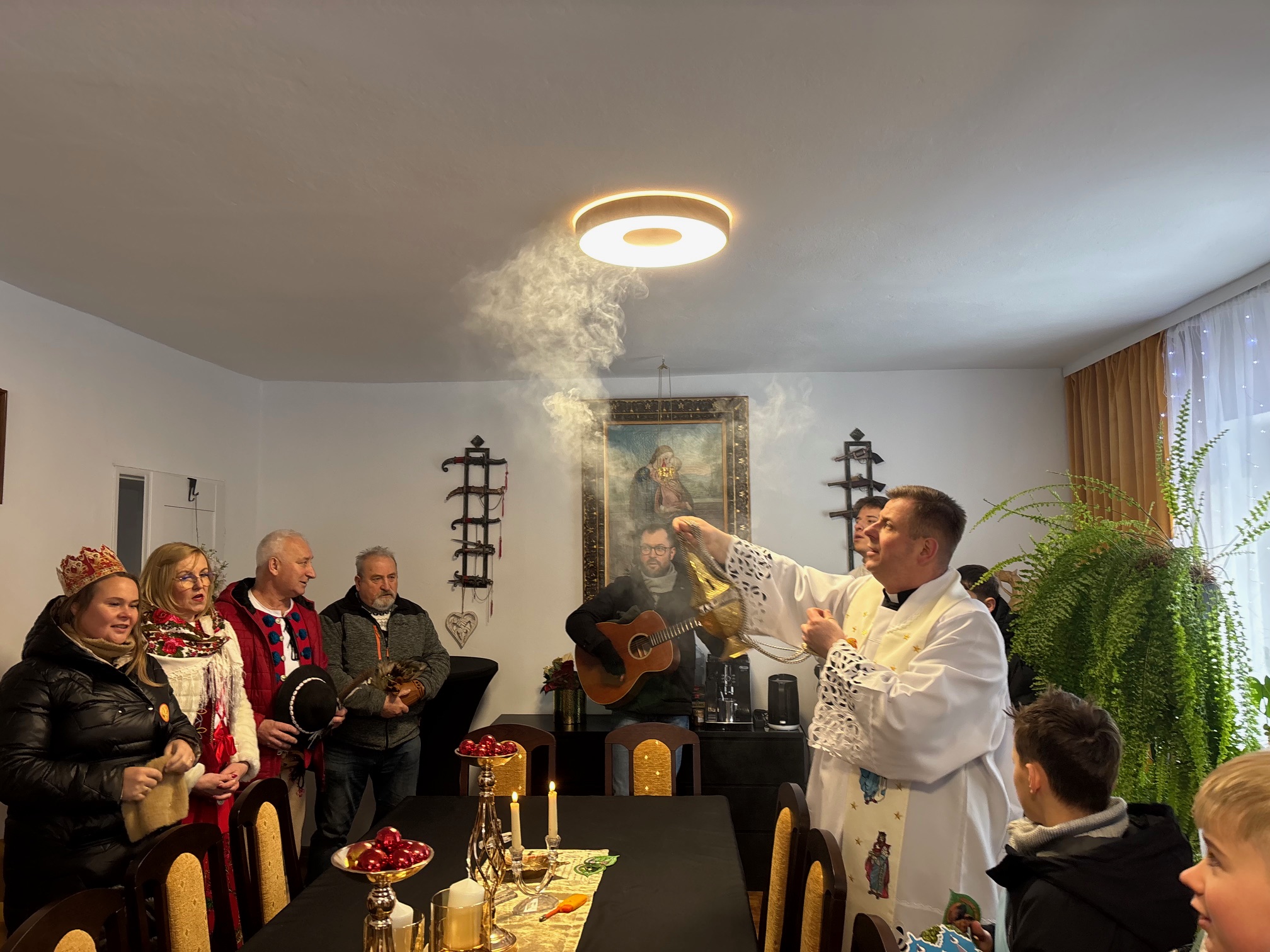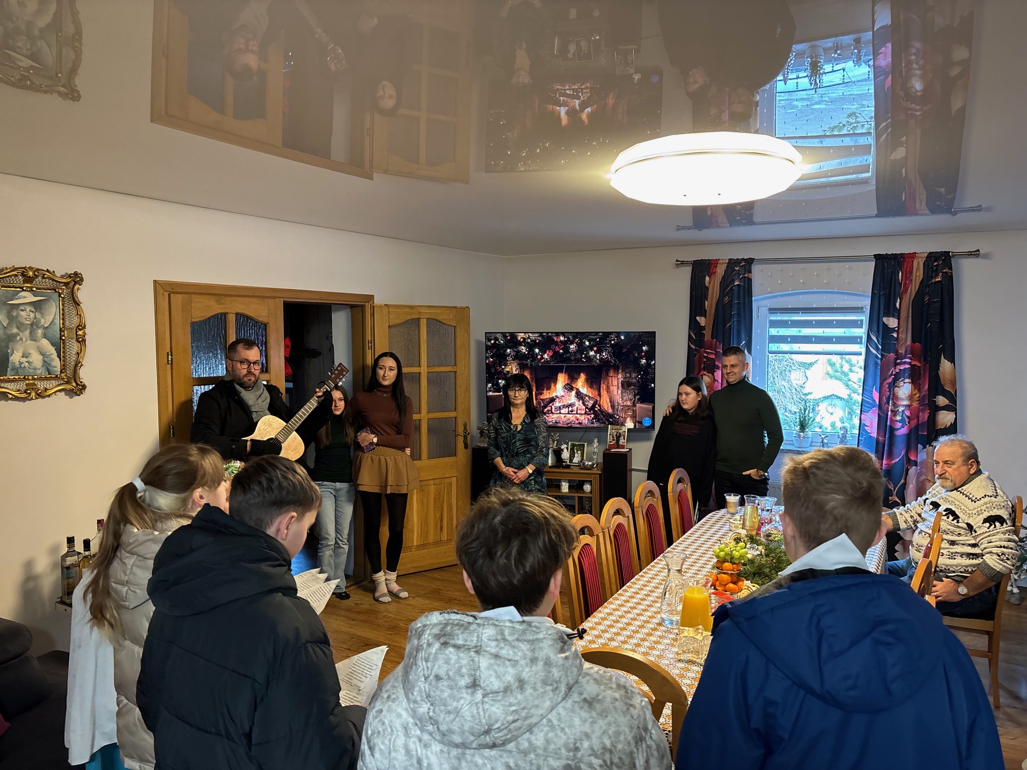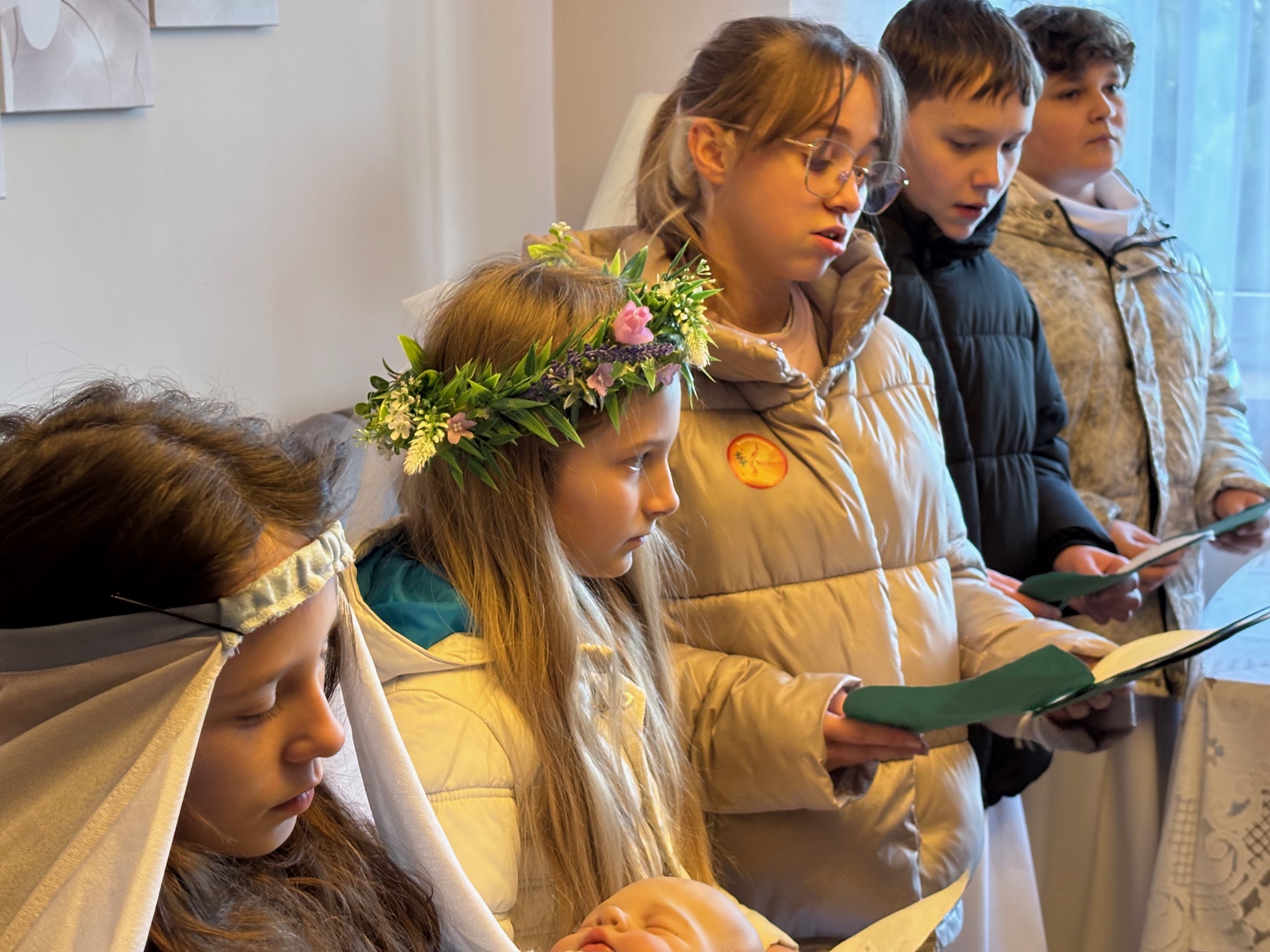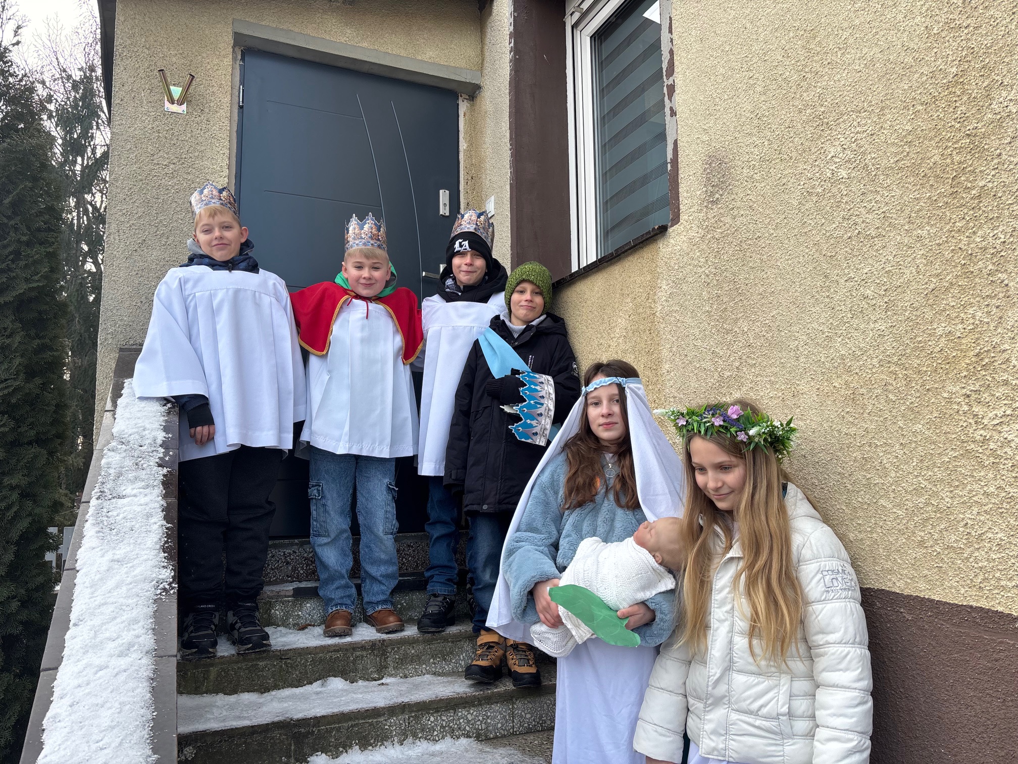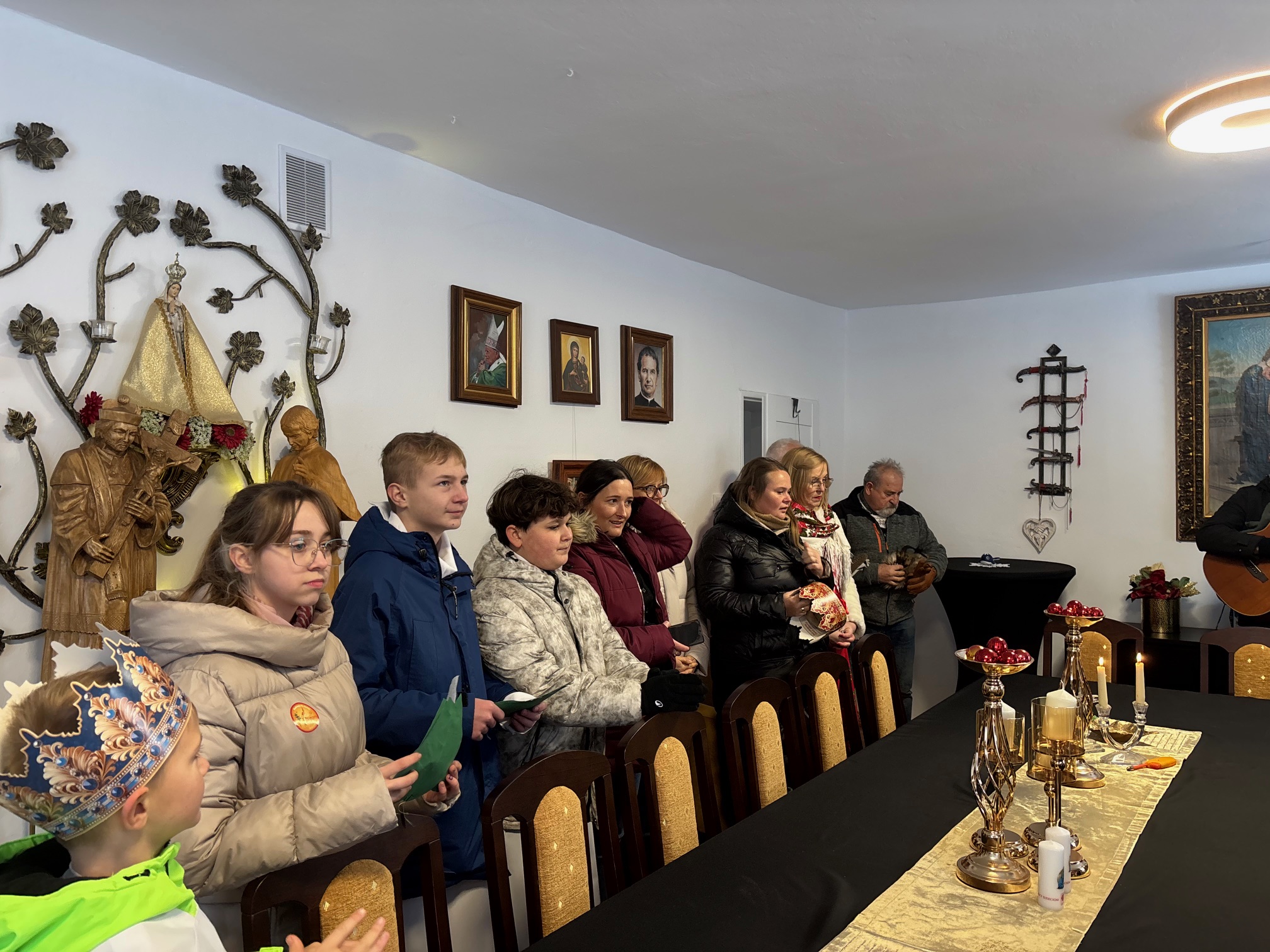 We wtorek, 6 stycznia 2026 roku, bardzo dużo się działo w naszej parafii. Po Mszy św. o godz. 11.00 Kolędnicy Misyjni z Bożym błogosławieństwem poszli do domów w Mokrzeszowie. Najpierw zaszli na plebanię, by w tym domu również mogła się odbyć kolęda. Tu także przedstawili jasełka, w których opowiedzieli o celu ich kolędowania i zachęcili do wsparcia dzieci ze Sri Lanki. Po modlitwie na plebanii młodzi ludzie wyruszyli na kolędowanie do zgłoszonych domów. W odwiedzanych domach oczywiście nie zabrakło słodkich poczęstunków, kolęd i serdecznych rozmów. Ks. Twardowski tak pisał o poszukiwaniu Boga: „Żeby Go odnaleźć, nie wystarczy tylko rozmyślać – trzeba zacząć Go szukać. Trzeba się ruszyć z miejsca, choćby najbardziej wygodnego, nie bać się drogi przez pustynię, nie załamywać rąk, jeśli gwiazda zgaśnie. Odnaleźć Boga – to zrozumieć: Bóg jest tak nieskończenie wielki, że nie zdoła Go ogarnąć cały wszechświat, i jednocześnie może przyjść jako bezbronne dziecko”. Z kolei papież Franciszek zachęca nas, abyśmy w tym poszukiwaniu Boga i jednoczesnym poznawaniu ludzi oraz świata „wpatrując się w Trzech Mędrców, nie zadowalali się przeciętnością, nie wegetowali, ale poszukiwali sensu rzeczy, z pasją badali wielką tajemnicę życia”. Dlatego w tym roku nasi dzielni Kolędnicy Misyjni stali się wspaniałymi ewangelizatorami, którzy w przygotowanych scenkach opowiedzieli nam o potrzebujących dzieciach. Wspólne kolędowanie zarówno w kościele, na plebanii, jak i w domach w Mokrzeszowie dało każdemu wiele radości. Bardzo serdecznie dziękujemy wspaniałym Kolędnikom Misyjnym za ich pięknie przygotowane role i zaraźliwą radość chrześcijańską.