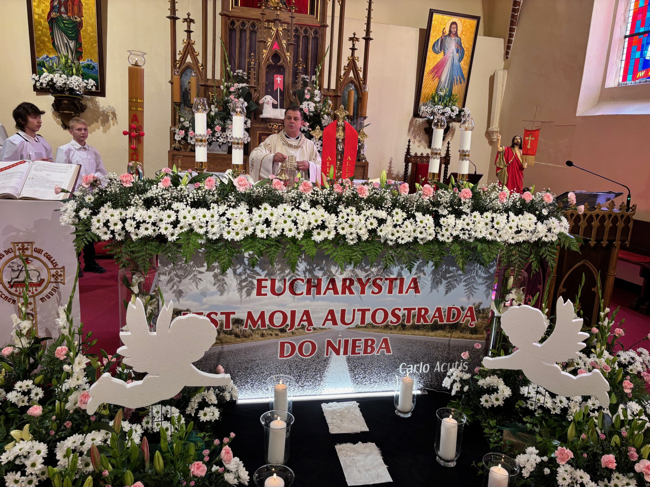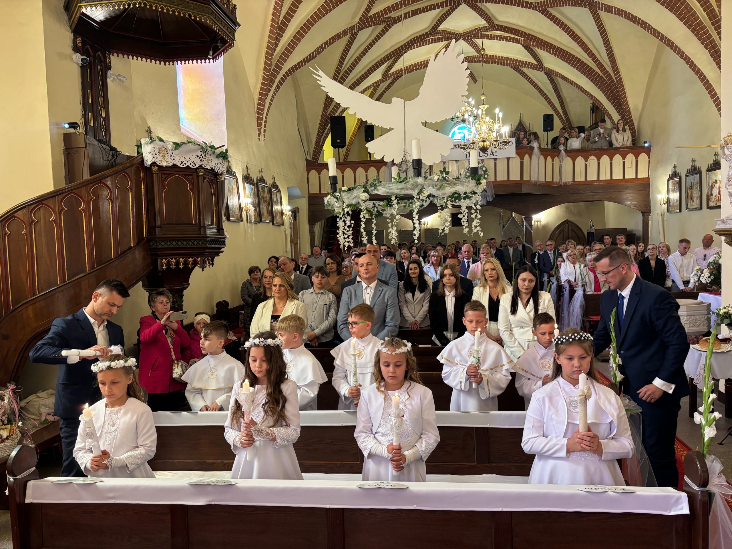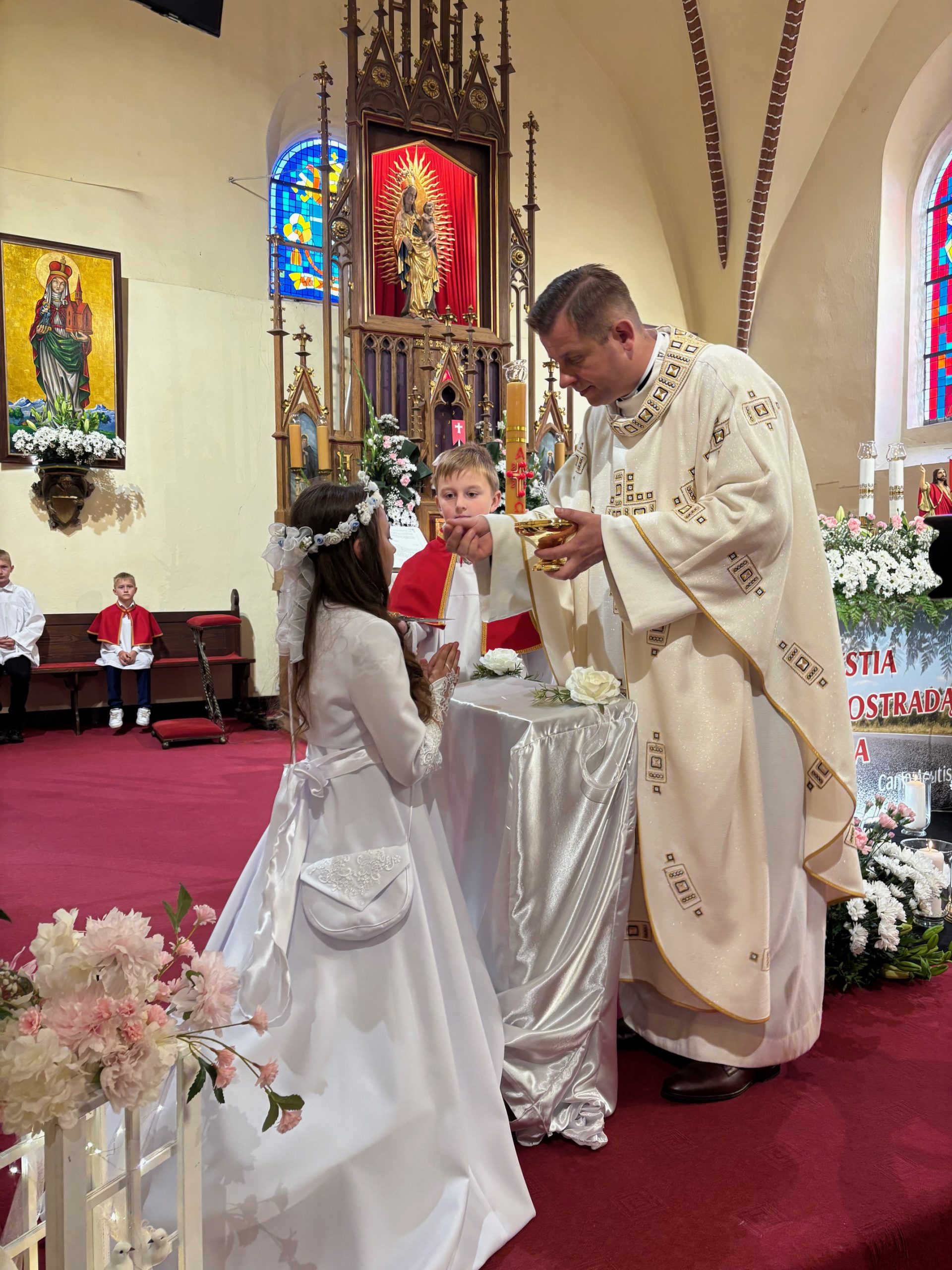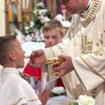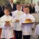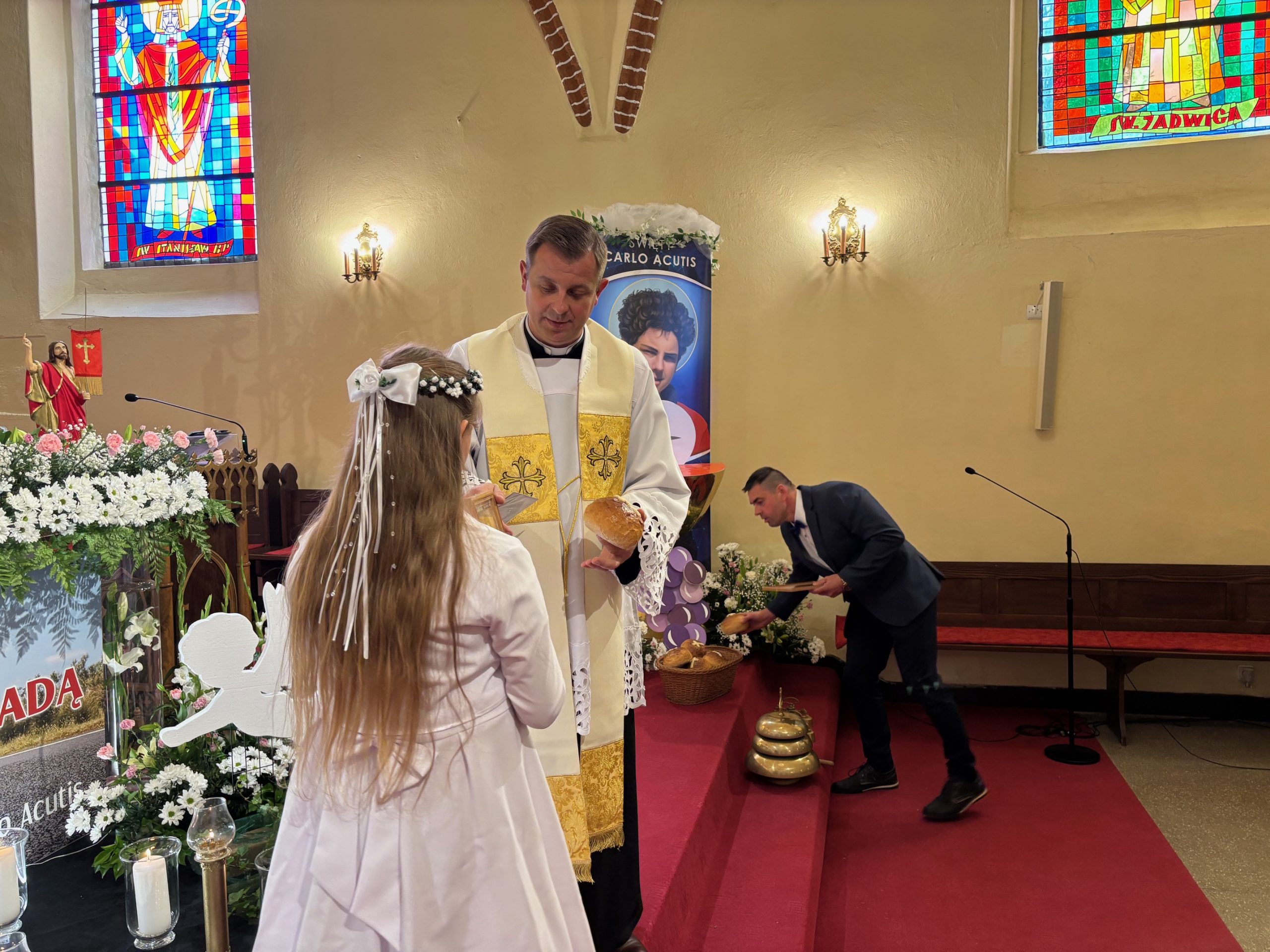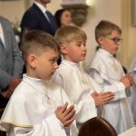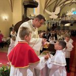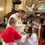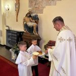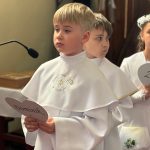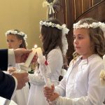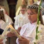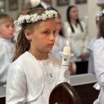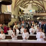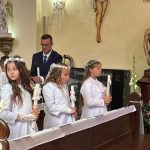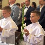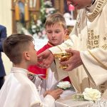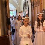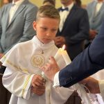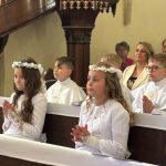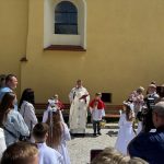 W sobotę 24 maja w naszej wspólnocie parafialnej odbyła się Pierwsza Komunia Święta. W kazaniu ks. Marcin. zachęcał nie tylko dzieci, ale i ich rodziców do częstego korzystania z sakramentów, za przykład ukazując postać bł. Carla Acutisa. Mówił: dzisiejsza Ewangelia zaczyna się od bardzo ważnych słów, nad którymi chciałbym się dziś zatrzymać. Przypomnijmy je sobie: „Jezus powiedział do swoich uczniów: «Jeśli Mnie kto miłuje, będzie zachowywał moją naukę (…)»”. Jak rozumieć te słowa? Kto będzie słuchał Jego słów i żył zgodnie z tym, co mówi Pan Jezus – to właśnie oznacza zachowywanie czyjejś nauki. Nie chodzi o to, aby coś tylko spisać i zachować na później, ale o to, aby przyjąć taką naukę do serca i prowadzić życie zgodne z przyjętymi wskazówkami. Tak rozumiał to Carlo, wasz patron sakramentu. I niech On będzie motywacją dla was. Po komunii dzieci podziękowały za dar Eucharystii, przyrzekając, że będą chętnie przystępować do sakramentu pokuty i do Komunii Świętej. Na koniec Mszy św. ks. Marcin poświęcił pamiątkowe obrazki, które następnie zostały wręczone dzieciom. Na popołudniowym nabożeństwie majowym dzieci zawierzyły Matce Bożej swoją nową drogę i poprosiły Maryję o opiekę.