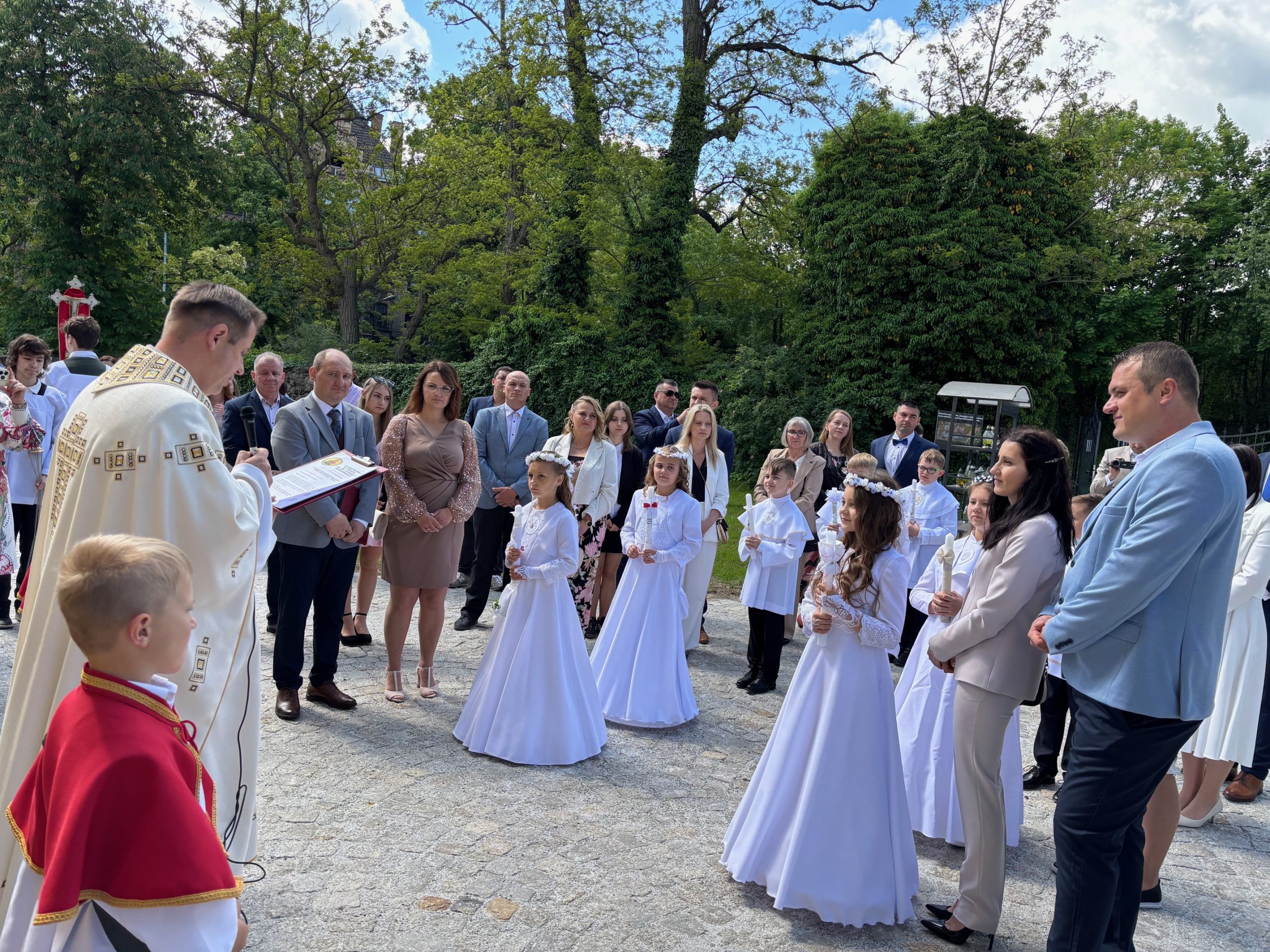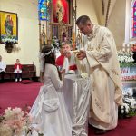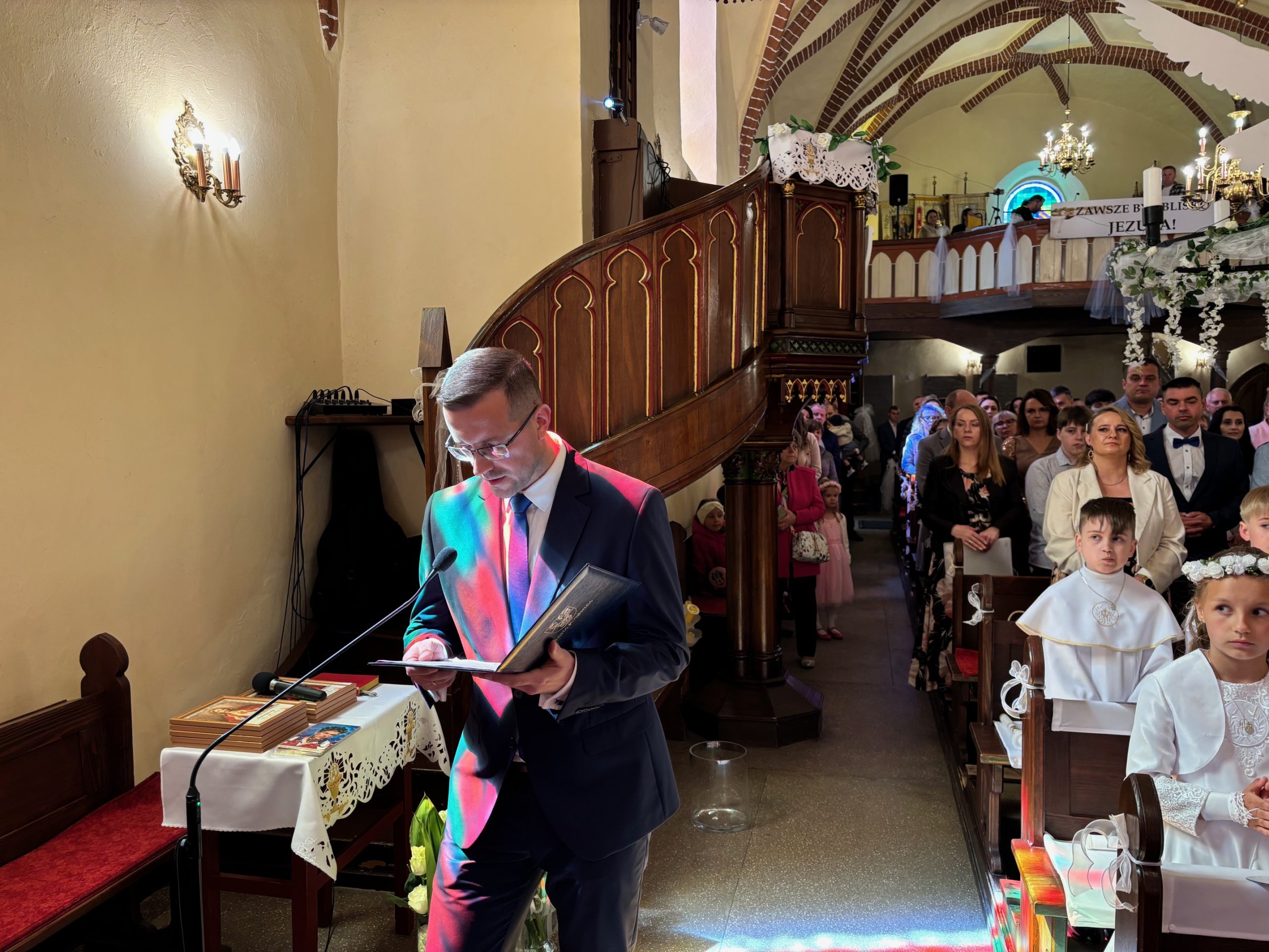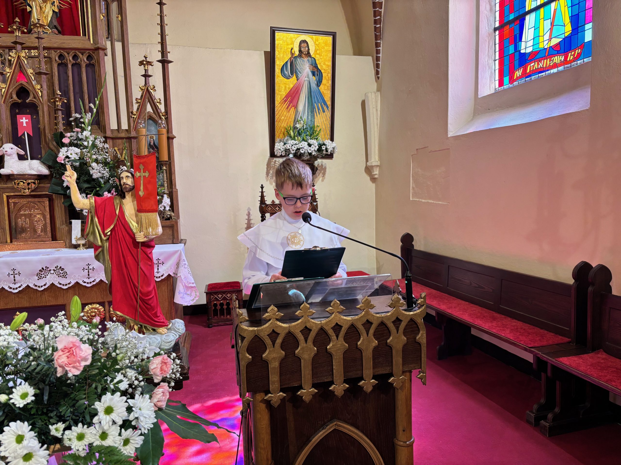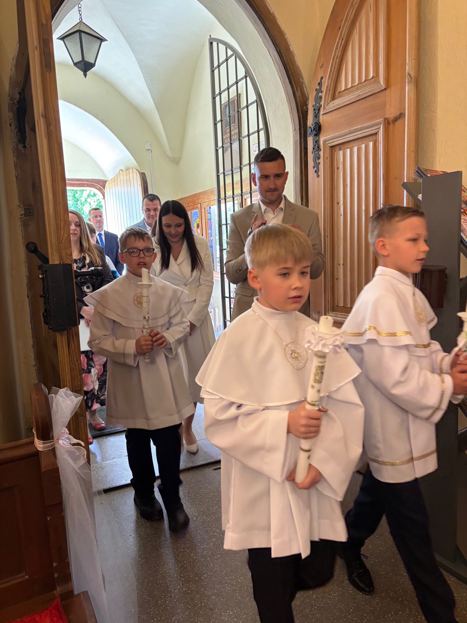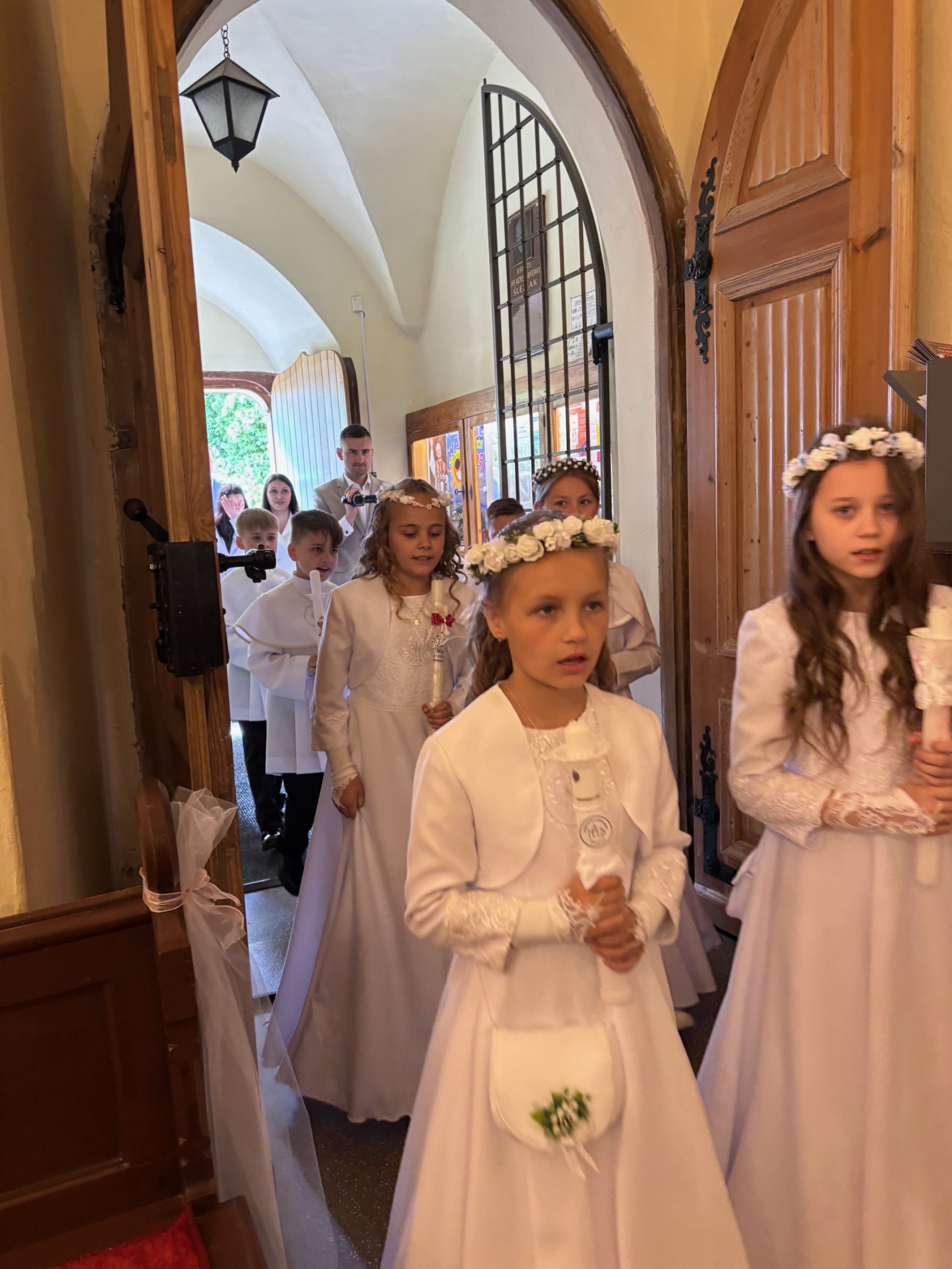 W sobotę 24 maja w naszej wspólnocie parafialnej odbyła się Pierwsza Komunia Święta. W kazaniu ks. Marcin. zachęcał nie tylko dzieci, ale i ich rodziców do częstego korzystania z sakramentów, za przykład ukazując postać bł. Carla Acutisa. Mówił: dzisiejsza Ewangelia zaczyna się od bardzo ważnych słów, nad którymi chciałbym się dziś zatrzymać. Przypomnijmy je sobie: „Jezus powiedział do swoich uczniów: «Jeśli Mnie kto miłuje, będzie zachowywał moją naukę (…)»”. Jak rozumieć te słowa? Kto będzie słuchał Jego słów i żył zgodnie z tym, co mówi Pan Jezus – to właśnie oznacza zachowywanie czyjejś nauki. Nie chodzi o to, aby coś tylko spisać i zachować na później, ale o to, aby przyjąć taką naukę do serca i prowadzić życie zgodne z przyjętymi wskazówkami. Tak rozumiał to Carlo, wasz patron sakramentu. I niech On będzie motywacją dla was. Po komunii dzieci podziękowały za dar Eucharystii, przyrzekając, że będą chętnie przystępować do sakramentu pokuty i do Komunii Świętej. Na koniec Mszy św. ks. Marcin poświęcił pamiątkowe obrazki, które następnie zostały wręczone dzieciom. Na popołudniowym nabożeństwie majowym dzieci zawierzyły Matce Bożej swoją nową drogę i poprosiły Maryję o opiekę.