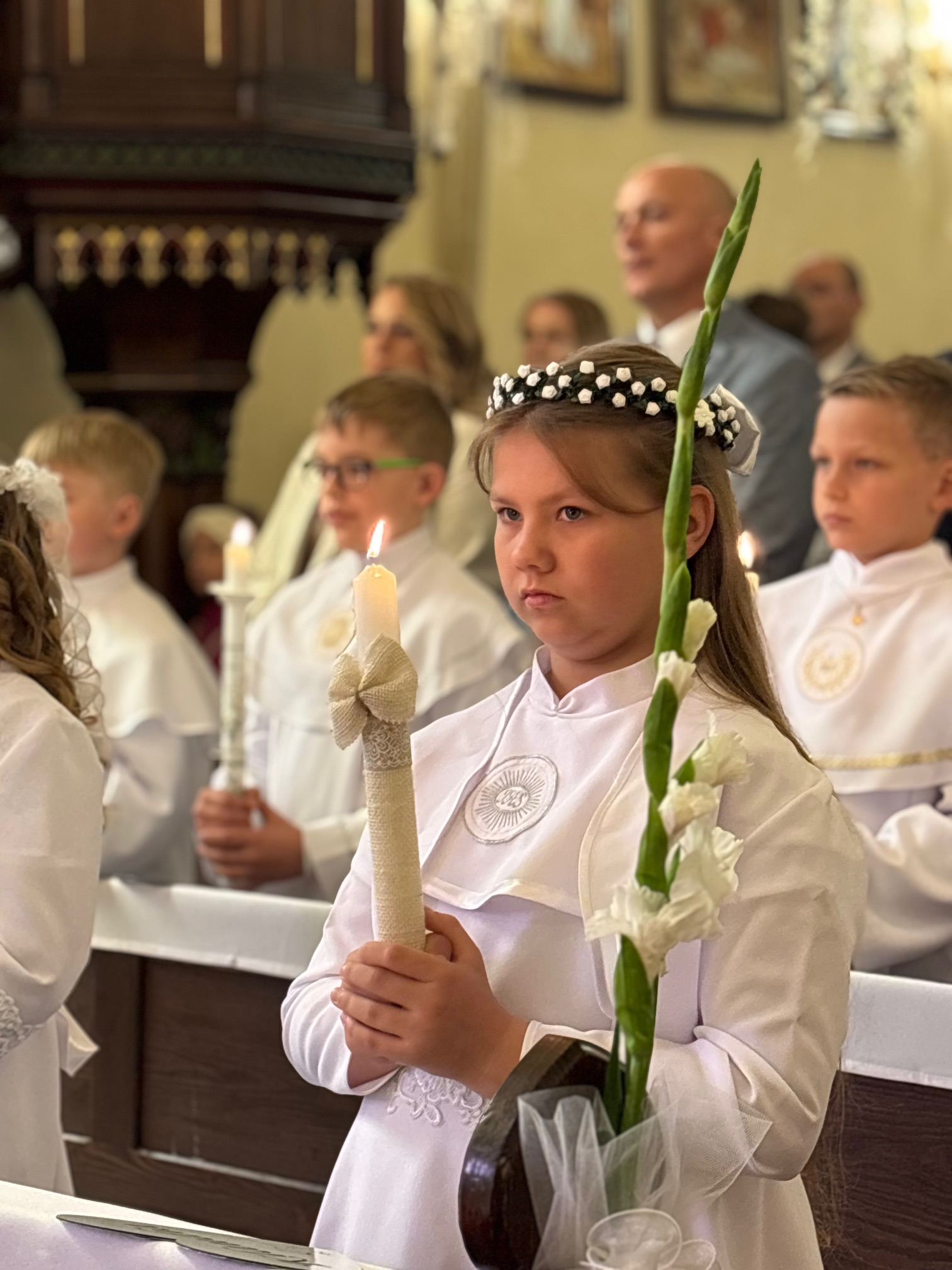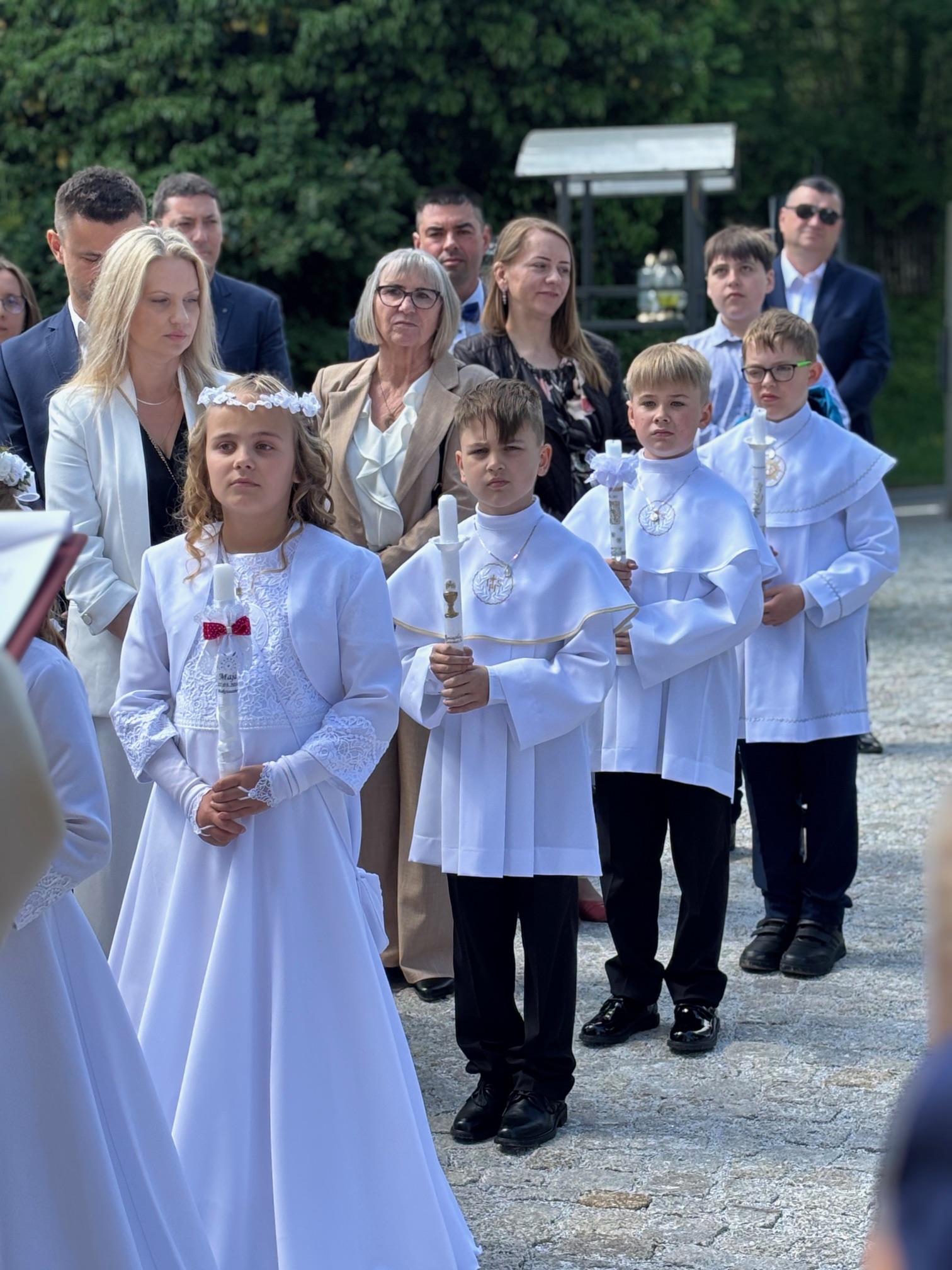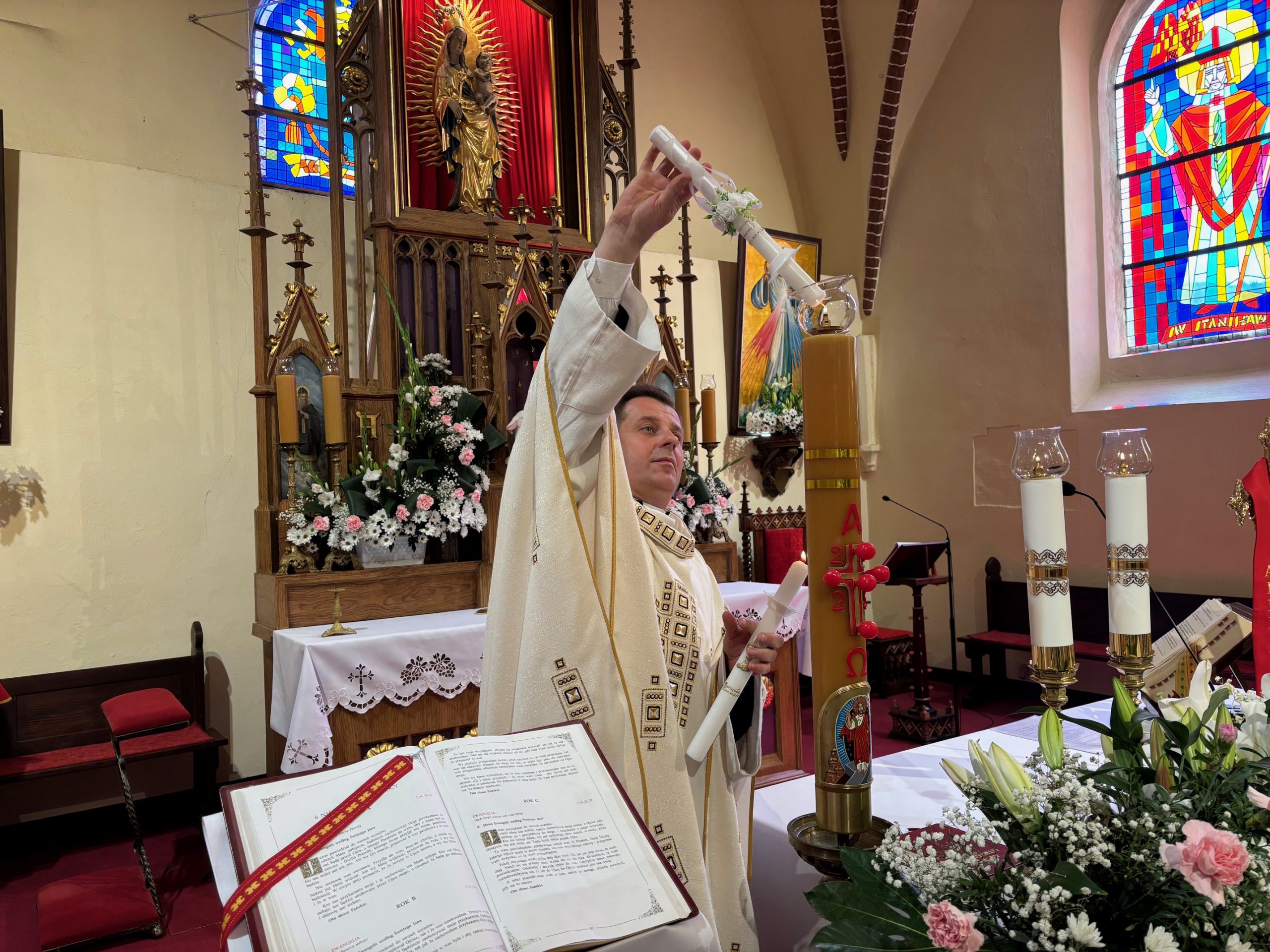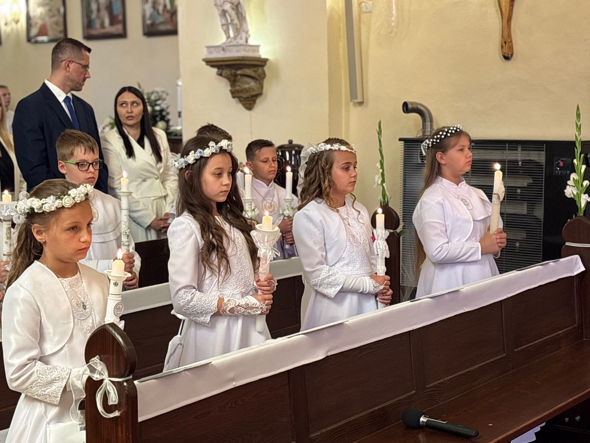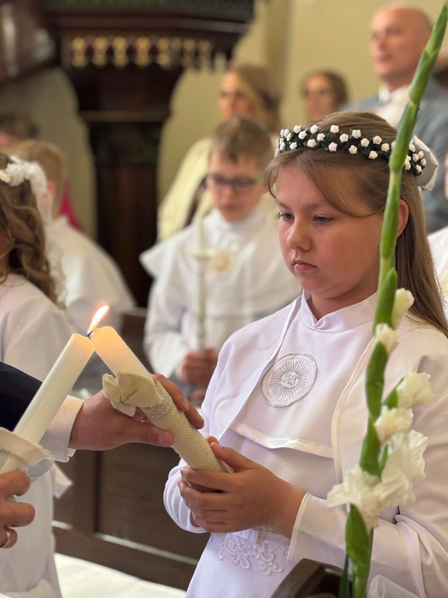 W sobotę 24 maja w naszej wspólnocie parafialnej odbyła się Pierwsza Komunia Święta. W kazaniu ks. Marcin. zachęcał nie tylko dzieci, ale i ich rodziców do częstego korzystania z sakramentów, za przykład ukazując postać bł. Carla Acutisa. Mówił: dzisiejsza Ewangelia zaczyna się od bardzo ważnych słów, nad którymi chciałbym się dziś zatrzymać. Przypomnijmy je sobie: „Jezus powiedział do swoich uczniów: «Jeśli Mnie kto miłuje, będzie zachowywał moją naukę (…)»”. Jak rozumieć te słowa? Kto będzie słuchał Jego słów i żył zgodnie z tym, co mówi Pan Jezus – to właśnie oznacza zachowywanie czyjejś nauki. Nie chodzi o to, aby coś tylko spisać i zachować na później, ale o to, aby przyjąć taką naukę do serca i prowadzić życie zgodne z przyjętymi wskazówkami. Tak rozumiał to Carlo, wasz patron sakramentu. I niech On będzie motywacją dla was. Po komunii dzieci podziękowały za dar Eucharystii, przyrzekając, że będą chętnie przystępować do sakramentu pokuty i do Komunii Świętej. Na koniec Mszy św. ks. Marcin poświęcił pamiątkowe obrazki, które następnie zostały wręczone dzieciom. Na popołudniowym nabożeństwie majowym dzieci zawierzyły Matce Bożej swoją nową drogę i poprosiły Maryję o opiekę.