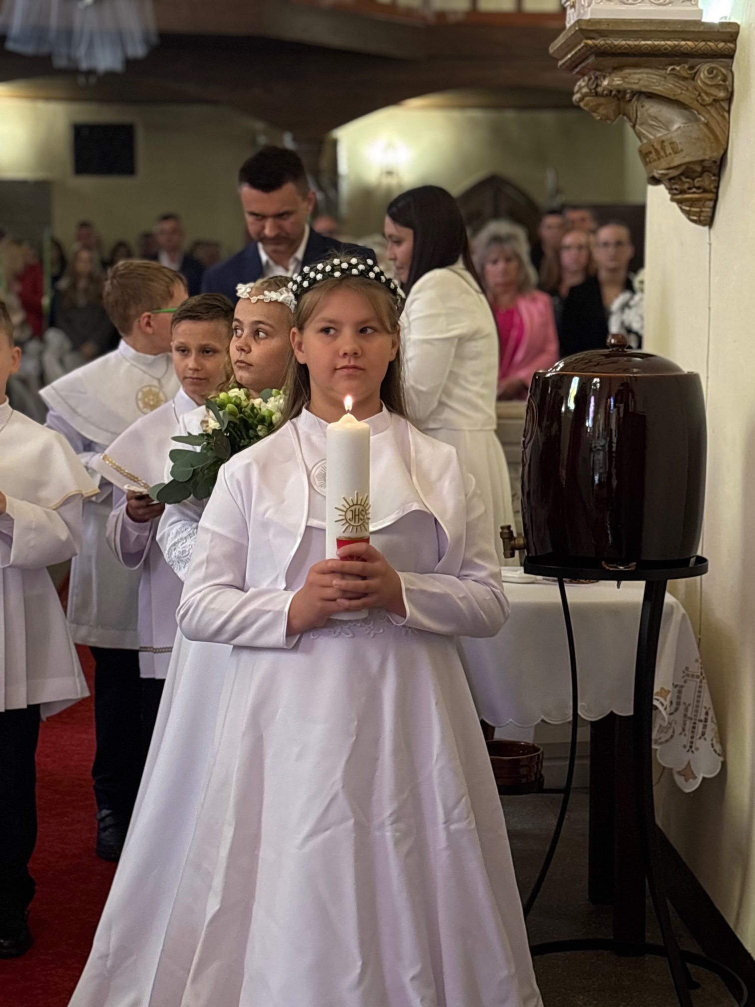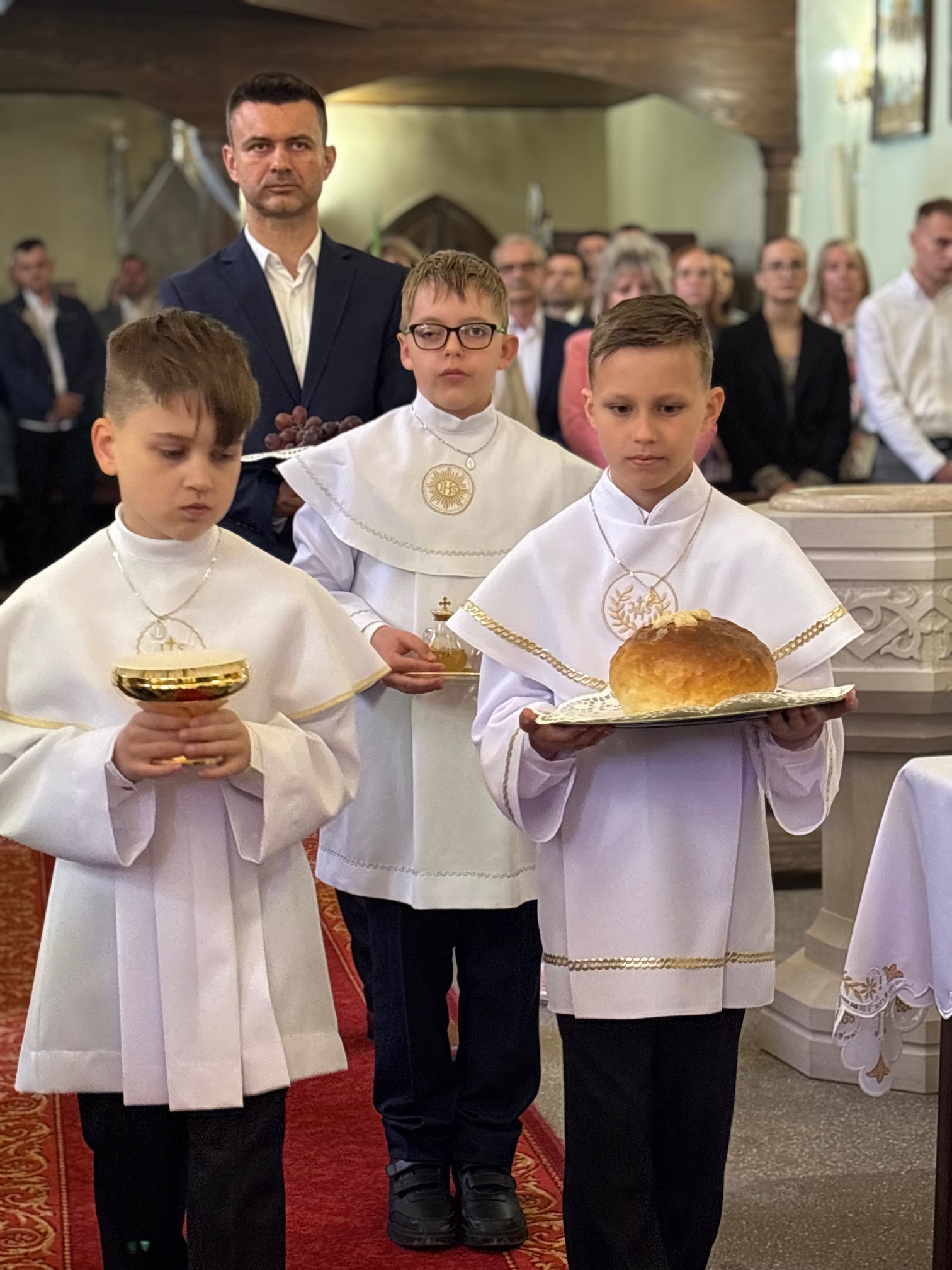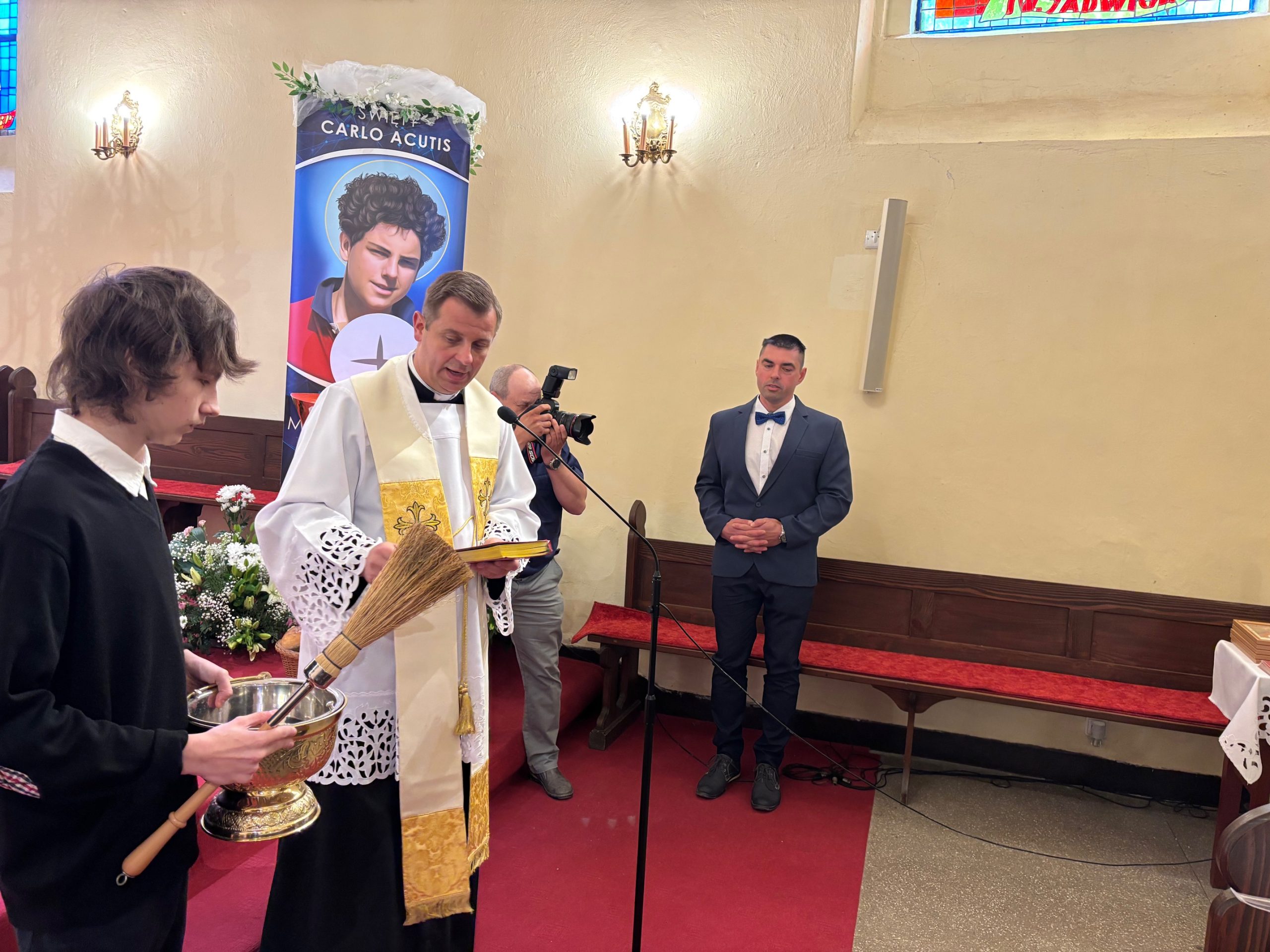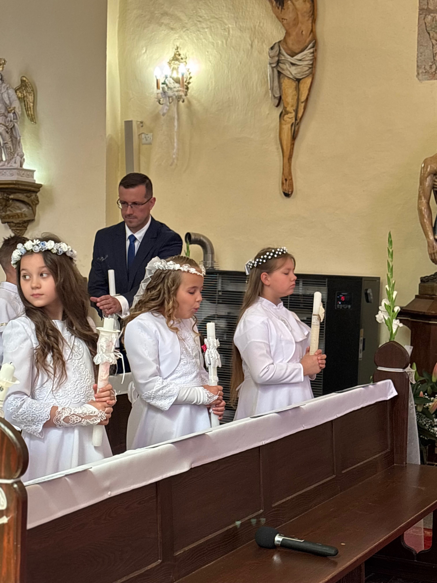 W sobotę 24 maja w naszej wspólnocie parafialnej odbyła się Pierwsza Komunia Święta. W kazaniu ks. Marcin. zachęcał nie tylko dzieci, ale i ich rodziców do częstego korzystania z sakramentów, za przykład ukazując postać bł. Carla Acutisa. Mówił: dzisiejsza Ewangelia zaczyna się od bardzo ważnych słów, nad którymi chciałbym się dziś zatrzymać. Przypomnijmy je sobie: „Jezus powiedział do swoich uczniów: «Jeśli Mnie kto miłuje, będzie zachowywał moją naukę (…)»”. Jak rozumieć te słowa? Kto będzie słuchał Jego słów i żył zgodnie z tym, co mówi Pan Jezus – to właśnie oznacza zachowywanie czyjejś nauki. Nie chodzi o to, aby coś tylko spisać i zachować na później, ale o to, aby przyjąć taką naukę do serca i prowadzić życie zgodne z przyjętymi wskazówkami. Tak rozumiał to Carlo, wasz patron sakramentu. I niech On będzie motywacją dla was. Po komunii dzieci podziękowały za dar Eucharystii, przyrzekając, że będą chętnie przystępować do sakramentu pokuty i do Komunii Świętej. Na koniec Mszy św. ks. Marcin poświęcił pamiątkowe obrazki, które następnie zostały wręczone dzieciom. Na popołudniowym nabożeństwie majowym dzieci zawierzyły Matce Bożej swoją nową drogę i poprosiły Maryję o opiekę.