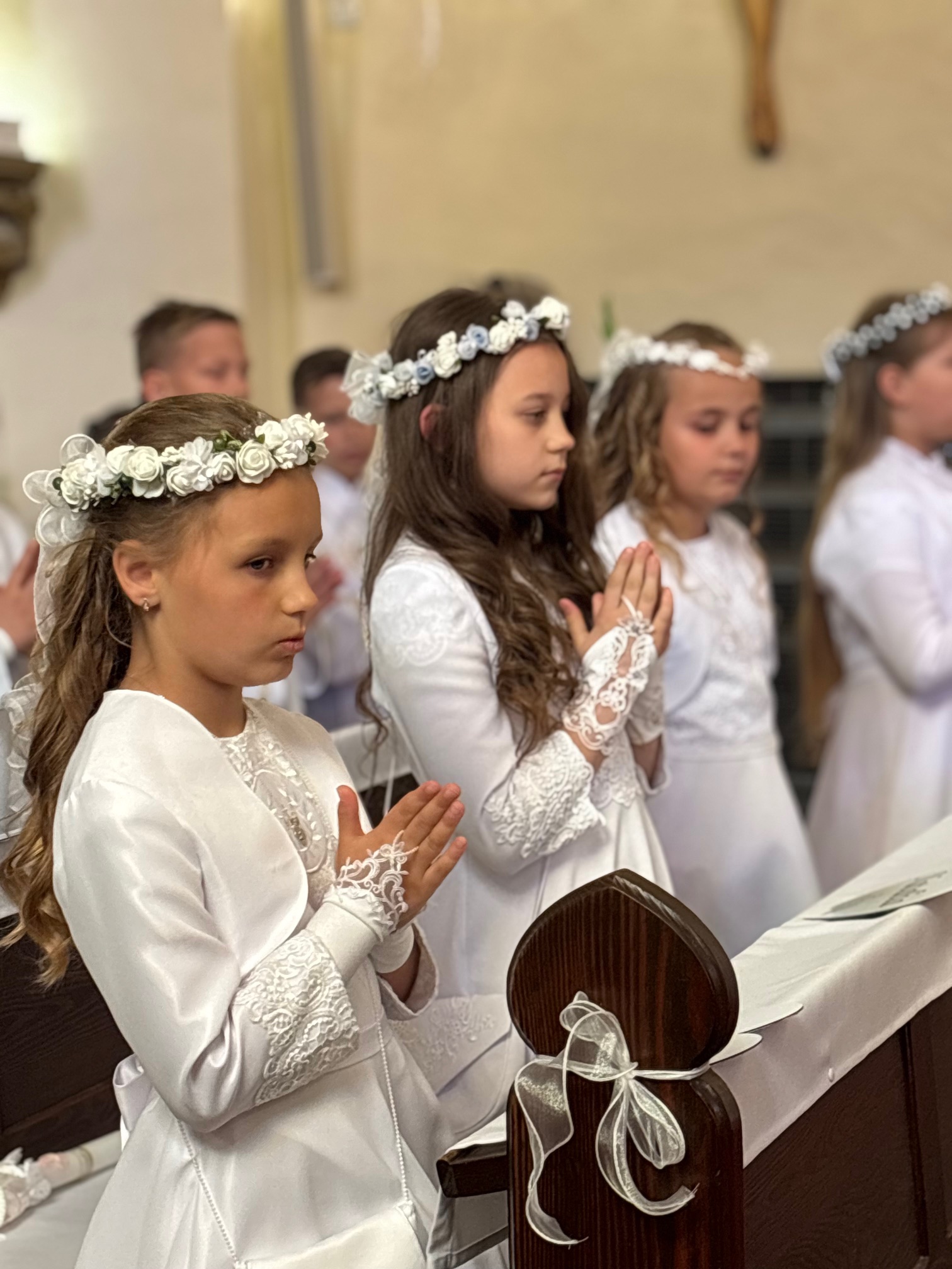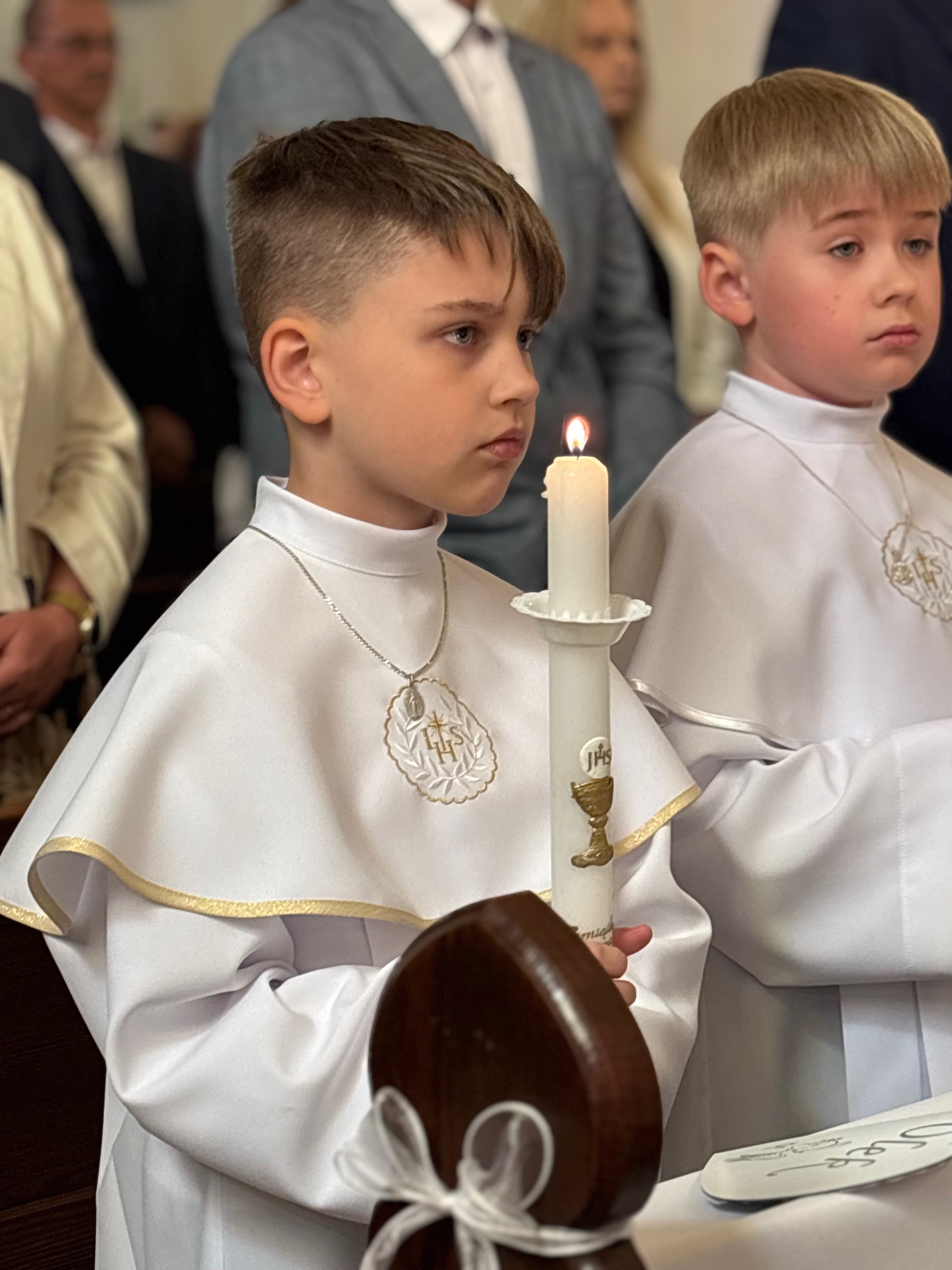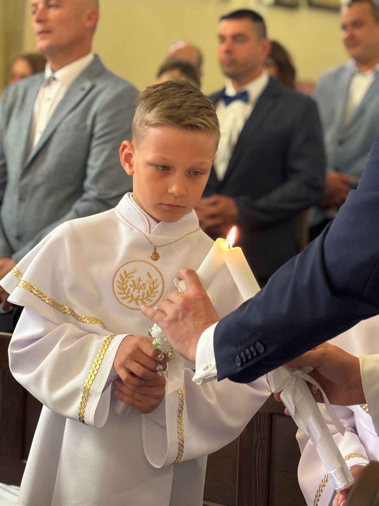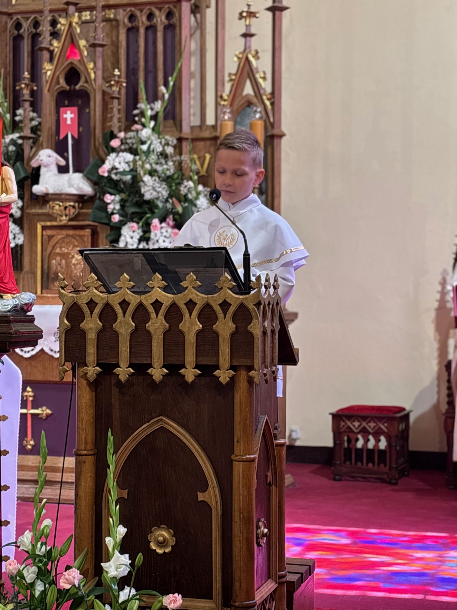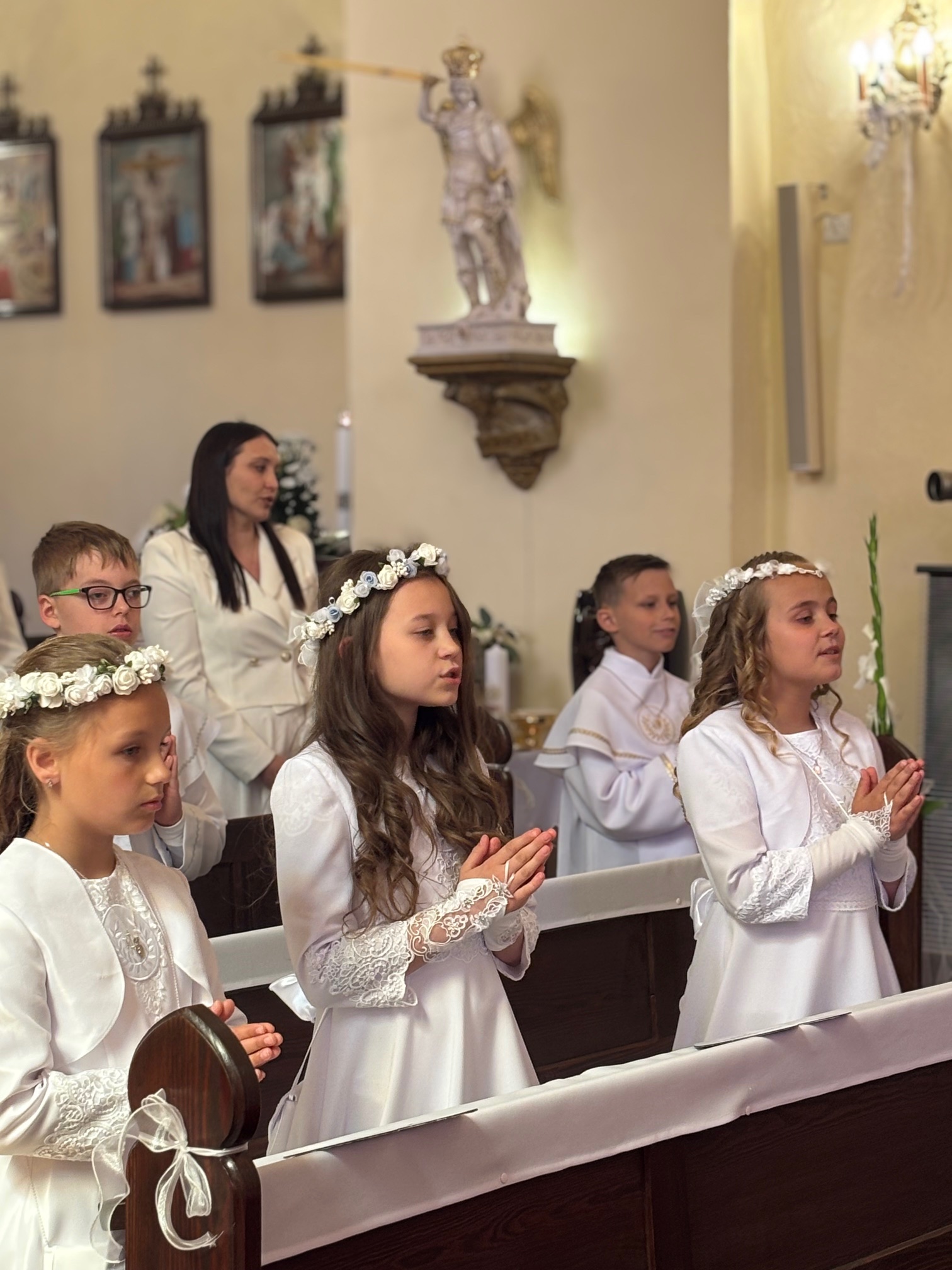 W sobotę 24 maja w naszej wspólnocie parafialnej odbyła się Pierwsza Komunia Święta. W kazaniu ks. Marcin. zachęcał nie tylko dzieci, ale i ich rodziców do częstego korzystania z sakramentów, za przykład ukazując postać bł. Carla Acutisa. Mówił: dzisiejsza Ewangelia zaczyna się od bardzo ważnych słów, nad którymi chciałbym się dziś zatrzymać. Przypomnijmy je sobie: „Jezus powiedział do swoich uczniów: «Jeśli Mnie kto miłuje, będzie zachowywał moją naukę (…)»”. Jak rozumieć te słowa? Kto będzie słuchał Jego słów i żył zgodnie z tym, co mówi Pan Jezus – to właśnie oznacza zachowywanie czyjejś nauki. Nie chodzi o to, aby coś tylko spisać i zachować na później, ale o to, aby przyjąć taką naukę do serca i prowadzić życie zgodne z przyjętymi wskazówkami. Tak rozumiał to Carlo, wasz patron sakramentu. I niech On będzie motywacją dla was. Po komunii dzieci podziękowały za dar Eucharystii, przyrzekając, że będą chętnie przystępować do sakramentu pokuty i do Komunii Świętej. Na koniec Mszy św. ks. Marcin poświęcił pamiątkowe obrazki, które następnie zostały wręczone dzieciom. Na popołudniowym nabożeństwie majowym dzieci zawierzyły Matce Bożej swoją nową drogę i poprosiły Maryję o opiekę.
