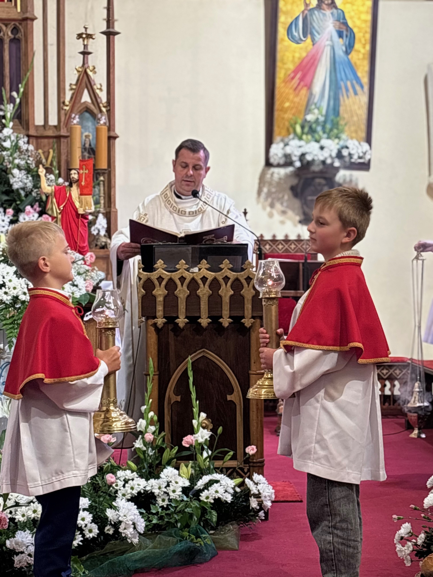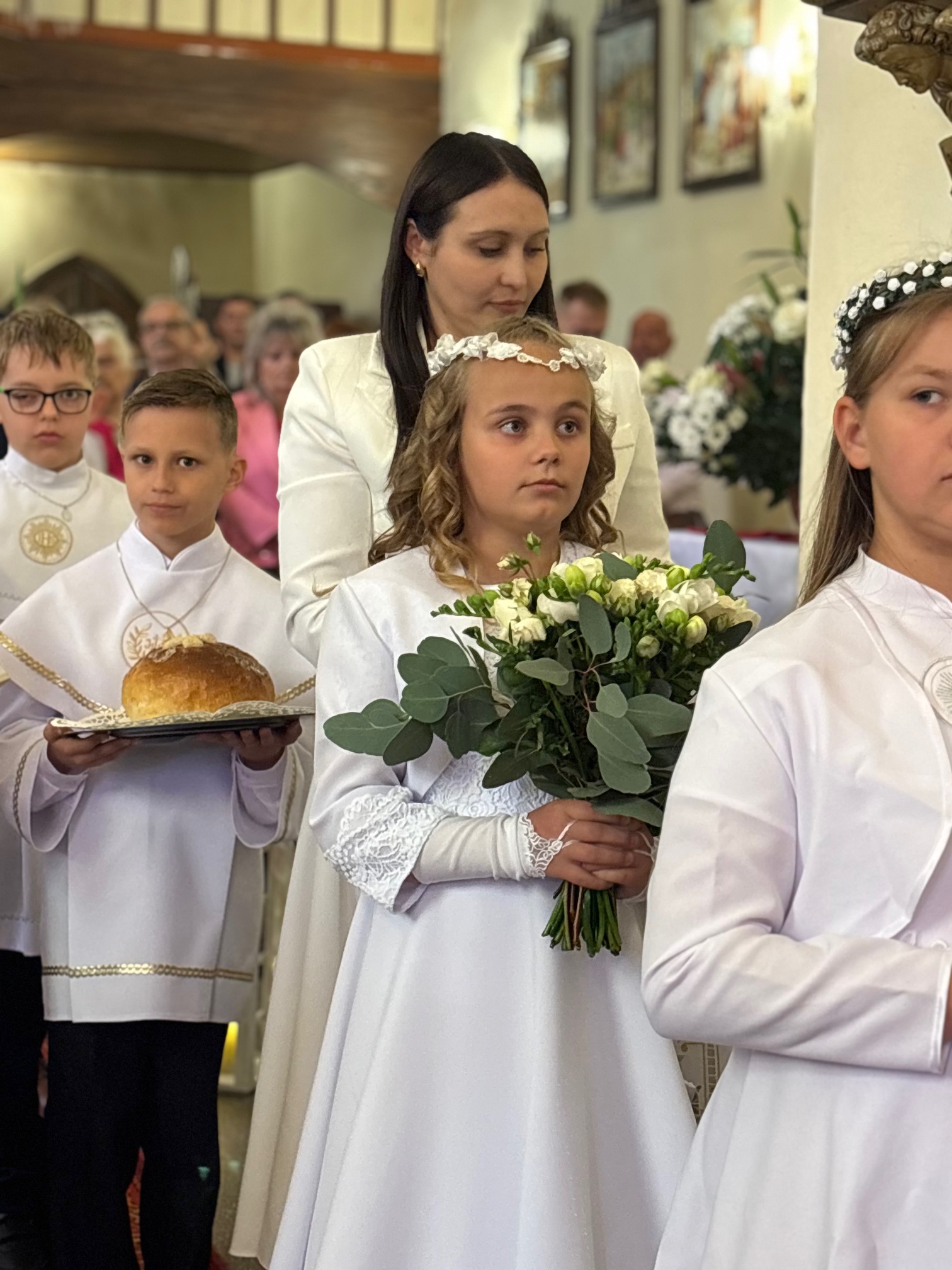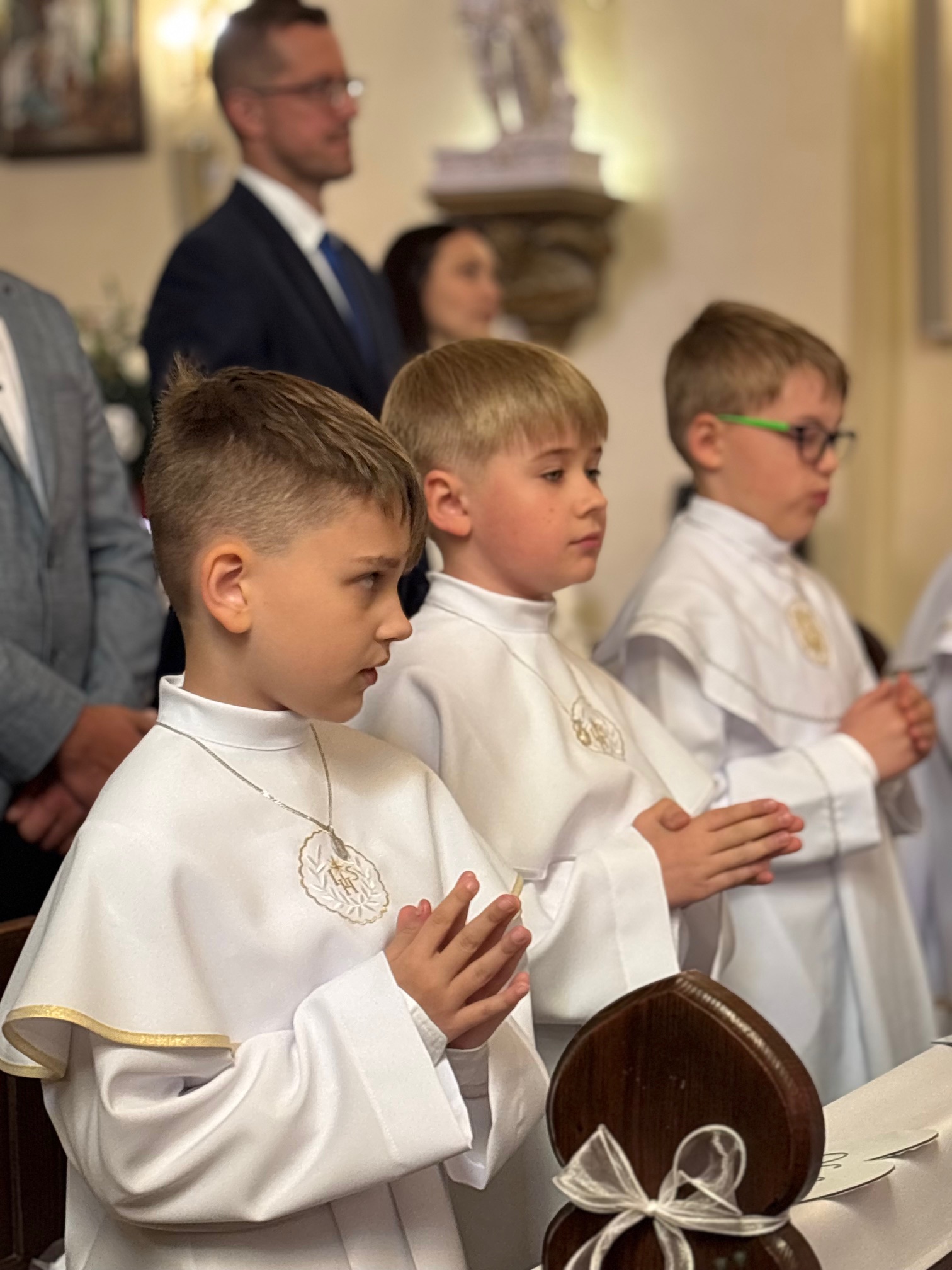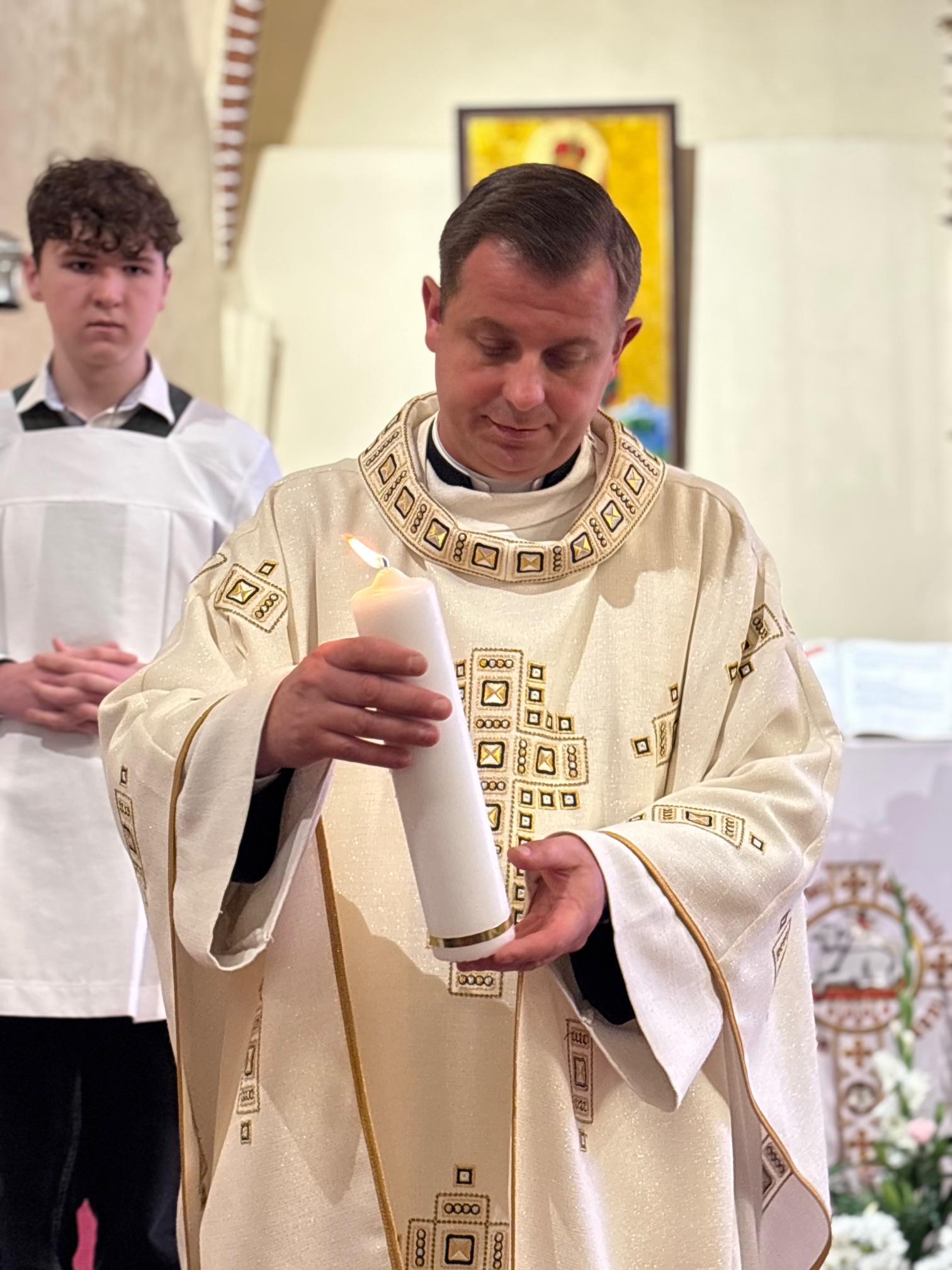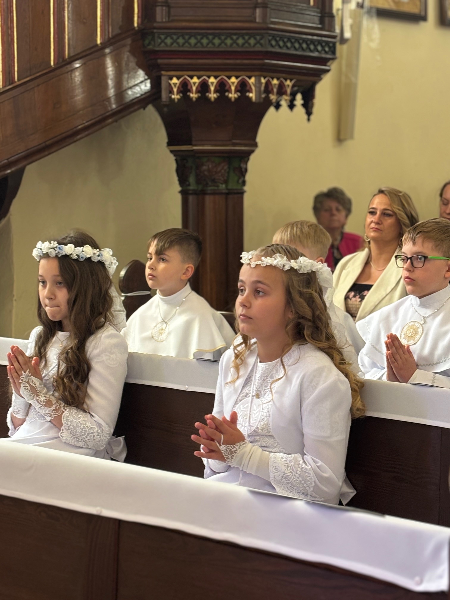 W sobotę 24 maja w naszej wspólnocie parafialnej odbyła się Pierwsza Komunia Święta. W kazaniu ks. Marcin. zachęcał nie tylko dzieci, ale i ich rodziców do częstego korzystania z sakramentów, za przykład ukazując postać bł. Carla Acutisa. Mówił: dzisiejsza Ewangelia zaczyna się od bardzo ważnych słów, nad którymi chciałbym się dziś zatrzymać. Przypomnijmy je sobie: „Jezus powiedział do swoich uczniów: «Jeśli Mnie kto miłuje, będzie zachowywał moją naukę (…)»”. Jak rozumieć te słowa? Kto będzie słuchał Jego słów i żył zgodnie z tym, co mówi Pan Jezus – to właśnie oznacza zachowywanie czyjejś nauki. Nie chodzi o to, aby coś tylko spisać i zachować na później, ale o to, aby przyjąć taką naukę do serca i prowadzić życie zgodne z przyjętymi wskazówkami. Tak rozumiał to Carlo, wasz patron sakramentu. I niech On będzie motywacją dla was. Po komunii dzieci podziękowały za dar Eucharystii, przyrzekając, że będą chętnie przystępować do sakramentu pokuty i do Komunii Świętej. Na koniec Mszy św. ks. Marcin poświęcił pamiątkowe obrazki, które następnie zostały wręczone dzieciom. Na popołudniowym nabożeństwie majowym dzieci zawierzyły Matce Bożej swoją nową drogę i poprosiły Maryję o opiekę.