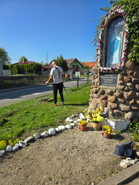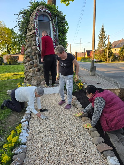 W dniach 28-29 kwietnia przeprowadzono prace porządkowe przy kapliczce Matki Bożej, przygotowując ją do nabożeństw majowych. Trawa wokół kapliczki została wykoszona, chwasty usunięte, kwiaty posadzone. Pomalowane zostalo wnętrze kapliczki oraz wyrównana zaprawą podłoga, na której została ustawiona ikona Matki Bożej. Kapliczka została starannie oczyszczona, a wokół niej ustawiono kwiaty i świece. Prace te mają na celu zapewnienie godnej atmosfery podczas majowych nabożeństw oraz utrzymanie porządku w otoczeniu kapliczki.