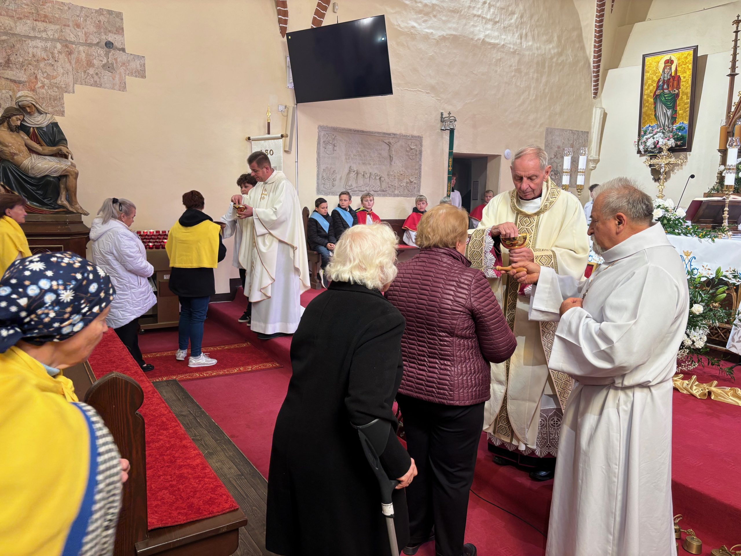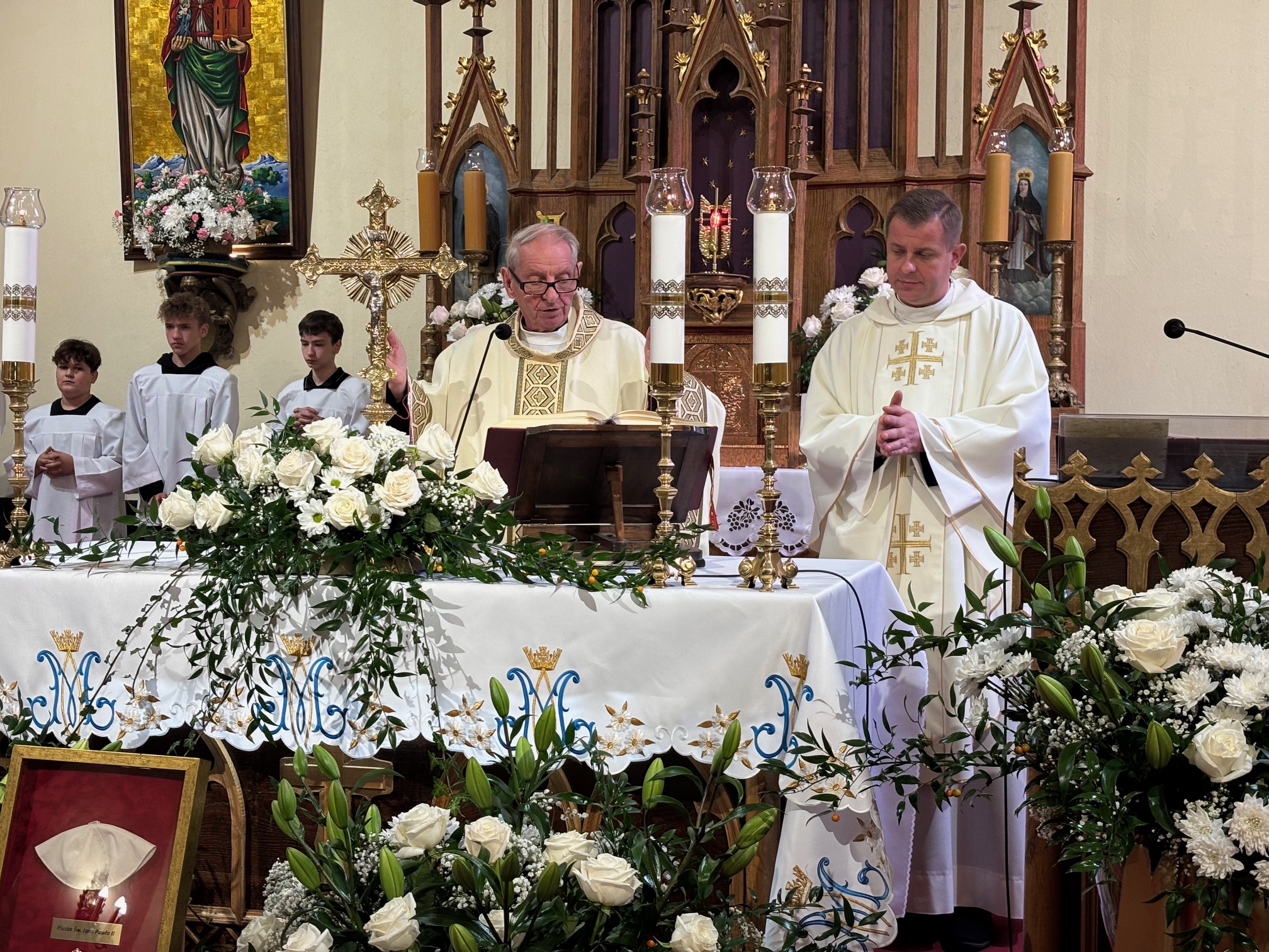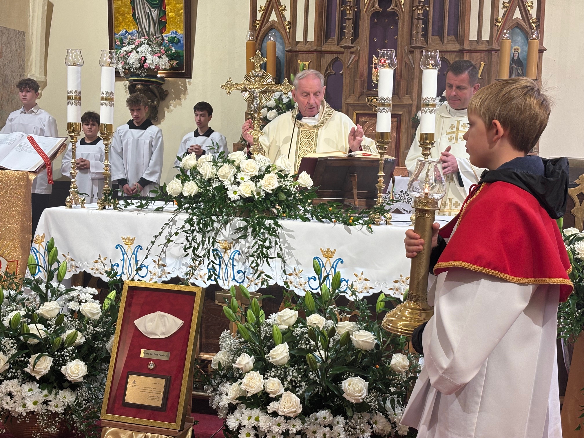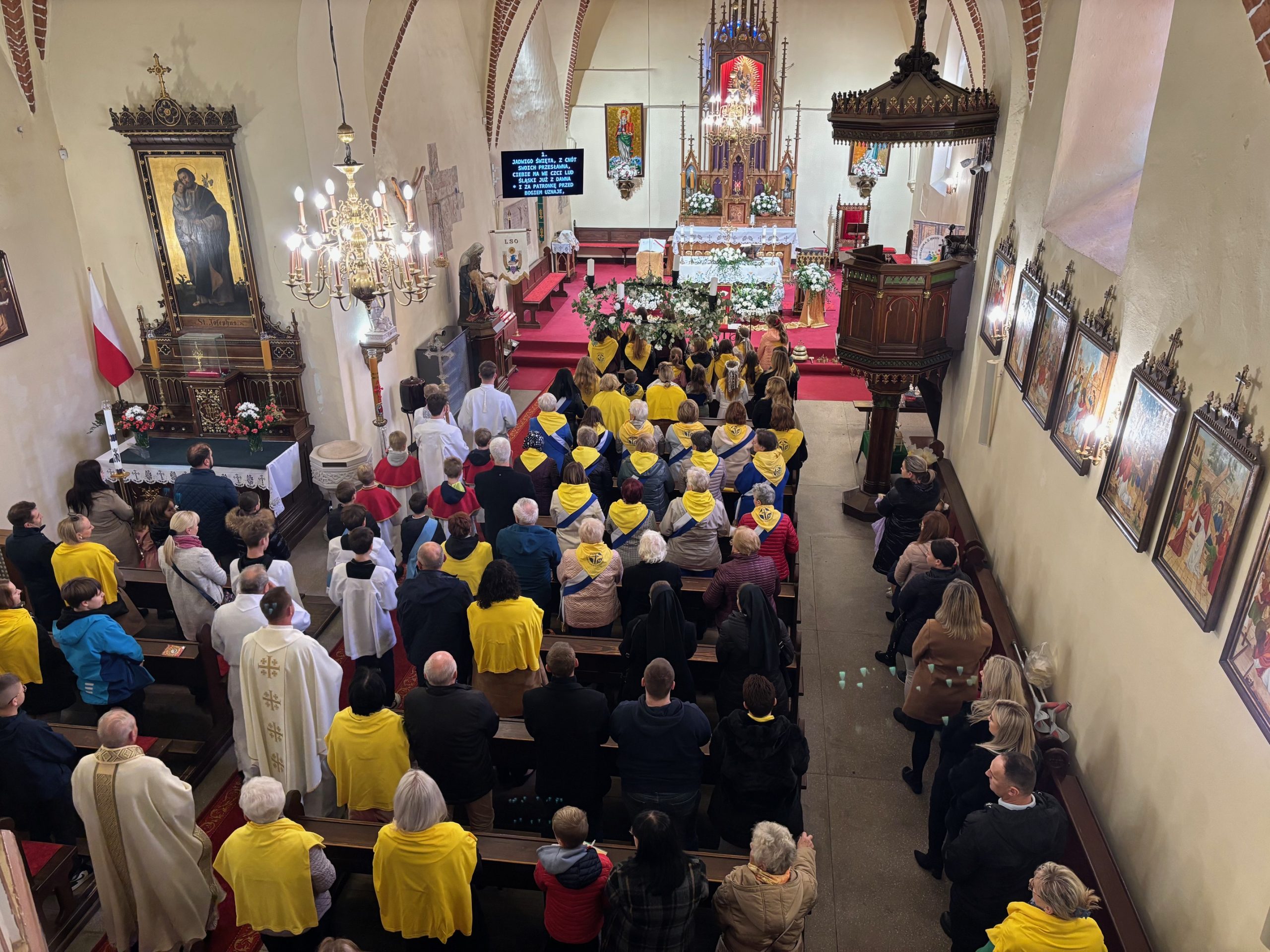 W niedzielę, 12 października, w mokrzeszowskiej wspólnocie parafialnej obchodziliśmy odpust ku czci Świętej Jadwigi. O godz. 11.00 rozpoczęła się Suma odpustowa, której przewodniczył ks. Prałat Władysław Nowobilski z Ciśca. Uroczystej Mszy Świętej towarzyszył śpiew parafialnego chóru i zespołu muzycznego z Wrocławia. W kazaniu ks. Prałat pokazał św. Jadwigę, księżnę, jako tę, która troszczyła się o biednych, ale i o kościoły, budując je, aby człowiek mógł spotkać się z Bogiem. Duchowny przypomniał, że 16 października, we wspomnienie św. Jadwigi, kardynał Karol Wojtyła został wybrany na papieża. Papież, również zatroskany o ducha człowieka, dbał o umożliwianie budowania kościołów. Ks. Prałat przypomniał budowę wzniesionego w 24 godziny kościoła w Ciścu, wielką determinację kardynała, częste przyjazdy i wdzięczność za dbanie o ten Dom Boży. Po Mszy św. została odmówiona litania do św. Jadwigi i wyruszyła uroczysta procesja wokół kościoła. Przed kościołem można było nabyć kremówki, wypić kawę, wylosować karteczkę z myślą Papieża i wpisać się do księgi pamiątkowej. Dziękując miłemu gościowi za przybycie i przewodniczenie Eucharystii, obiecujemy pamięć i modlitwę.