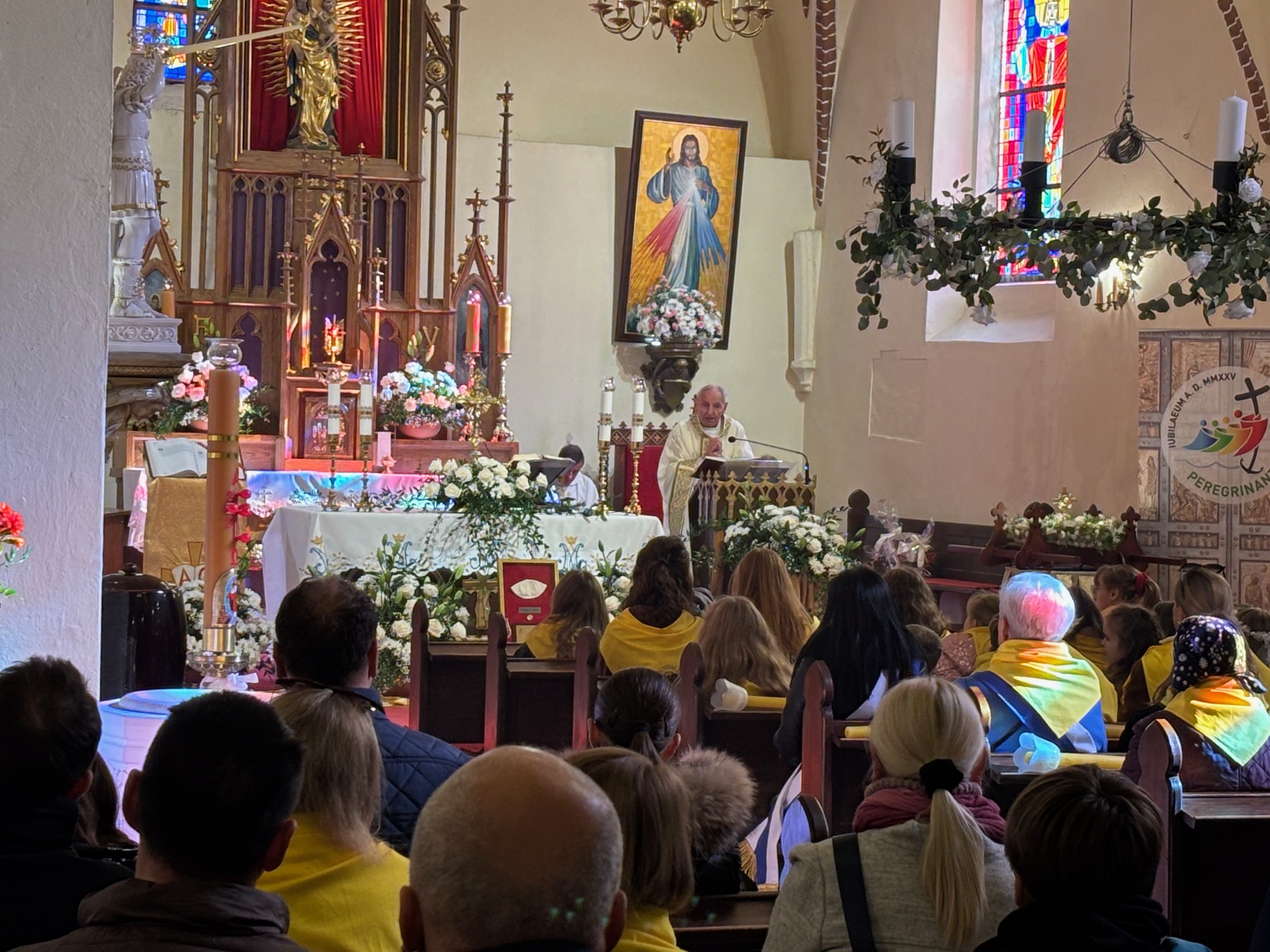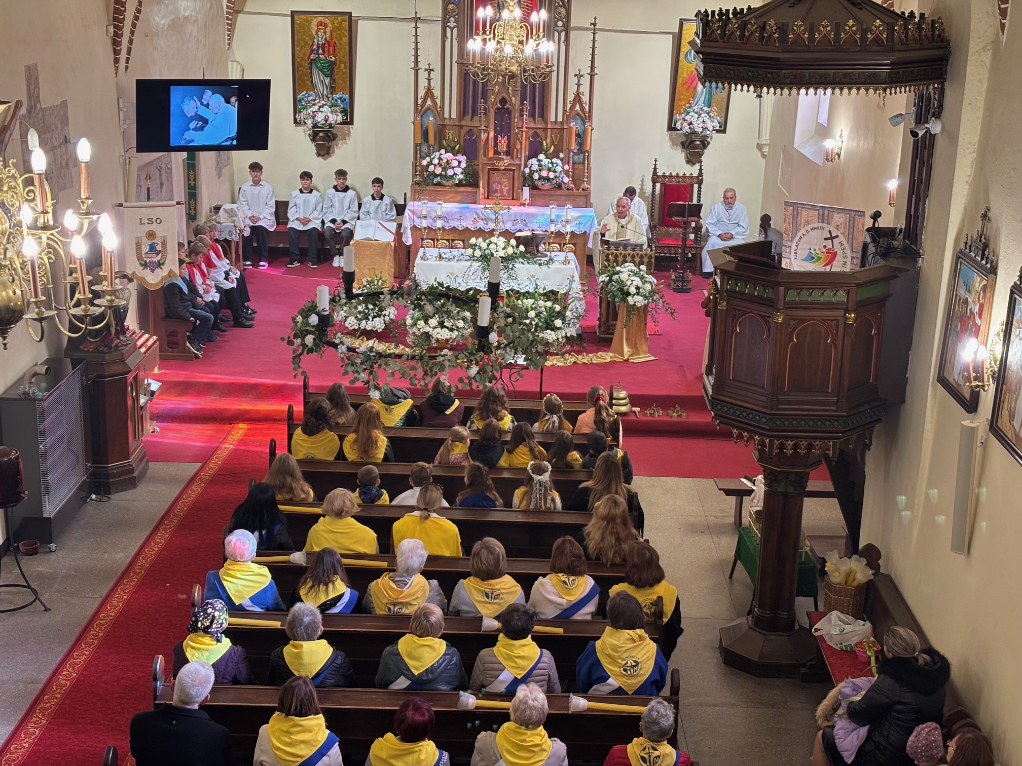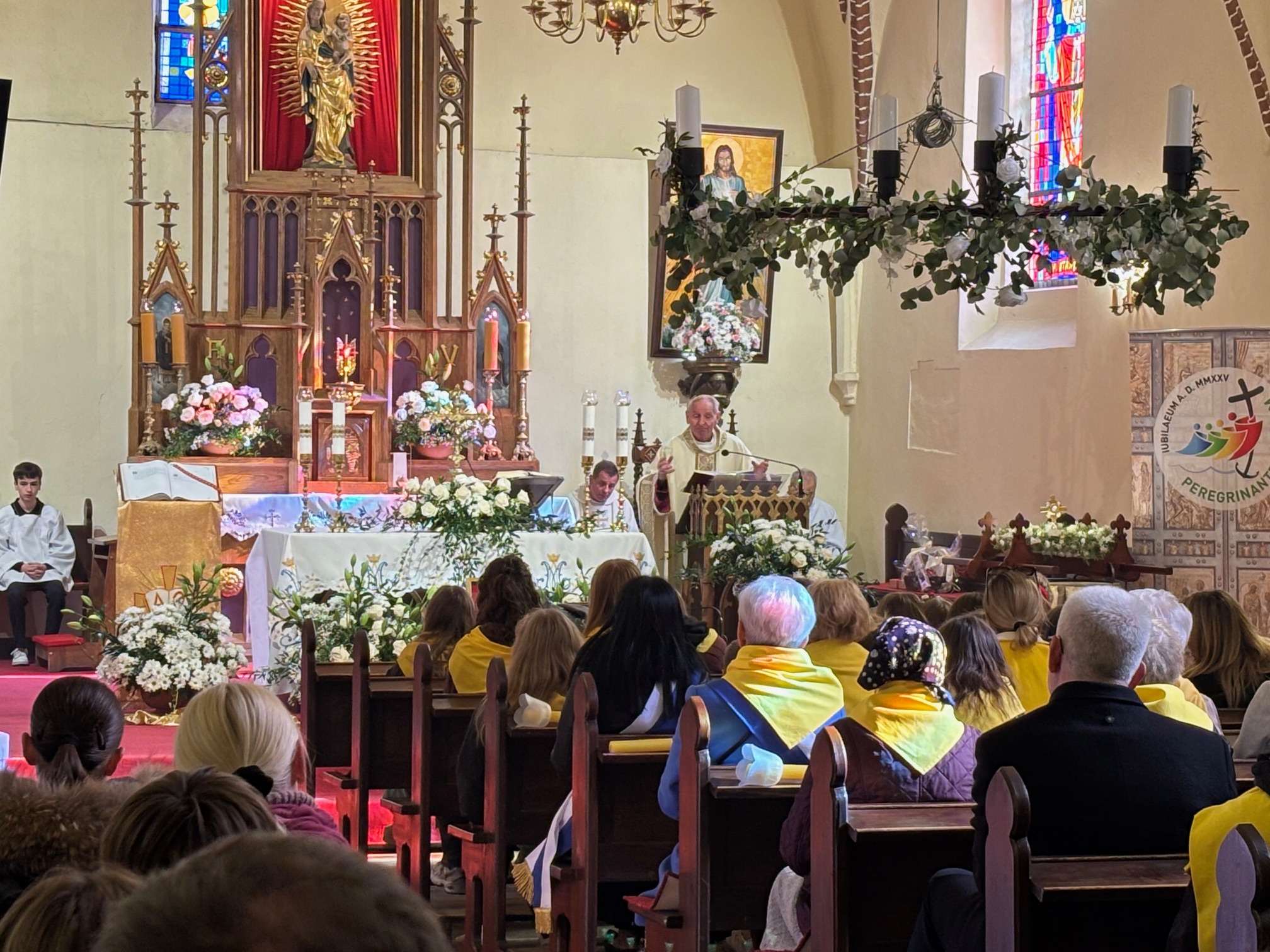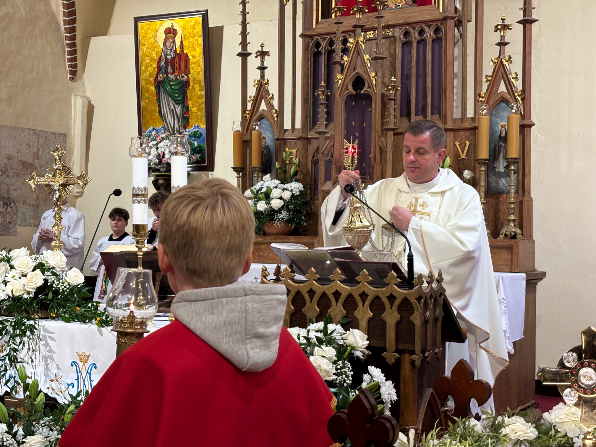 W niedzielę, 12 października, w mokrzeszowskiej wspólnocie parafialnej obchodziliśmy odpust ku czci Świętej Jadwigi. O godz. 11.00 rozpoczęła się Suma odpustowa, której przewodniczył ks. Prałat Władysław Nowobilski z Ciśca. Uroczystej Mszy Świętej towarzyszył śpiew parafialnego chóru i zespołu muzycznego z Wrocławia. W kazaniu ks. Prałat pokazał św. Jadwigę, księżnę, jako tę, która troszczyła się o biednych, ale i o kościoły, budując je, aby człowiek mógł spotkać się z Bogiem. Duchowny przypomniał, że 16 października, we wspomnienie św. Jadwigi, kardynał Karol Wojtyła został wybrany na papieża. Papież, również zatroskany o ducha człowieka, dbał o umożliwianie budowania kościołów. Ks. Prałat przypomniał budowę wzniesionego w 24 godziny kościoła w Ciścu, wielką determinację kardynała, częste przyjazdy i wdzięczność za dbanie o ten Dom Boży. Po Mszy św. została odmówiona litania do św. Jadwigi i wyruszyła uroczysta procesja wokół kościoła. Przed kościołem można było nabyć kremówki, wypić kawę, wylosować karteczkę z myślą Papieża i wpisać się do księgi pamiątkowej. Dziękując miłemu gościowi za przybycie i przewodniczenie Eucharystii, obiecujemy pamięć i modlitwę.