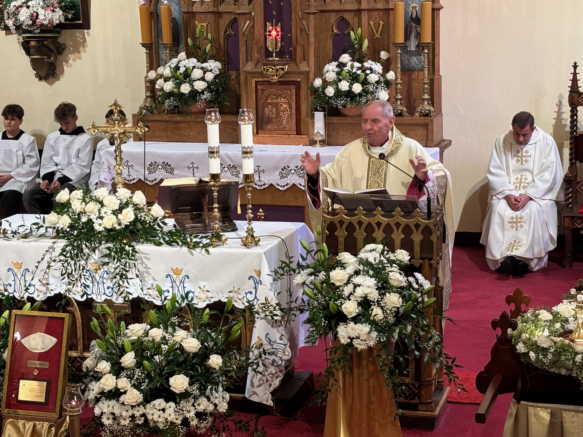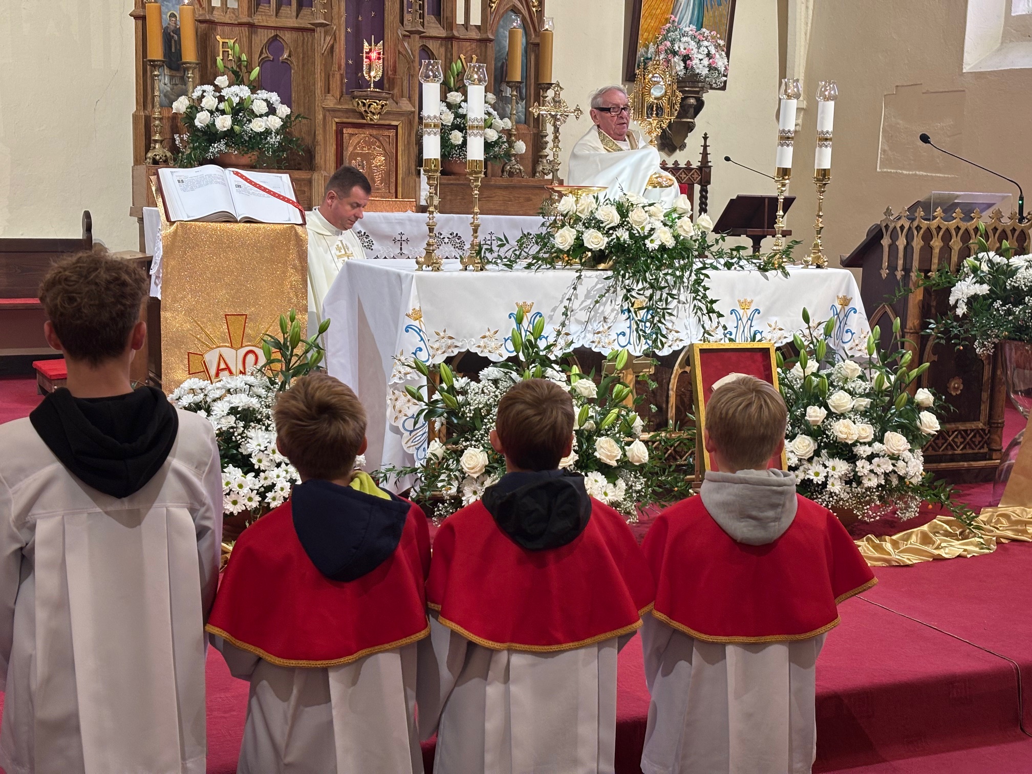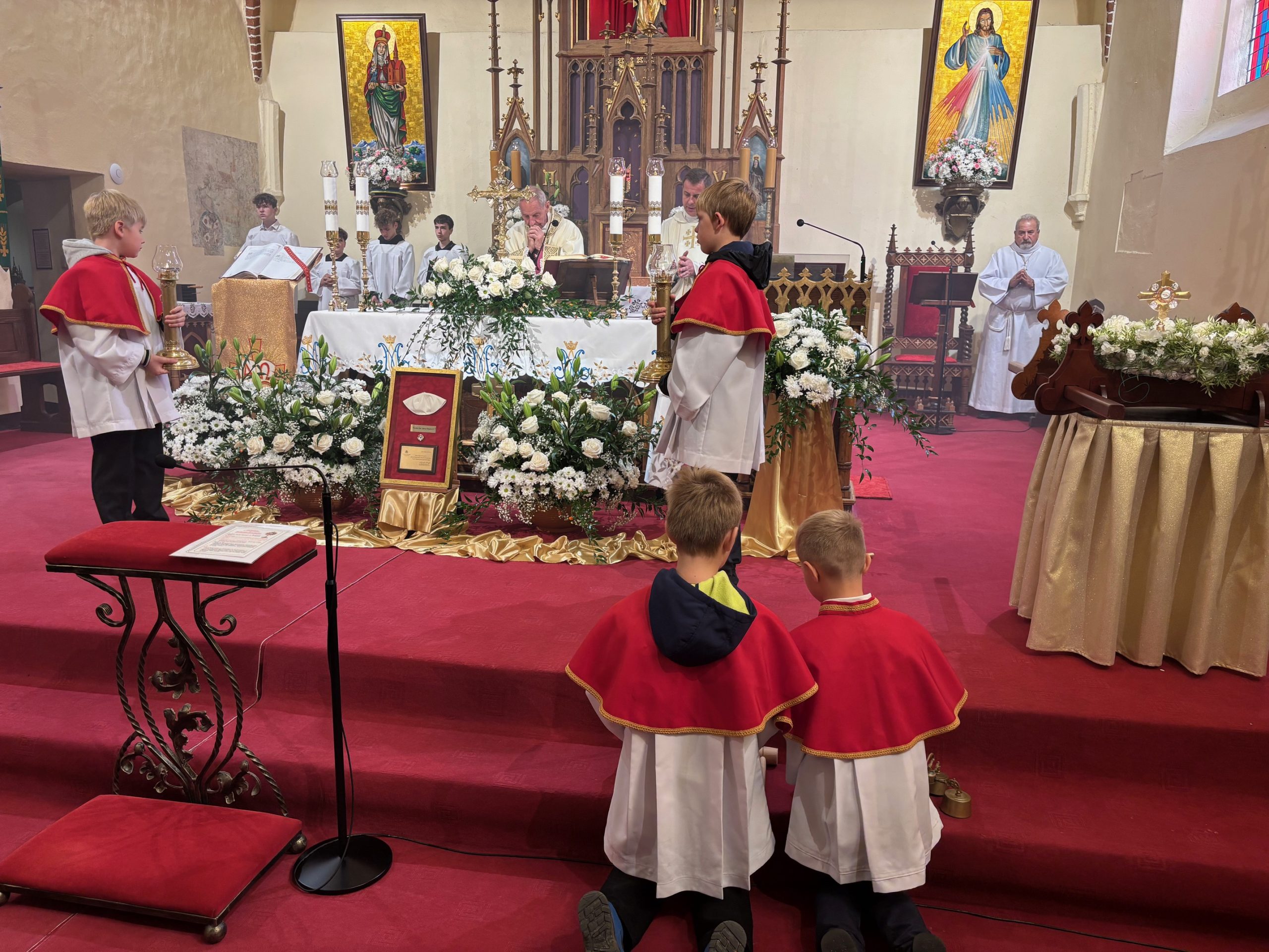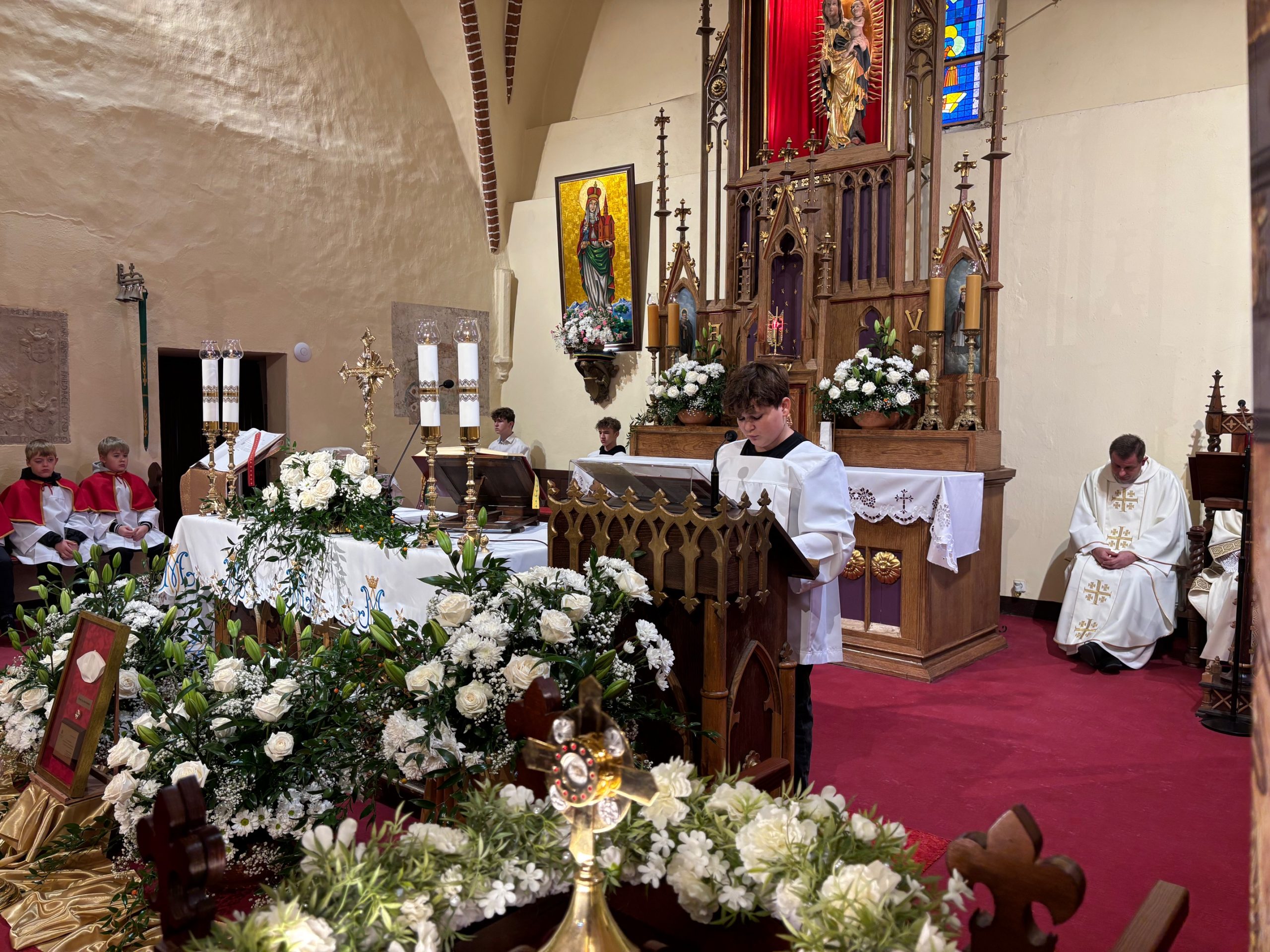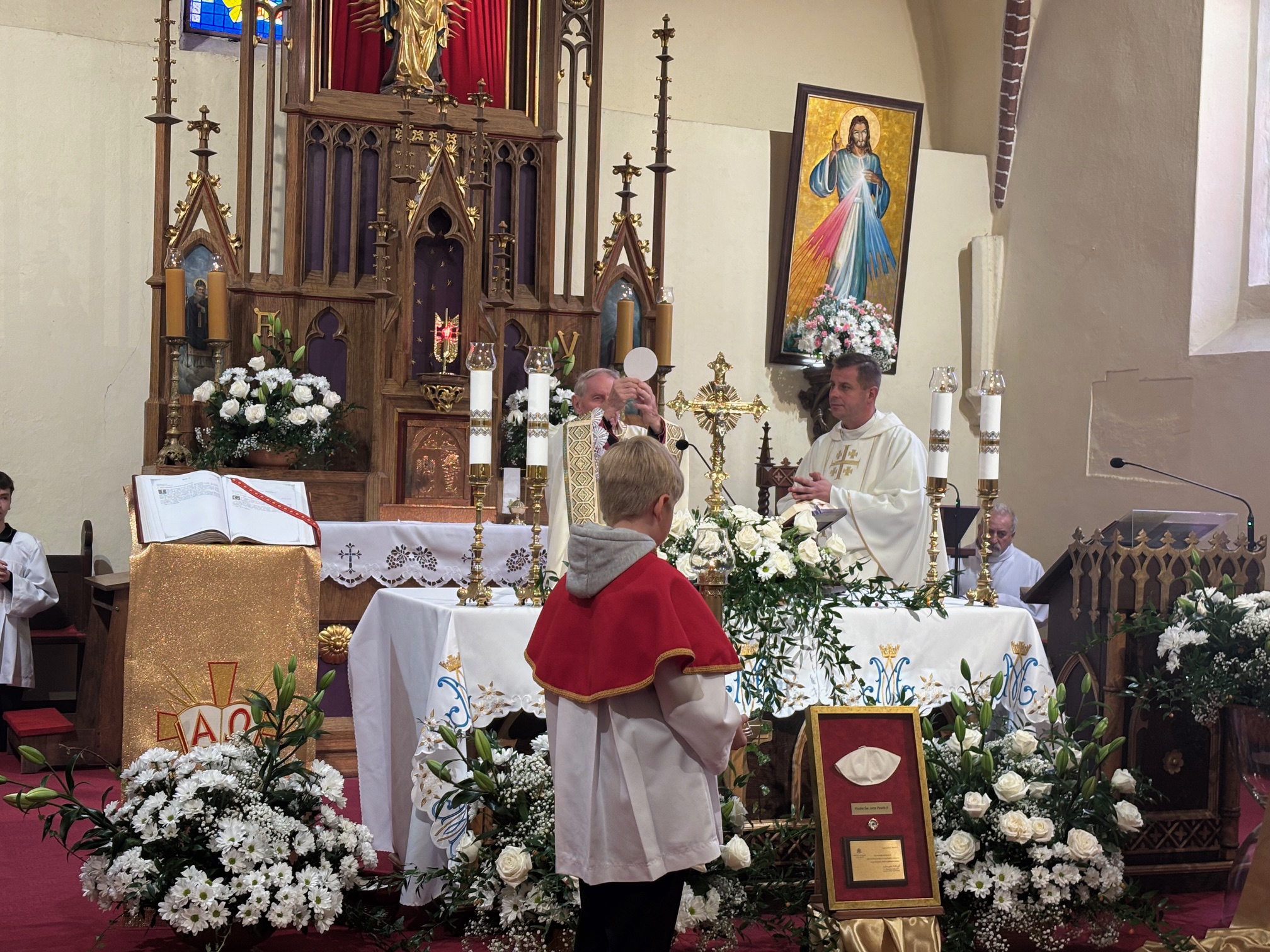 W niedzielę, 12 października, w mokrzeszowskiej wspólnocie parafialnej obchodziliśmy odpust ku czci Świętej Jadwigi. O godz. 11.00 rozpoczęła się Suma odpustowa, której przewodniczył ks. Prałat Władysław Nowobilski z Ciśca. Uroczystej Mszy Świętej towarzyszył śpiew parafialnego chóru i zespołu muzycznego z Wrocławia. W kazaniu ks. Prałat pokazał św. Jadwigę, księżnę, jako tę, która troszczyła się o biednych, ale i o kościoły, budując je, aby człowiek mógł spotkać się z Bogiem. Duchowny przypomniał, że 16 października, we wspomnienie św. Jadwigi, kardynał Karol Wojtyła został wybrany na papieża. Papież, również zatroskany o ducha człowieka, dbał o umożliwianie budowania kościołów. Ks. Prałat przypomniał budowę wzniesionego w 24 godziny kościoła w Ciścu, wielką determinację kardynała, częste przyjazdy i wdzięczność za dbanie o ten Dom Boży. Po Mszy św. została odmówiona litania do św. Jadwigi i wyruszyła uroczysta procesja wokół kościoła. Przed kościołem można było nabyć kremówki, wypić kawę, wylosować karteczkę z myślą Papieża i wpisać się do księgi pamiątkowej. Dziękując miłemu gościowi za przybycie i przewodniczenie Eucharystii, obiecujemy pamięć i modlitwę.