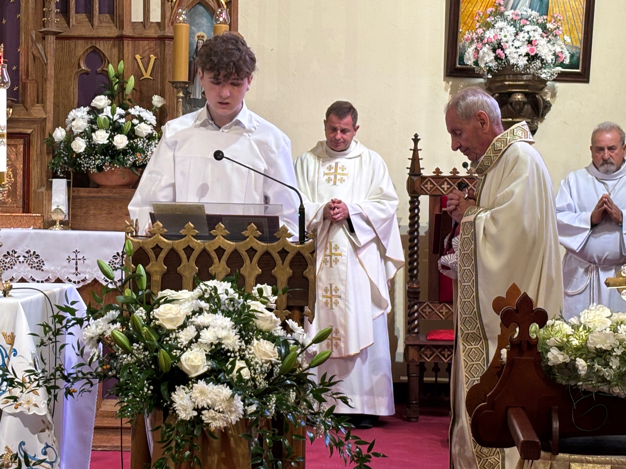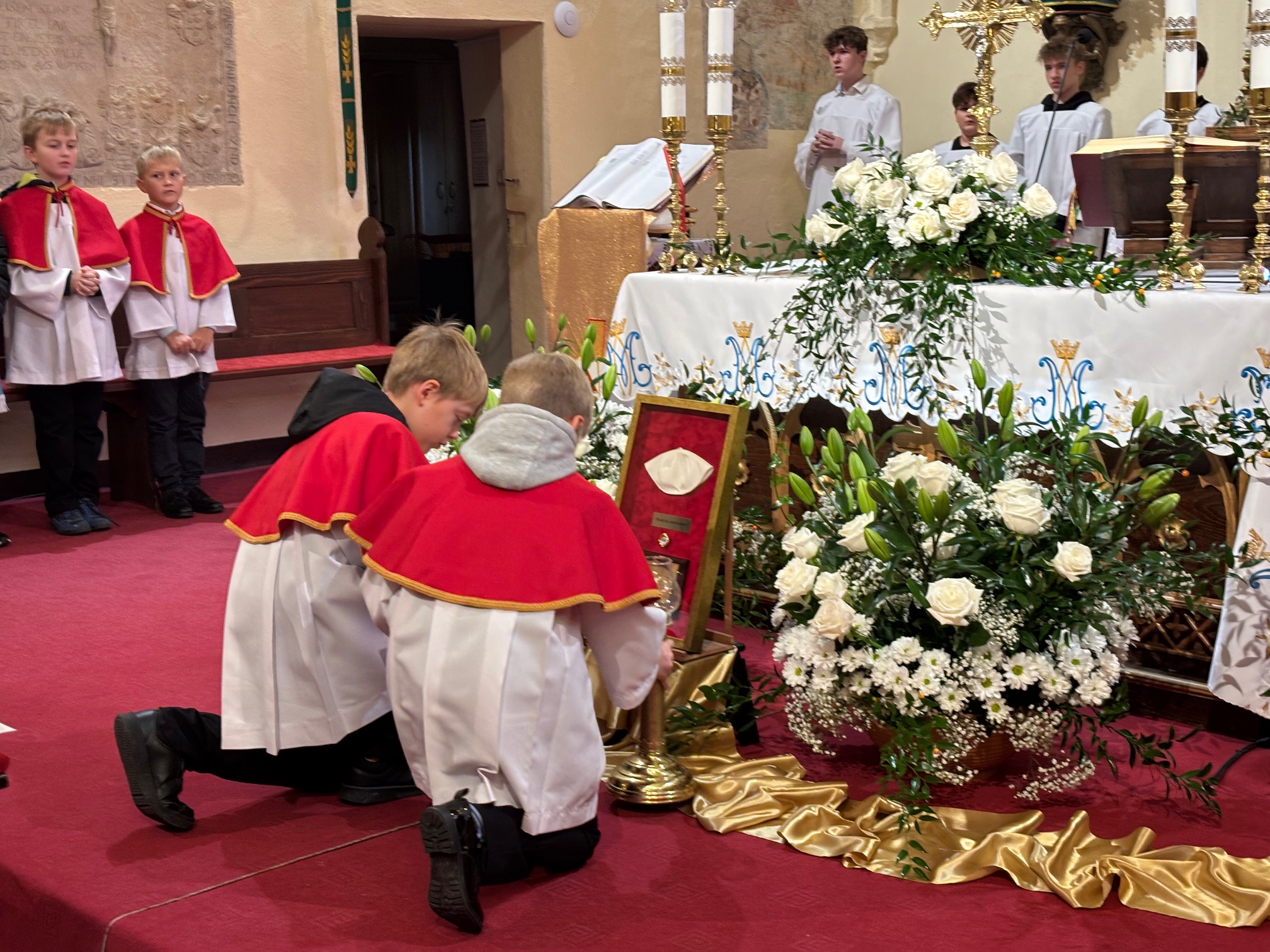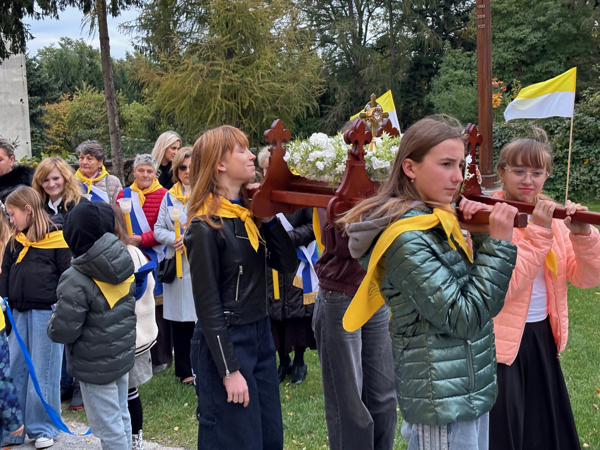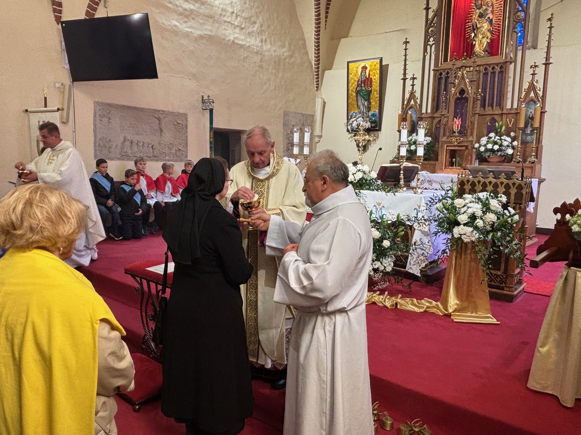 W niedzielę, 12 października, w mokrzeszowskiej wspólnocie parafialnej obchodziliśmy odpust ku czci Świętej Jadwigi. O godz. 11.00 rozpoczęła się Suma odpustowa, której przewodniczył ks. Prałat Władysław Nowobilski z Ciśca. Uroczystej Mszy Świętej towarzyszył śpiew parafialnego chóru i zespołu muzycznego z Wrocławia. W kazaniu ks. Prałat pokazał św. Jadwigę, księżnę, jako tę, która troszczyła się o biednych, ale i o kościoły, budując je, aby człowiek mógł spotkać się z Bogiem. Duchowny przypomniał, że 16 października, we wspomnienie św. Jadwigi, kardynał Karol Wojtyła został wybrany na papieża. Papież, również zatroskany o ducha człowieka, dbał o umożliwianie budowania kościołów. Ks. Prałat przypomniał budowę wzniesionego w 24 godziny kościoła w Ciścu, wielką determinację kardynała, częste przyjazdy i wdzięczność za dbanie o ten Dom Boży. Po Mszy św. została odmówiona litania do św. Jadwigi i wyruszyła uroczysta procesja wokół kościoła. Przed kościołem można było nabyć kremówki, wypić kawę, wylosować karteczkę z myślą Papieża i wpisać się do księgi pamiątkowej. Dziękując miłemu gościowi za przybycie i przewodniczenie Eucharystii, obiecujemy pamięć i modlitwę.
