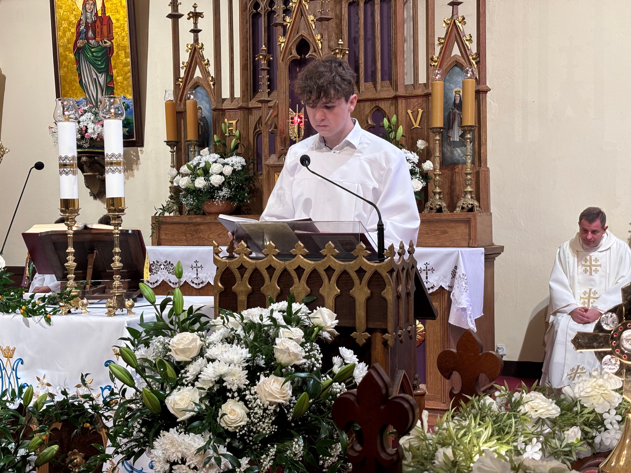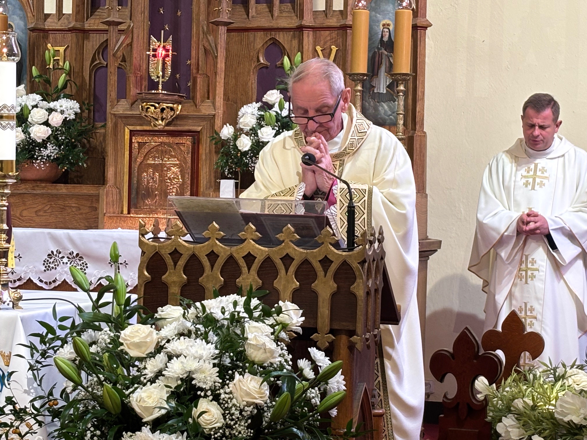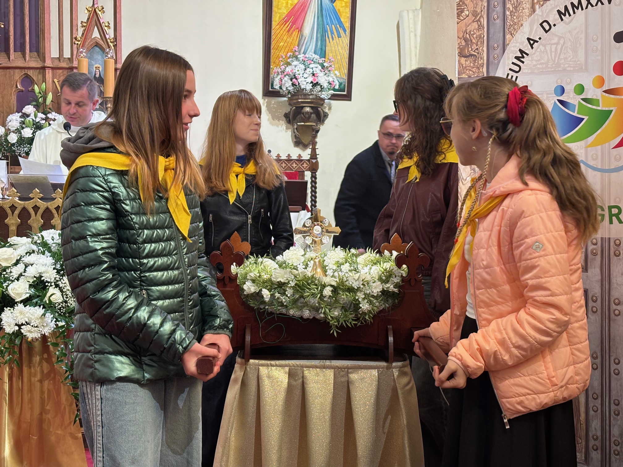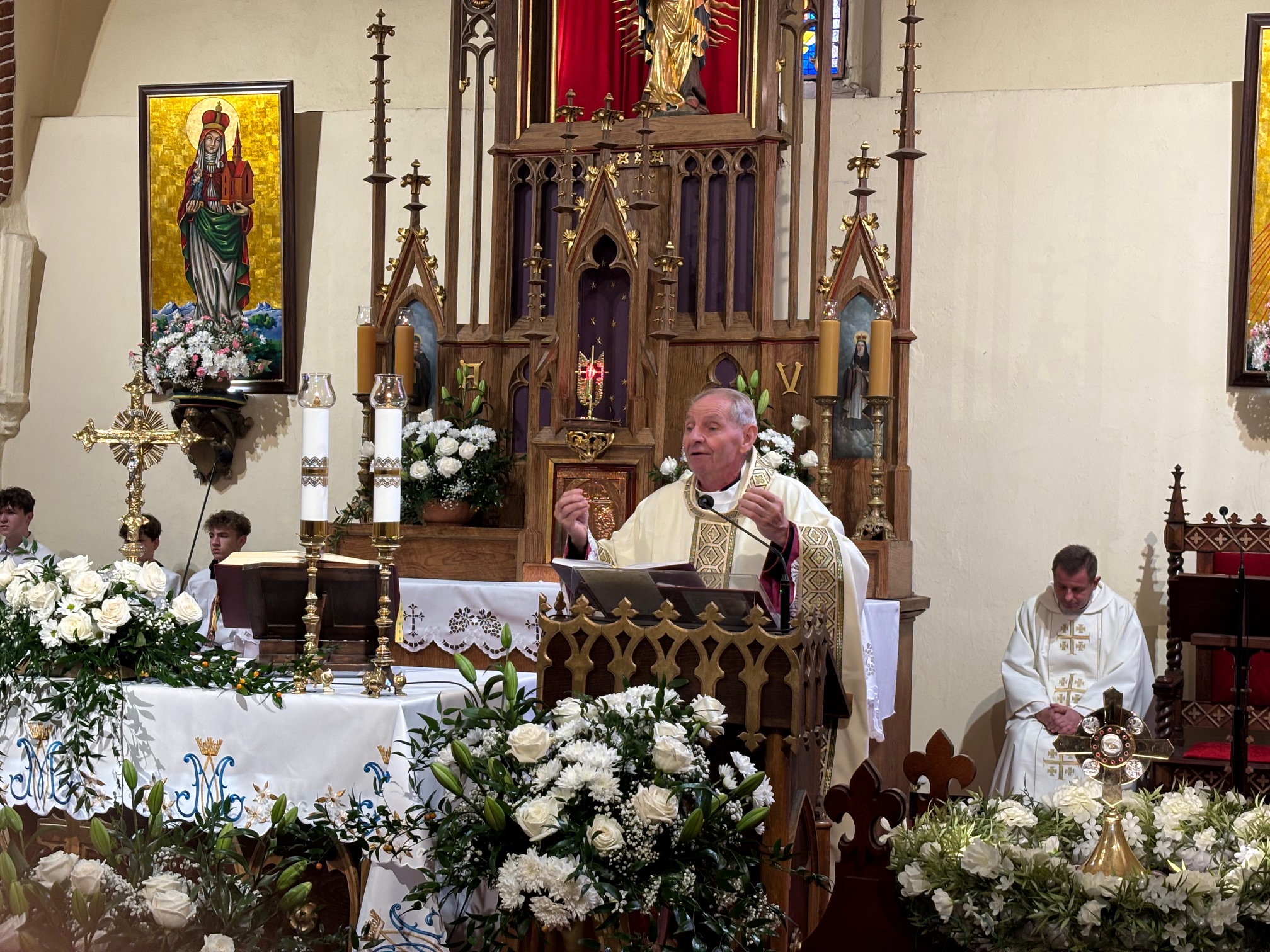 W niedzielę, 12 października, w mokrzeszowskiej wspólnocie parafialnej obchodziliśmy odpust ku czci Świętej Jadwigi. O godz. 11.00 rozpoczęła się Suma odpustowa, której przewodniczył ks. Prałat Władysław Nowobilski z Ciśca. Uroczystej Mszy Świętej towarzyszył śpiew parafialnego chóru i zespołu muzycznego z Wrocławia. W kazaniu ks. Prałat pokazał św. Jadwigę, księżnę, jako tę, która troszczyła się o biednych, ale i o kościoły, budując je, aby człowiek mógł spotkać się z Bogiem. Duchowny przypomniał, że 16 października, we wspomnienie św. Jadwigi, kardynał Karol Wojtyła został wybrany na papieża. Papież, również zatroskany o ducha człowieka, dbał o umożliwianie budowania kościołów. Ks. Prałat przypomniał budowę wzniesionego w 24 godziny kościoła w Ciścu, wielką determinację kardynała, częste przyjazdy i wdzięczność za dbanie o ten Dom Boży. Po Mszy św. została odmówiona litania do św. Jadwigi i wyruszyła uroczysta procesja wokół kościoła. Przed kościołem można było nabyć kremówki, wypić kawę, wylosować karteczkę z myślą Papieża i wpisać się do księgi pamiątkowej. Dziękując miłemu gościowi za przybycie i przewodniczenie Eucharystii, obiecujemy pamięć i modlitwę.