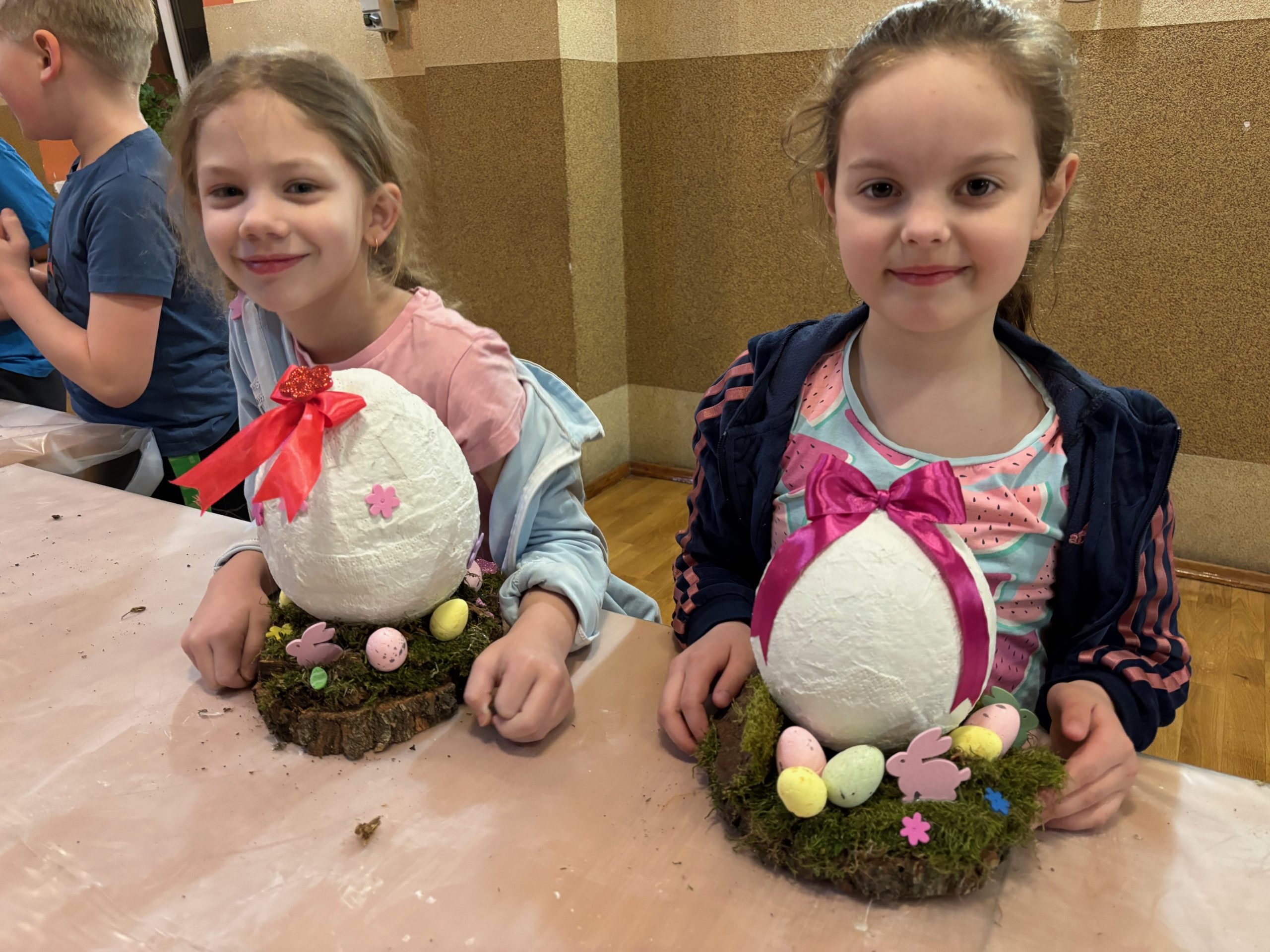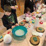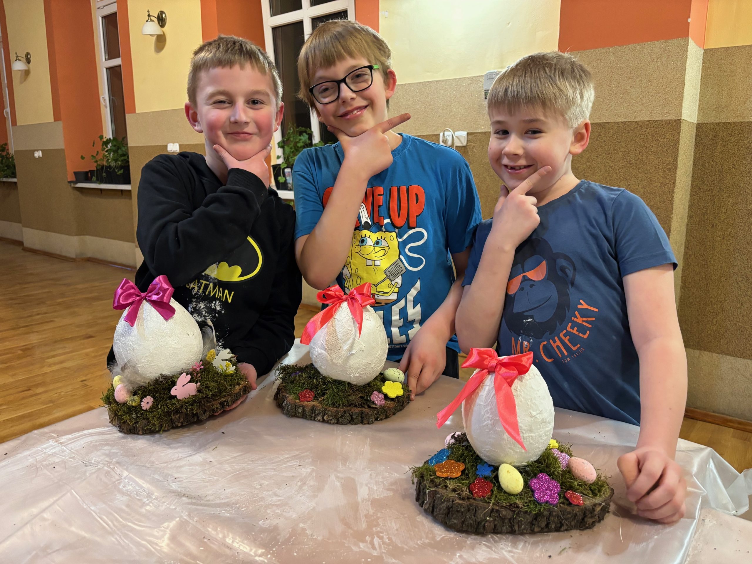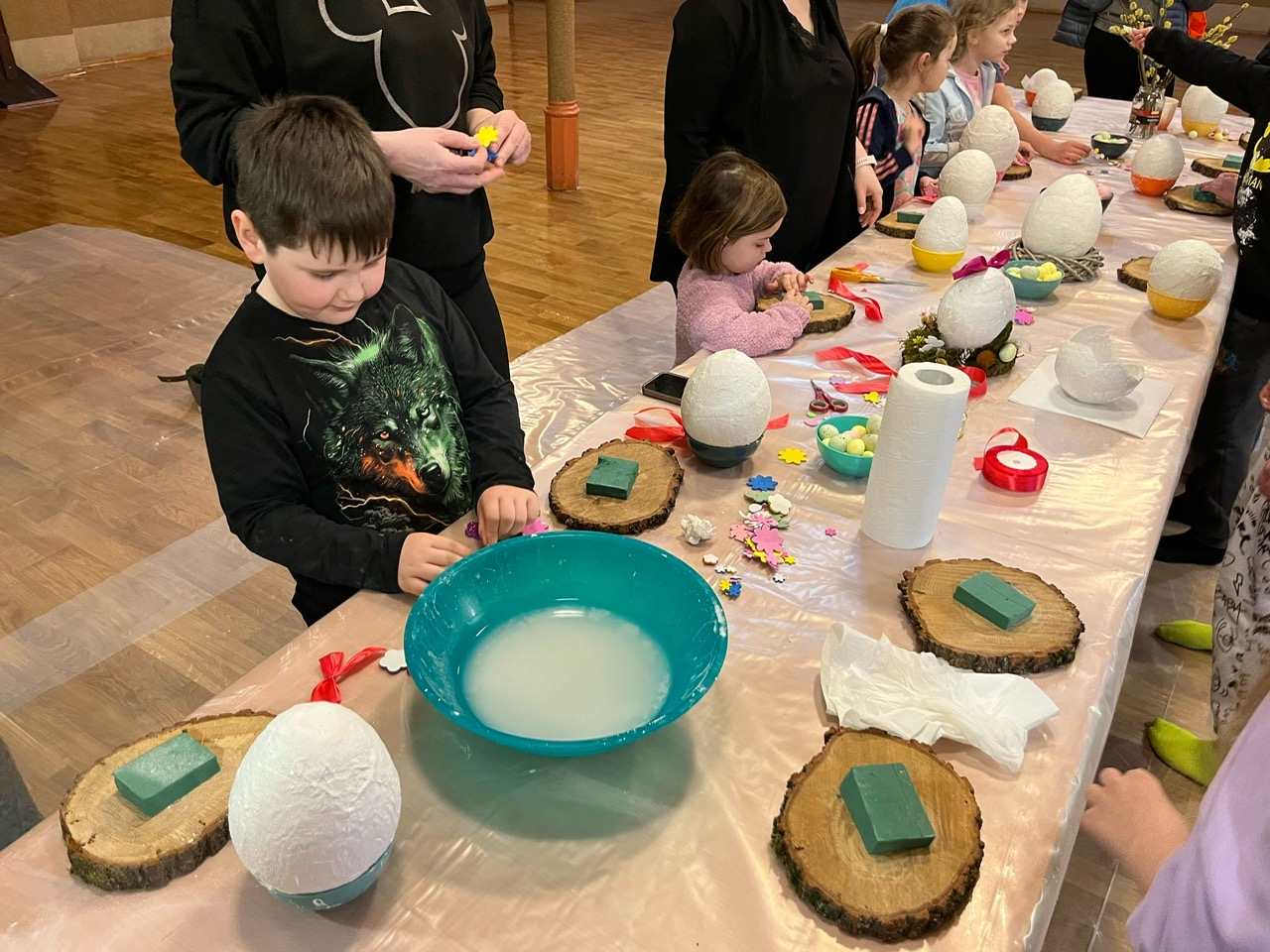 Dziś w naszej parafii odbyły się warsztaty florystyczne dla dzieci. Tematem przewodnim było „Jajko wielkanocne z gipsu”. Dzieci miały niełatwe zadanie, bo praca wymagała dużo skupienia, delikatności i cierpliwości. Towarzyszyły nam małe trudności, jak np. pękające balony, ale nasza determinacja i chęci do pracy pomogły nam pokonać wszystkie przeszkody. Dziękuję wszystkim uczestnikom za świetną zabawę i za chęci, których nikomu nie zabrakło. Podczas tworzenia jaj, trochę wszyscy zgłodnieli i niespodzianką była super pyszna pizza, która dodała nam sił do wykończenia prac. Nasze dzieci wyszły do domu zadowolone i dumne, niosąc piękną ozdobę stołu na nadchodzące święta wielkanocne. Pani Agnieszka dziękuje wszystkim za miło spędzony czas, Wasze zaangażowanie i dobry humor.