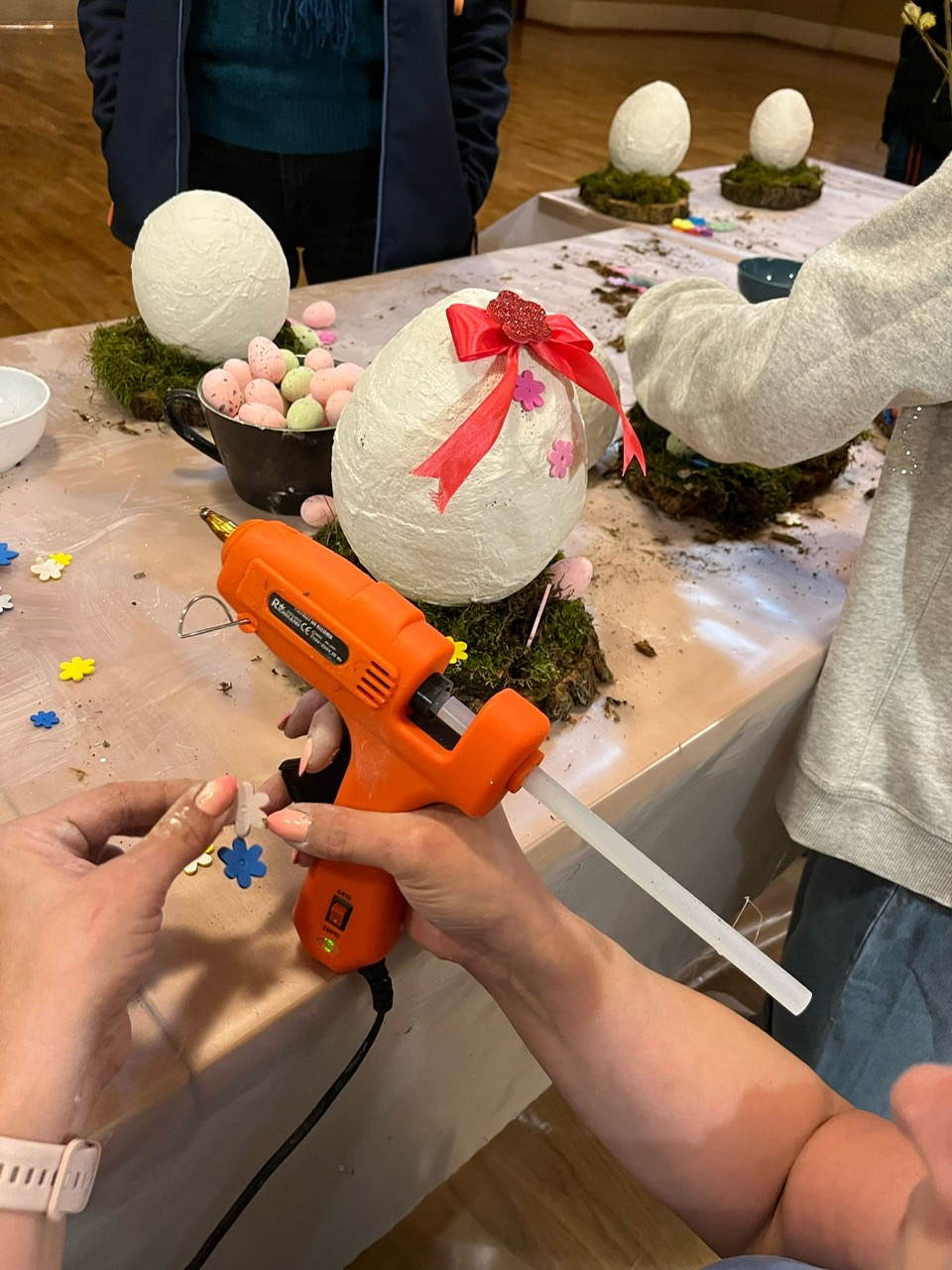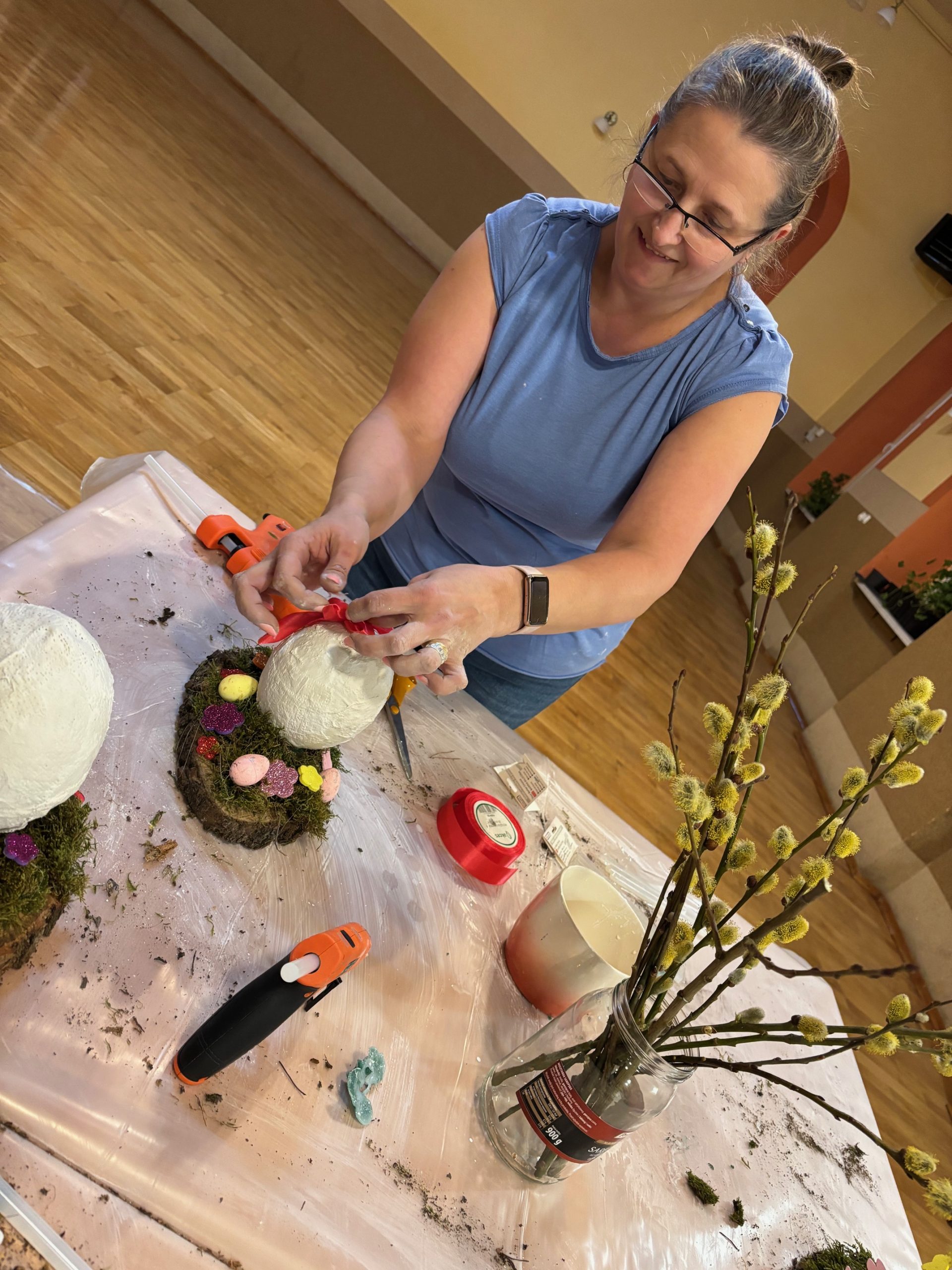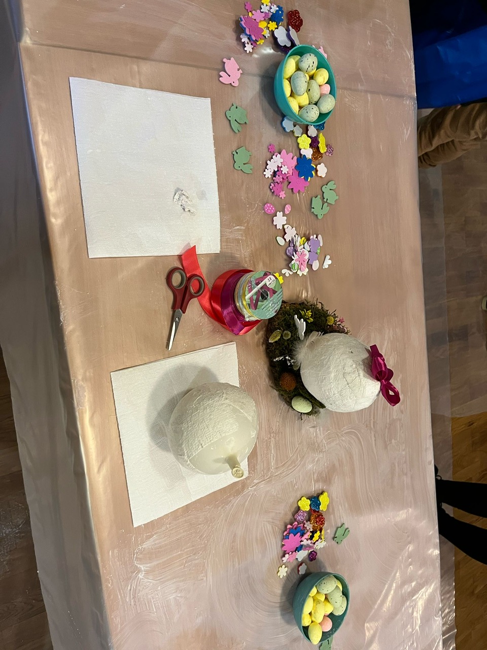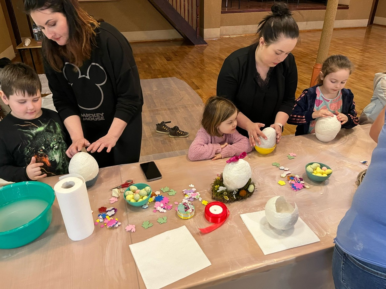 Dziś w naszej parafii odbyły się warsztaty florystyczne dla dzieci. Tematem przewodnim było „Jajko wielkanocne z gipsu”. Dzieci miały niełatwe zadanie, bo praca wymagała dużo skupienia, delikatności i cierpliwości. Towarzyszyły nam małe trudności, jak np. pękające balony, ale nasza determinacja i chęci do pracy pomogły nam pokonać wszystkie przeszkody. Dziękuję wszystkim uczestnikom za świetną zabawę i za chęci, których nikomu nie zabrakło. Podczas tworzenia jaj, trochę wszyscy zgłodnieli i niespodzianką była super pyszna pizza, która dodała nam sił do wykończenia prac. Nasze dzieci wyszły do domu zadowolone i dumne, niosąc piękną ozdobę stołu na nadchodzące święta wielkanocne. Pani Agnieszka dziękuje wszystkim za miło spędzony czas, Wasze zaangażowanie i dobry humor.
