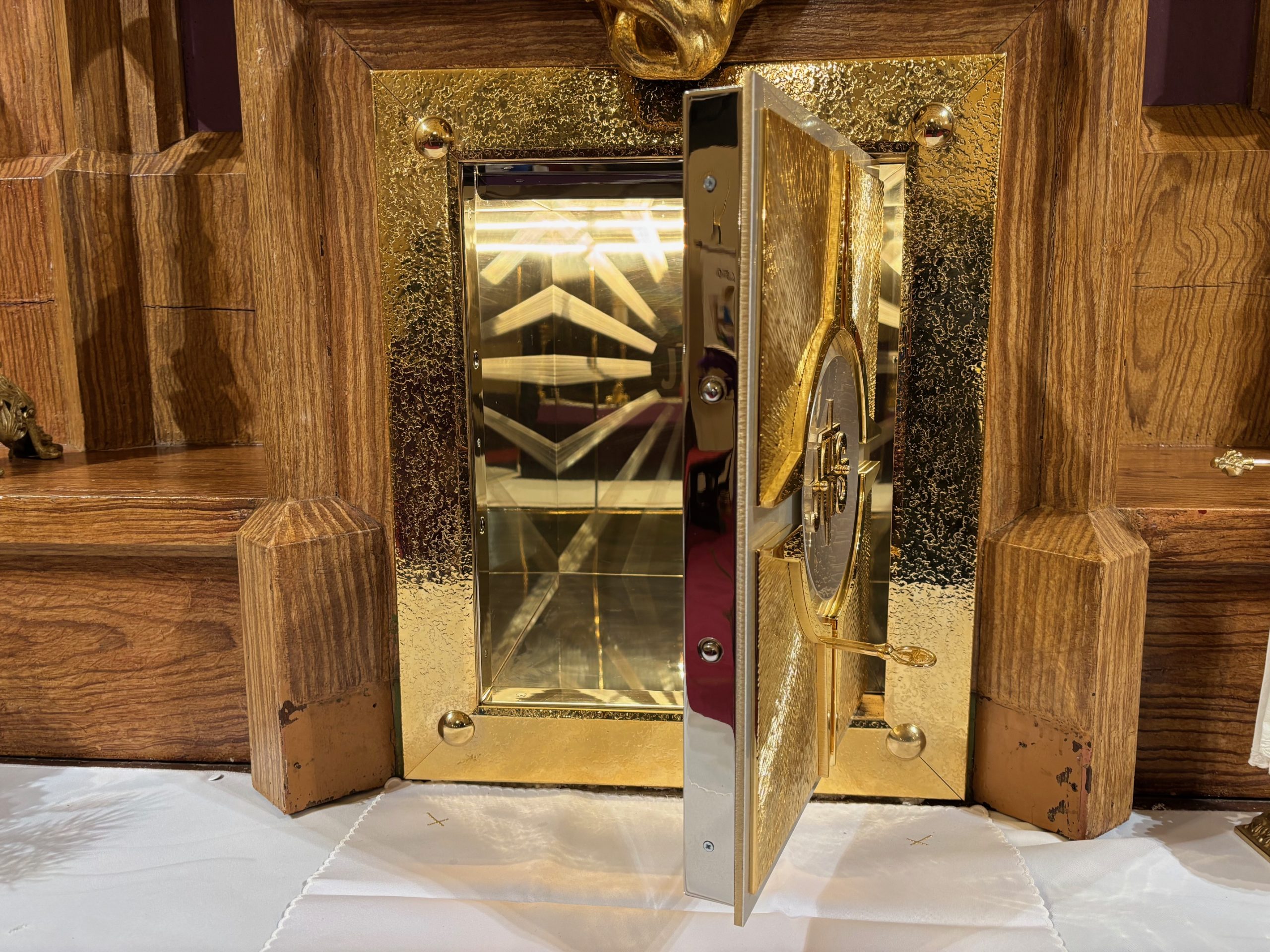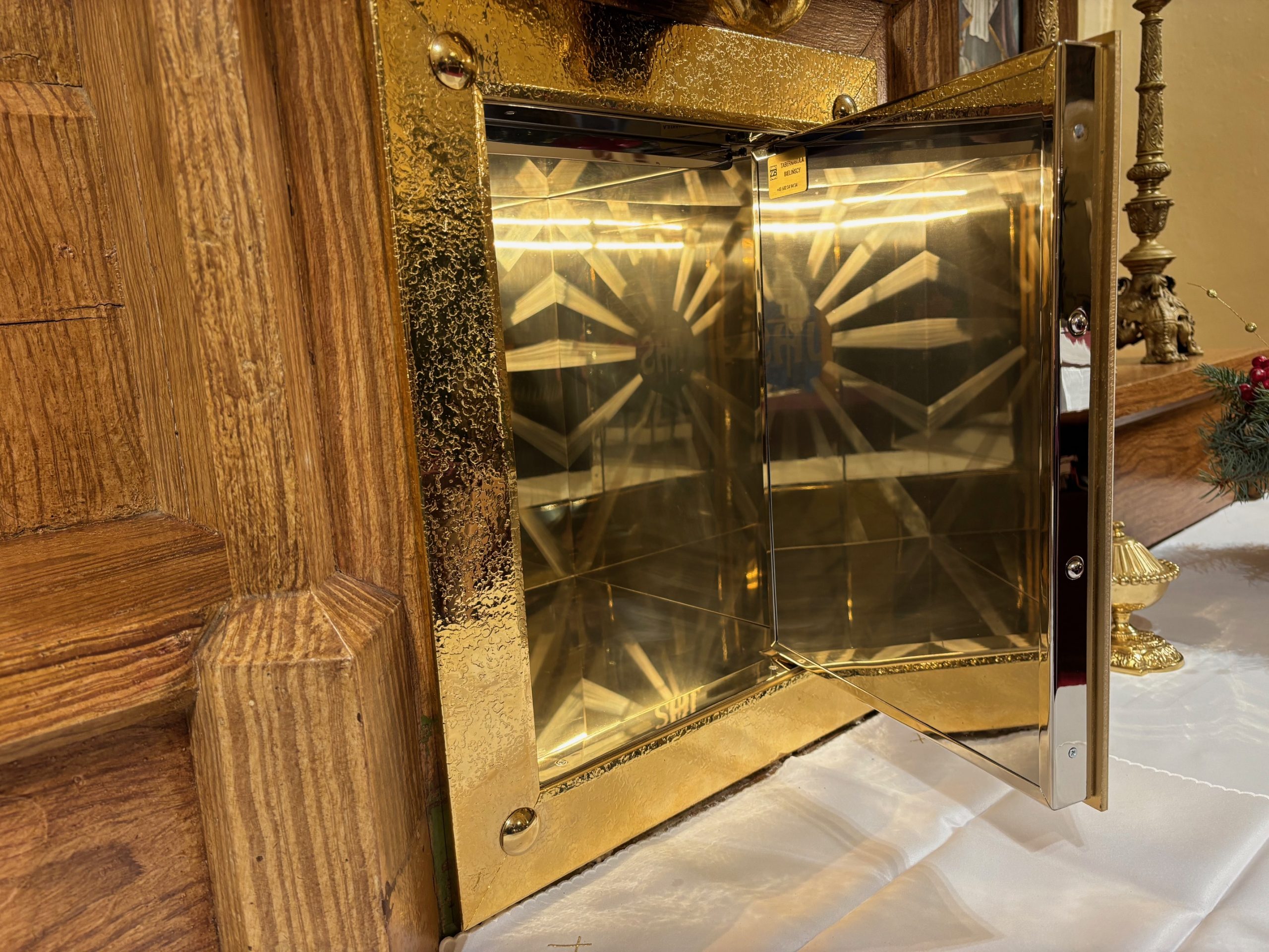 Jezus jest skarbem Kościoła i nic tego skarbu nie jest warte, nawet życie. Wdzięczna Panu Jezusowi za otrzymane dary w kończącym się Roku Świętym wspólnota parafialna postanowiła ufundować tabernakulum do przechowywania Najświętszego Sakramentu. Dziękujemy Bogu za dar Najświętszego Sakramentu, za dar świętych – jak św. Calo Acutis – którzy przypominają, jak cenny to jest dar i jak nic nie jest w stanie go zastąpić. Chciejmy, szczególnie w czasie Adwentu, nie zapominać o Jezusie. Niech codzienna gonitwa, praca nie zasłonią Jezusa, by nadchodzące święta nie były tylko pustą tradycją bez Niego. Panie, daj naszej parafii łaskę wiary, że Ty jesteś obecny w tym kawałku chleba!