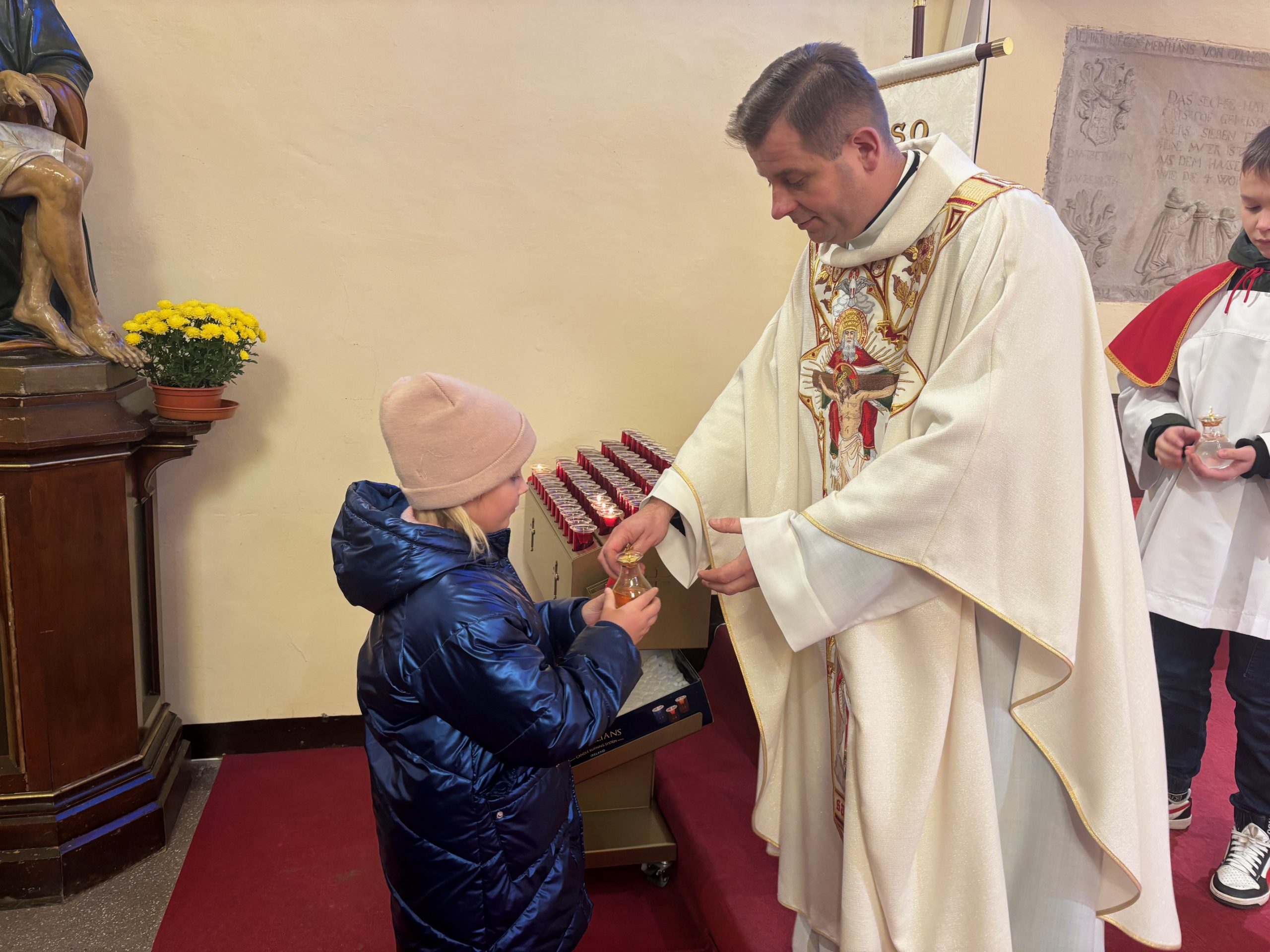 Zgodnie z decyzją papieża Franciszka miniona niedziela była również 39. Światowym Dniem Młodzieży. Dzieci i młodzież przygotowujące się w naszej parafii do Pierwszej Komunii Świętej i Sakramentu Bierzmowania zgromadzili się o godzinie 11 na uroczystej Mszy Świętej, którą uświetnił śpiew naszego chóru parafialnego. Po Eucharystii dzieci wraz z rodzicami mieli spotkanie formacyjne.