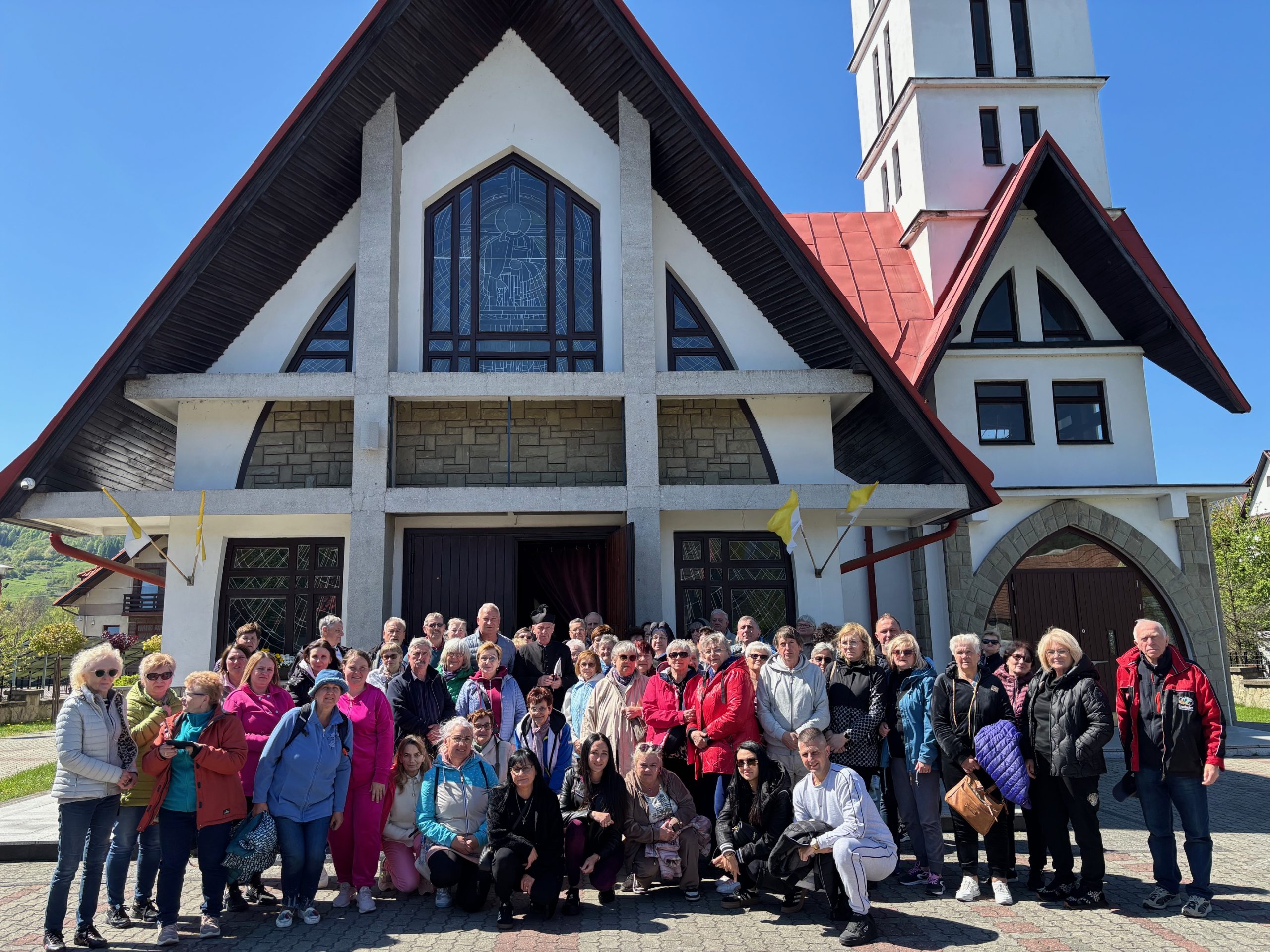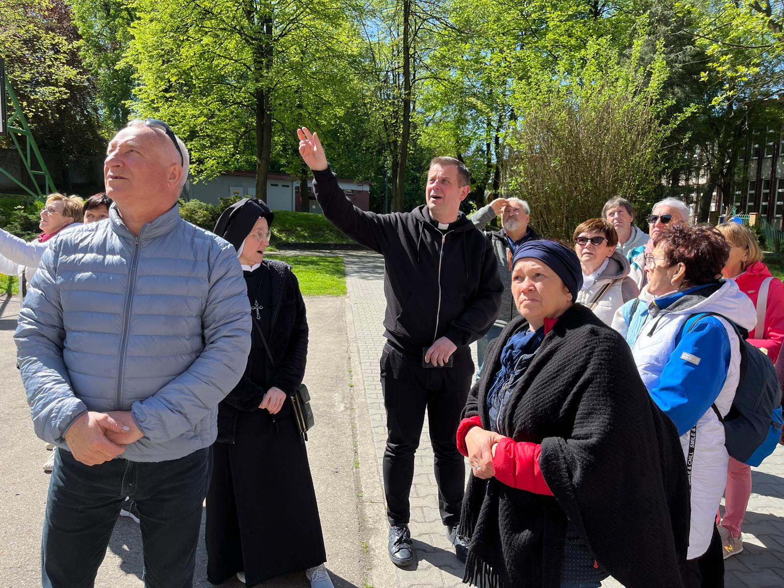 Wiosenna pielgrzymka na Żywiecczyznę, w której tradycyjnie już wzięli udział parafianie z Mokrzeszowa, a także Głuszycy, Nowej Rudy, Szczawna-Zdroju, rozpoczęła się od wizyty wczesnym rankiem w Centrum św. o. Maksymiliana Kolbego w Harmężach k. Oświęcimia, gdzie obejrzeliśmy przejmującą ekspozycję pt. „Klisze pamięci. Labirynty”. Jej autorem jest Marian Kołodziej, były więzień obozu koncentracyjnego Auschwitz, który po prawie 50 latach od zakończenia wojny stworzył wstrząsającą plastyczną wizję swojej gehenny obozowej, a jednocześnie ukazał heroizm św. o. Maksymiliana Kolbego. Po tej przejmującej lekcji historii, która poruszyła nasze serca, ukojenie przyniosła nam Msza św. sprawowana przez ks. Marcina w miejscowym kościele pw. Matki Bożej Niepokalanej. W południe zwiedziliśmy urokliwe Stare Miasto w Oświęcimiu, który chociaż kojarzy się zazwyczaj z KL Auschwitz – Birkenau, ma za sobą wielowiekową historię jako stolica księstwa oświęcimskiego, a dzisiaj podziwialiśmy jego zabytki z zamkiem górującym nad miastem. Z Oświęcimia ruszyliśmy do Węgierskiej Górki, gdzie w ośrodku „Azalia” mieści się nasza baza noclegowa, ale wcześniej zatrzymaliśmy się w Ciścu, rodzinnej miejscowości ks. Marcina. W kościele pw. św. o. Maksymiliana Kolbego spotkaliśmy się z ks. Władysławem Nowobilskim i poznaliśmy niezwykłą historię budowy tego kościoła w czasach, kiedy ówczesna władza komunistyczna robiła wszystko, aby nie dopuścić do jego powstania. Mieszkańcy Ciśca wspierani przez ks. Władysława dokonali rzeczy wręcz niemożliwej – postawili świątynię w ciągu jednej nocy, choć wielu z nich dosięgły potem represje. Pobyt w Ciścu zakończyliśmy udziałem w uroczystej Koronce do Bożego Miłosierdzia. Wieczorem jeszcze tylko spacer po Węgierskiej Górce i zasłużony odpoczynek po podróży, która rozpoczęliśmy o godz. 1:00 w nocy.