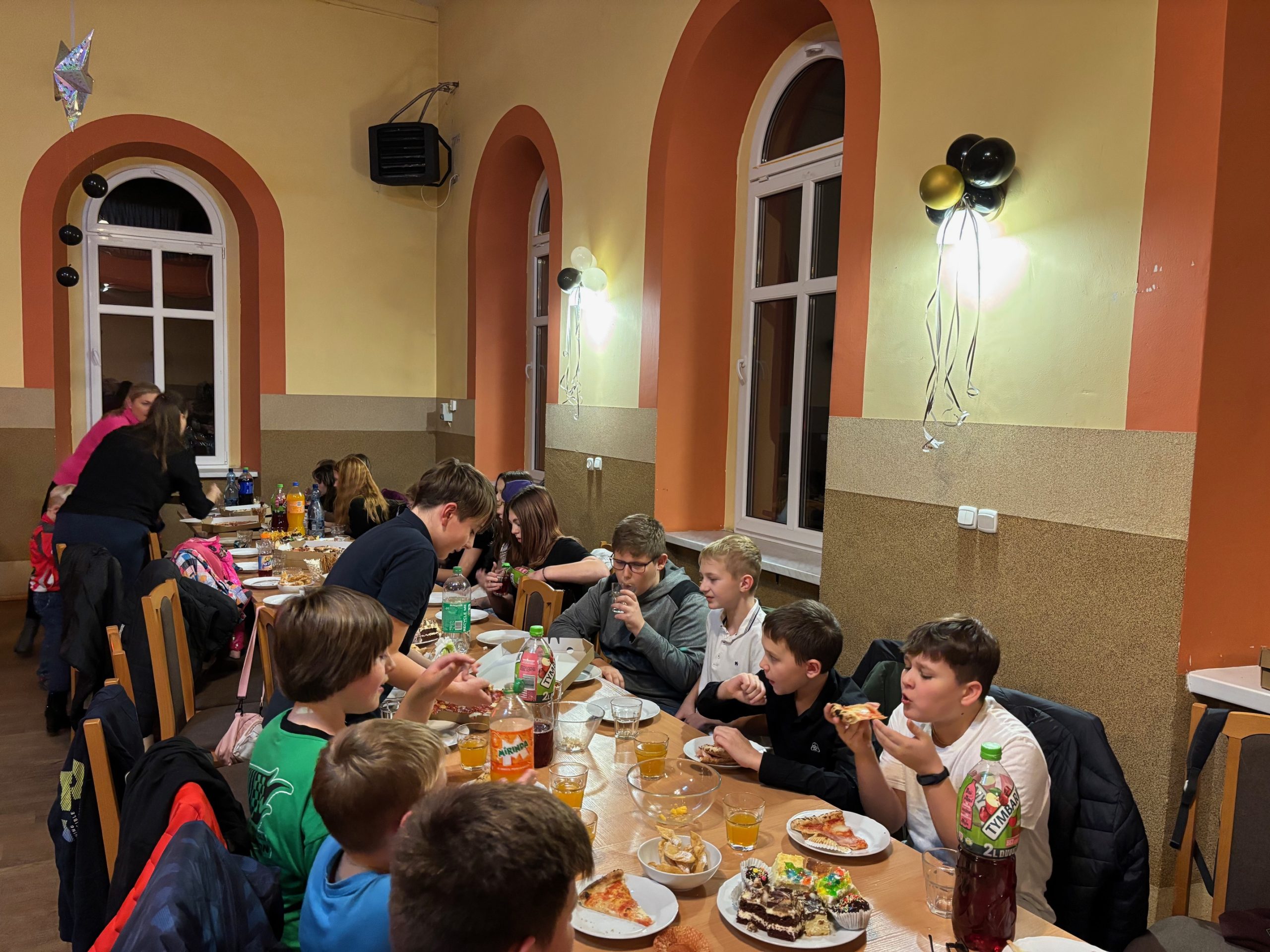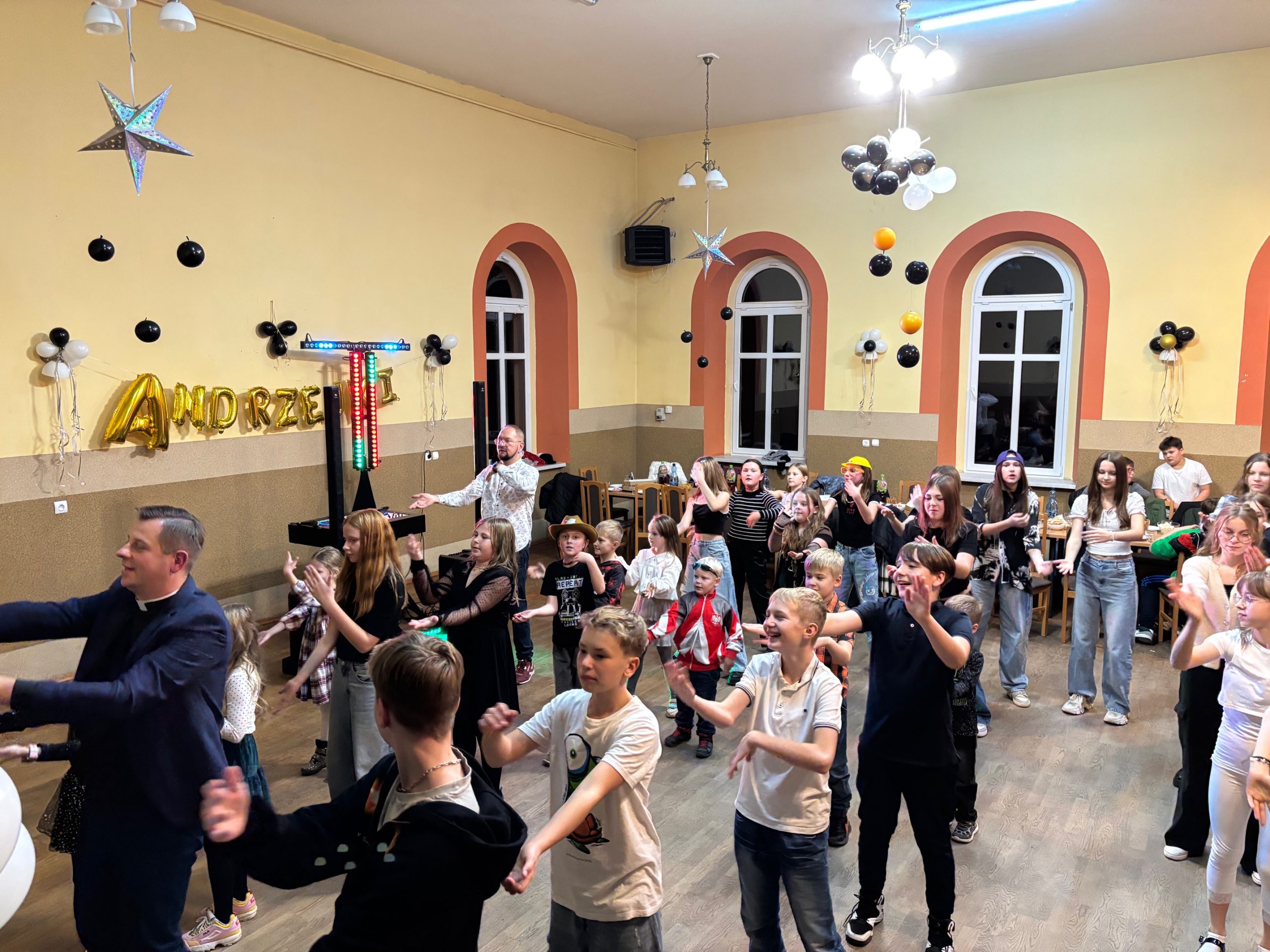 Dlatego nasza parafia zorganizowała na świetlicy wiejskiej bal andrzejkowy dla dzieci i młodzieży. Choć nie było tam wizerunków świętych, długich konferencji czy podniosłych kazań, to uczestnicy przeżyli piękną i niezwykle wartościową katechezę… o tym, że bez względu na wiek i zainteresowania można spotkać się i spędzić razem czas przy dobrej pizzy, pysznych domowych wypiekach i – animowanej przez DJ-a Johnsona – muzyce, zabawie i tańcach. Katechezę o tym, że w Kościele, poza podniosłą Liturgią i rozwojem duchowym, jest również miejsce na radość, śmiech… i wspólną zabawę. kl. Paweł