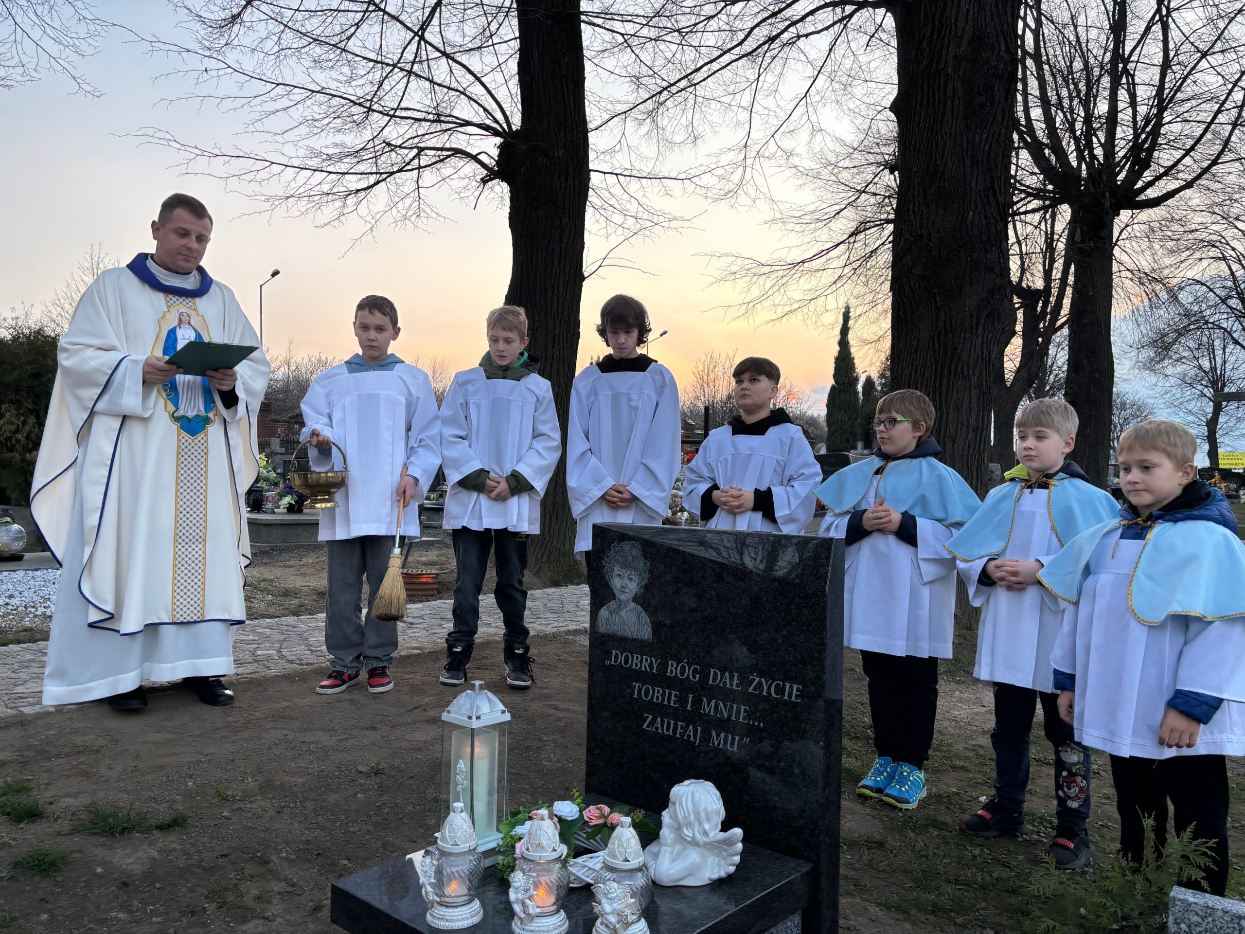 We wtorek, 25 marca, w uroczystość Zwiastowania Pańskiego obchodziliśmy Dzień Świętości Życia. W tym dniu rozpoczęliśmy w naszej parafii Duchową Adopcję Dziecka Poczętego. Uroczystego przyrzeczenia dokonaliśmy na Mszy św. o godz. 17:00. Adopcję dziecka poczętego można podjąć także indywidualnie, wystarczy tylko modlitwa w intencji adoptowanego dziecka i dziesiątka Różańca św. Po Mszy Świętej przeszliśmy w procesji na cmentarz grzebalny. Tam ks. Marcin dokonał poświęcenia Pomnika Dziecka Poczętego.