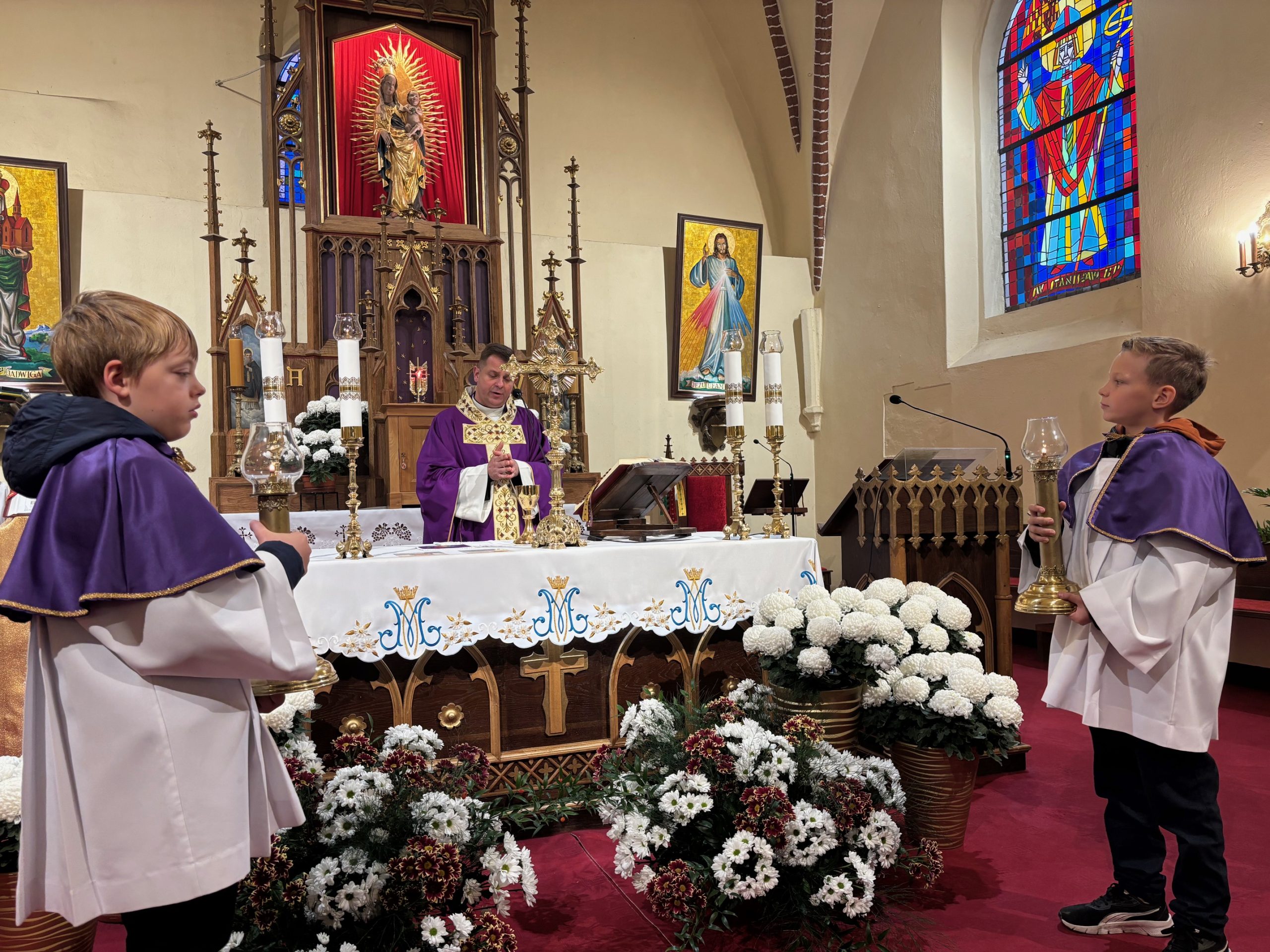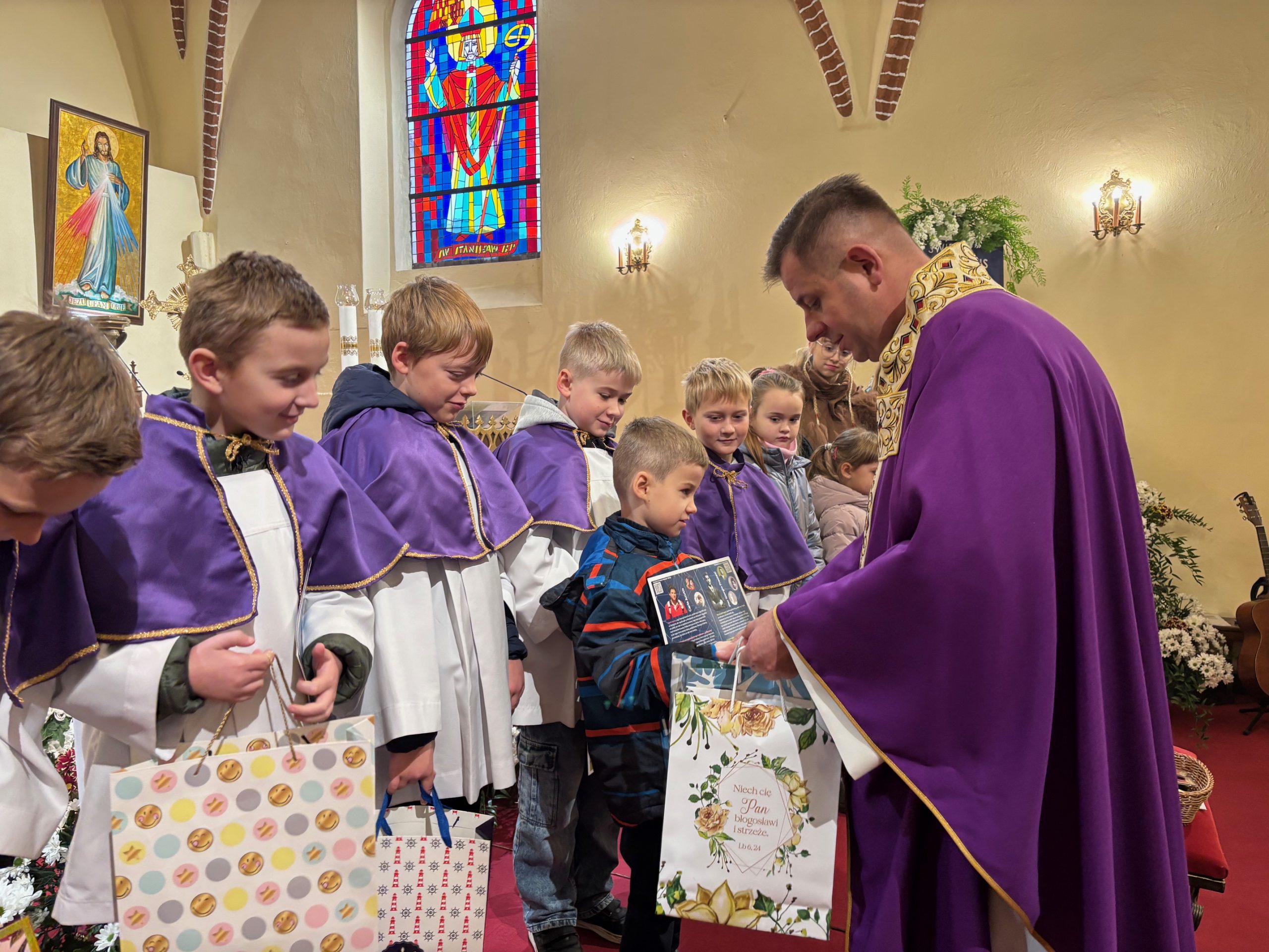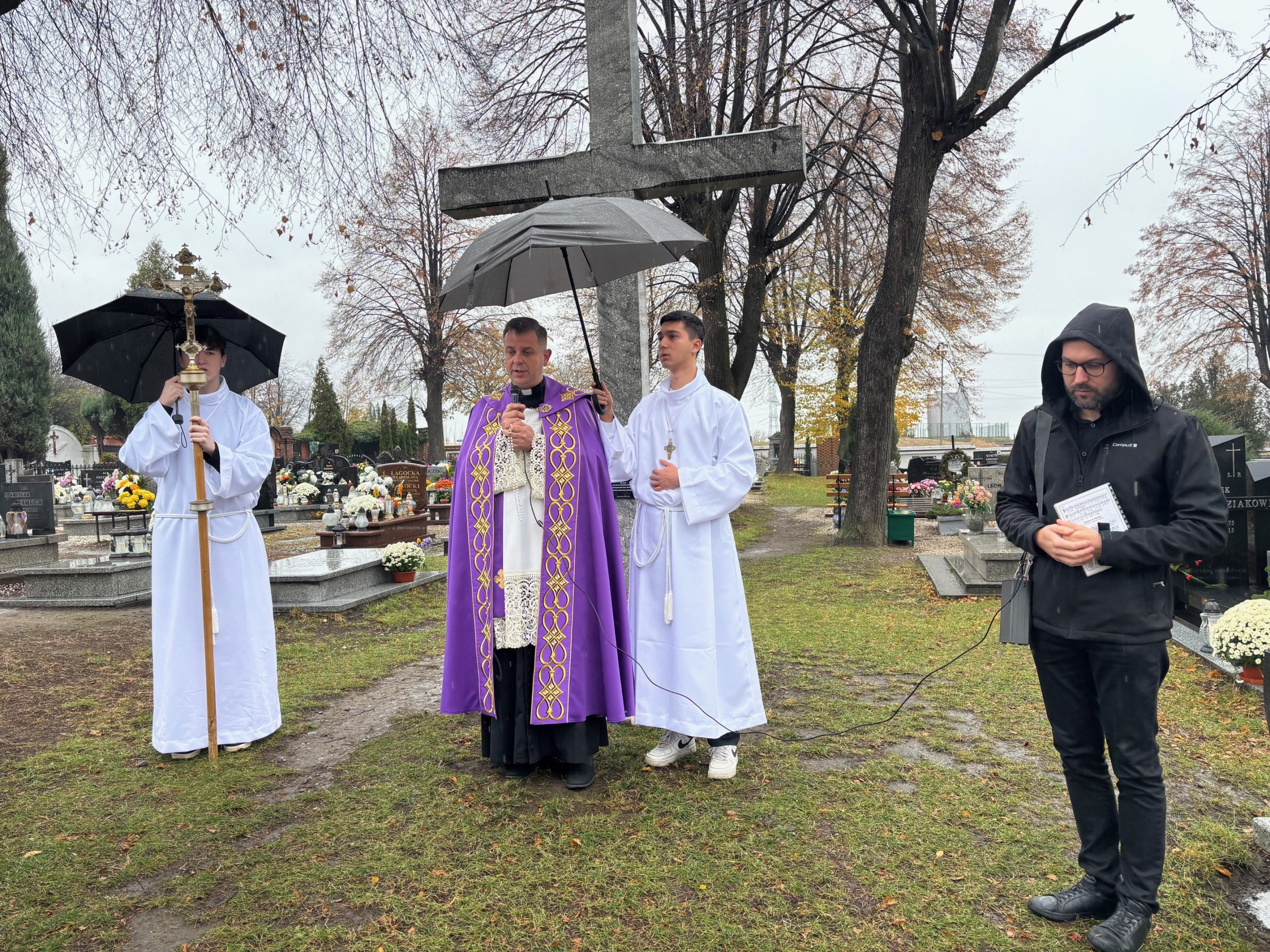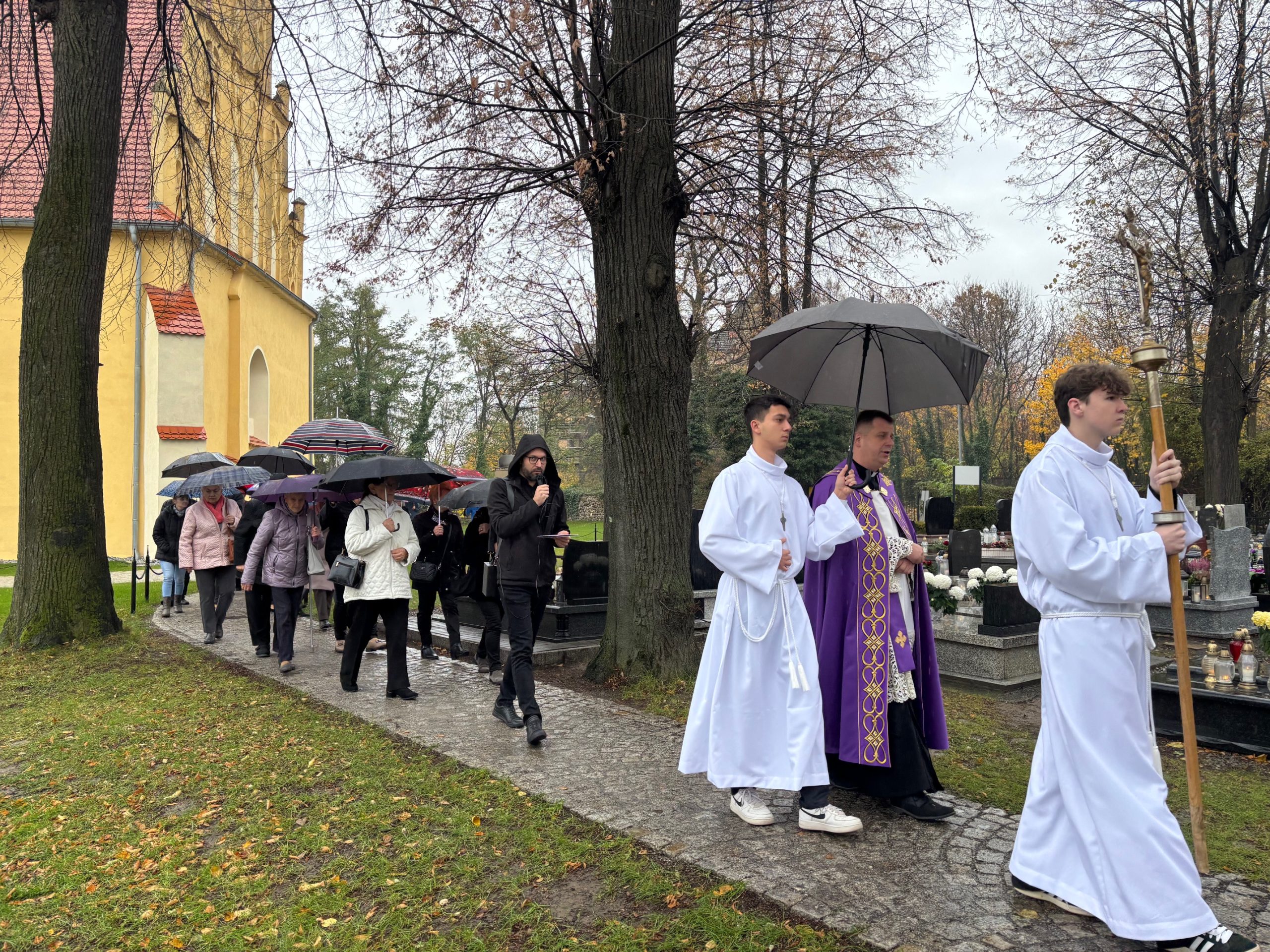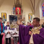 Niebo nie może czekać, mawiał święty Carlo Acutis. W Dzień Zaduszny, kiedy stoimy nad grobami naszych bliskich i myślimy o tych, którzy jeszcze potrzebują modlitwy i przebywają w czyśćcu, św. Carlo w relikwii gości w naszej parafii. To czas na zapytanie siebie o świętość i niebo. Rano, po Mszy o godz. 9.00 wierni udali się na cmentarz, aby się modlić za zmarłych Koronką do Bożego Miłosierdzia. Na Mszy św. o godz. 11.00 w kazaniu ks. Marcin przypomniał, że śmierć nie jest końcem, a podstawą do wiary w życie wieczne jest zmartwychwstanie Jezusa. W wyznaniu wiary co niedzielę wypowiadamy: „wierzę w (…) ciała zmartwychwstanie, żywot wieczny”. W to głęboko wierzył św. Carlo Acutis i mimo choroby ufał Bogu. Pomocą w przybliżeniu podczas kazania postaci tego świętego był krótki film o nim. Św. Carlo kochał różaniec i Matkę Bożą, dlatego na koniec Mszy św. dzieci, które uczestniczyły w nabożeństwach różańcowych otrzymały pamiątkowe upominki, a wszystkie dzieci dostały magnesy z wizerunkiem św. Carla Acutisa.