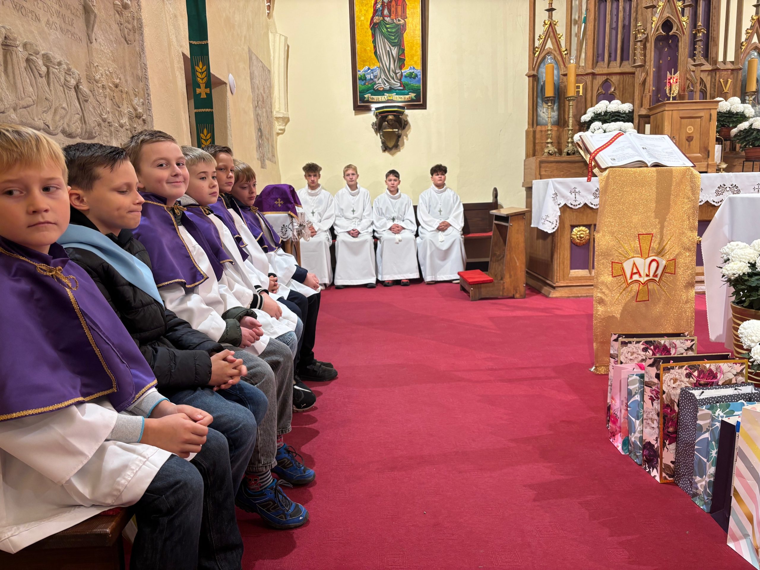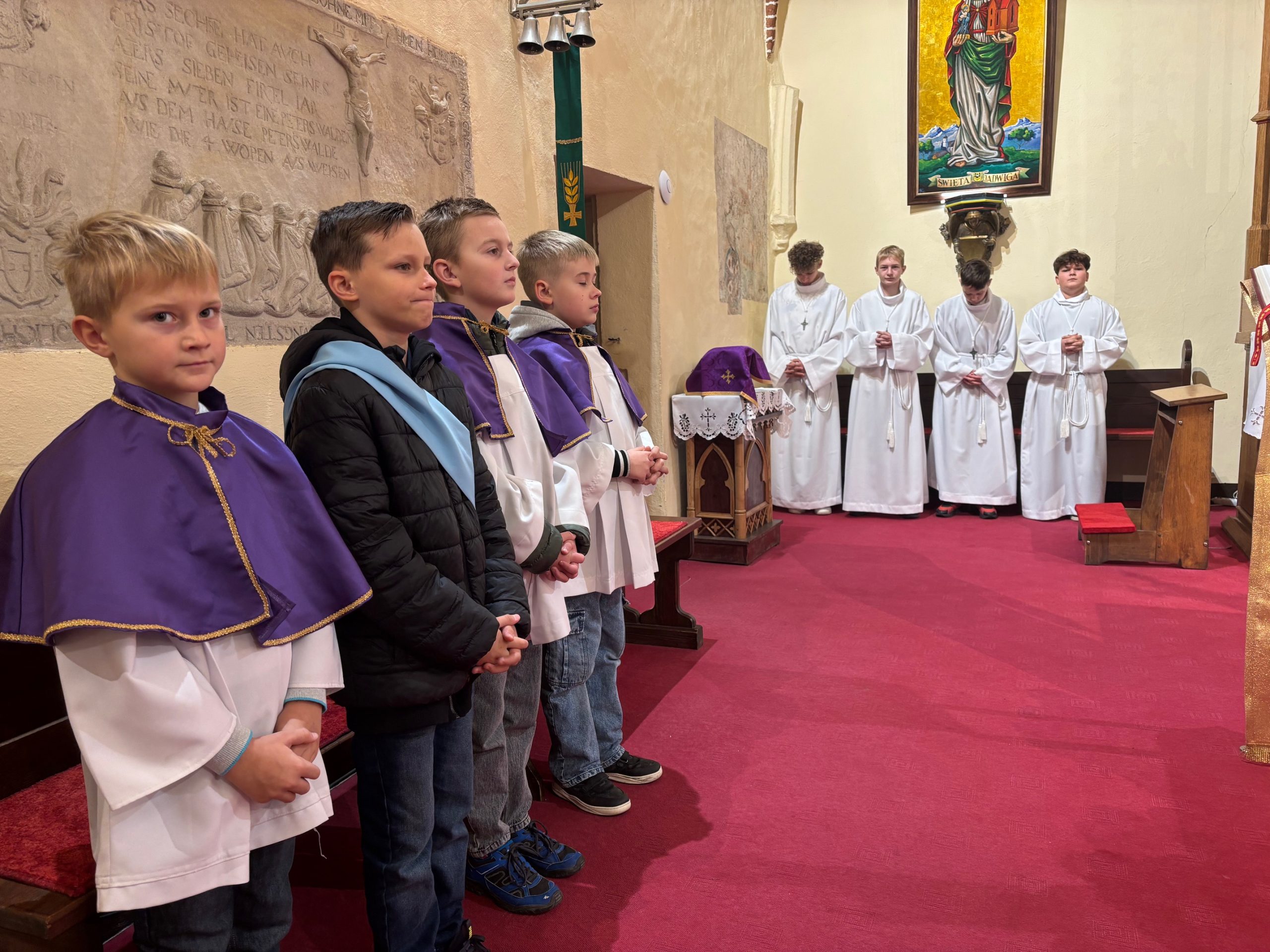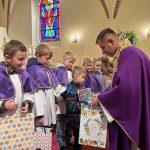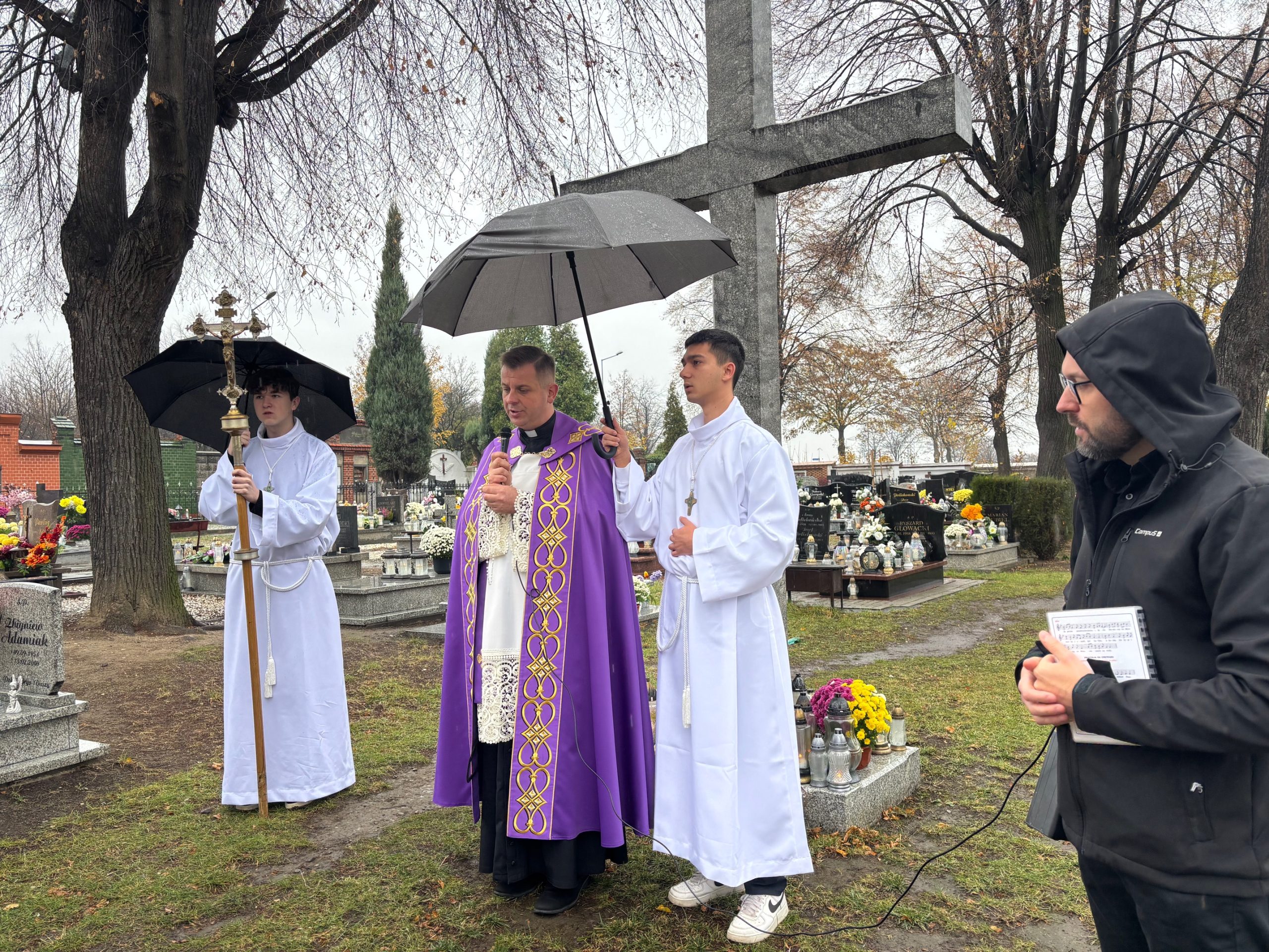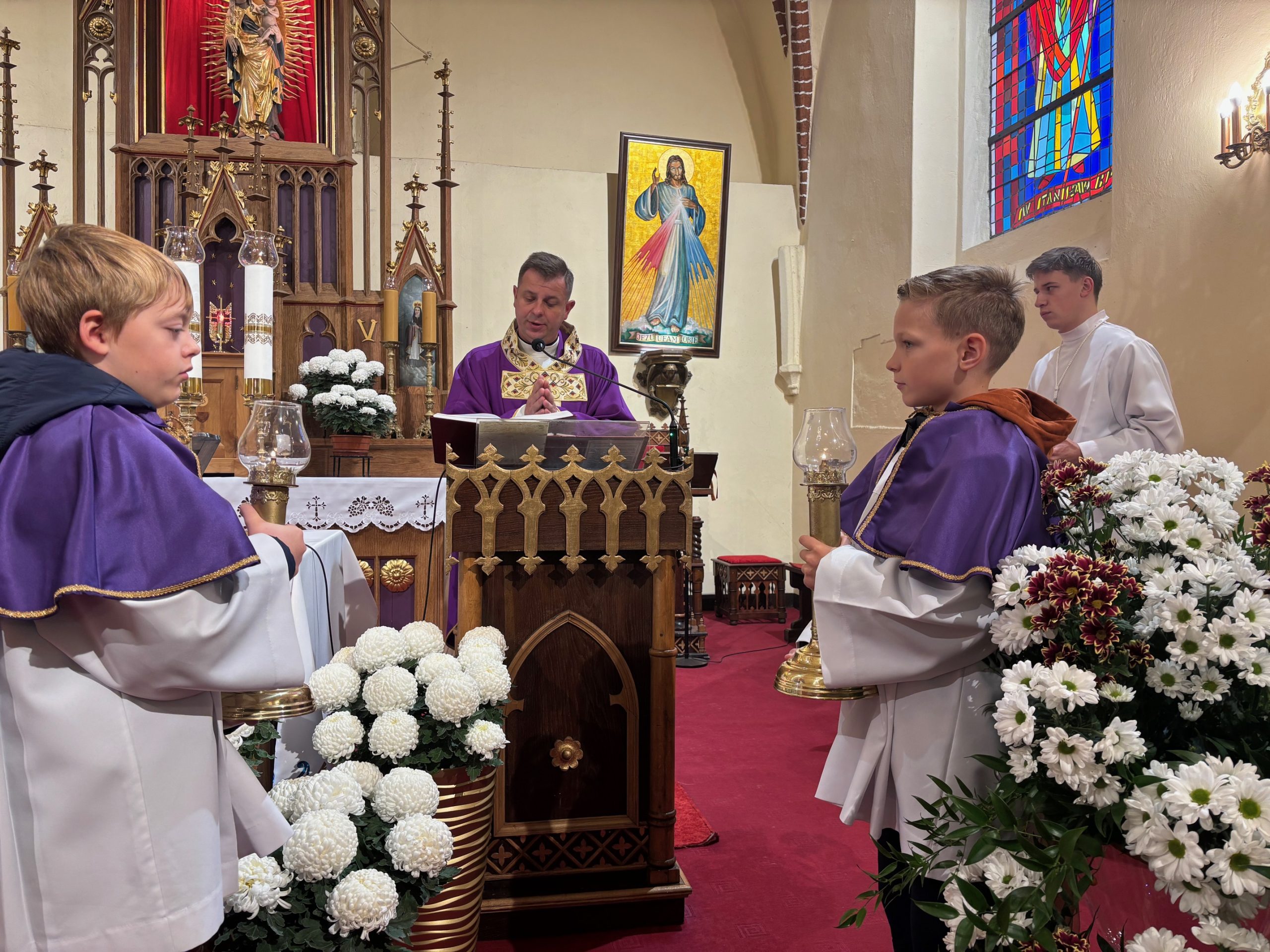 Niebo nie może czekać, mawiał święty Carlo Acutis. W Dzień Zaduszny, kiedy stoimy nad grobami naszych bliskich i myślimy o tych, którzy jeszcze potrzebują modlitwy i przebywają w czyśćcu, św. Carlo w relikwii gości w naszej parafii. To czas na zapytanie siebie o świętość i niebo. Rano, po Mszy o godz. 9.00 wierni udali się na cmentarz, aby się modlić za zmarłych Koronką do Bożego Miłosierdzia. Na Mszy św. o godz. 11.00 w kazaniu ks. Marcin przypomniał, że śmierć nie jest końcem, a podstawą do wiary w życie wieczne jest zmartwychwstanie Jezusa. W wyznaniu wiary co niedzielę wypowiadamy: „wierzę w (…) ciała zmartwychwstanie, żywot wieczny”. W to głęboko wierzył św. Carlo Acutis i mimo choroby ufał Bogu. Pomocą w przybliżeniu podczas kazania postaci tego świętego był krótki film o nim. Św. Carlo kochał różaniec i Matkę Bożą, dlatego na koniec Mszy św. dzieci, które uczestniczyły w nabożeństwach różańcowych otrzymały pamiątkowe upominki, a wszystkie dzieci dostały magnesy z wizerunkiem św. Carla Acutisa.