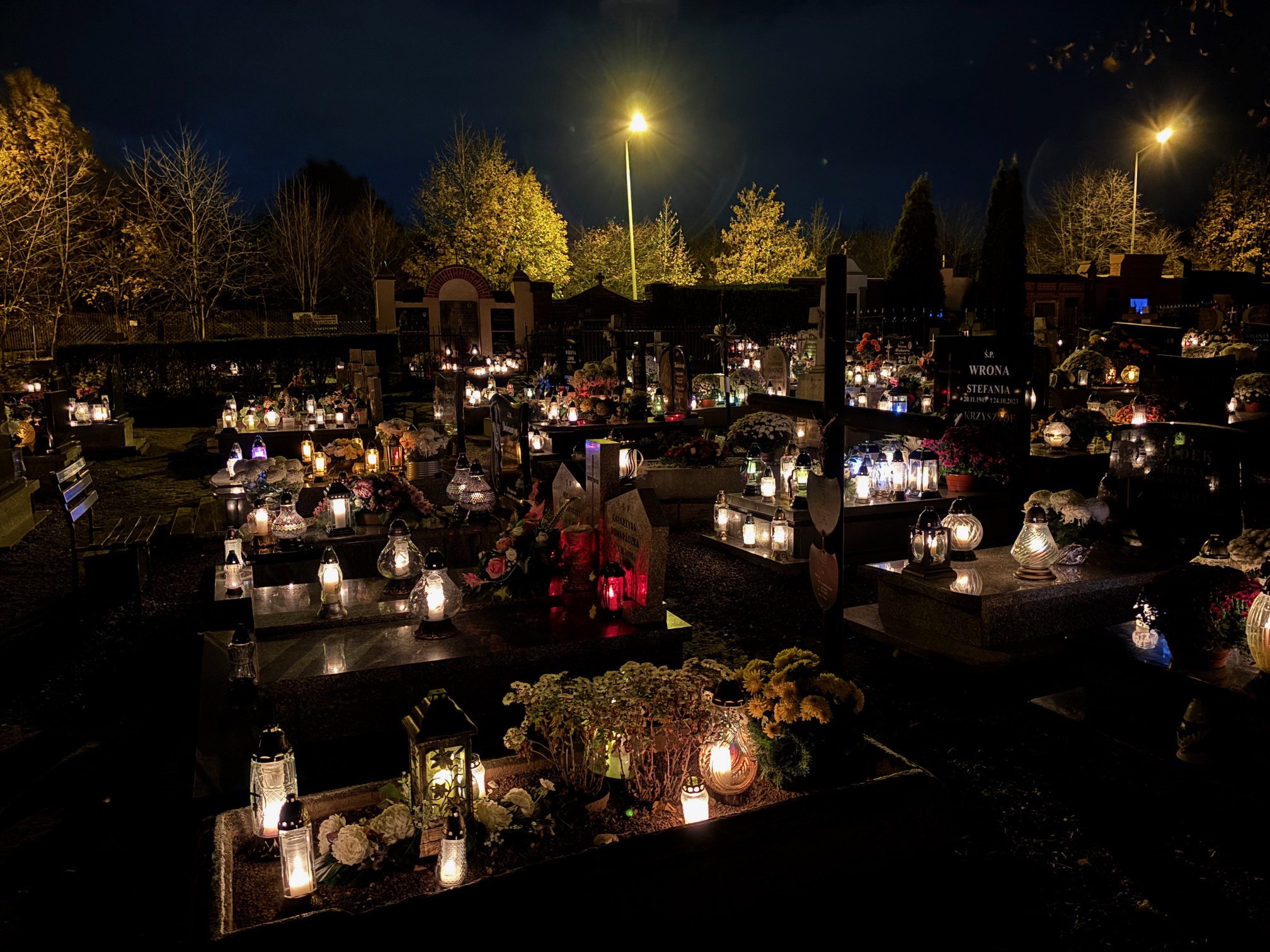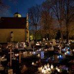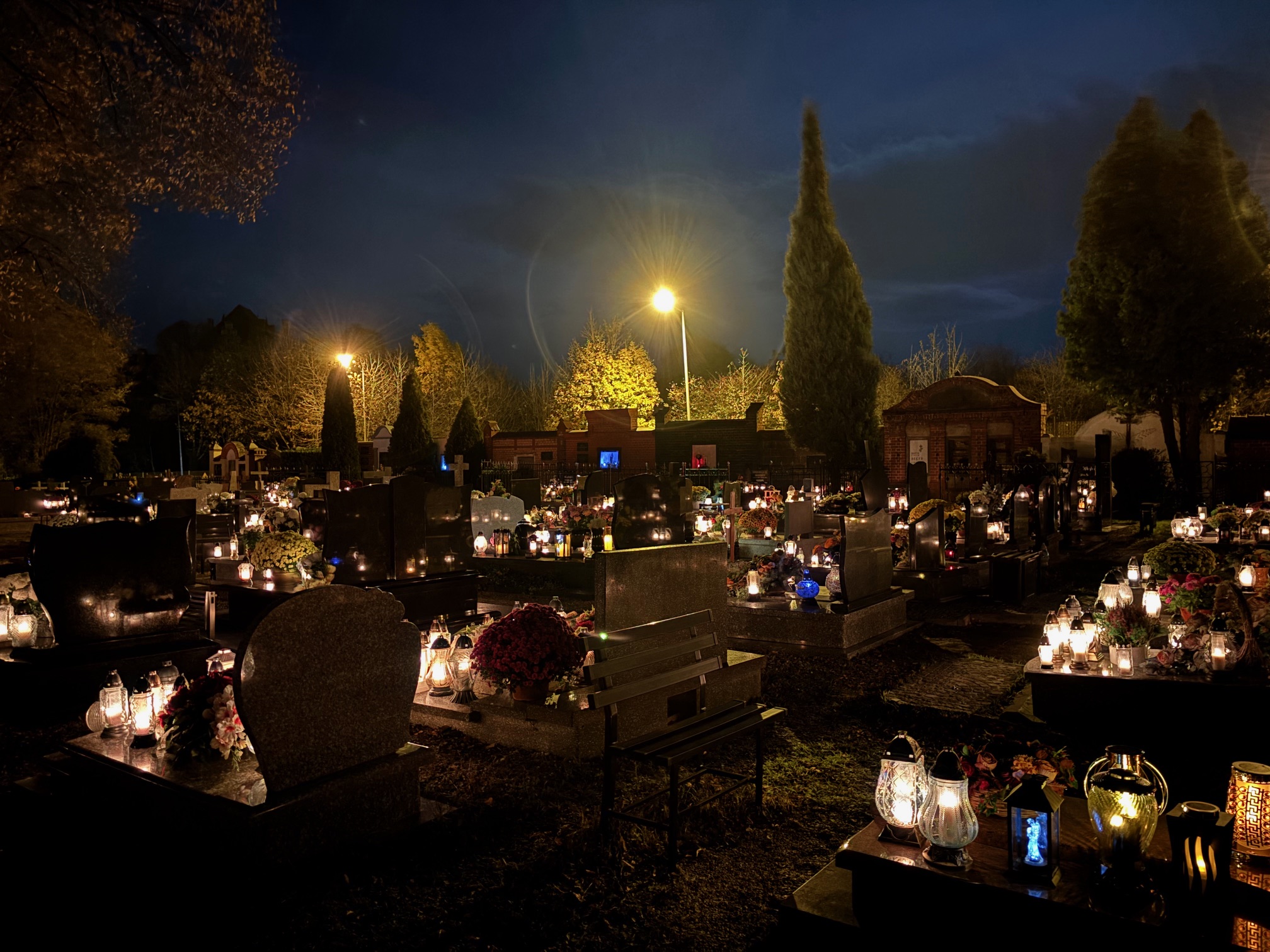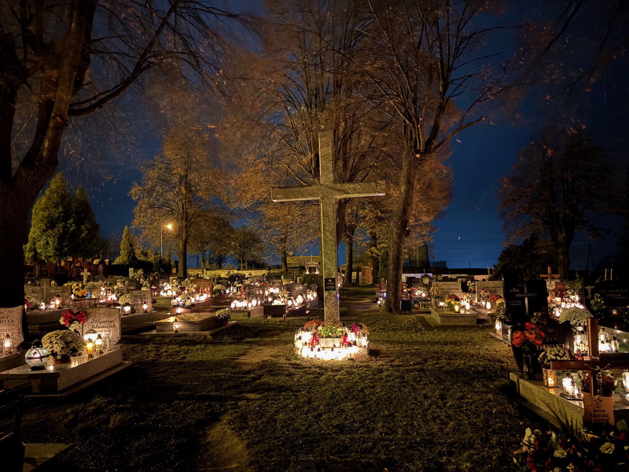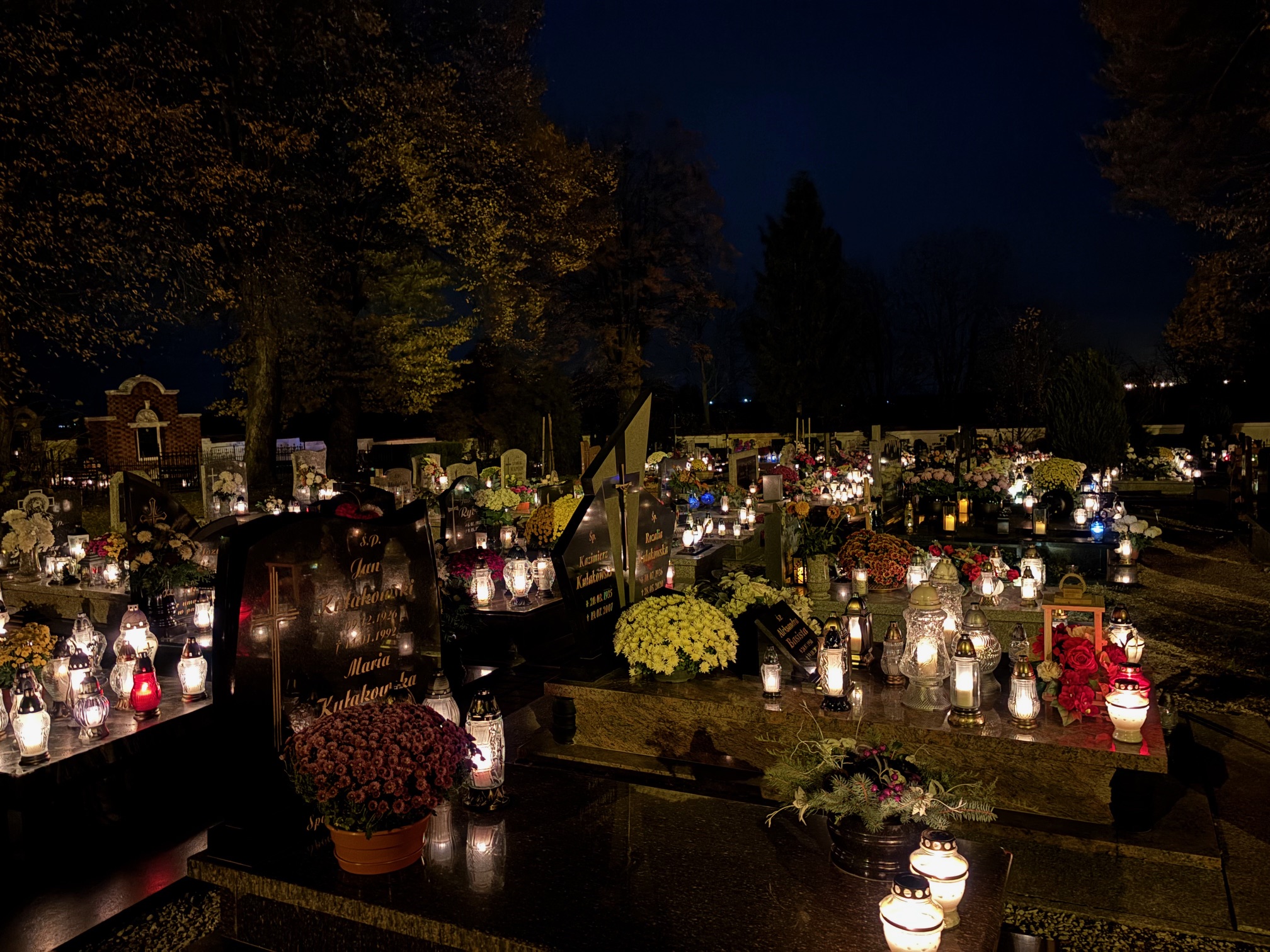 Wieczorna modlitwa na cmentarzu parafialnym w Uroczystość Wszystkich Świętych skłania do zadumy i refleksji. Trwajmy na modlitwie.