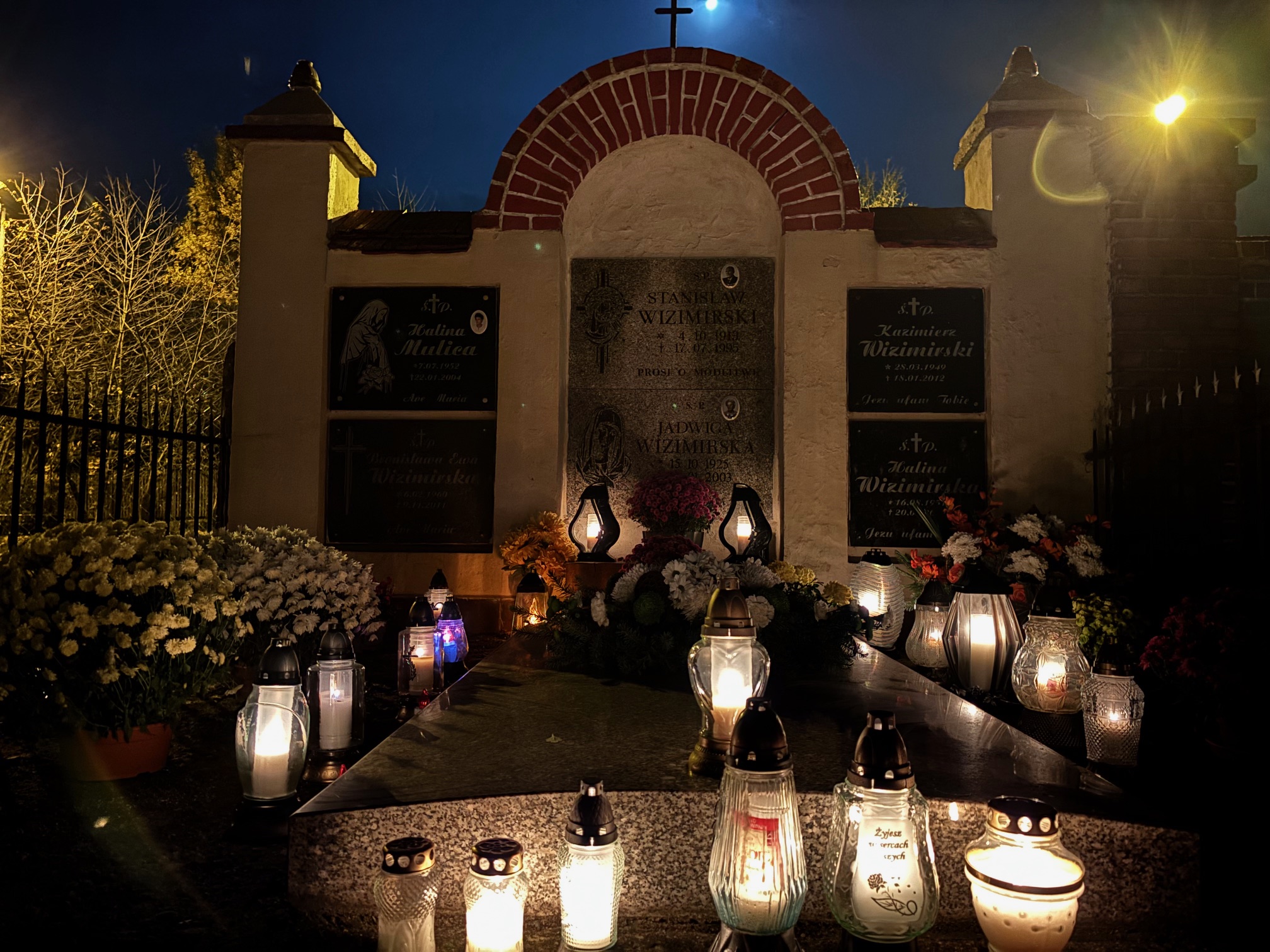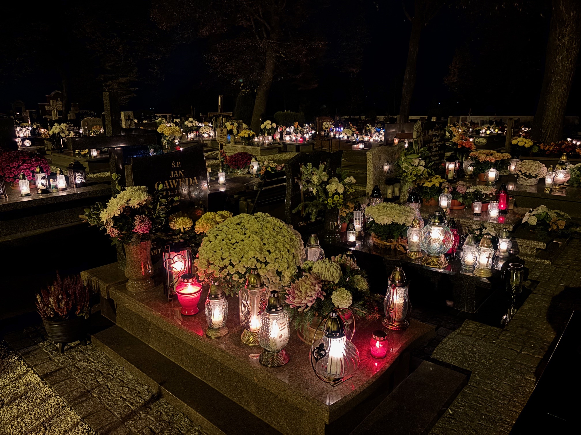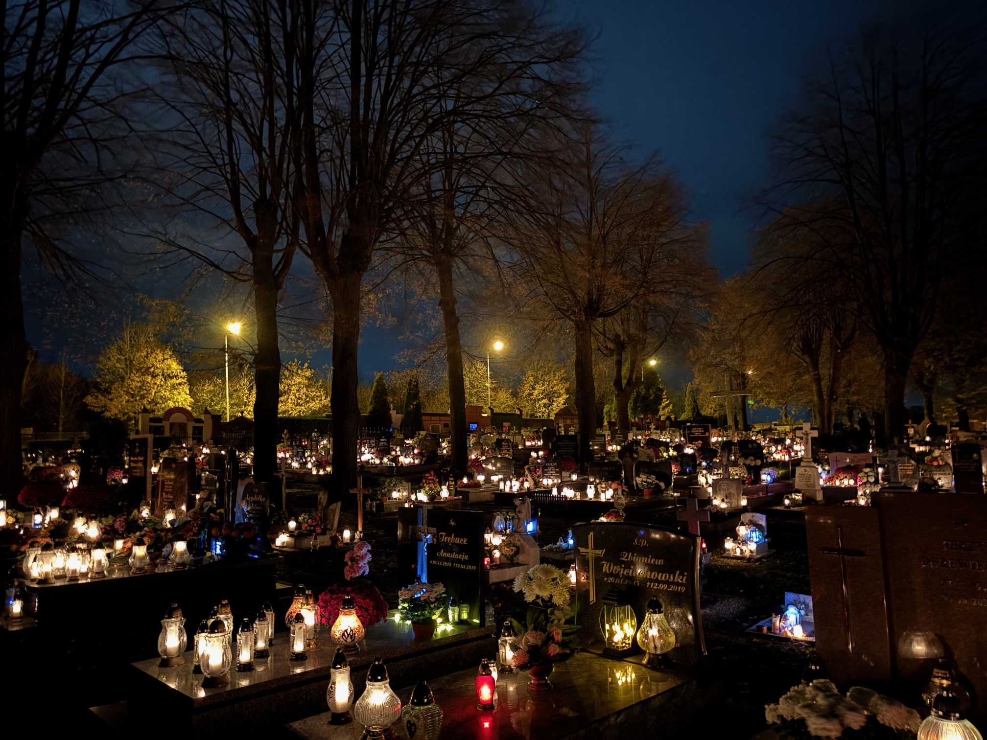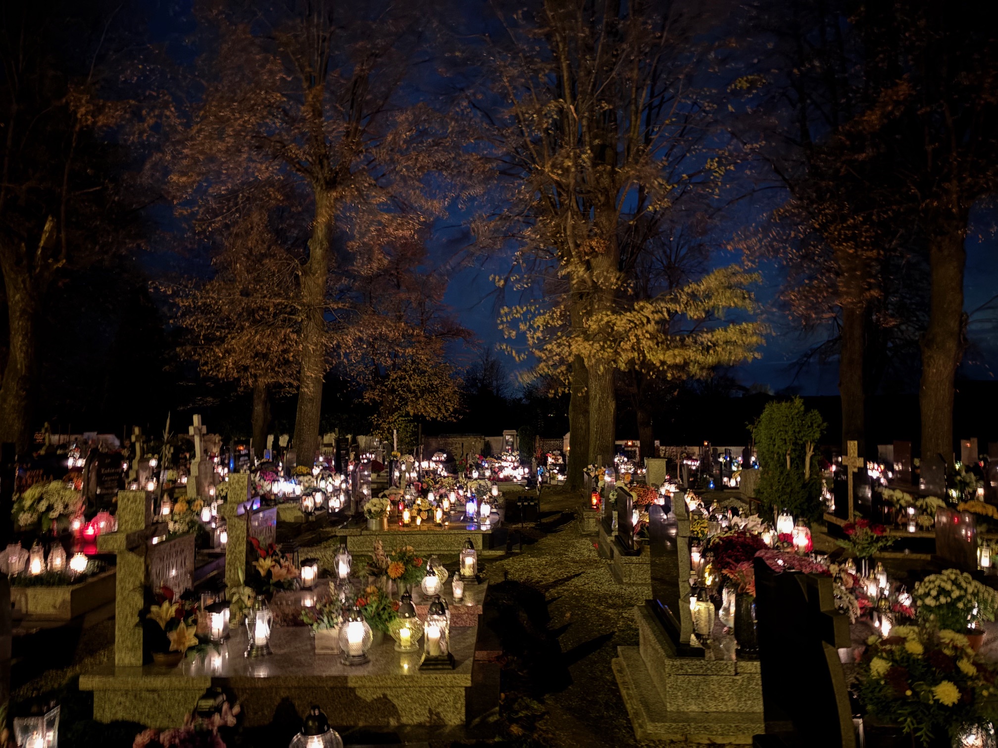 Wieczorna modlitwa na cmentarzu parafialnym w Uroczystość Wszystkich Świętych skłania do zadumy i refleksji. Trwajmy na modlitwie.