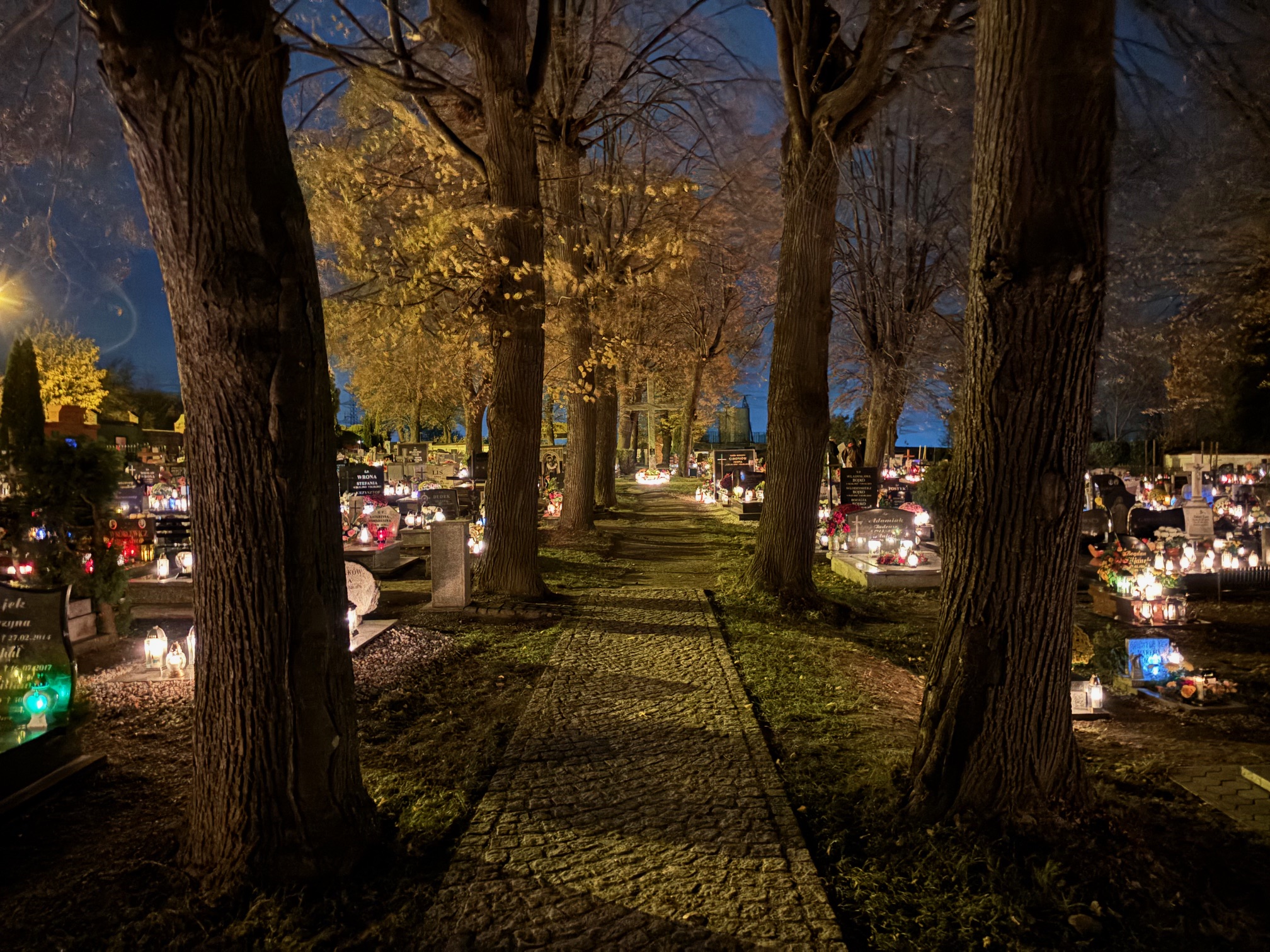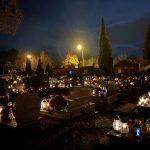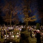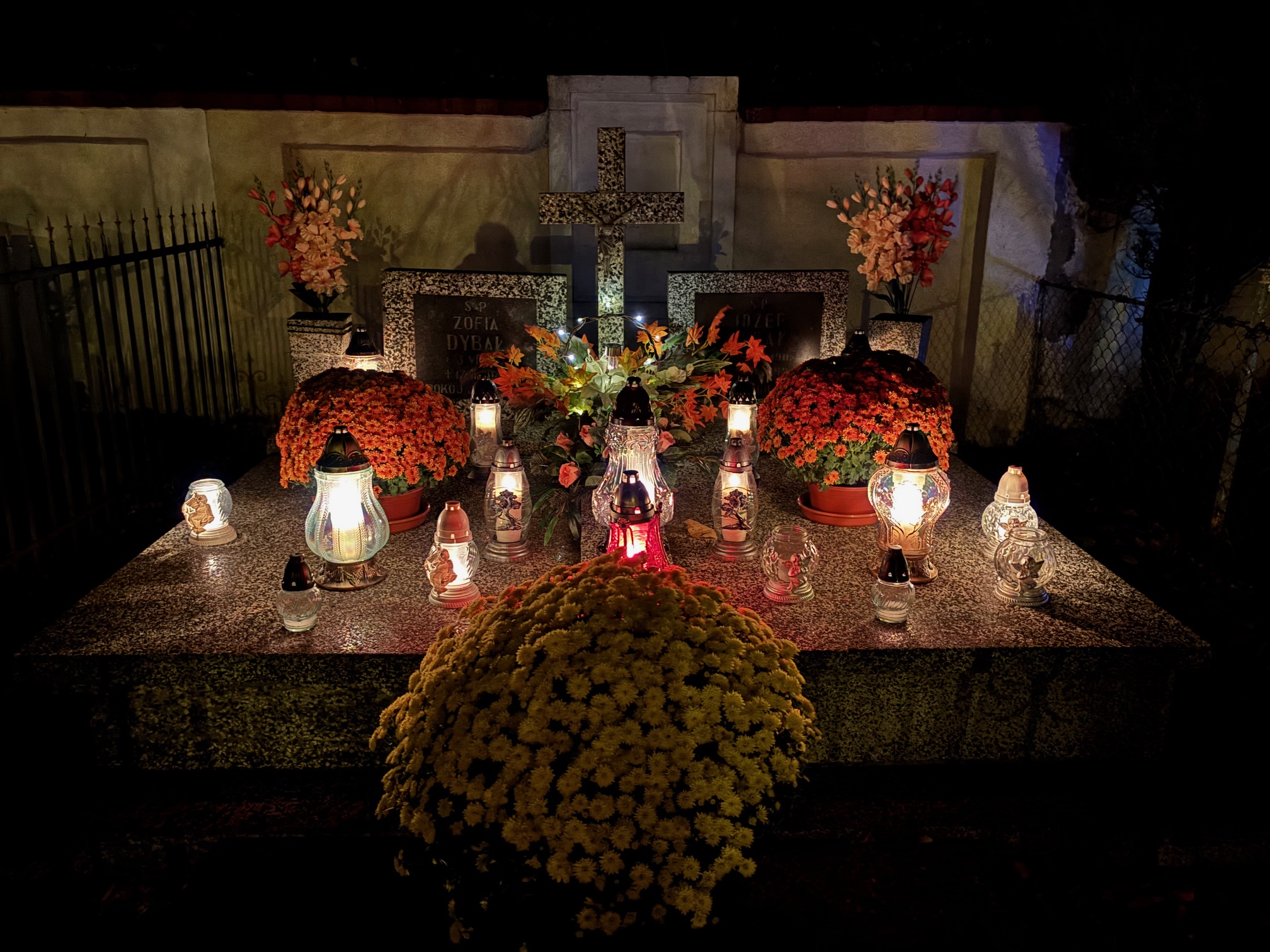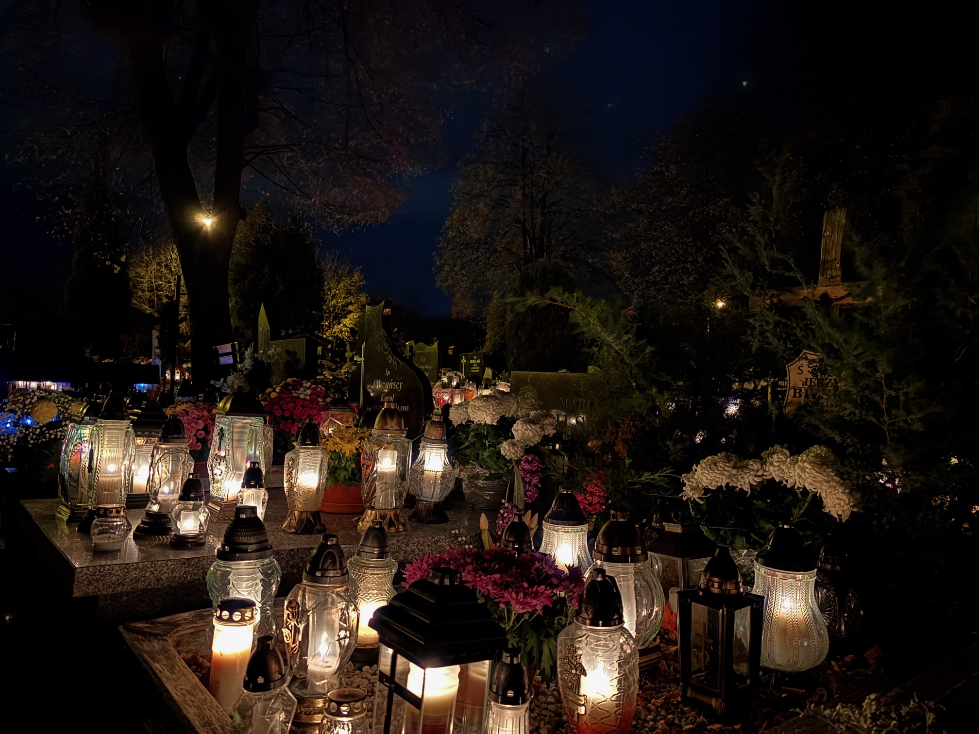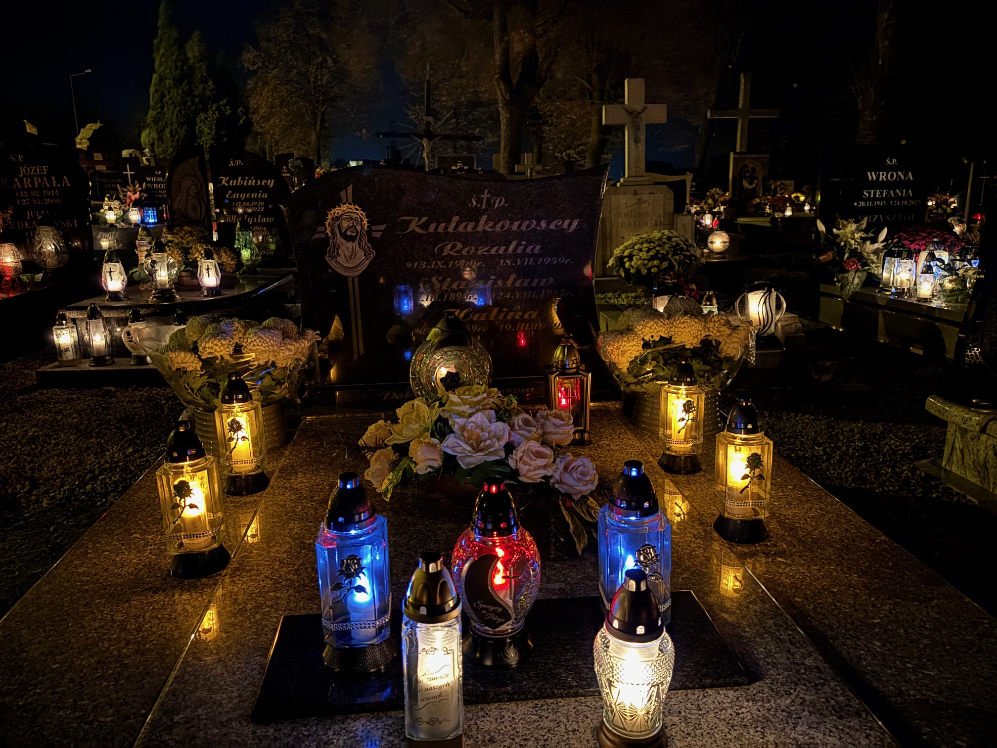 Wieczorna modlitwa na cmentarzu parafialnym w Uroczystość Wszystkich Świętych skłania do zadumy i refleksji. Trwajmy na modlitwie.