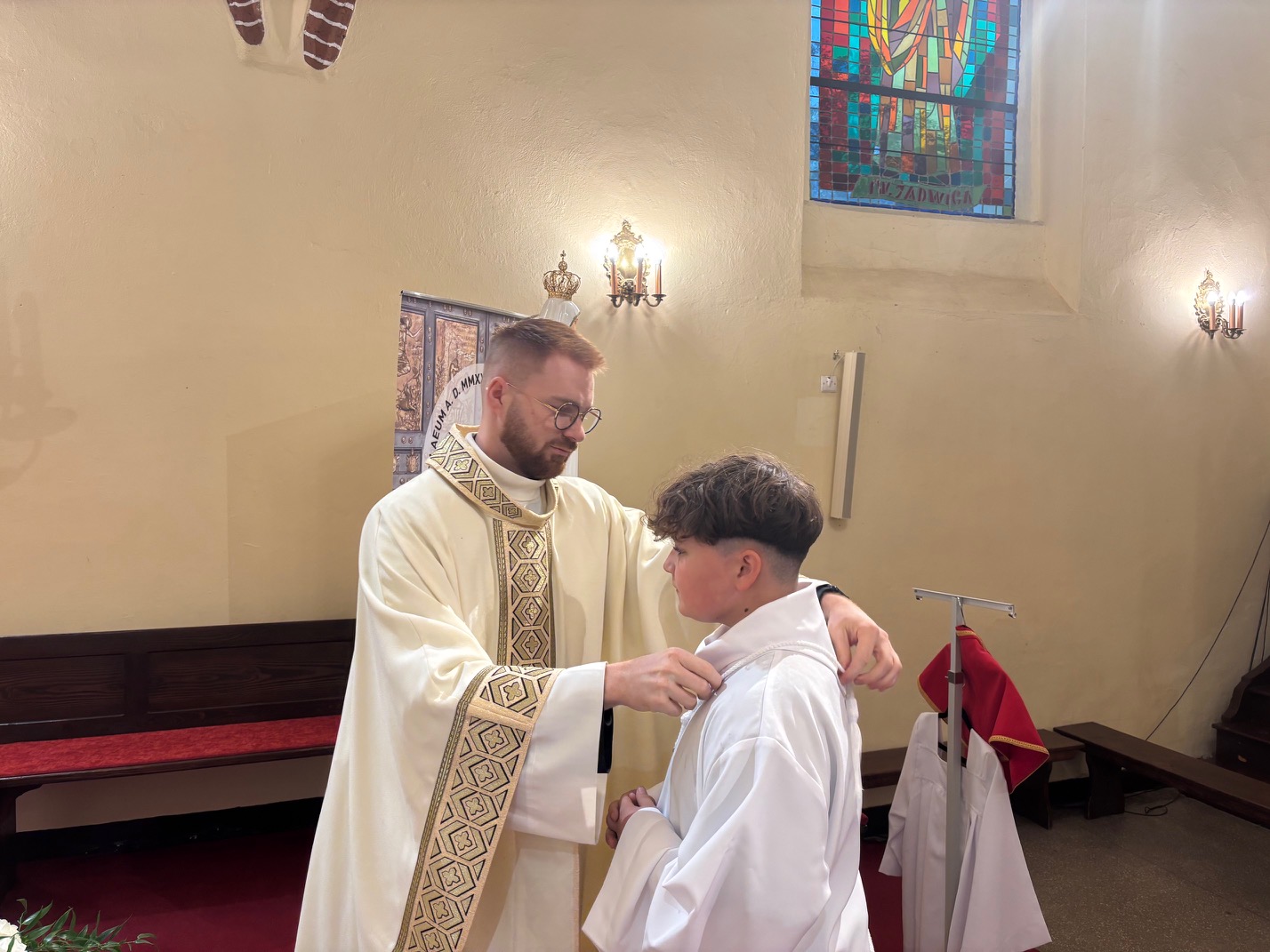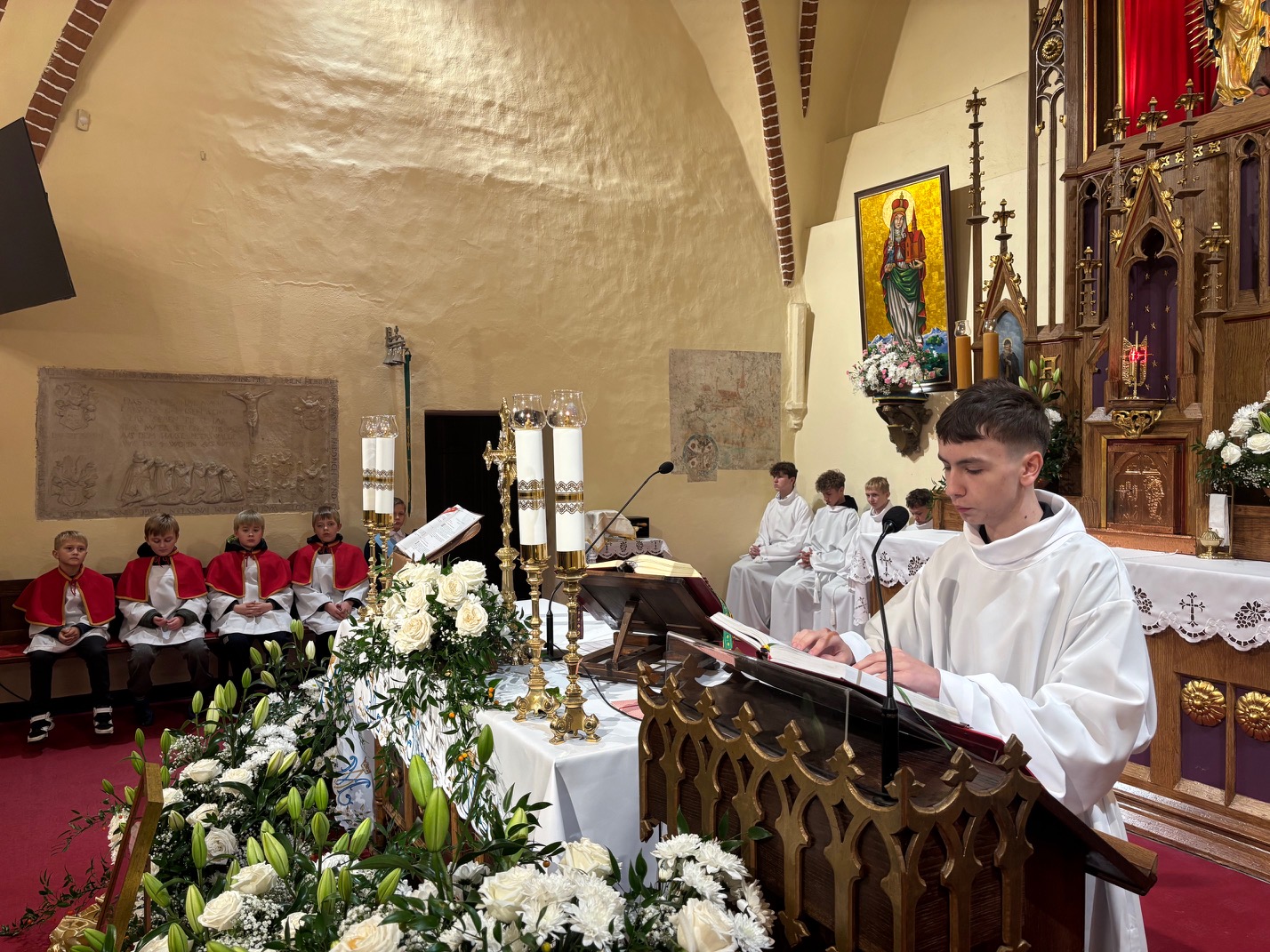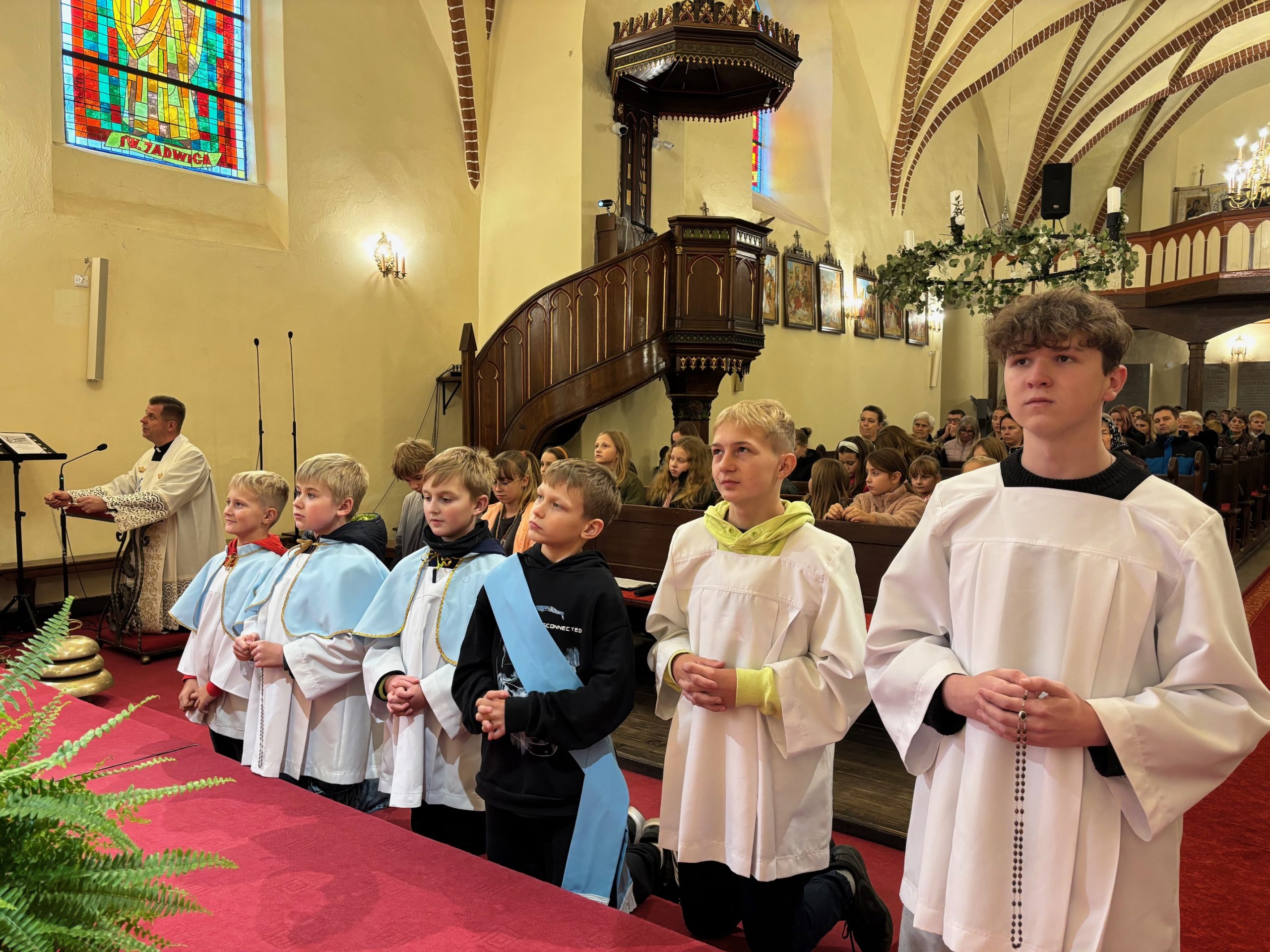 W uroczystość św. Jadwigi Śląskiej wierni zgromadzeni w mokrzeszowskim Wieczerniku, dziękowali Bogu za dar Patronki. We wspomnienie św. Jadwigi, 16 października 1978 roku, został wybrany na papieża kardynał Karol Wojtyła, który po wyborze przyjął imię Jan Paweł II. Również 16 października, w dniu imienin parafii, podczas Mszy św. odbyła się w Mokrzeszowie promocja nowych lektorów i nowego ministranta. Wcześniej, w trakcie nabożeństwa różańcowego o godz. 16.30, otoczyliśmy nowych lektorów i ministranta modlitwą, a przyzywając w litanii wstawiennictwa świętej patronki, prosiliśmy o jej modlitwę za parafię. Promocji lektorów oraz ministranta dokonał ks. Emil Dudek, Diecezjalny Duszpasterz Młodzieży i LSO. W homilii przypomniał, że słuchanie słowa Bożego czyni nas braćmi i siostrami Jezusa. Ukazał służbę w wykonaniu św. Jadwigi i przypomniał, że lektorat to służba nie tylko przy ołtarzu, ale również w domu, szkole i na ulicy. Na zakończenie Eucharystii prezes parafialnej LSO wyraził w imieniu całej grupy lektorskiej serdeczne podziękowanie ks. Emilowi za poprowadzenie promocji.
