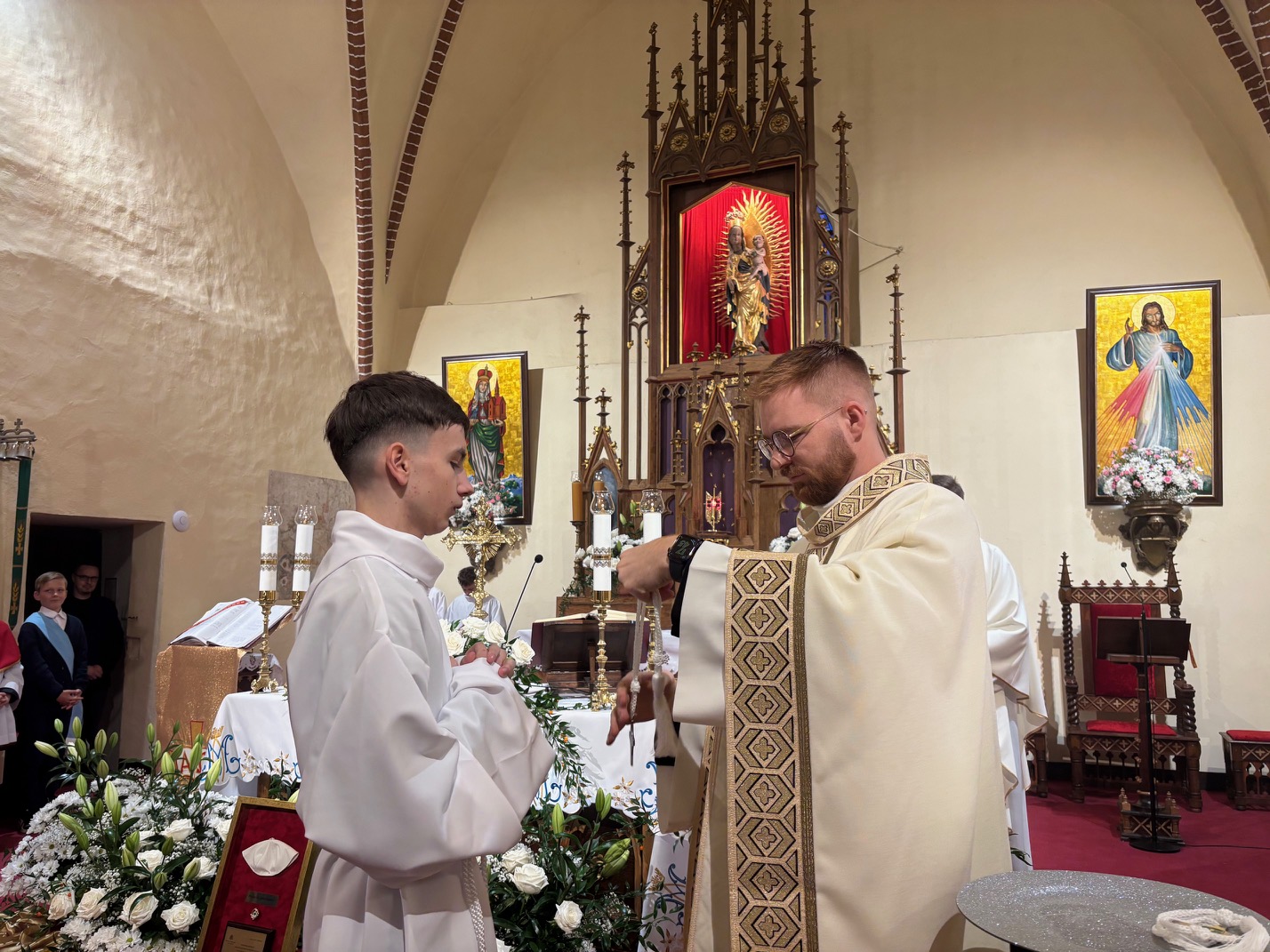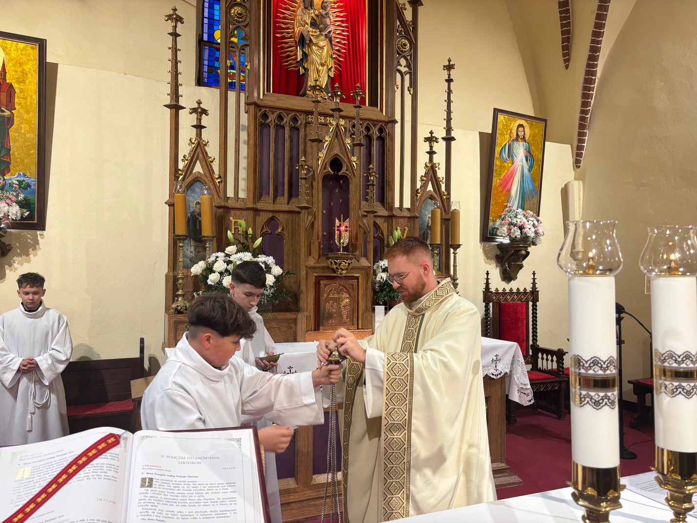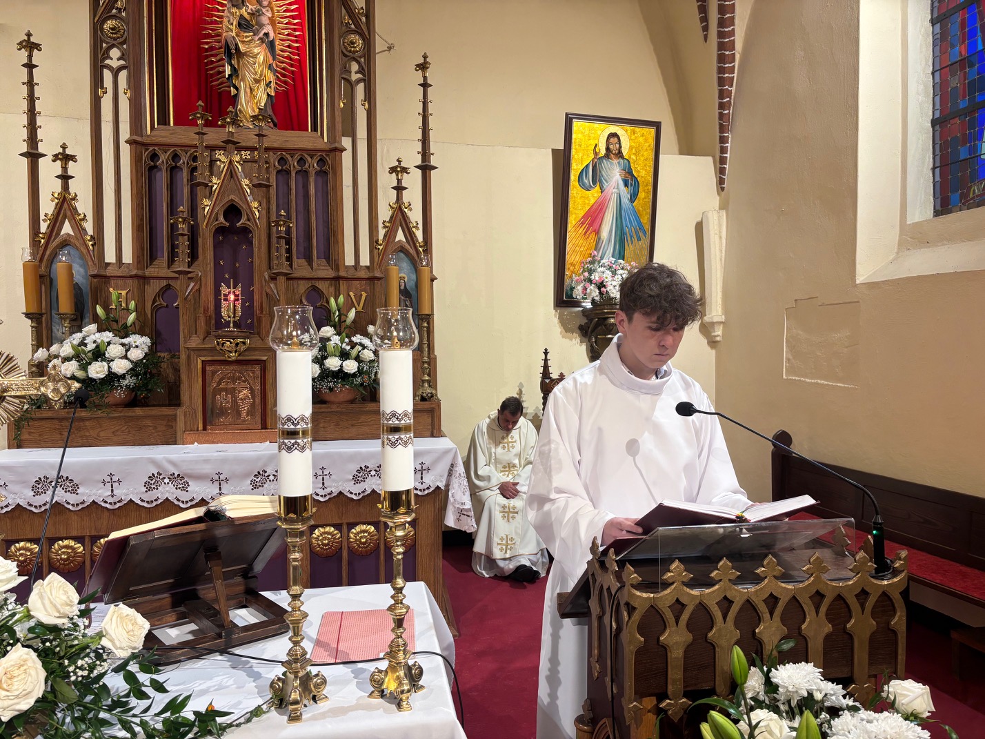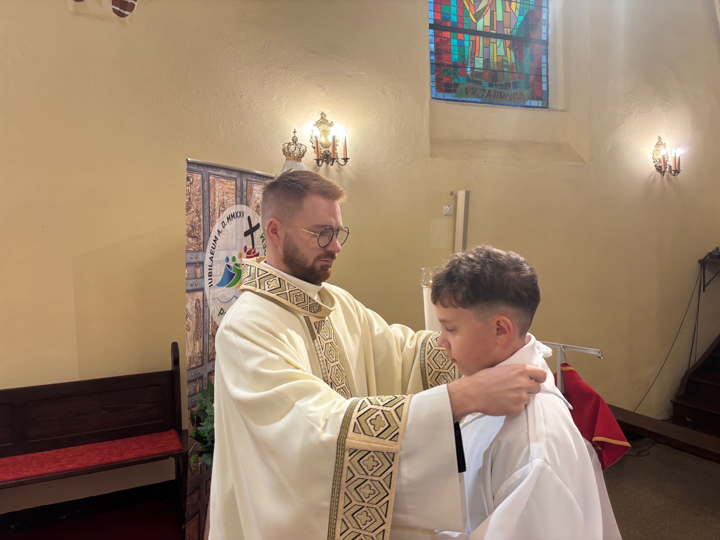 W uroczystość św. Jadwigi Śląskiej wierni zgromadzeni w mokrzeszowskim Wieczerniku, dziękowali Bogu za dar Patronki. We wspomnienie św. Jadwigi, 16 października 1978 roku, został wybrany na papieża kardynał Karol Wojtyła, który po wyborze przyjął imię Jan Paweł II. Również 16 października, w dniu imienin parafii, podczas Mszy św. odbyła się w Mokrzeszowie promocja nowych lektorów i nowego ministranta. Wcześniej, w trakcie nabożeństwa różańcowego o godz. 16.30, otoczyliśmy nowych lektorów i ministranta modlitwą, a przyzywając w litanii wstawiennictwa świętej patronki, prosiliśmy o jej modlitwę za parafię. Promocji lektorów oraz ministranta dokonał ks. Emil Dudek, Diecezjalny Duszpasterz Młodzieży i LSO. W homilii przypomniał, że słuchanie słowa Bożego czyni nas braćmi i siostrami Jezusa. Ukazał służbę w wykonaniu św. Jadwigi i przypomniał, że lektorat to służba nie tylko przy ołtarzu, ale również w domu, szkole i na ulicy. Na zakończenie Eucharystii prezes parafialnej LSO wyraził w imieniu całej grupy lektorskiej serdeczne podziękowanie ks. Emilowi za poprowadzenie promocji.