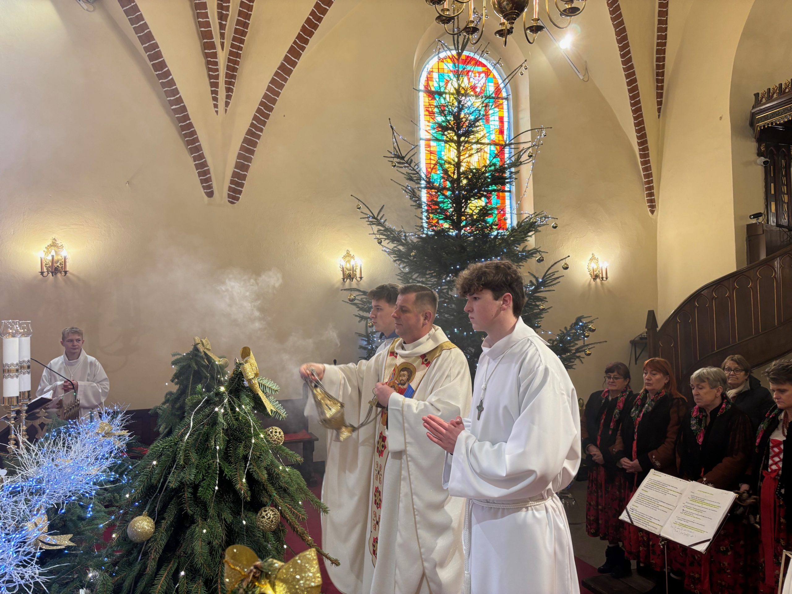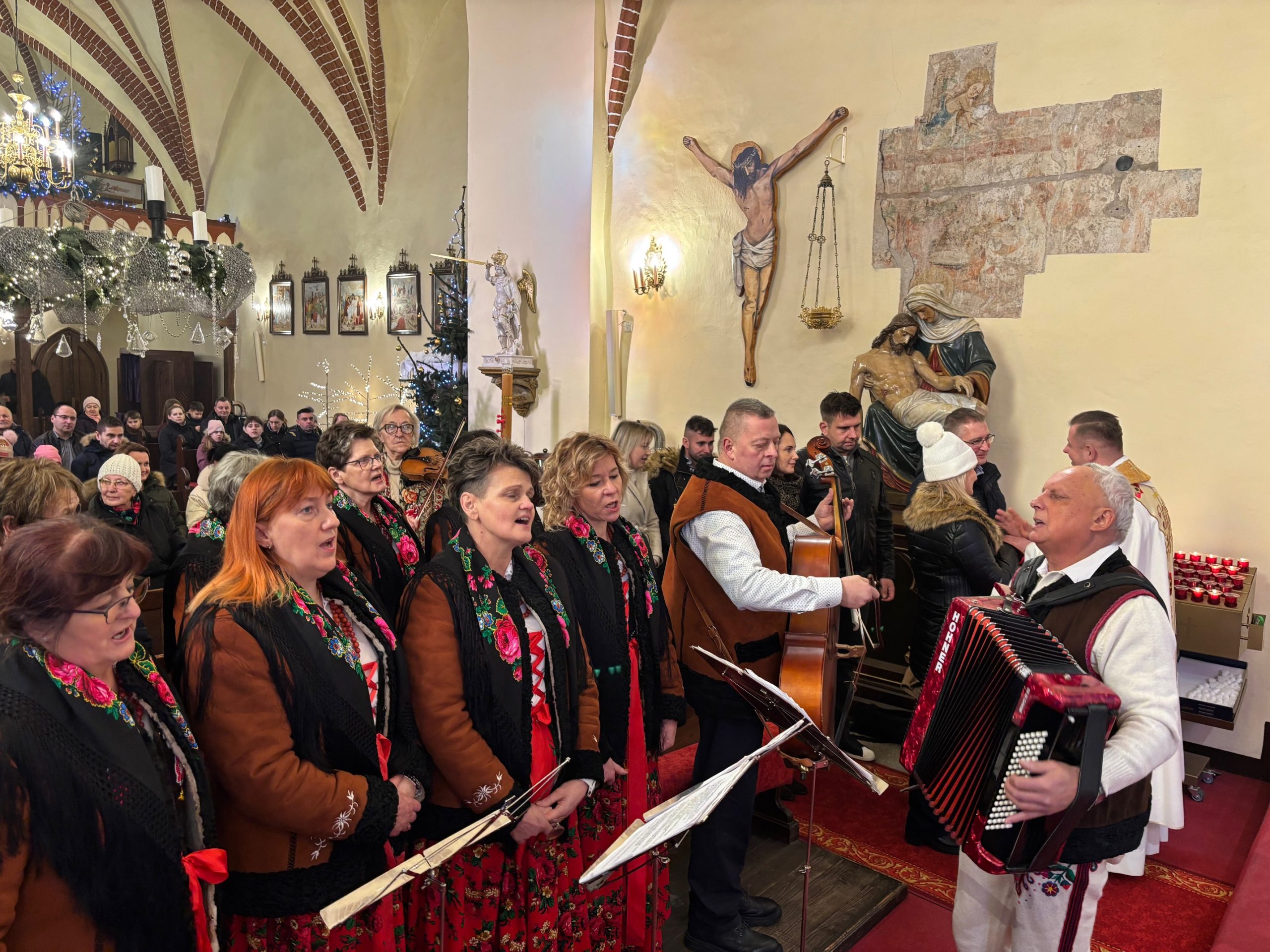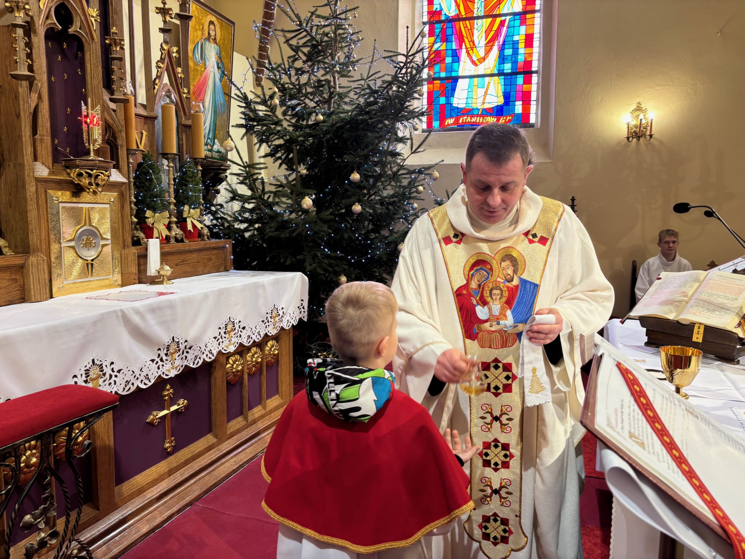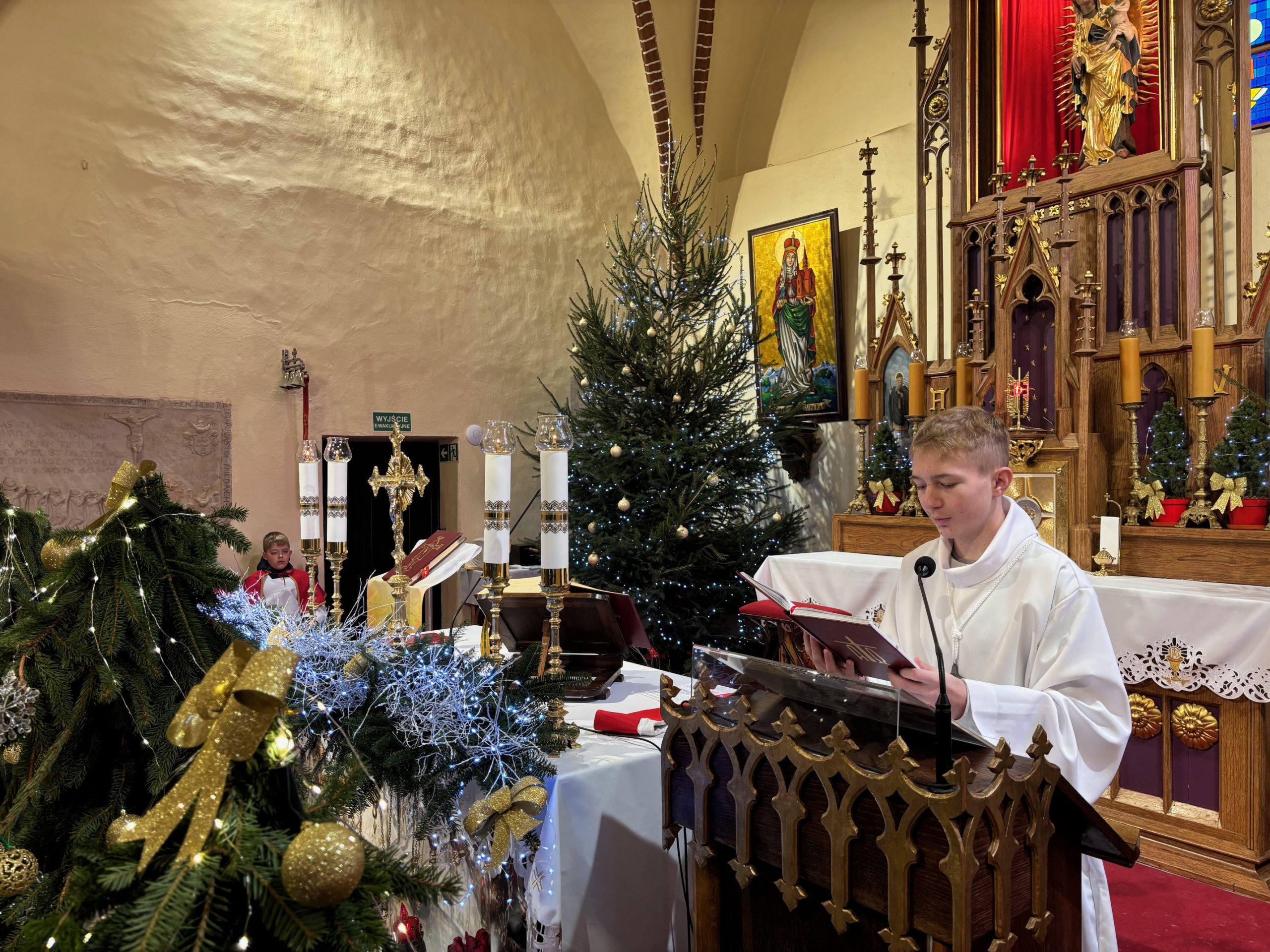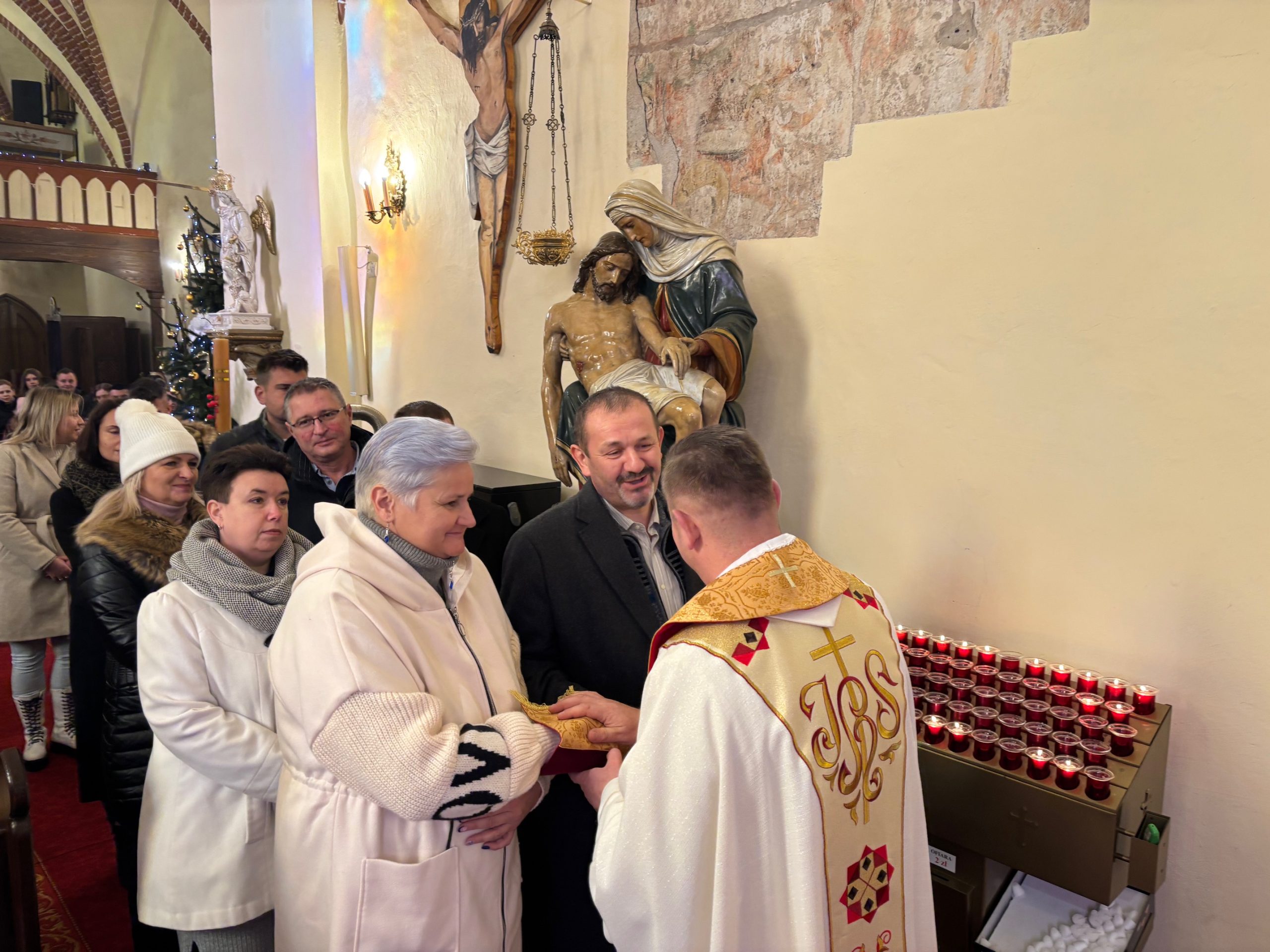 W ostatnią niedzielę roku kalendarzowego Kościół stawia ikonę Świętej Rodziny: Jezusa, Maryi i Józefa jako wzór, symbolizując miłość, życie małżeństwa i chrześcijańskiej rodziny. Święty Józef otacza opieką Maryję, a wspólnie trzymają i obejmują Chrystusa, łącząc się podanymi sobie dłońmi. Obchodzone 28 grudnia święto Rodziny Nazaretańskiej w sposób szczególny zachęca do wpatrywania się w przykład Św. Rodziny i jej wzorem – do umieszczania zawsze Boga na pierwszym miejscu. Na niedzielnej Mszy św. o godz. 11.00 małżonkowie z naszej wspólnoty parafialnej odnowili przysięgę małżeńską. Obrzędowi towarzyszyły kolędy w pięknym wykonaniu zespołu Katarzynki z Radkowa. Po Mszy św. na plebanii odbyło się krótkie spotkanie z członkami zespołu. Był drobny poczęstunek oraz świąteczne życzenia.