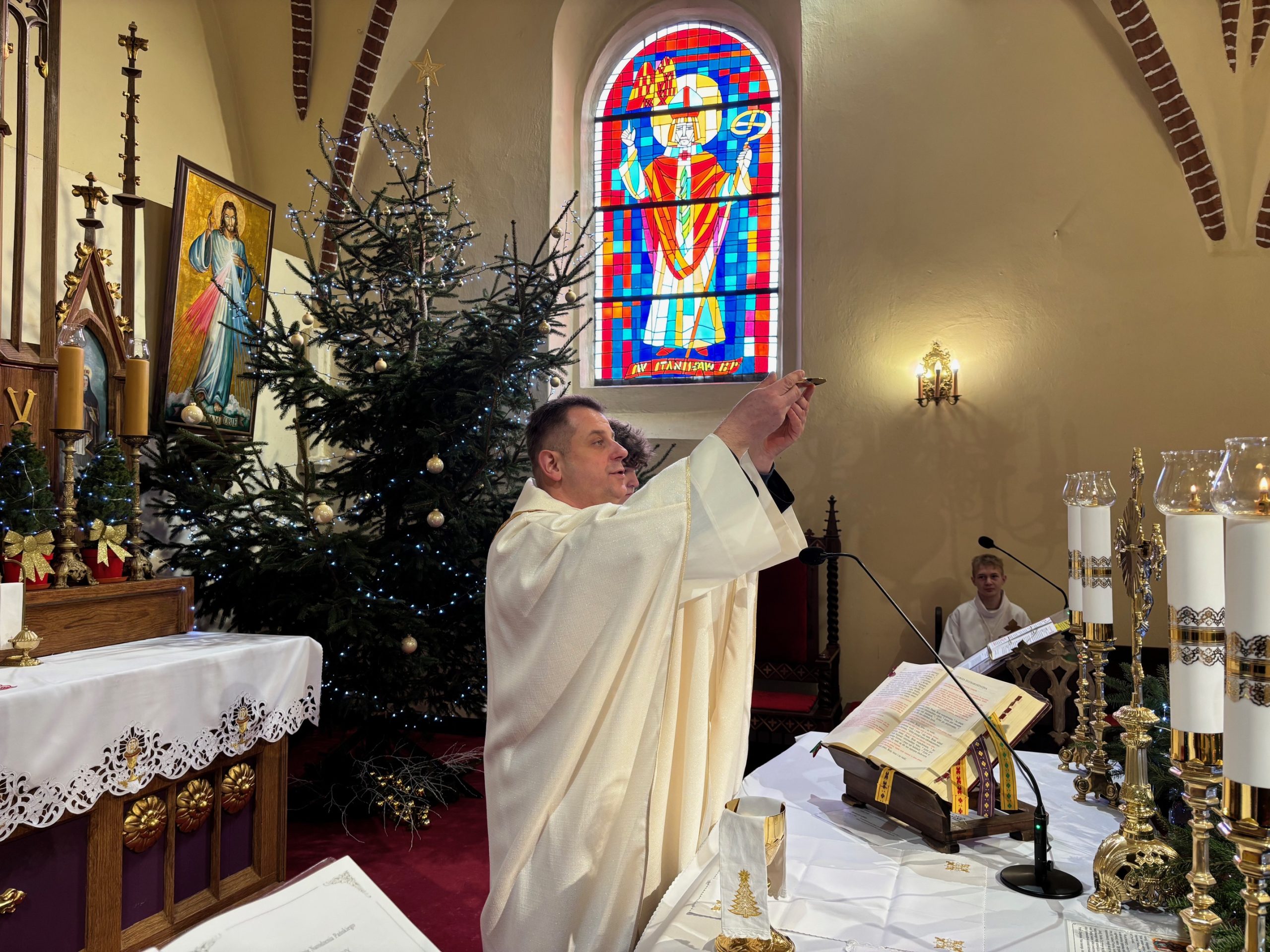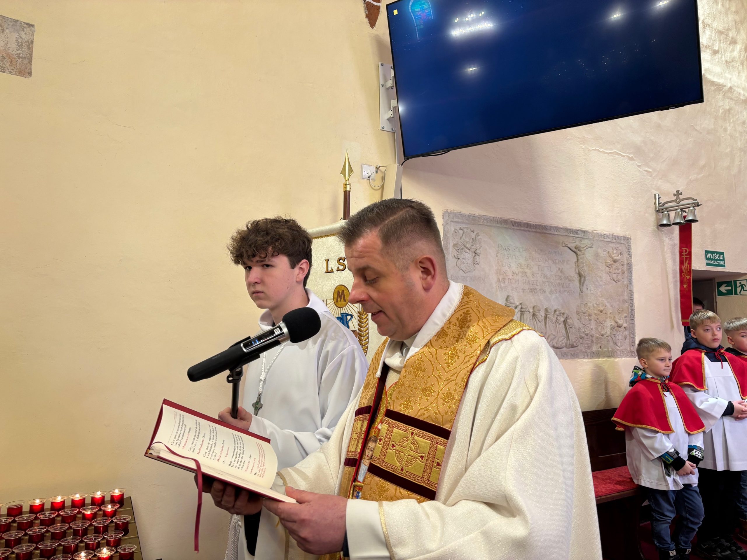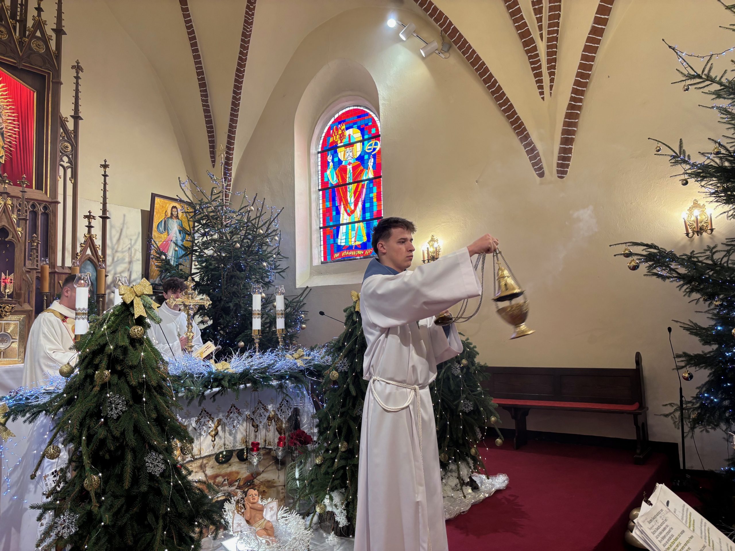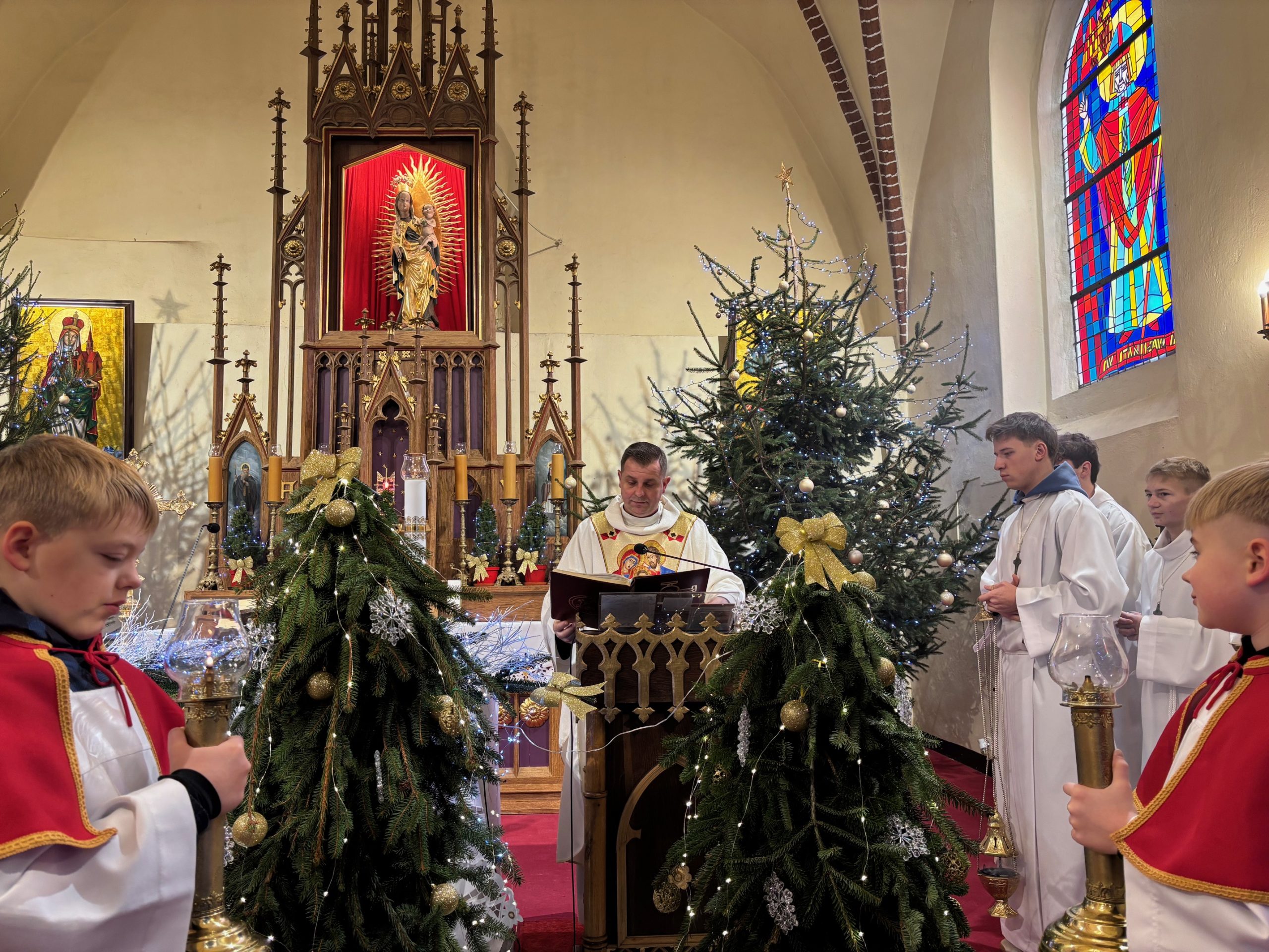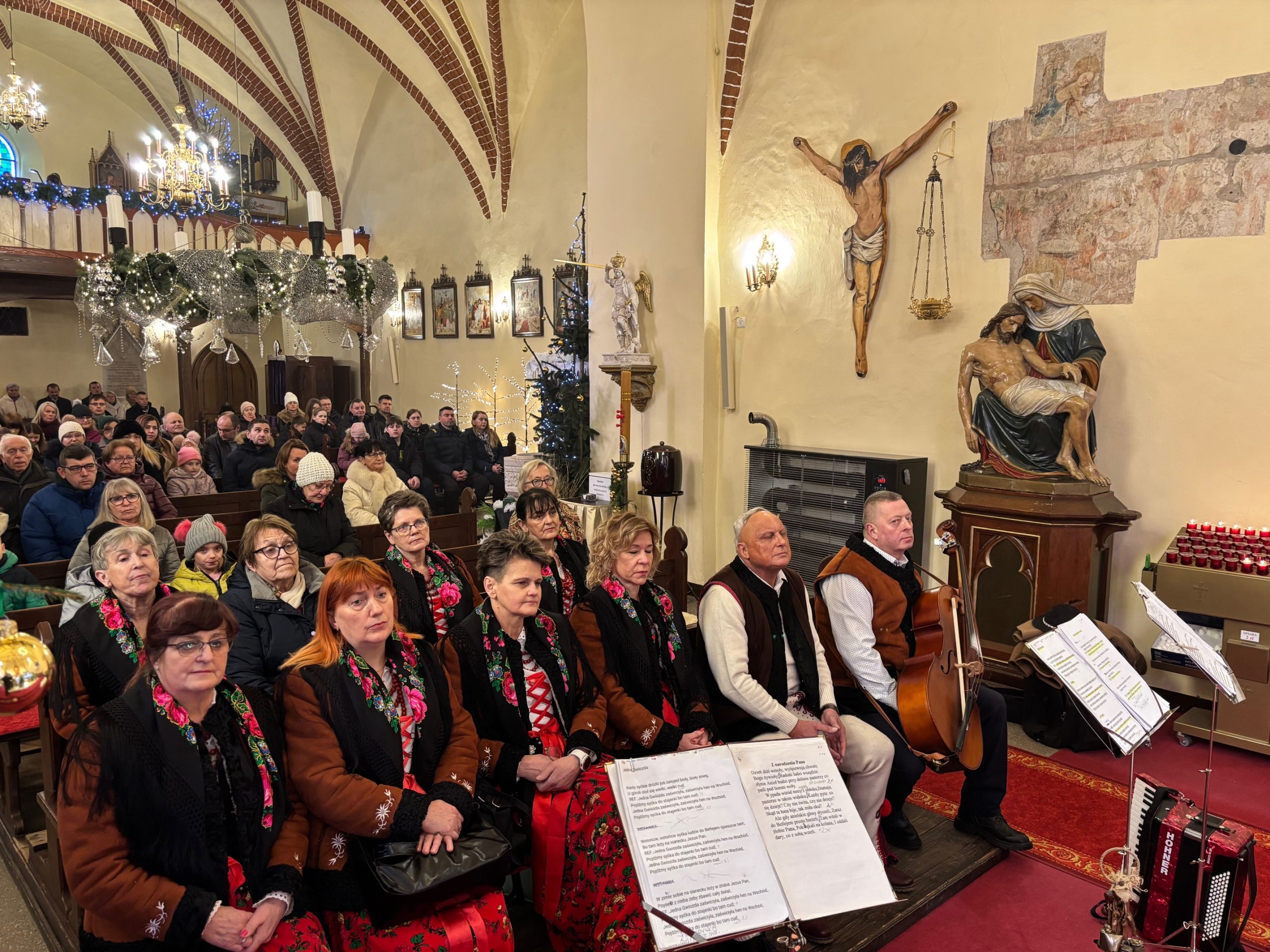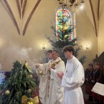 W ostatnią niedzielę roku kalendarzowego Kościół stawia ikonę Świętej Rodziny: Jezusa, Maryi i Józefa jako wzór, symbolizując miłość, życie małżeństwa i chrześcijańskiej rodziny. Święty Józef otacza opieką Maryję, a wspólnie trzymają i obejmują Chrystusa, łącząc się podanymi sobie dłońmi. Obchodzone 28 grudnia święto Rodziny Nazaretańskiej w sposób szczególny zachęca do wpatrywania się w przykład Św. Rodziny i jej wzorem – do umieszczania zawsze Boga na pierwszym miejscu. Na niedzielnej Mszy św. o godz. 11.00 małżonkowie z naszej wspólnoty parafialnej odnowili przysięgę małżeńską. Obrzędowi towarzyszyły kolędy w pięknym wykonaniu zespołu Katarzynki z Radkowa. Po Mszy św. na plebanii odbyło się krótkie spotkanie z członkami zespołu. Był drobny poczęstunek oraz świąteczne życzenia.