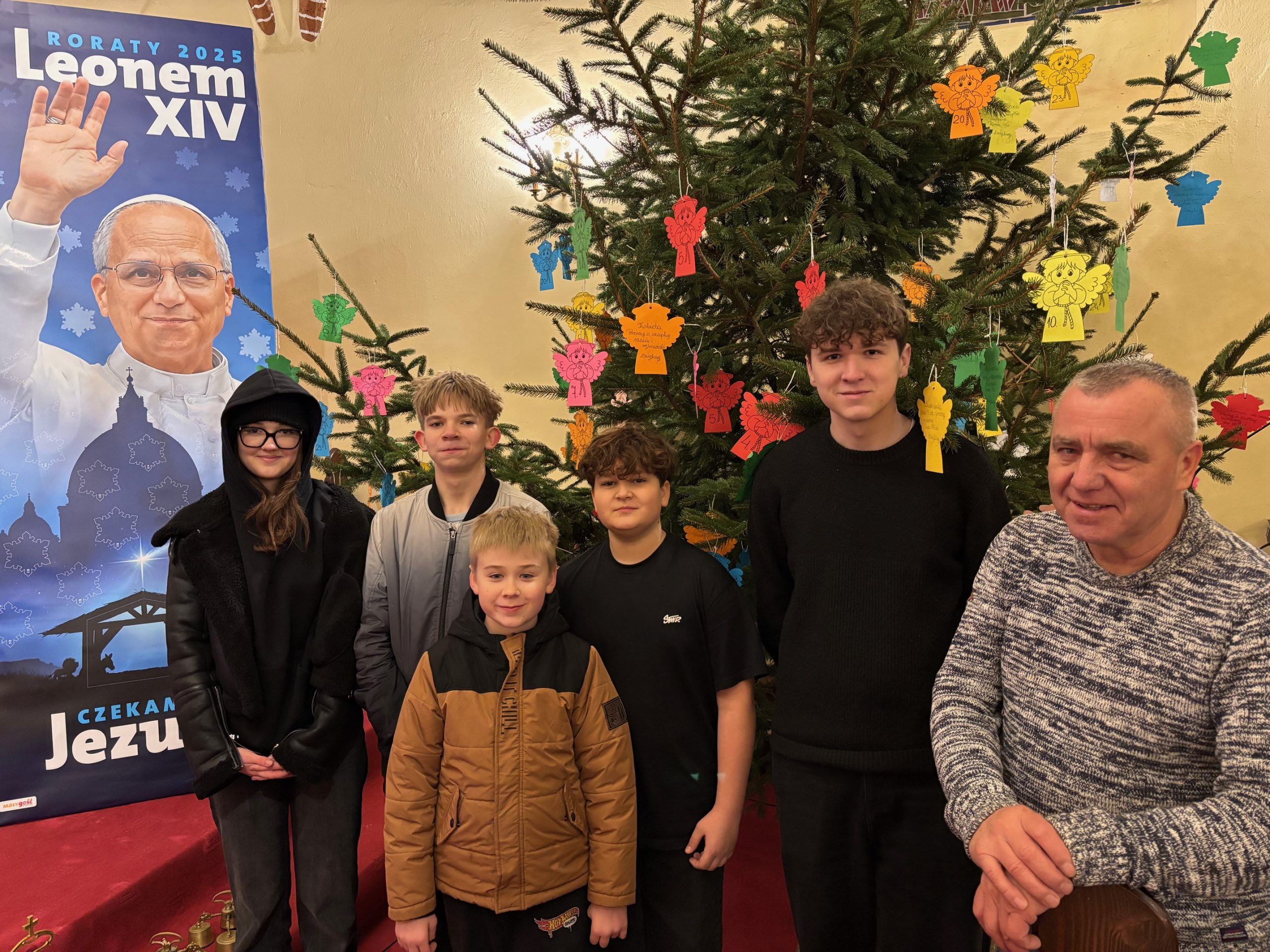 Dużymi krokami zbliża się czas Adwentu, czyli czas prostowania dróg, czas czynienia dobrych uczynków. Ten czas, można powiedzieć, już rozpoczęła młodzież z Zespołu Szkół Centrum Kształcenia Rolniczego w Mokrzeszowie. Zanim młodzież będzie mogła powiesić na Adwentowym Drzewku Dobroci aniołki symbolizujące osoby w potrzebie, należało najpierw te aniołki przygotować. Pierwszą czynnością było wycięcie anioła z brystolu. Kolejne osoby wypisały numerki i nawlokły aniołki na sznurek. Kolejną pracą będzie wypisanie potrzeb wspomaganych osób. Tak wykonane aniołki w piątek, 28 listopada, zawisły na choince w kościele w Mokrzeszowie. Drzewko Dobroci będzie żyło miłością ofiarodawców upominków, przygotowującej je młodzieży jak i wdzięcznych obdarowanych ludzi.