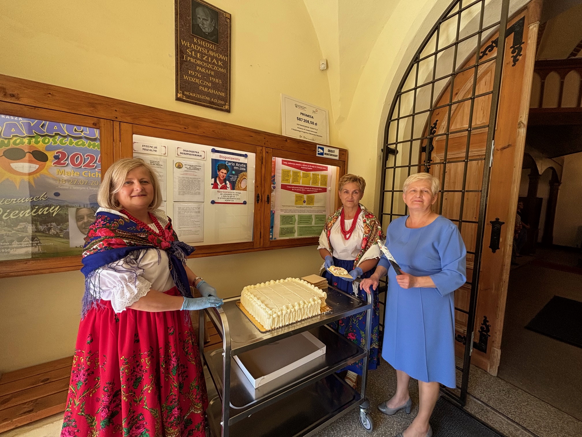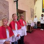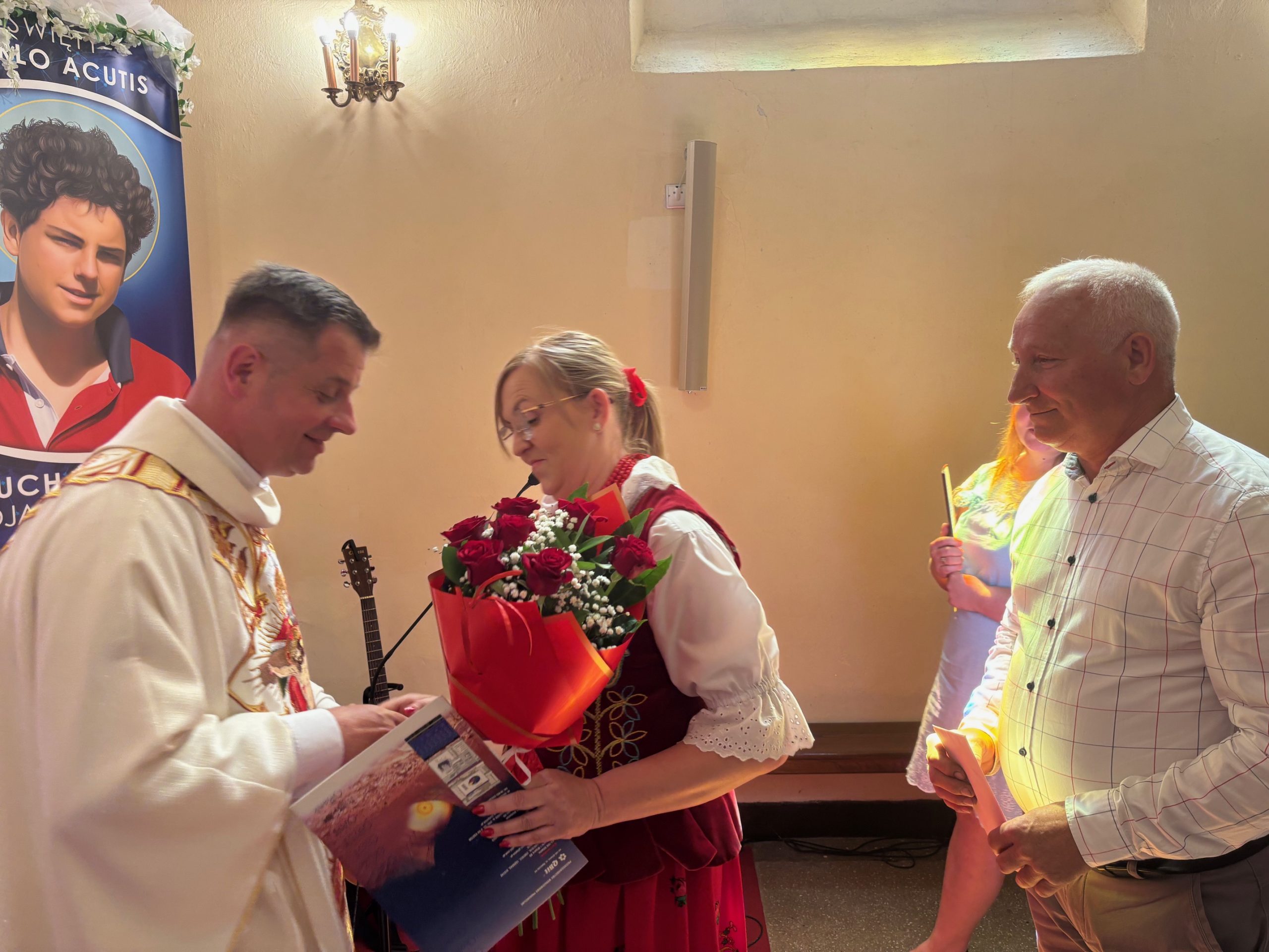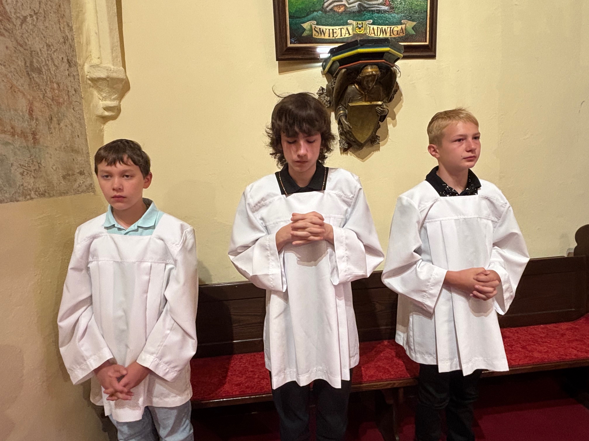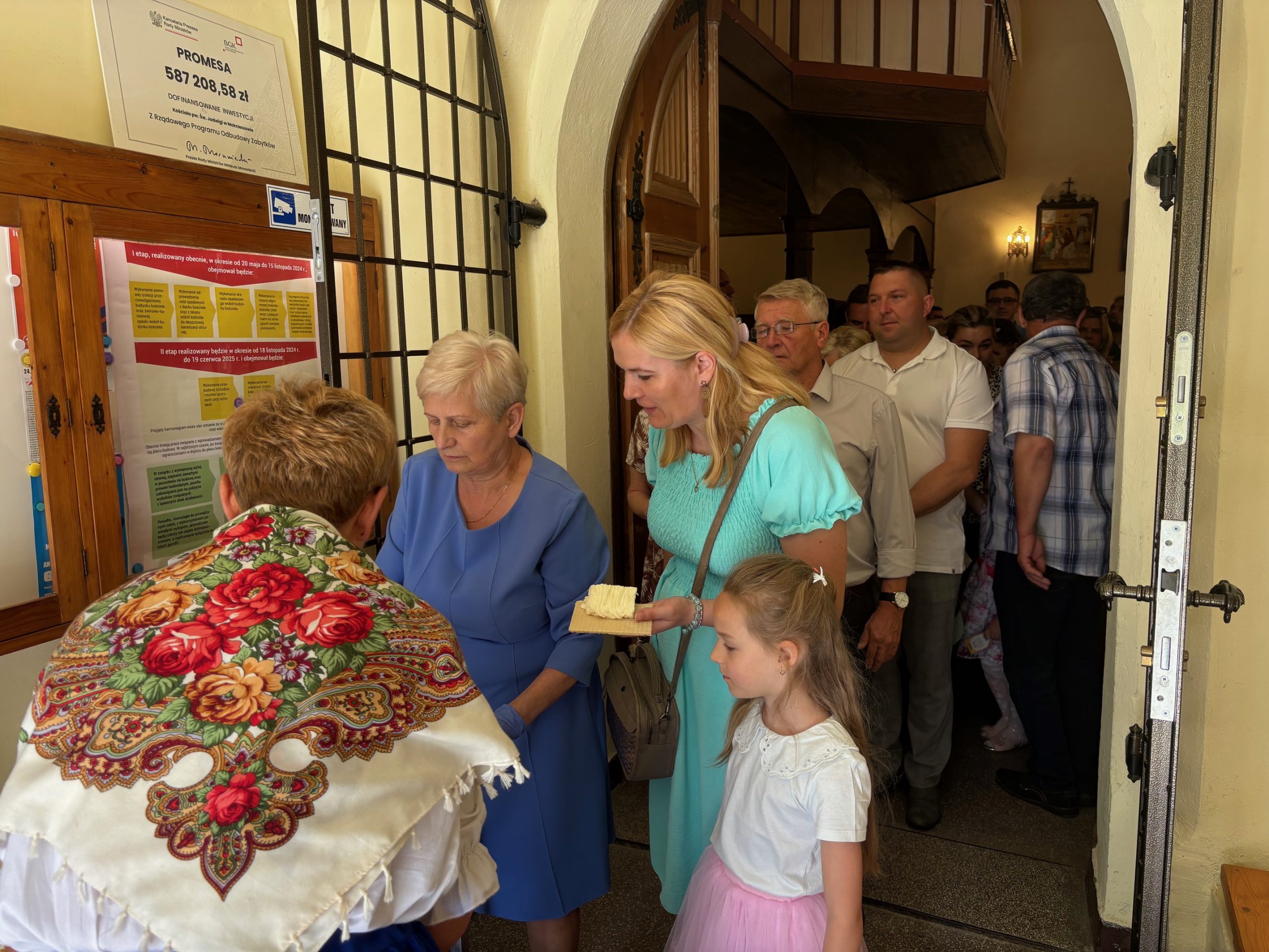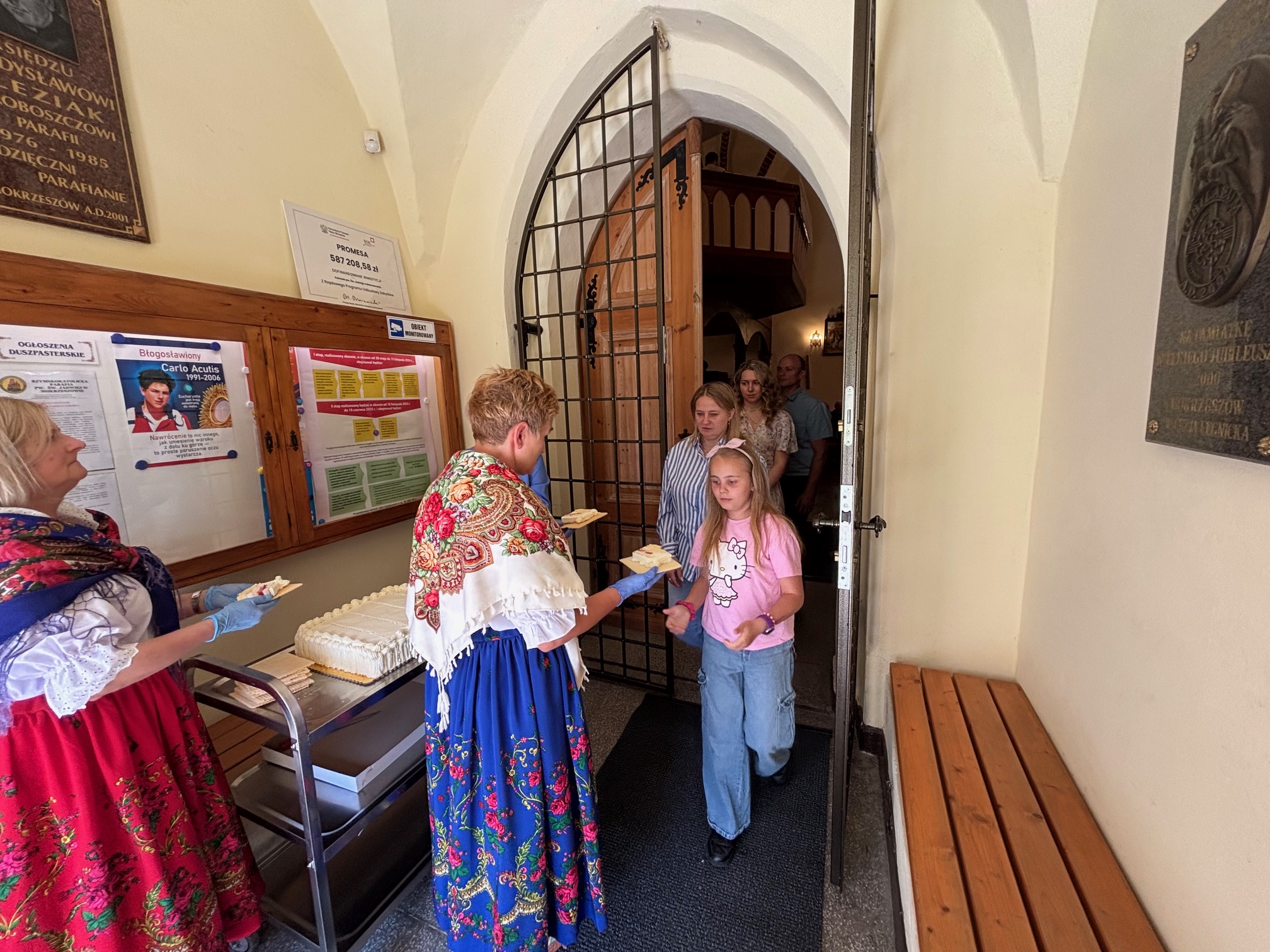 Zauważmy, że Trójca Święta towarzyszy nam od początku naszego życia. Modlitwa do Trójcy Świętej jest pierwszą, której się nauczyliśmy, jest nią znak krzyża: „W imię Ojca i Syna, i Ducha Świętego”. Od tego wezwania Trójcy rozpoczynamy każdą Eucharystię, od niego rozpoczęliśmy także tę Mszę św., po czym dzieci odśpiewały modlitwę „W imię Ojca i Syna i Ducha Świętego…”. Ks. Marcin przypomniał poszczególne Osoby Trójcy Świętej, i co zrobił dla nas Bóg Ojciec, Bóg Syn i Bóg Duch Święty. Kapłan podsumował, że Bóg, Trójca Święta, jest miłością i jednością, i jest tam, gdzie jest miłość i jedność. Po Mszy św. ks. Marcin z okazji swoich urodzin zaprosił wszystkich jej uczestników na tort. I tak słodki poczęstunek pomógł w ten ciepły dzień ucieszyć się sobą nawzajem.