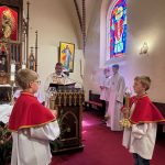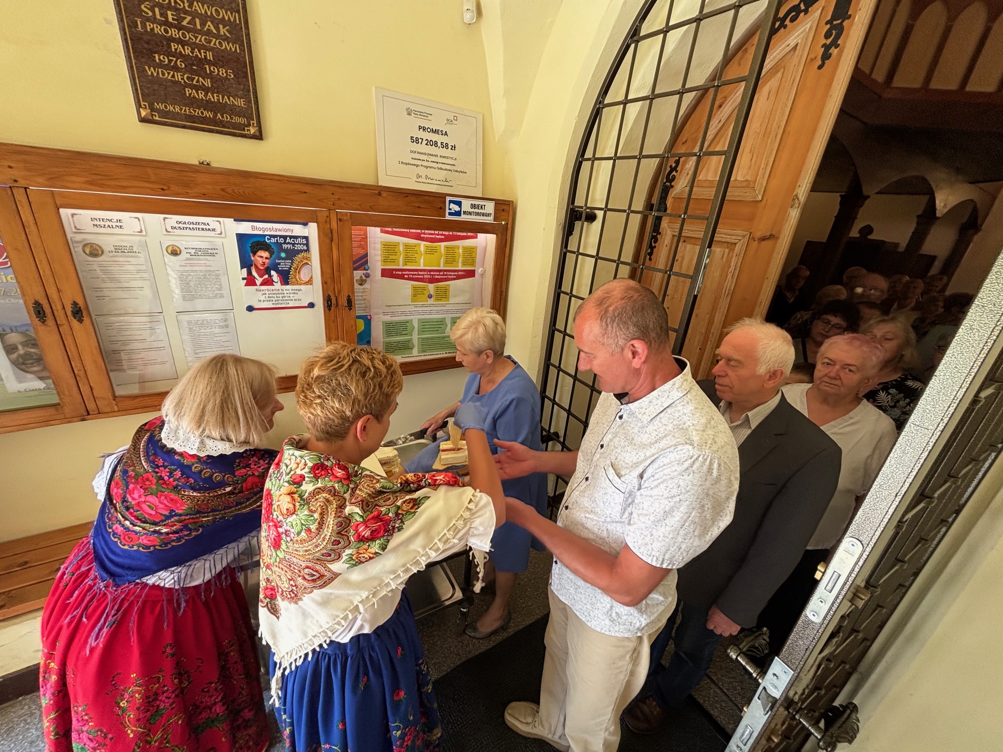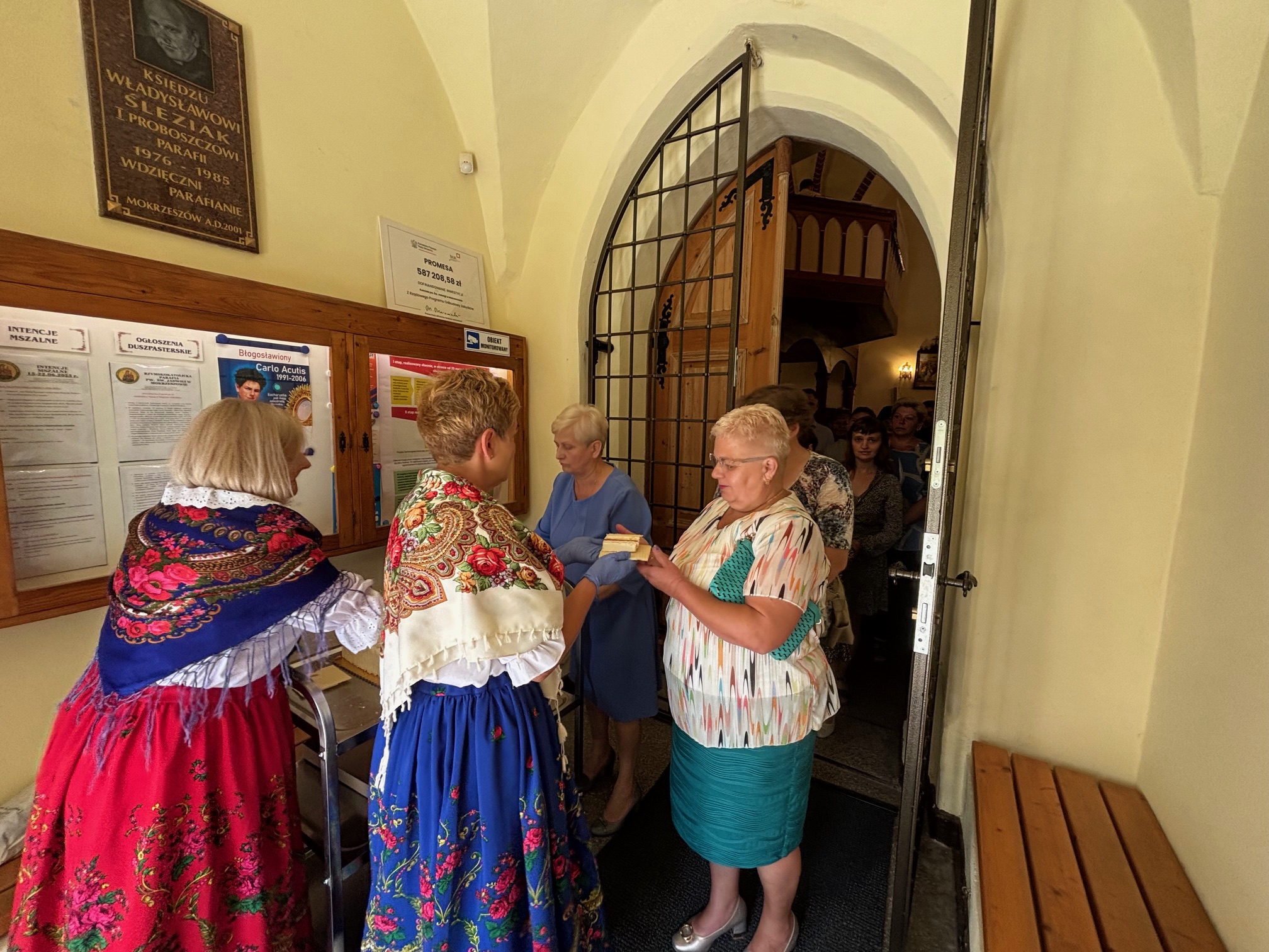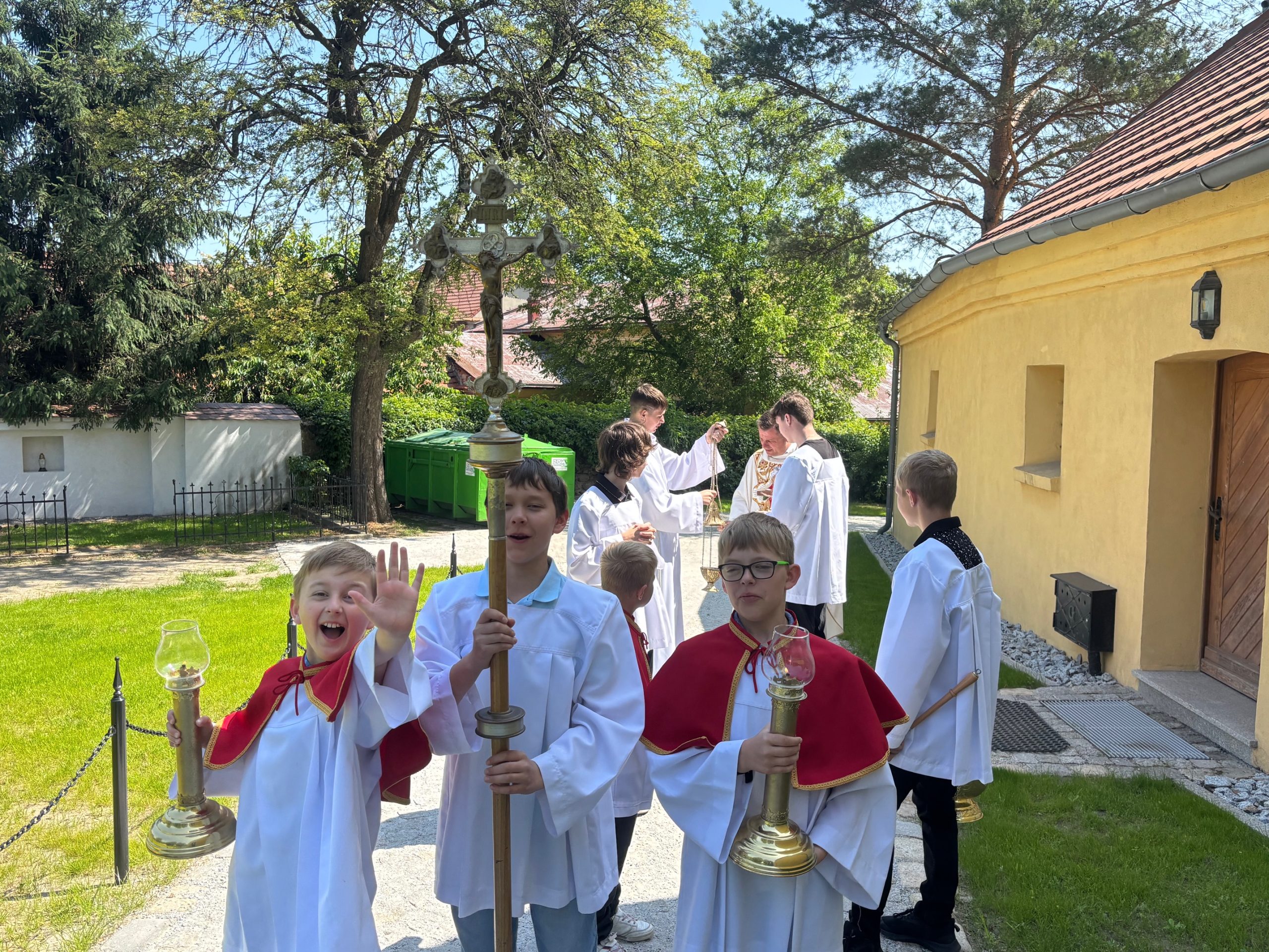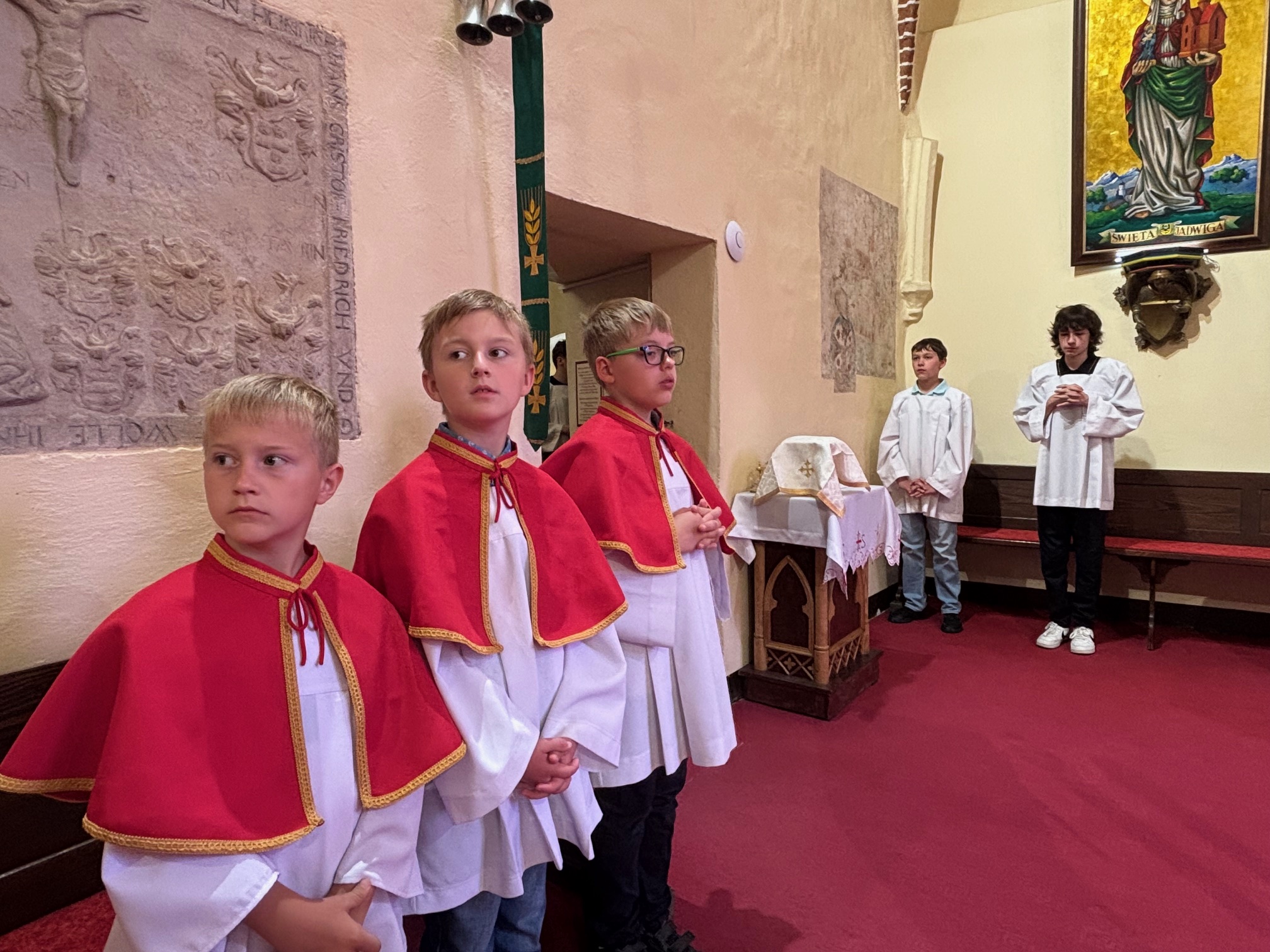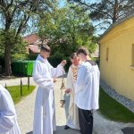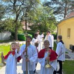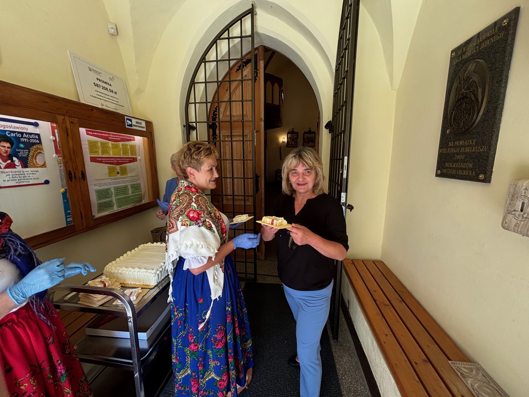 Zauważmy, że Trójca Święta towarzyszy nam od początku naszego życia. Modlitwa do Trójcy Świętej jest pierwszą, której się nauczyliśmy, jest nią znak krzyża: „W imię Ojca i Syna, i Ducha Świętego”. Od tego wezwania Trójcy rozpoczynamy każdą Eucharystię, od niego rozpoczęliśmy także tę Mszę św., po czym dzieci odśpiewały modlitwę „W imię Ojca i Syna i Ducha Świętego…”. Ks. Marcin przypomniał poszczególne Osoby Trójcy Świętej, i co zrobił dla nas Bóg Ojciec, Bóg Syn i Bóg Duch Święty. Kapłan podsumował, że Bóg, Trójca Święta, jest miłością i jednością, i jest tam, gdzie jest miłość i jedność. Po Mszy św. ks. Marcin z okazji swoich urodzin zaprosił wszystkich jej uczestników na tort. I tak słodki poczęstunek pomógł w ten ciepły dzień ucieszyć się sobą nawzajem.