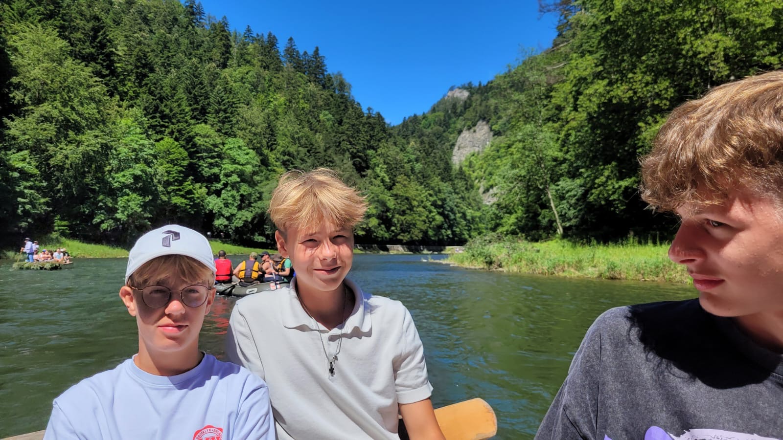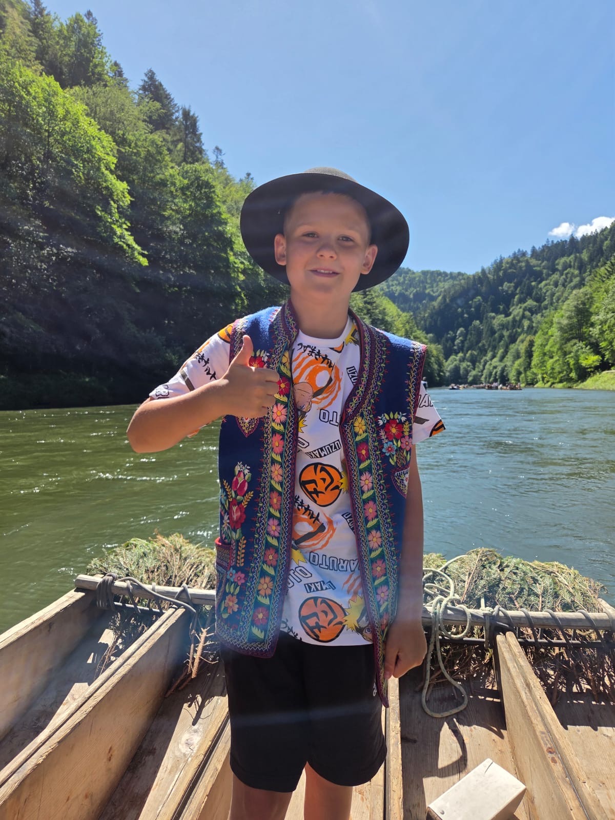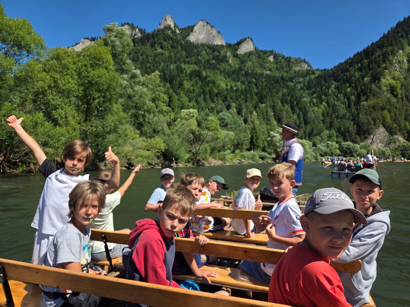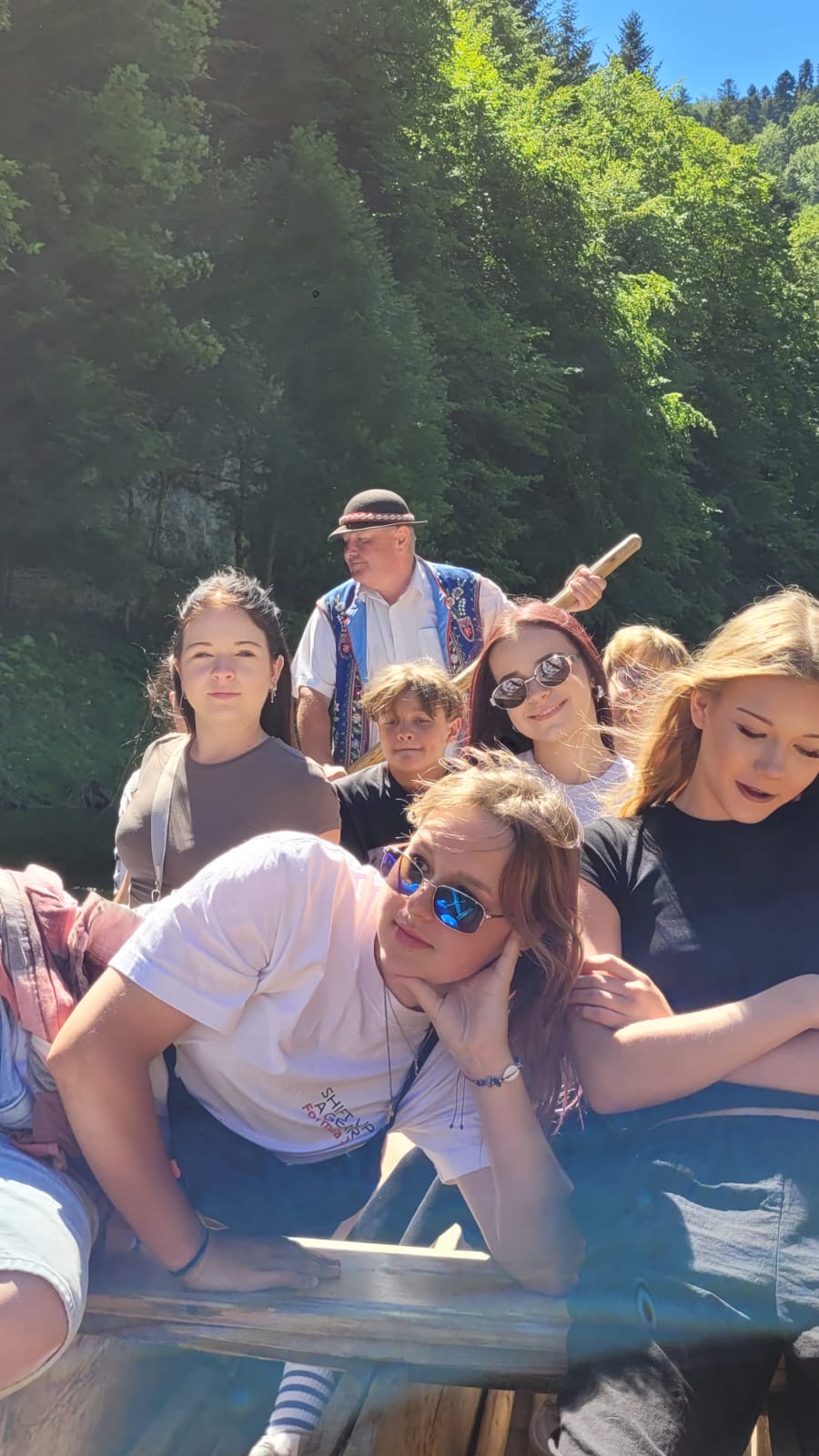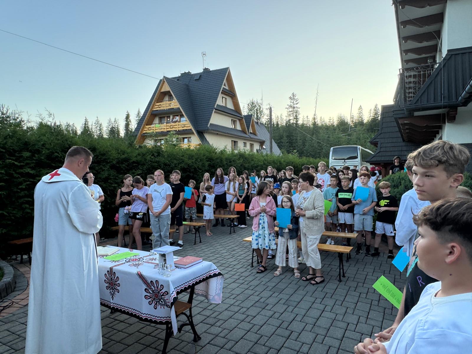 W piątym dniu z hasła ,,Sama z Samym” mieliśmy literkę ,,z” jak zdrowie. Podczas przejazdu autokarem, ksiądz Marcin tłumaczył, że zdrowie to dobry sen i dobry odpoczynek. Dojechaliśmy do Stromowców Niżnych i tam wsiedliśmy do 9 tratw na spływ Dunajcem. Podczas rejsu Flisacy opowiadali nam o różnych rzeczach np.: jak nazywają się skały i po której stronie jest granica Polski, a po której Słowacji i dużo więcej ciekawostek . Następnie kolejką wjachaliśmy na Palenicę, z której roztaczał się piękny widok na Tatry i Pieniny. Po drodze zrobiliśmy małe zakupki i wróciliśmy do ośrodka tu mieliśmy czas na krótką kąpiel w basenie i zabawę z piłką. Po obiadokolacji wzięliśmy udział w Mszy Świętej, podczas której Ksiądz zachęcał, aby rozkochać się w Bogu. Po Mszy część dzieci udała się na boisko, aby wspólnie pograć w piłkę. Zauważam, że coraz więcej dzieci chętnie bierze udział w tych zajęciach. Pozostała część dzieci uczestniczyła w warsztatach robienia labooków. Po dniu pełnym emocji każdy chętnie udał się do swoich łóżek.