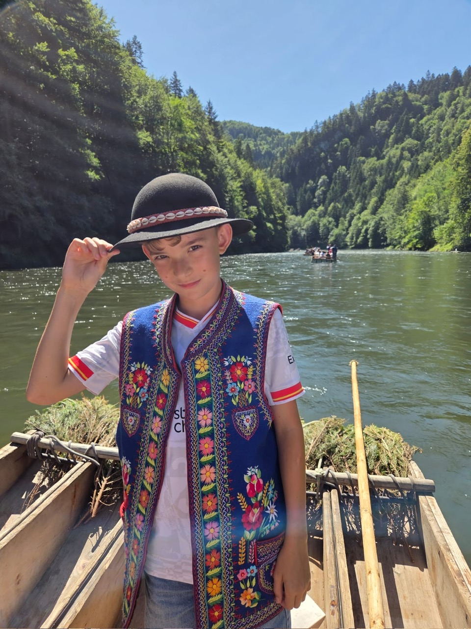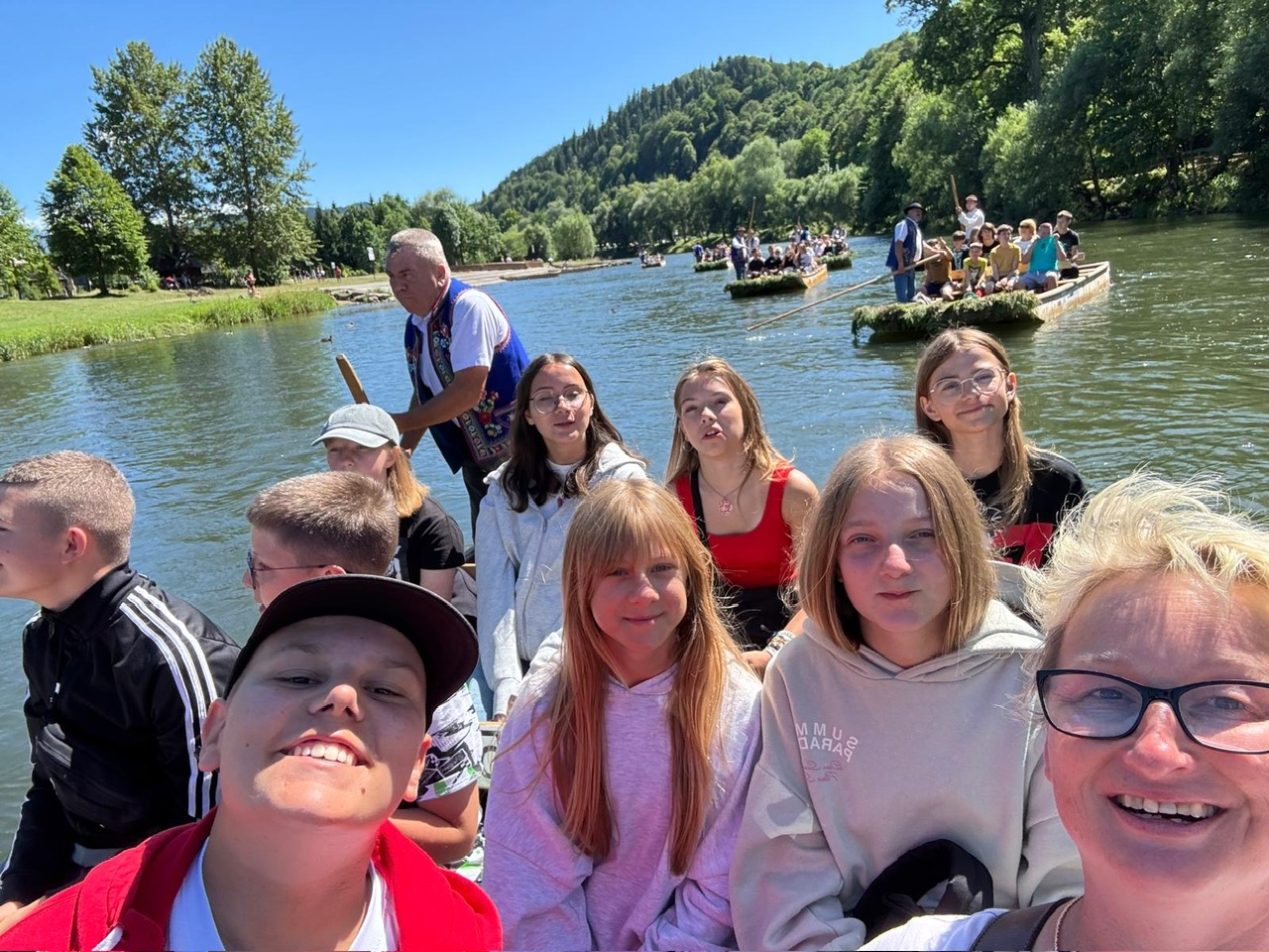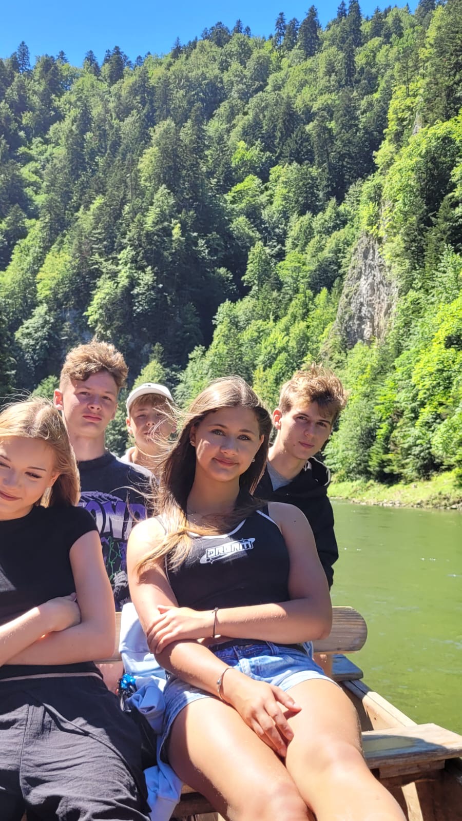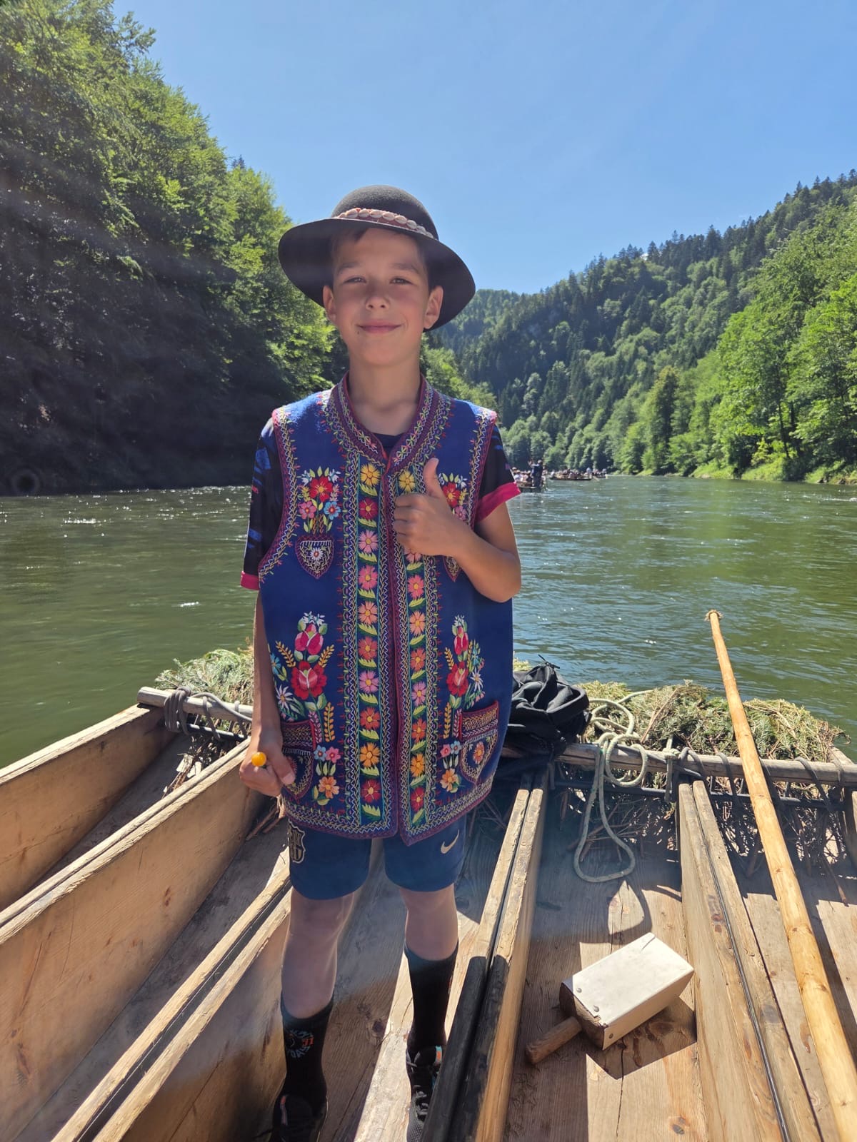 W piątym dniu z hasła ,,Sama z Samym” mieliśmy literkę ,,z” jak zdrowie. Podczas przejazdu autokarem, ksiądz Marcin tłumaczył, że zdrowie to dobry sen i dobry odpoczynek. Dojechaliśmy do Stromowców Niżnych i tam wsiedliśmy do 9 tratw na spływ Dunajcem. Podczas rejsu Flisacy opowiadali nam o różnych rzeczach np.: jak nazywają się skały i po której stronie jest granica Polski, a po której Słowacji i dużo więcej ciekawostek . Następnie kolejką wjachaliśmy na Palenicę, z której roztaczał się piękny widok na Tatry i Pieniny. Po drodze zrobiliśmy małe zakupki i wróciliśmy do ośrodka tu mieliśmy czas na krótką kąpiel w basenie i zabawę z piłką. Po obiadokolacji wzięliśmy udział w Mszy Świętej, podczas której Ksiądz zachęcał, aby rozkochać się w Bogu. Po Mszy część dzieci udała się na boisko, aby wspólnie pograć w piłkę. Zauważam, że coraz więcej dzieci chętnie bierze udział w tych zajęciach. Pozostała część dzieci uczestniczyła w warsztatach robienia labooków. Po dniu pełnym emocji każdy chętnie udał się do swoich łóżek.